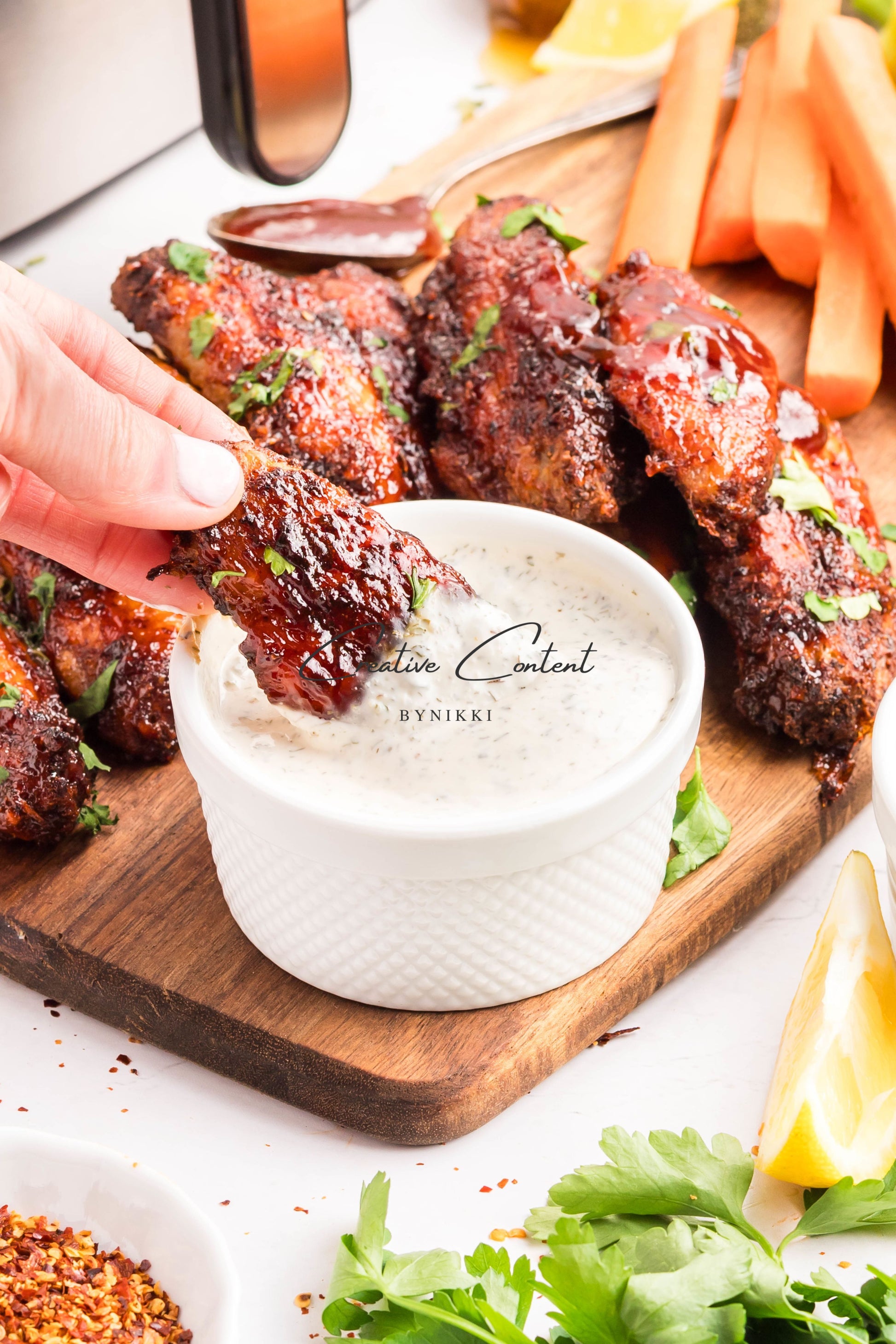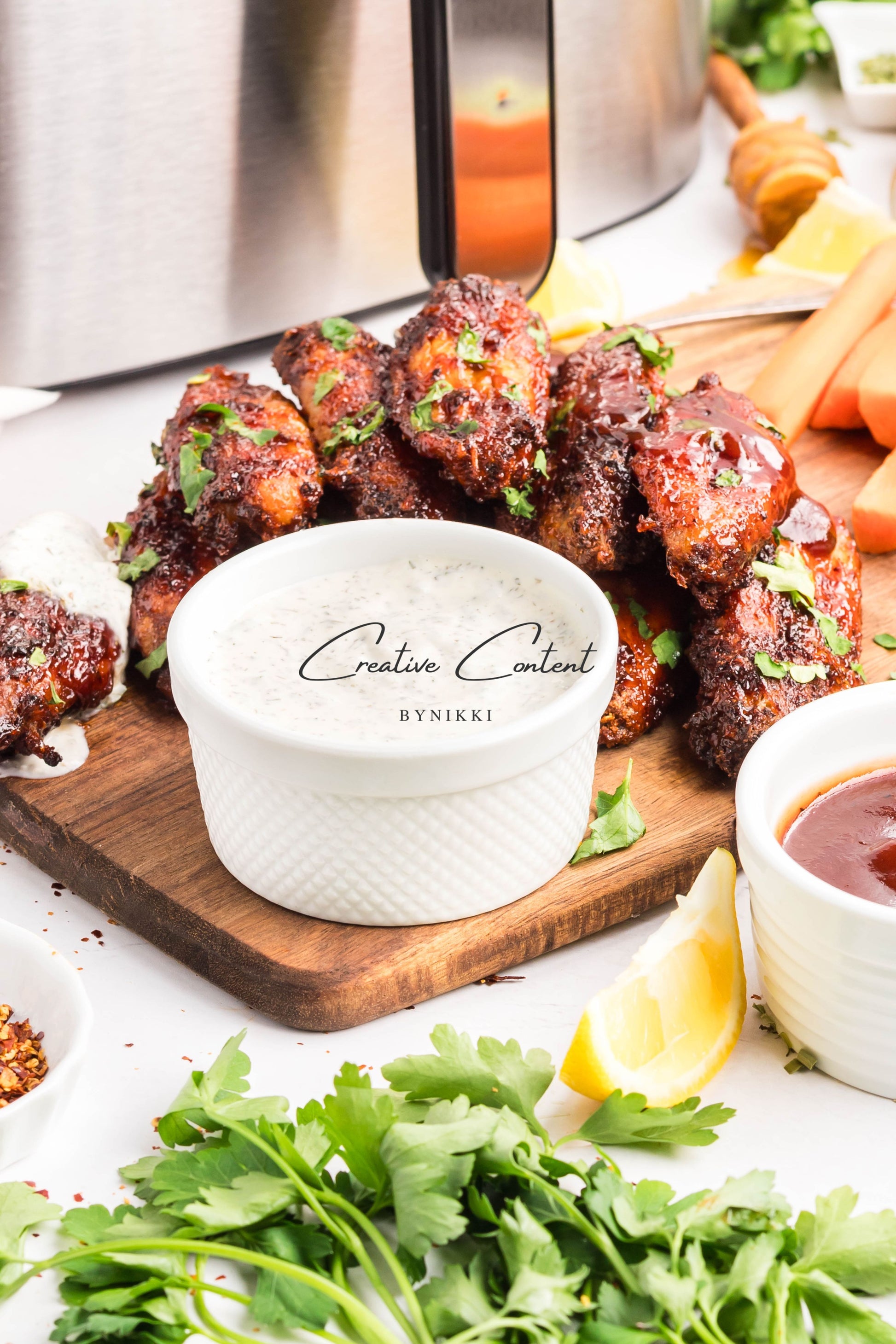 Air Fryer Honey BBQ Chicken Wings + Homemade Ranch Dressing - Exclusive