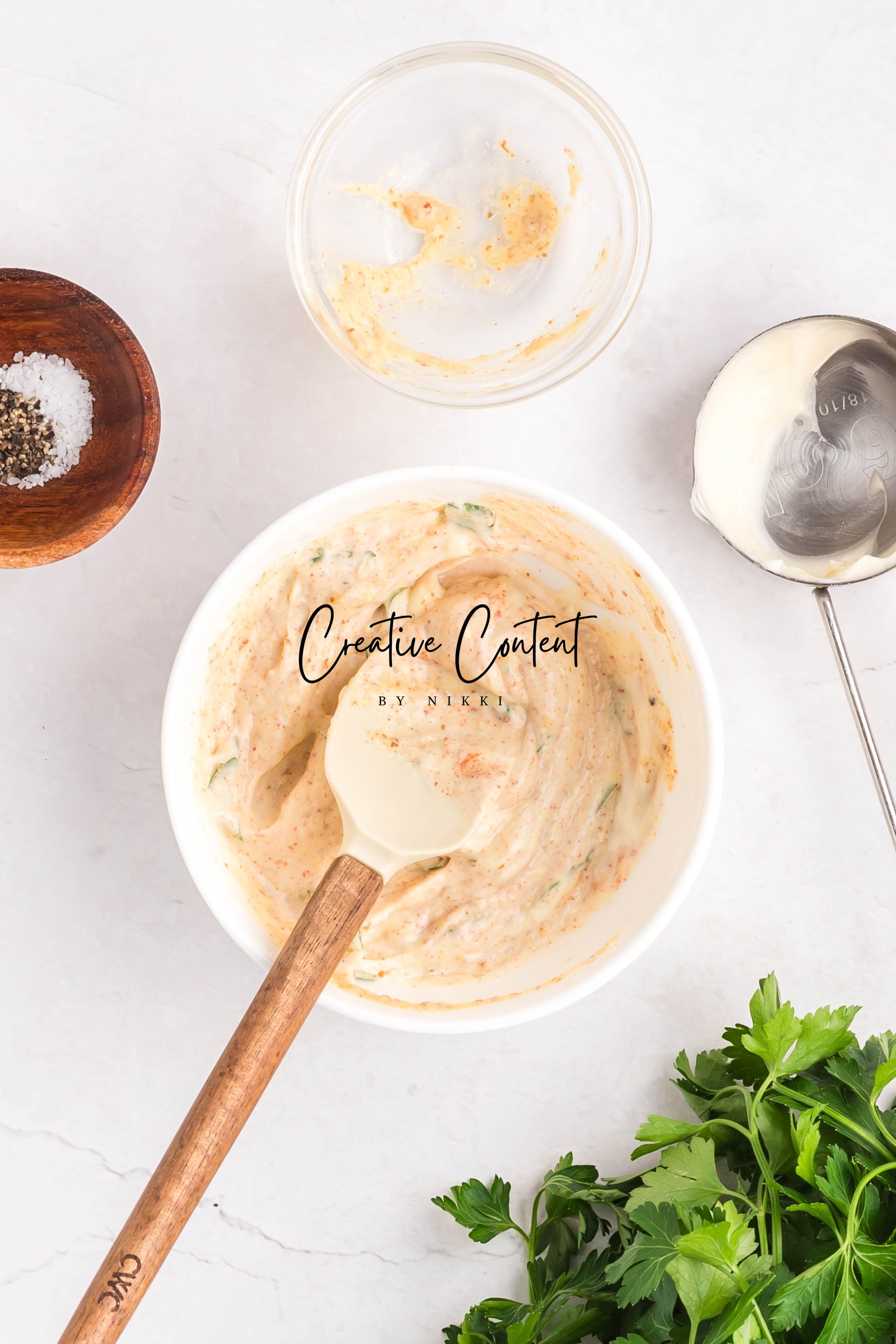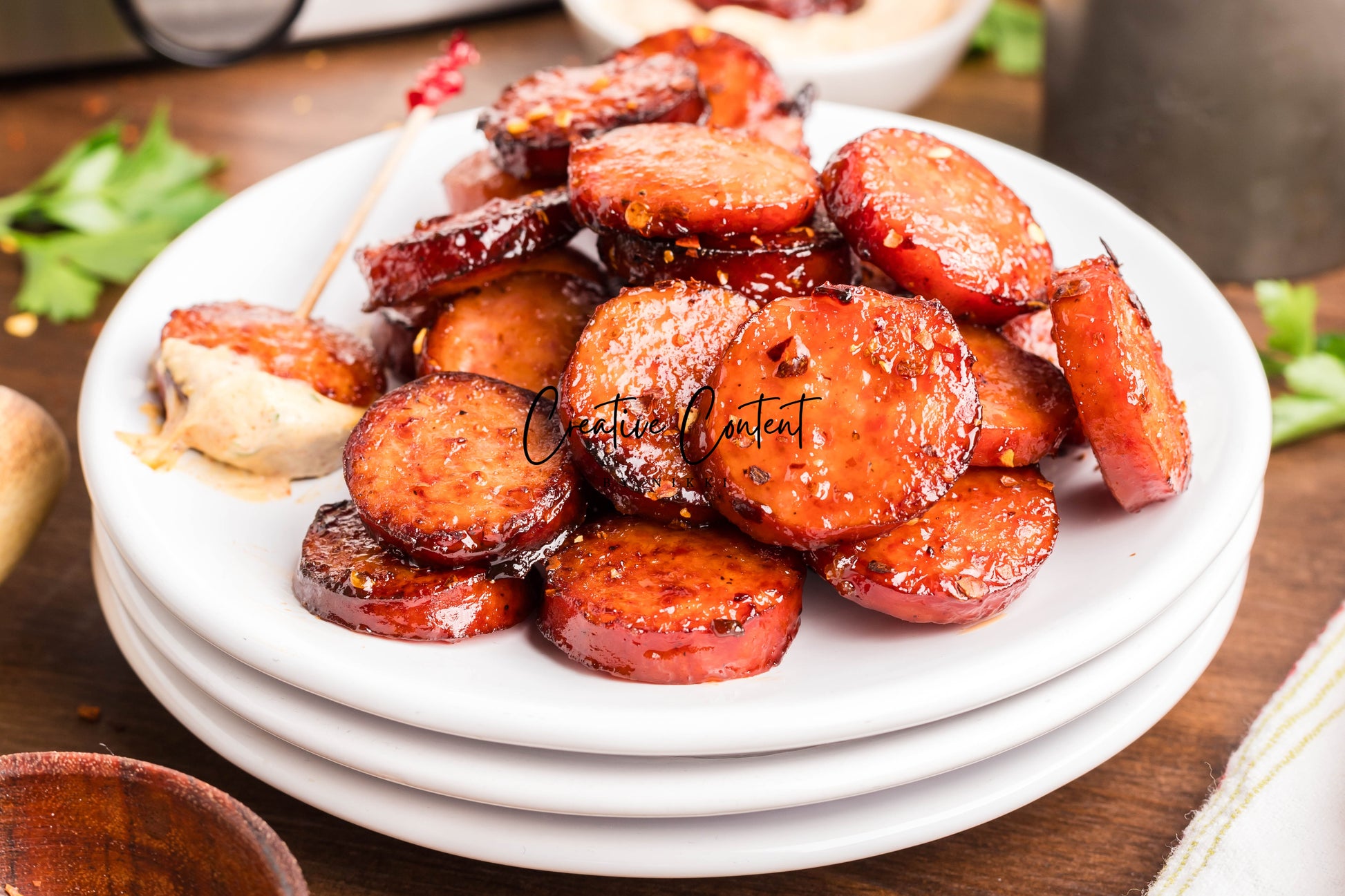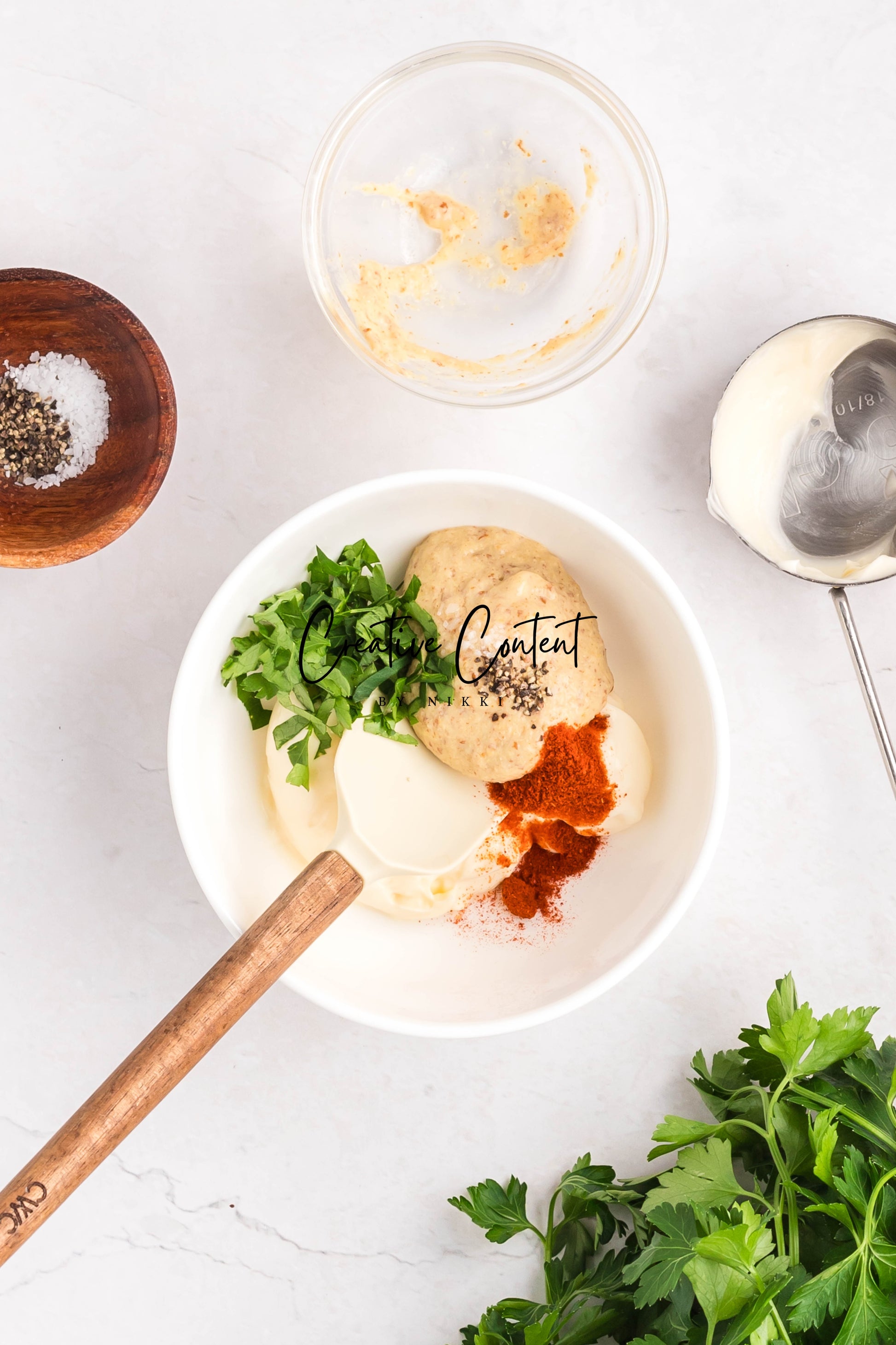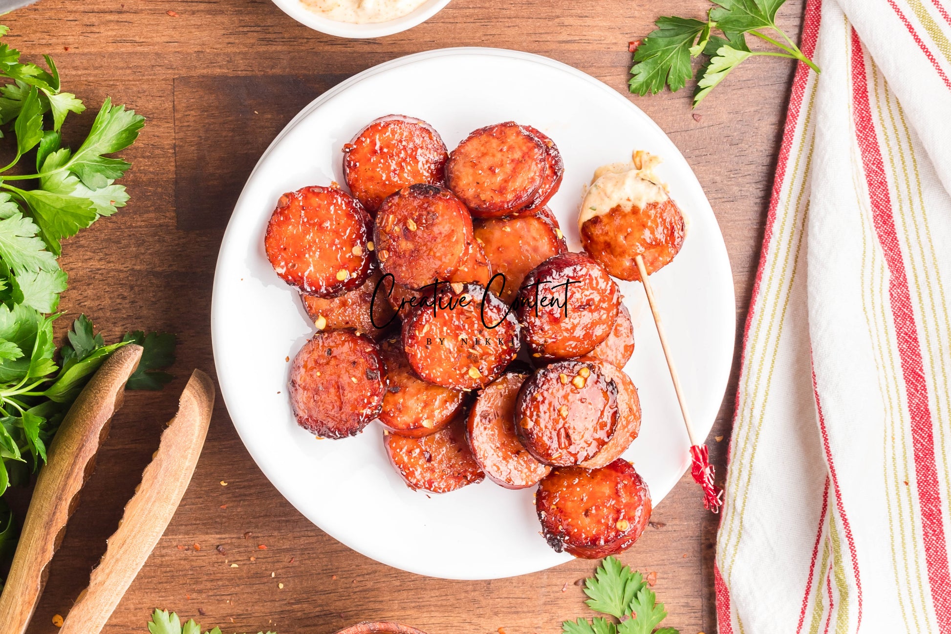 - Ingredients: kielbasa, avocado oil, barbecue sauce, light brown sugar, red pepper flakes, mayonnaise, Dijon mustard, parsley, paprika, salt, and pepper.