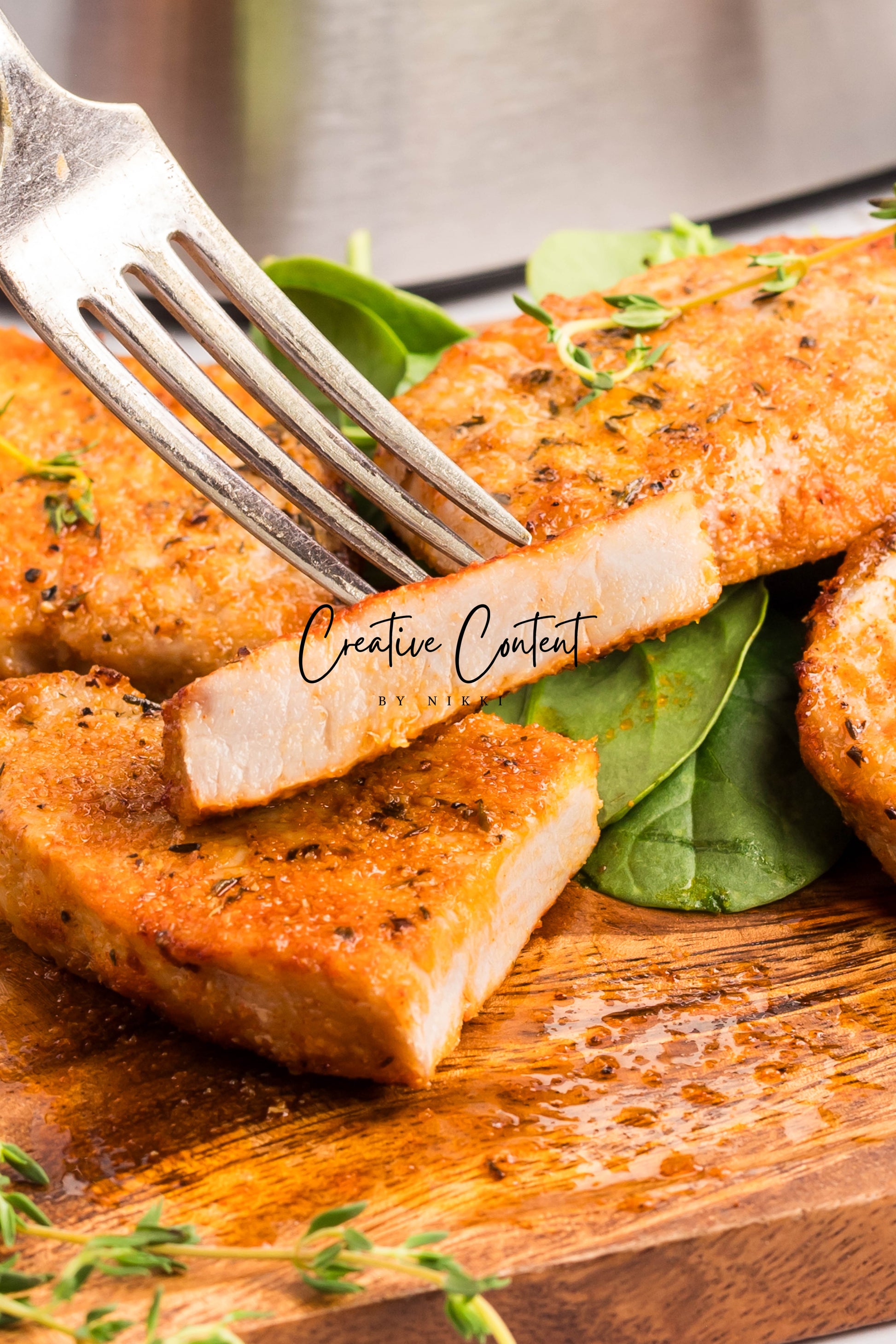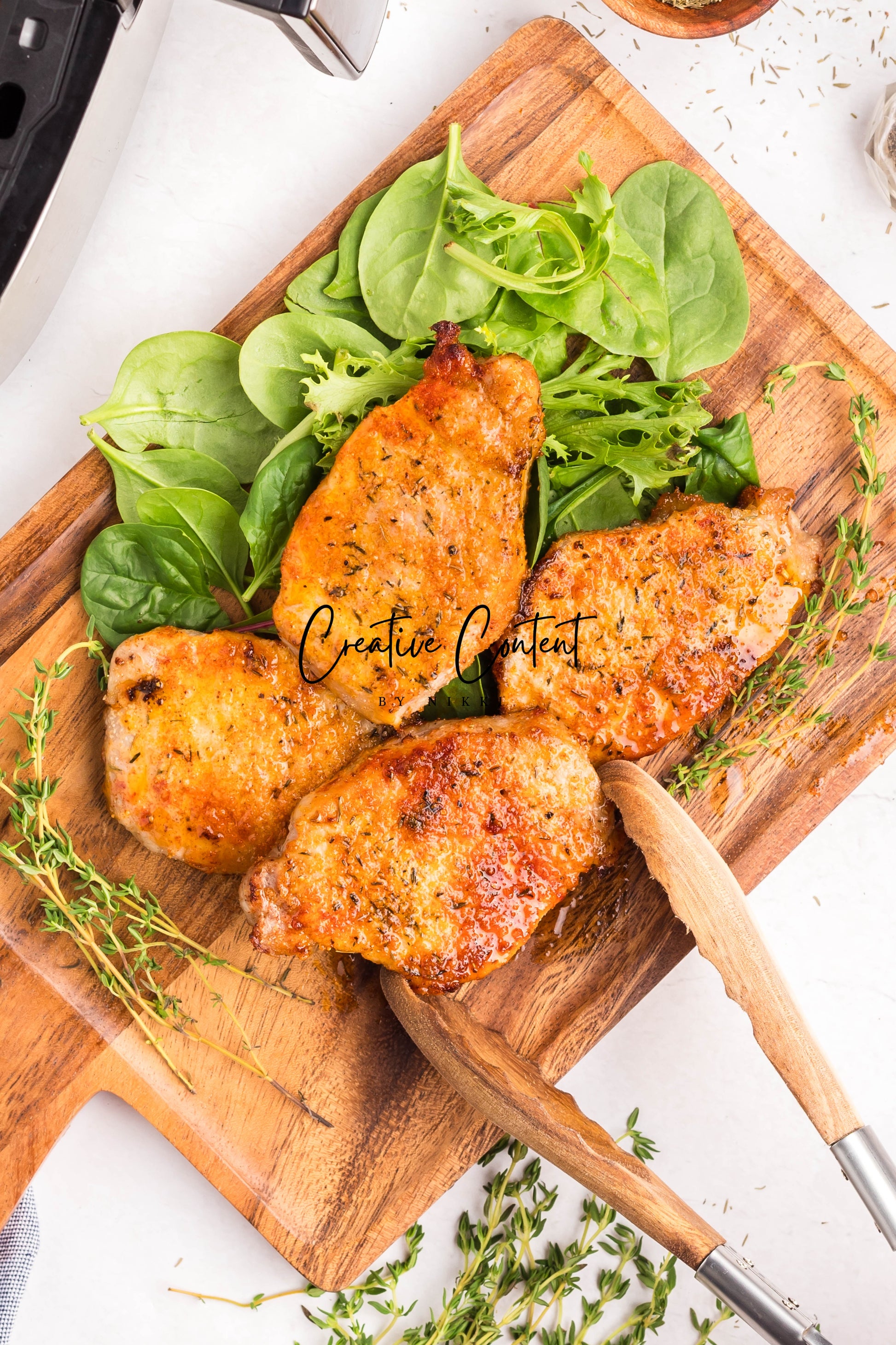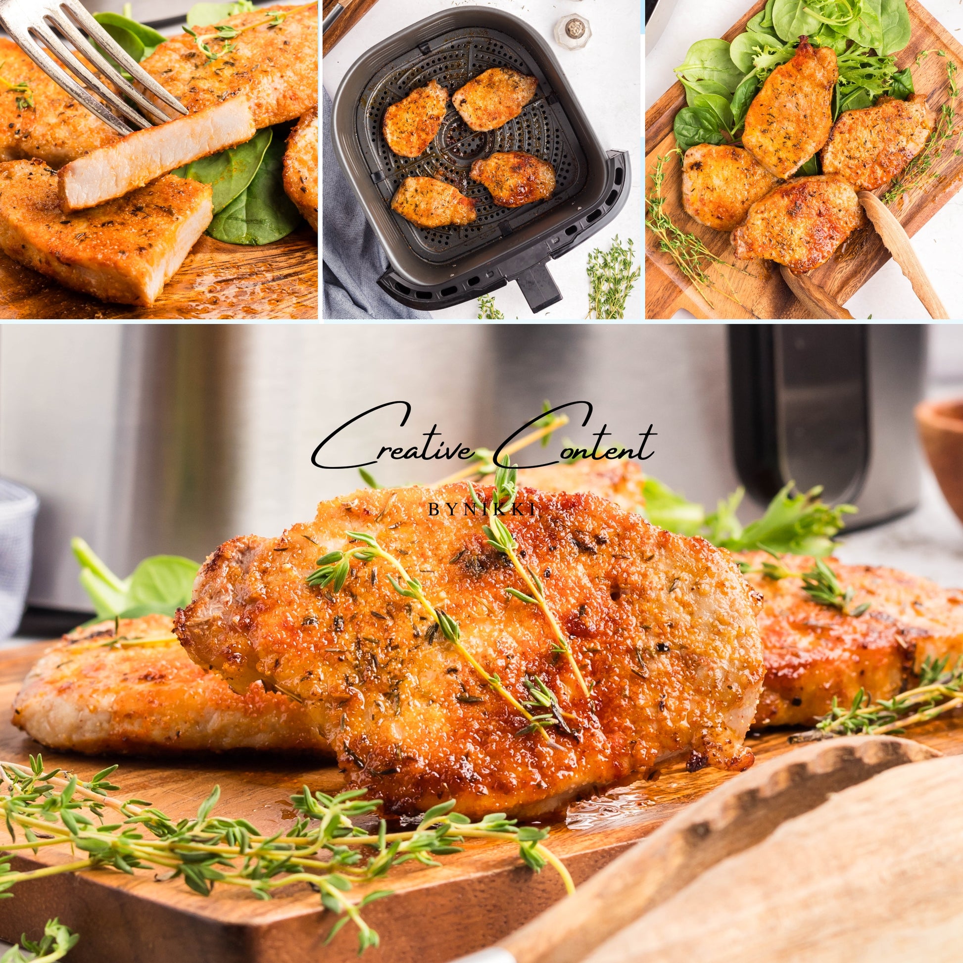 This air fryer pork chops recipe is juicy and packed with flavor. The pork chops are perfectly seasoned with a blend of spices that complement the natural taste of the meat. Using the air fryer ensures a crispy exterior while keeping the inside tender and moist.