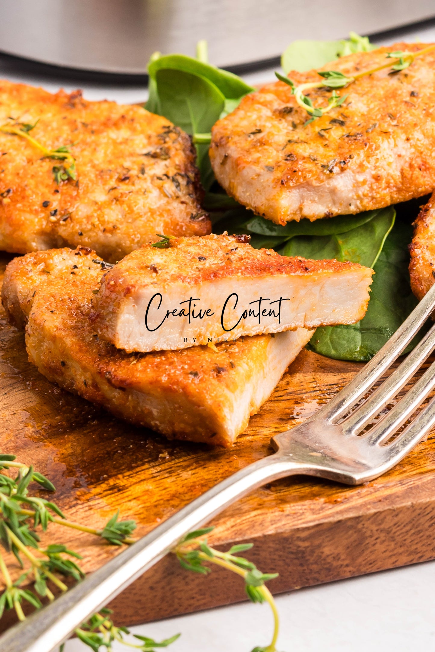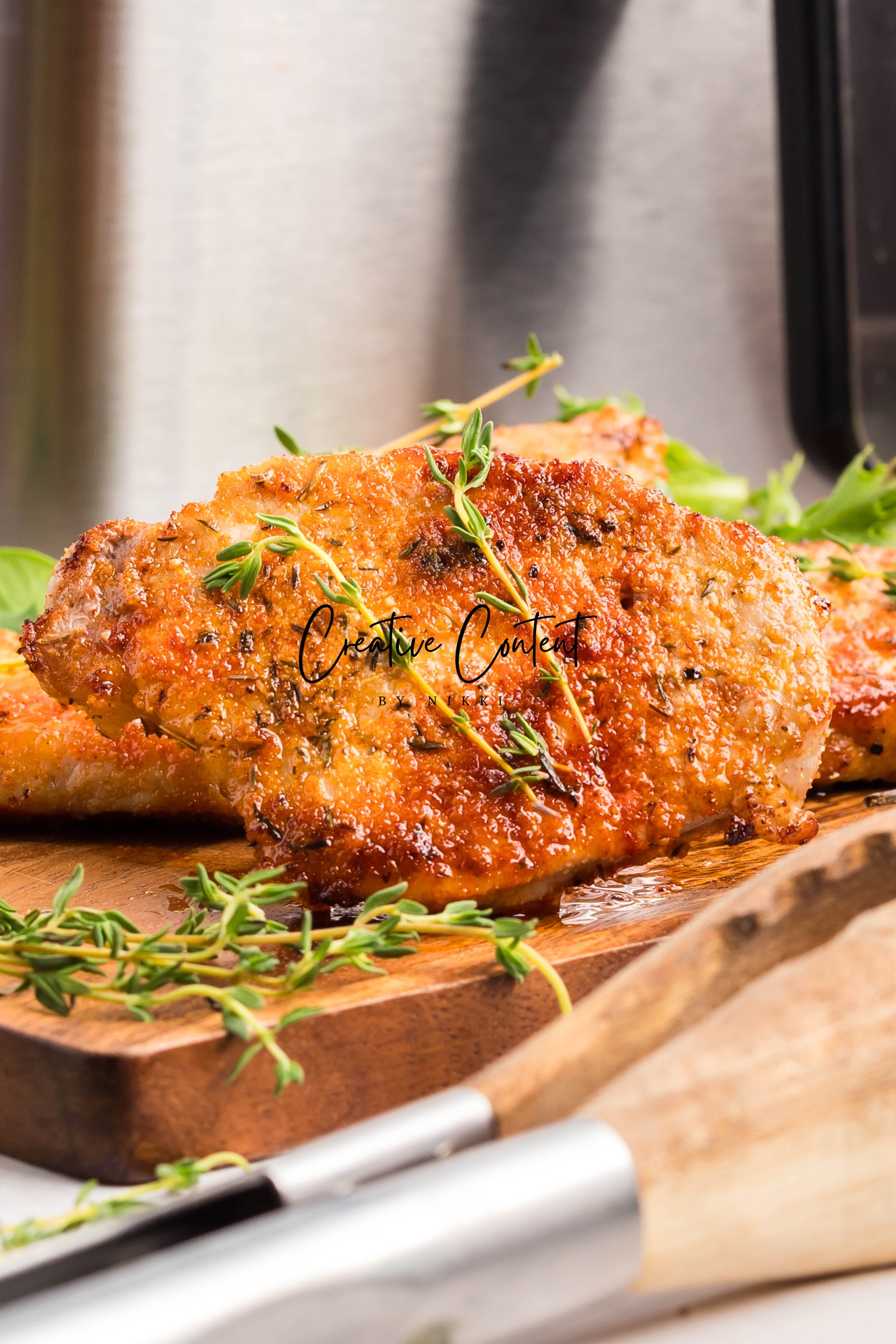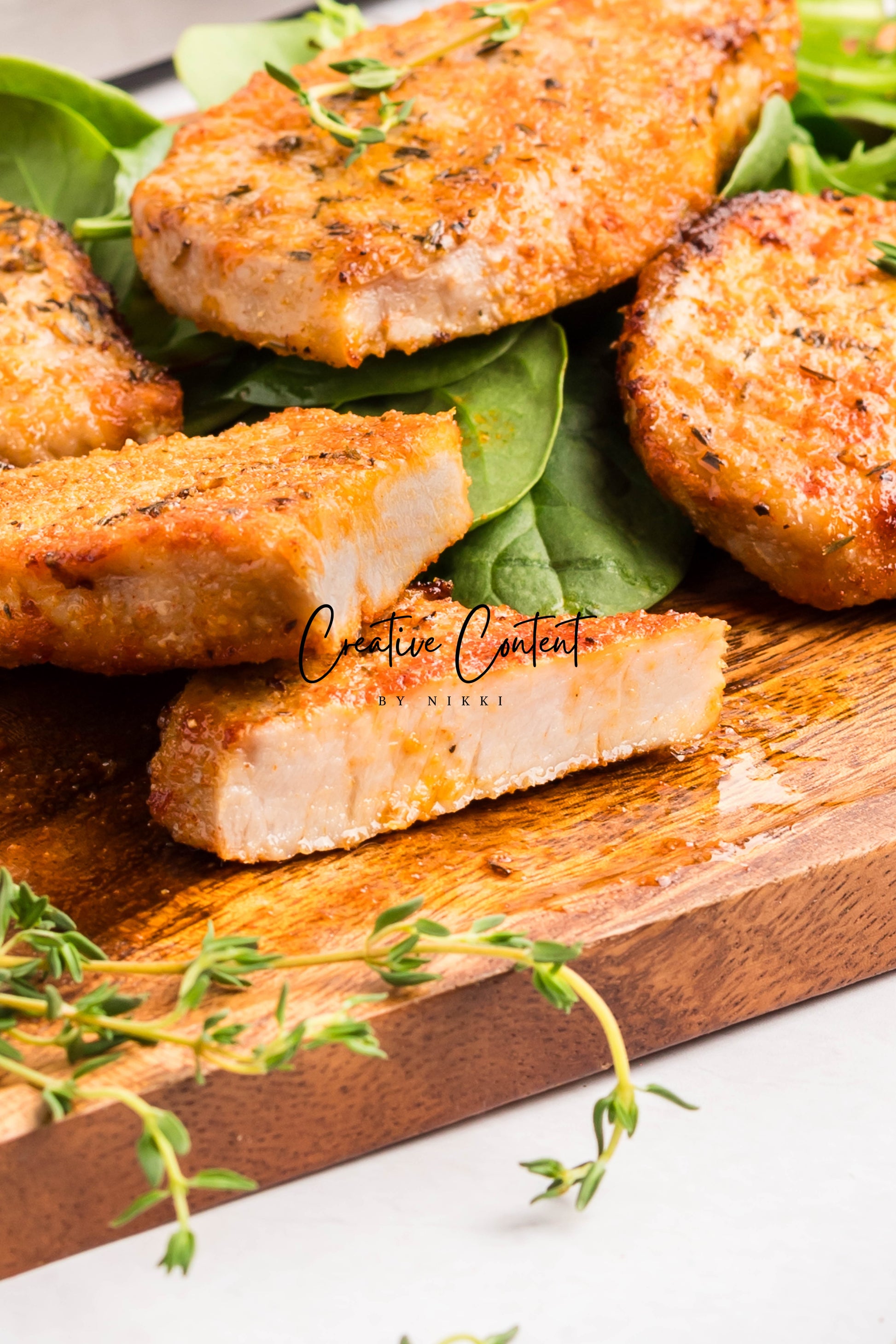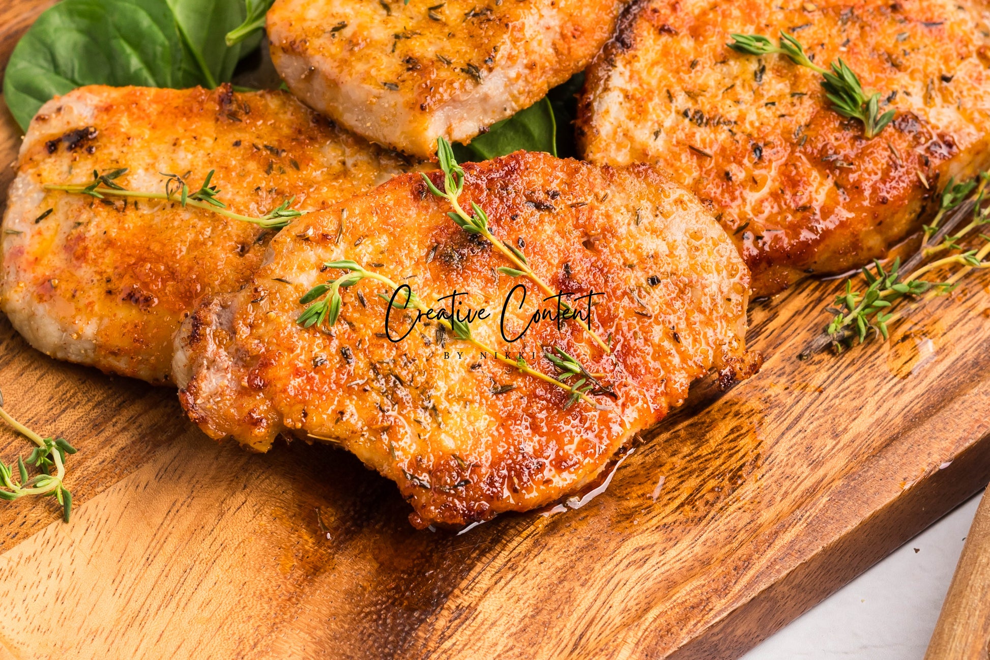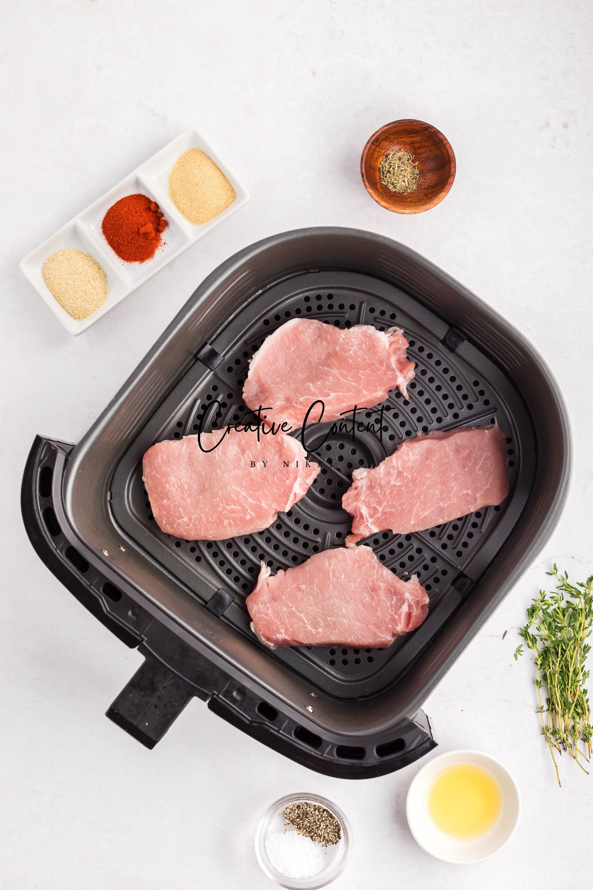 - Ingredients: Pork chops, avocado oil, paprika, onion powder, garlic powder, dried thyme, coarse kosher salt, black pepper