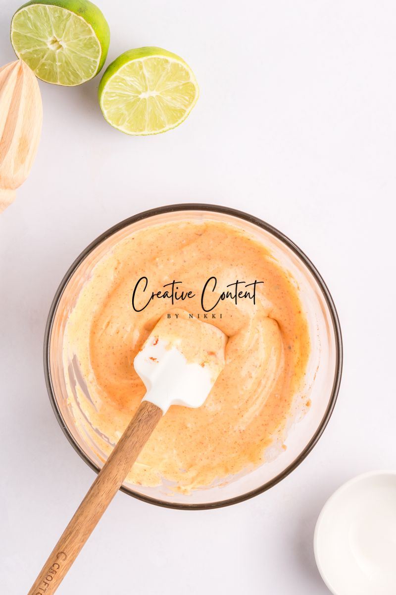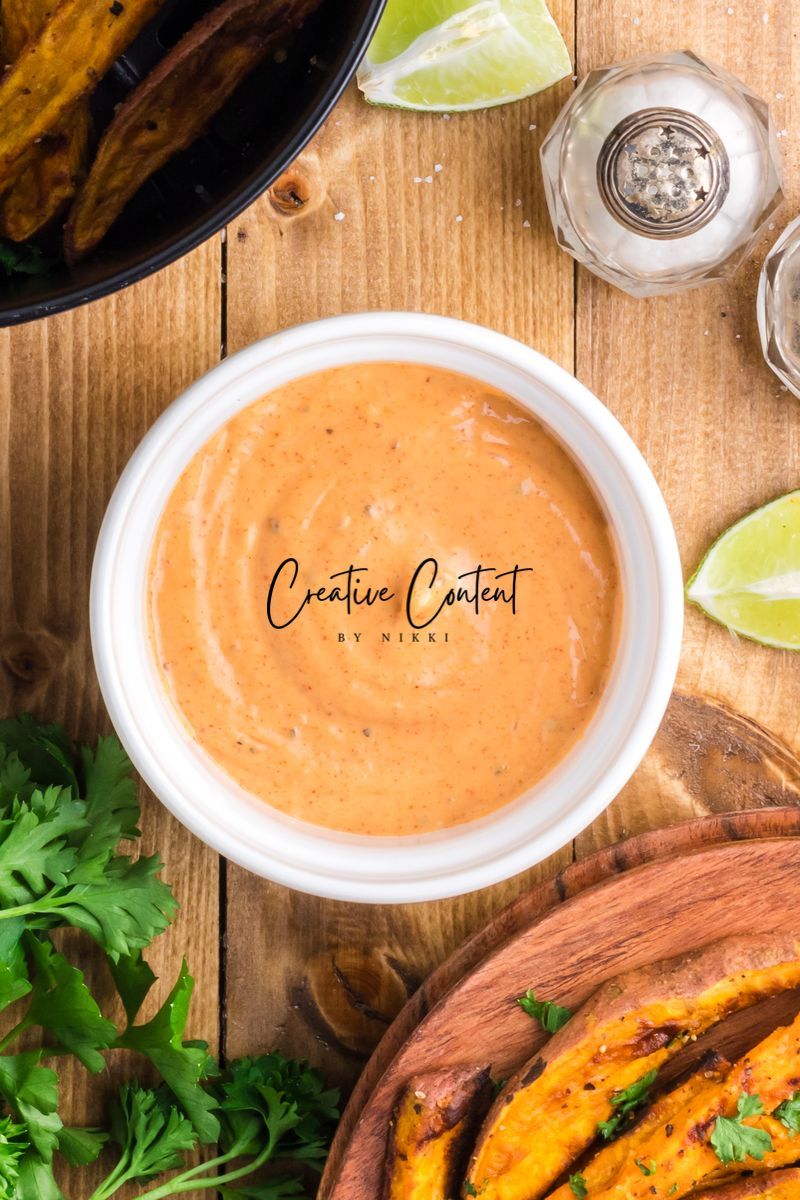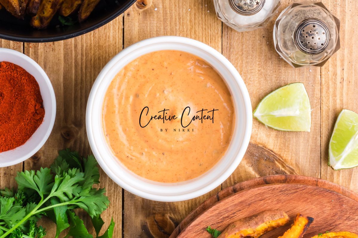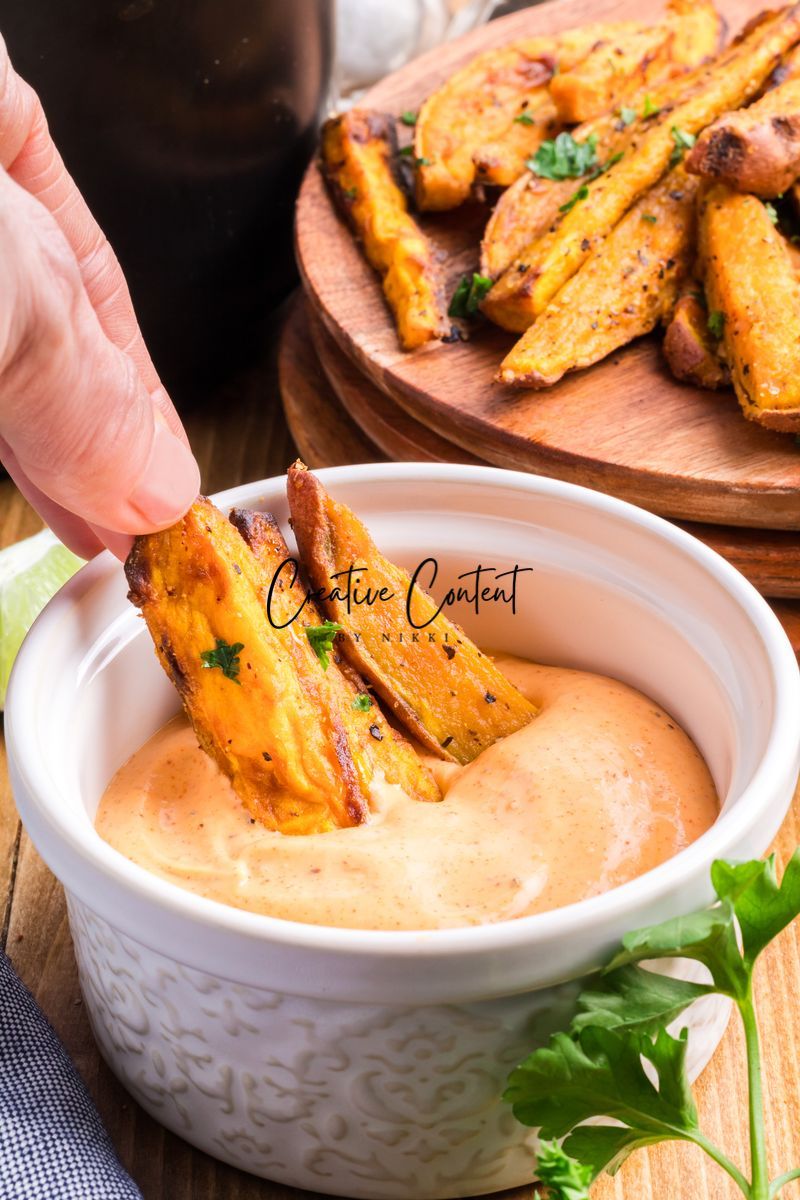 - Featured Ingredients; mayonnaise, ketchup, lime juice, hot sauce, chili powder, paprika, garlic powder, garlic cloves, lemon juice, dried dill, sweet potatoes, avocado oil, cornstarch, onion powder, red pepper flakes, and parsley.