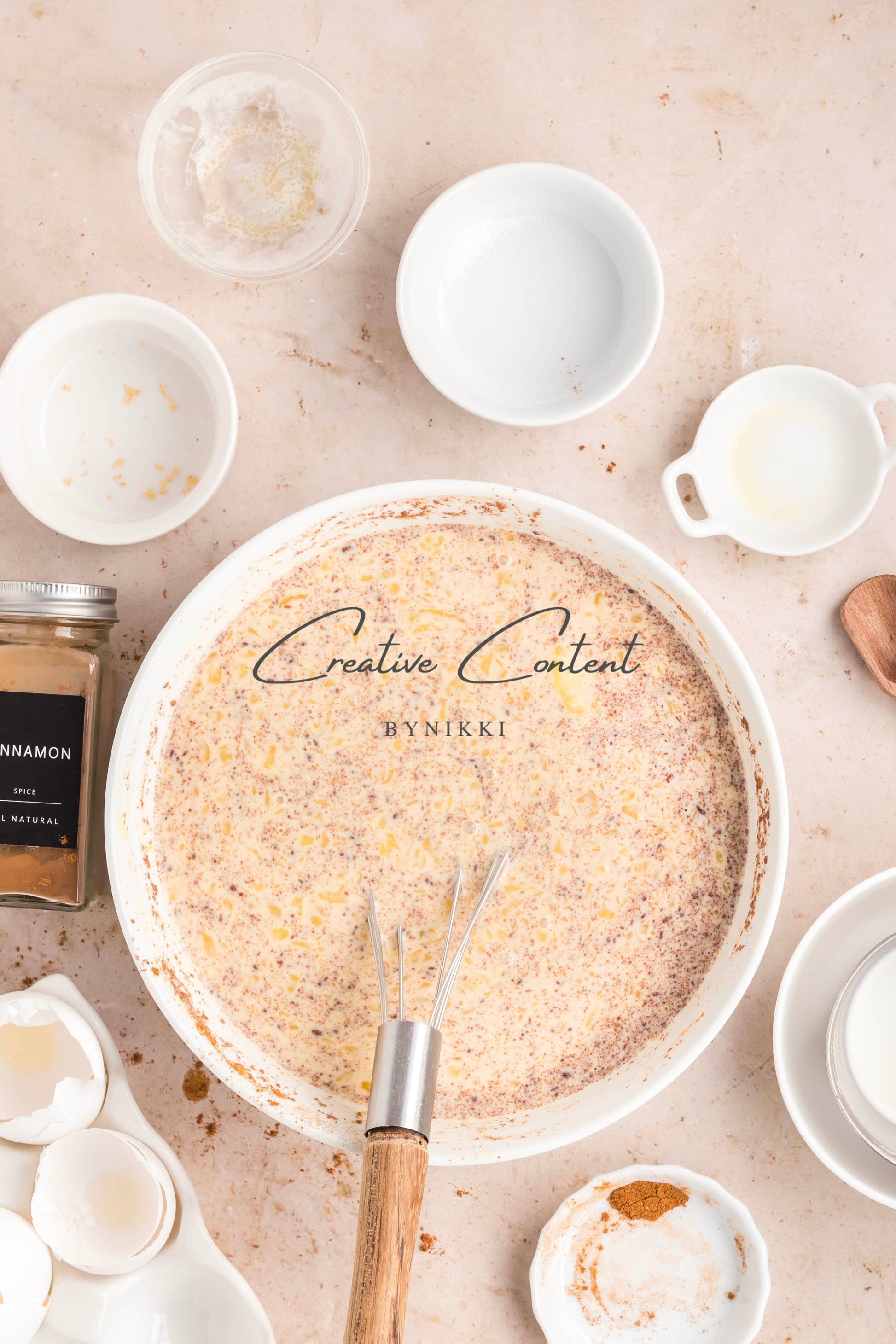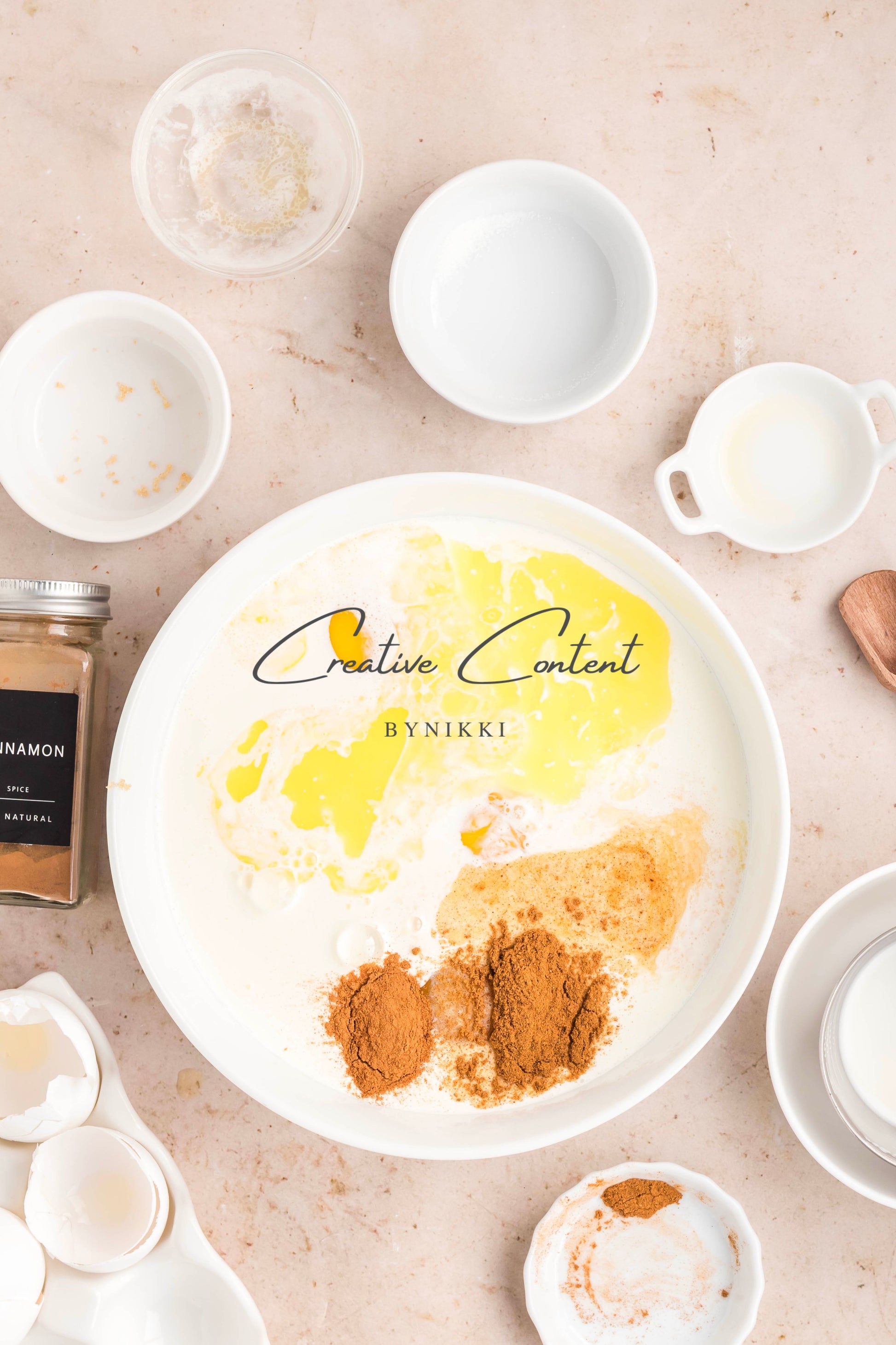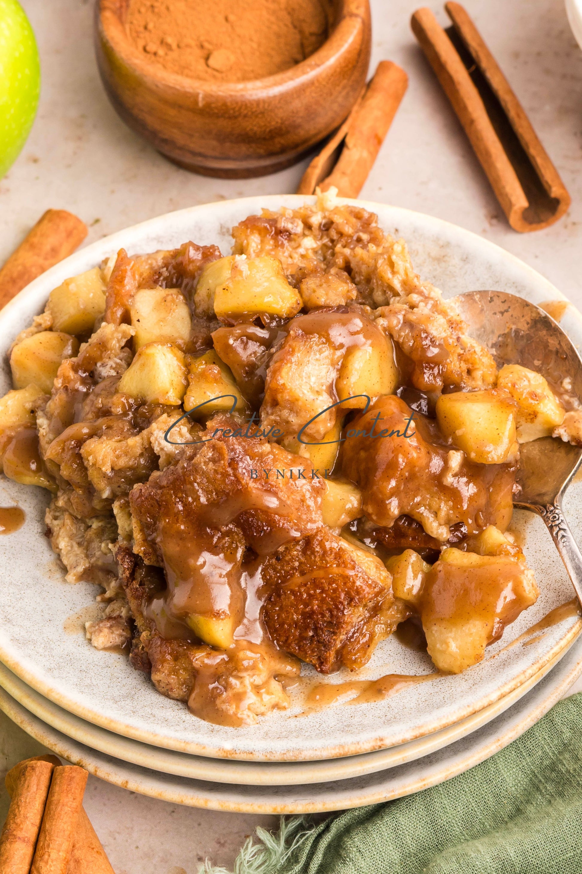 - Ingredients: cinnamon brioche bread, Granny Smith apples, unsalted butter, all-purpose flour, light brown sugar, water, apple pie spice, milk, heavy cream, granulated sugar, vanilla extract, cinnamon, eggs
