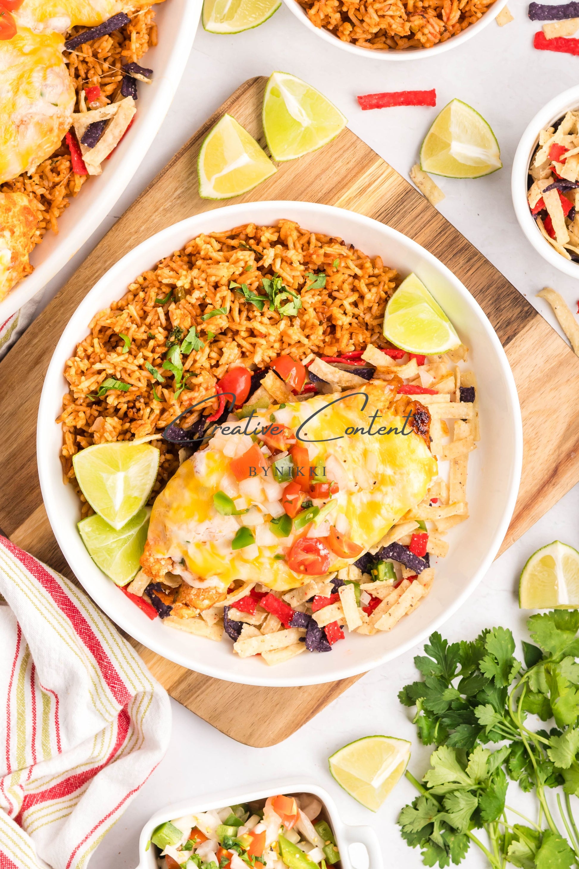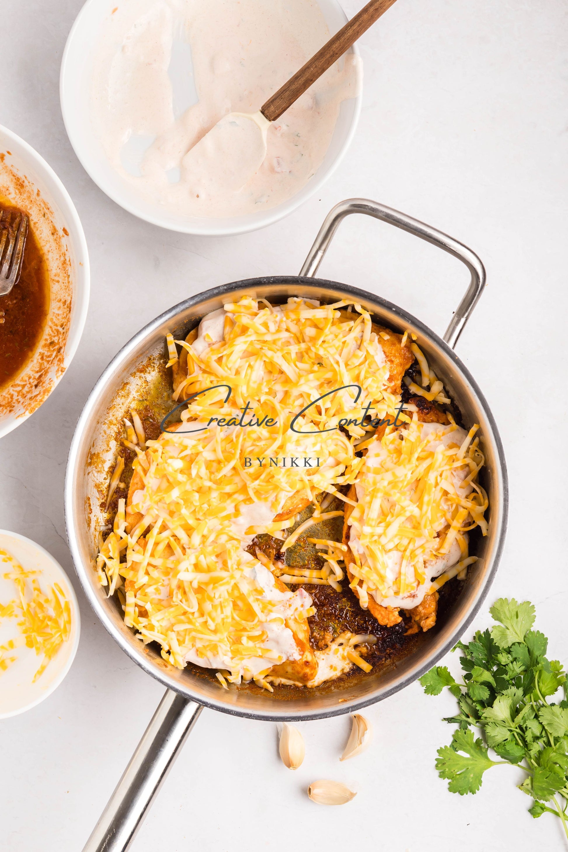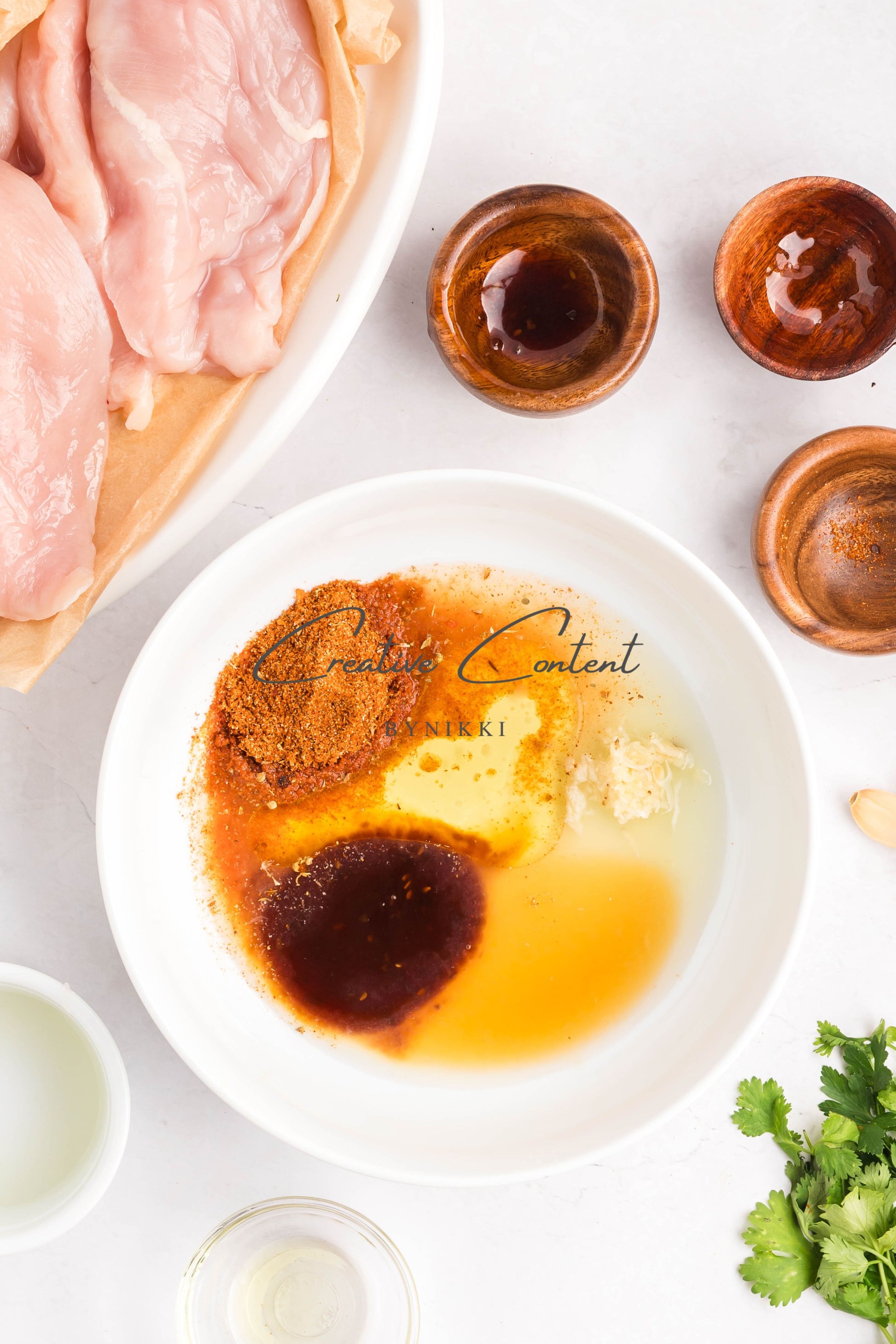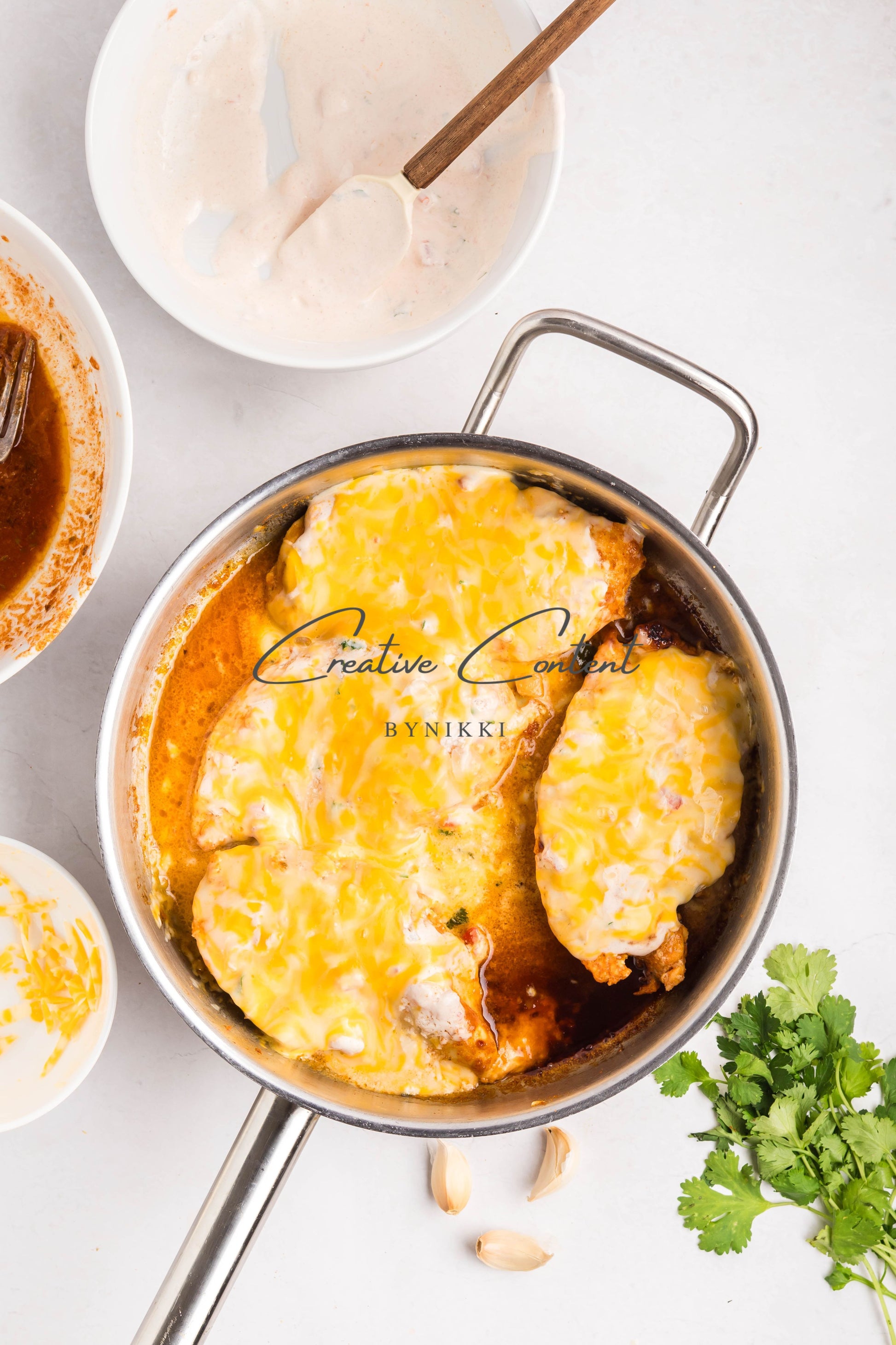 - Ingredients: Chicken breasts, halved, avocado oil, lime juice, garlic, teriyaki sauce, honey, taco seasoning, kosher salt, mayonnaise, salsa, sour cream, cilantro, lime juice, cumin, kosher salt, Colby Jack cheese