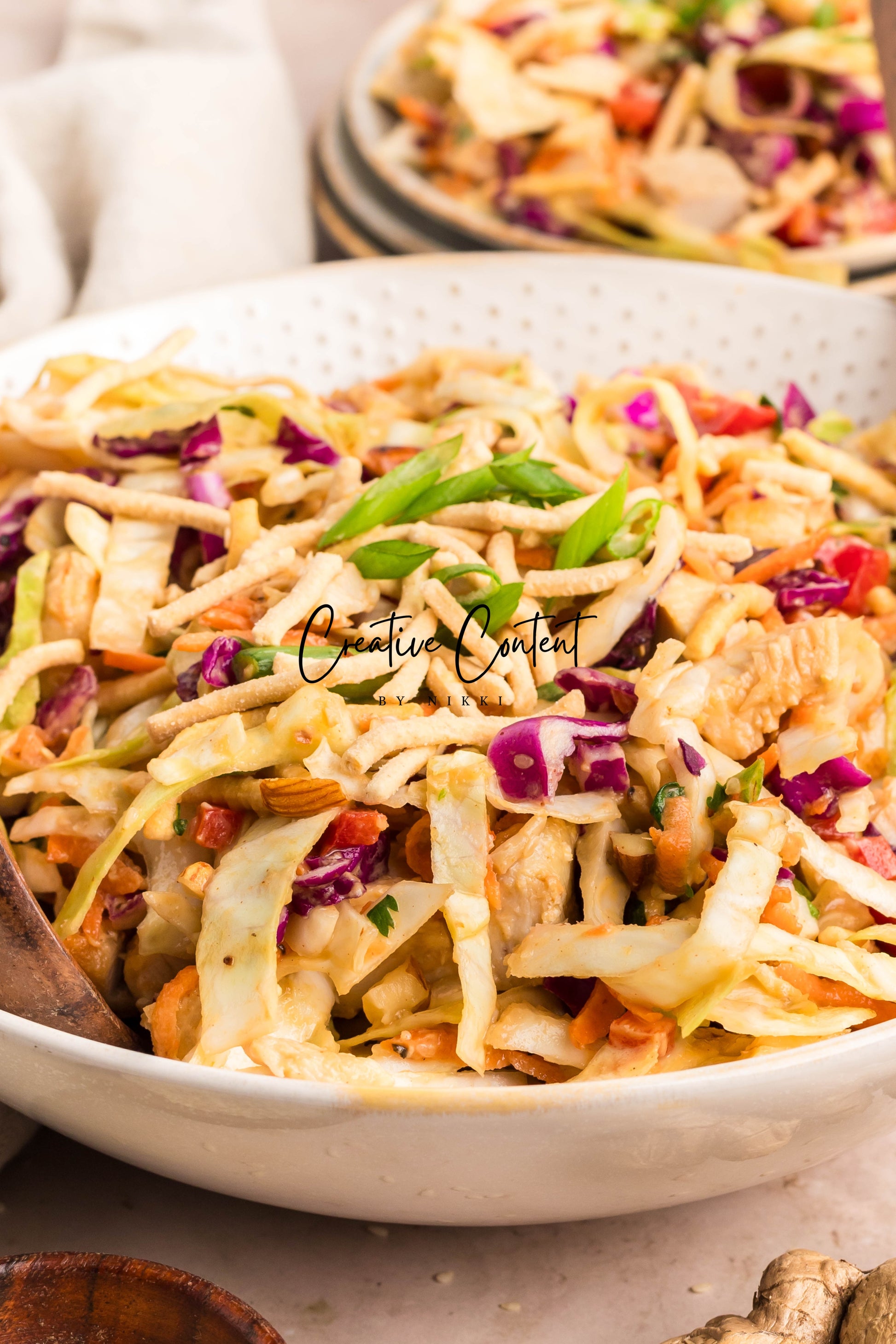 This Asian Chicken Chopped Salad is packed with bold flavors and fresh ingredients. The combination of tender chicken, crisp vegetables, and a tangy dressing creates a balanced and satisfying dish. A mix of textures from crunchy almonds and chow mein adds depth to each bite.
