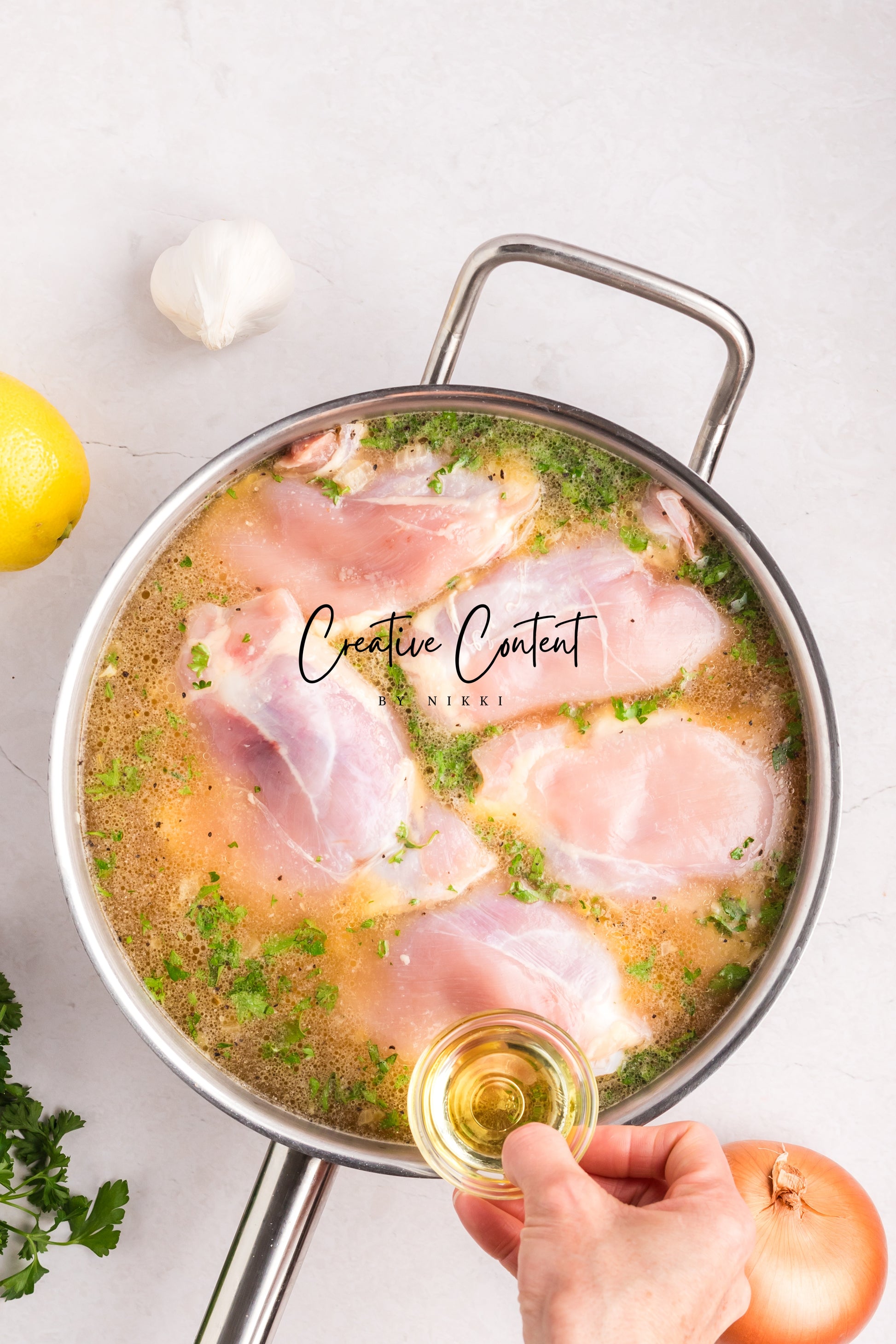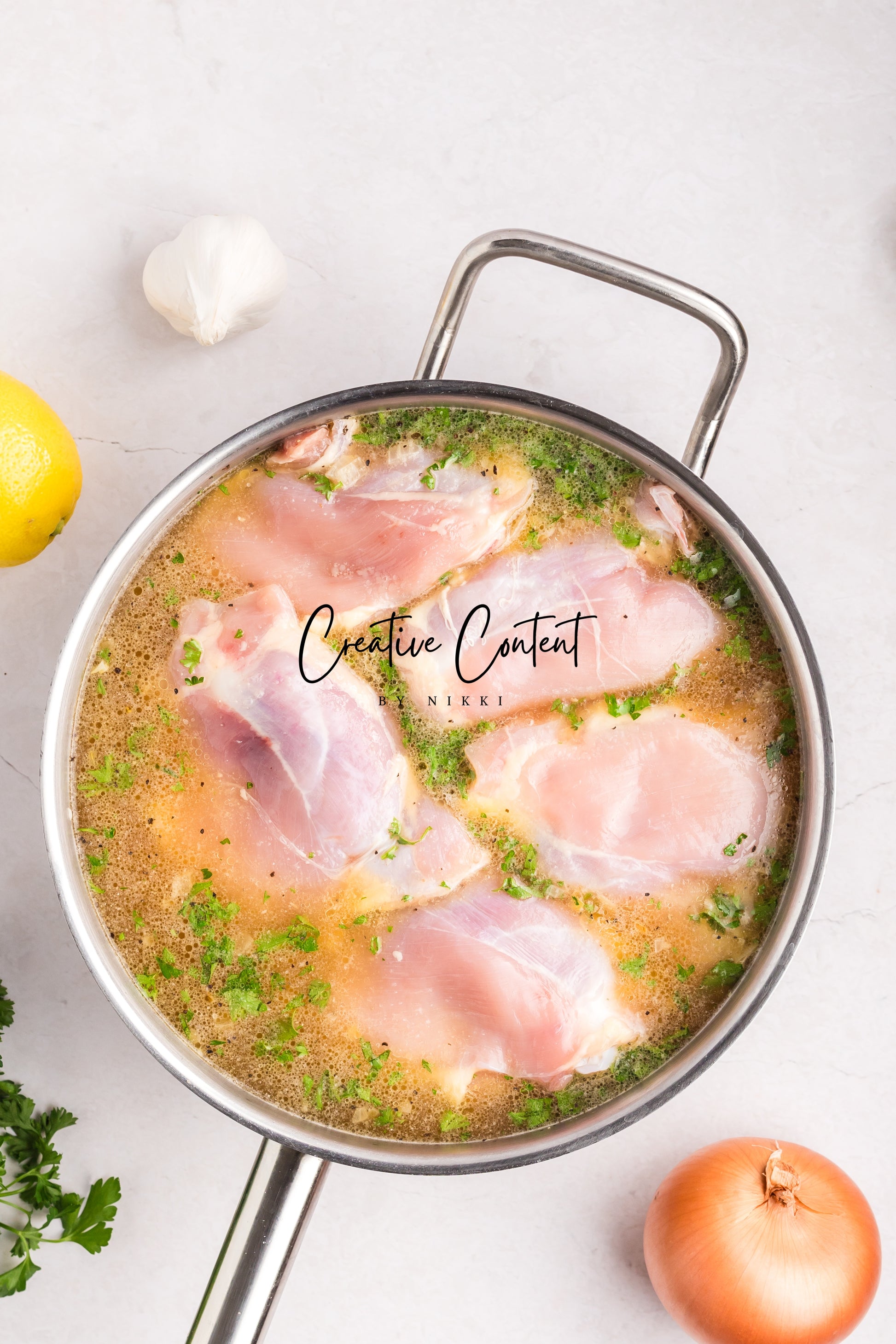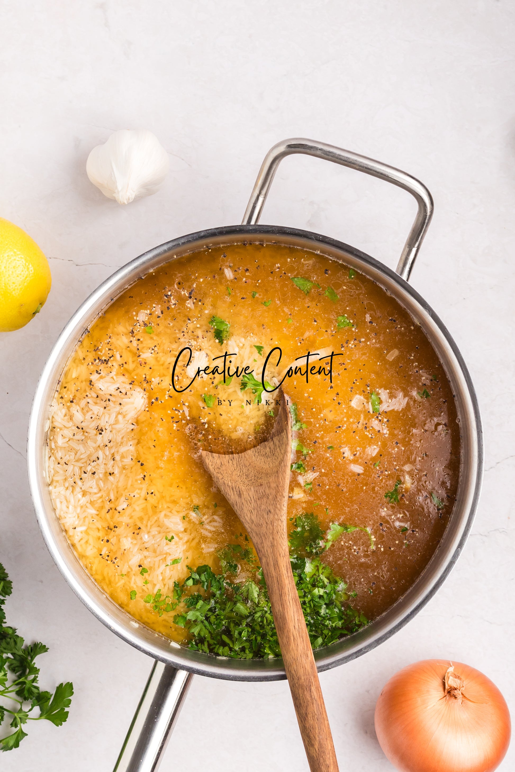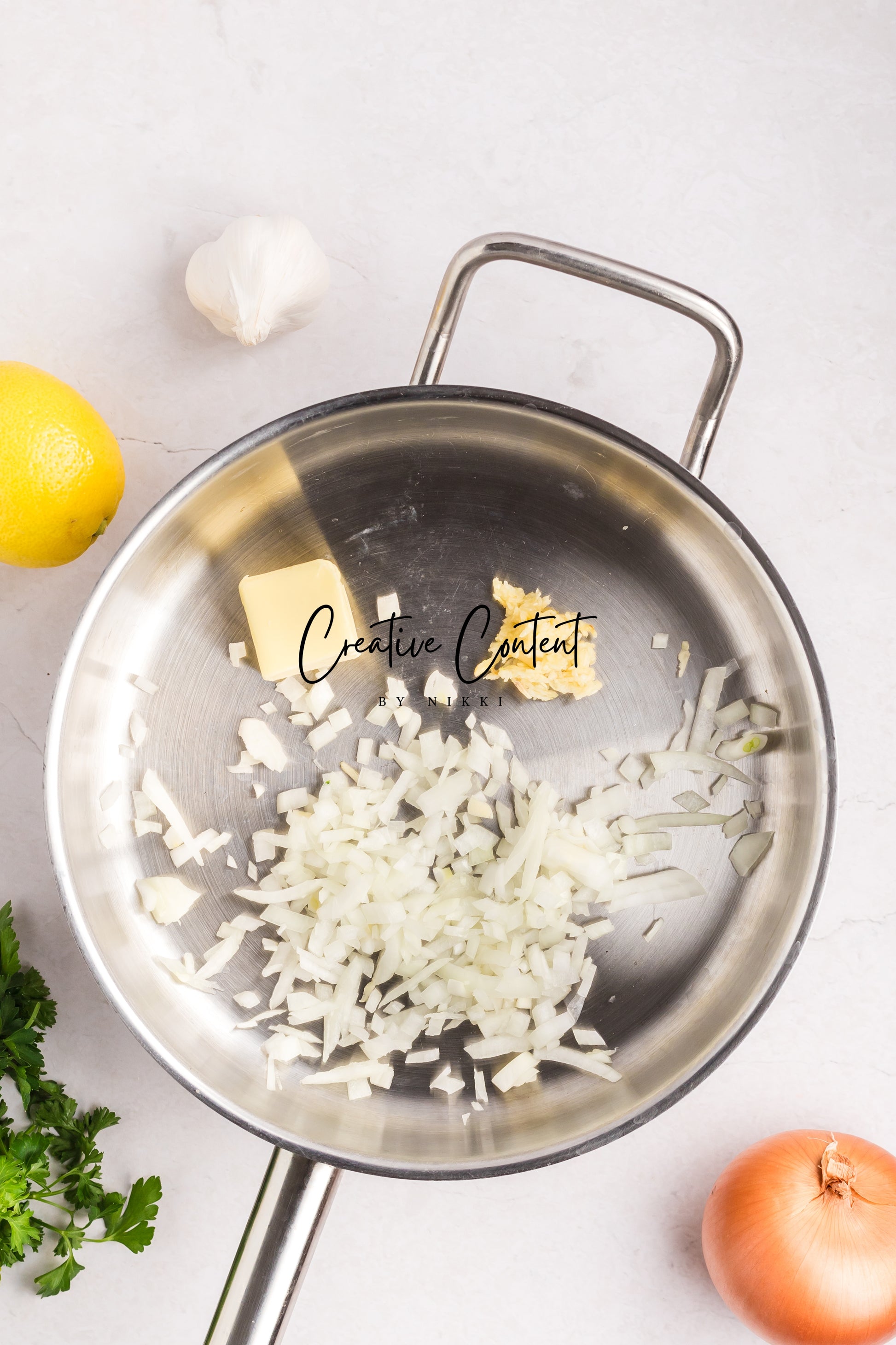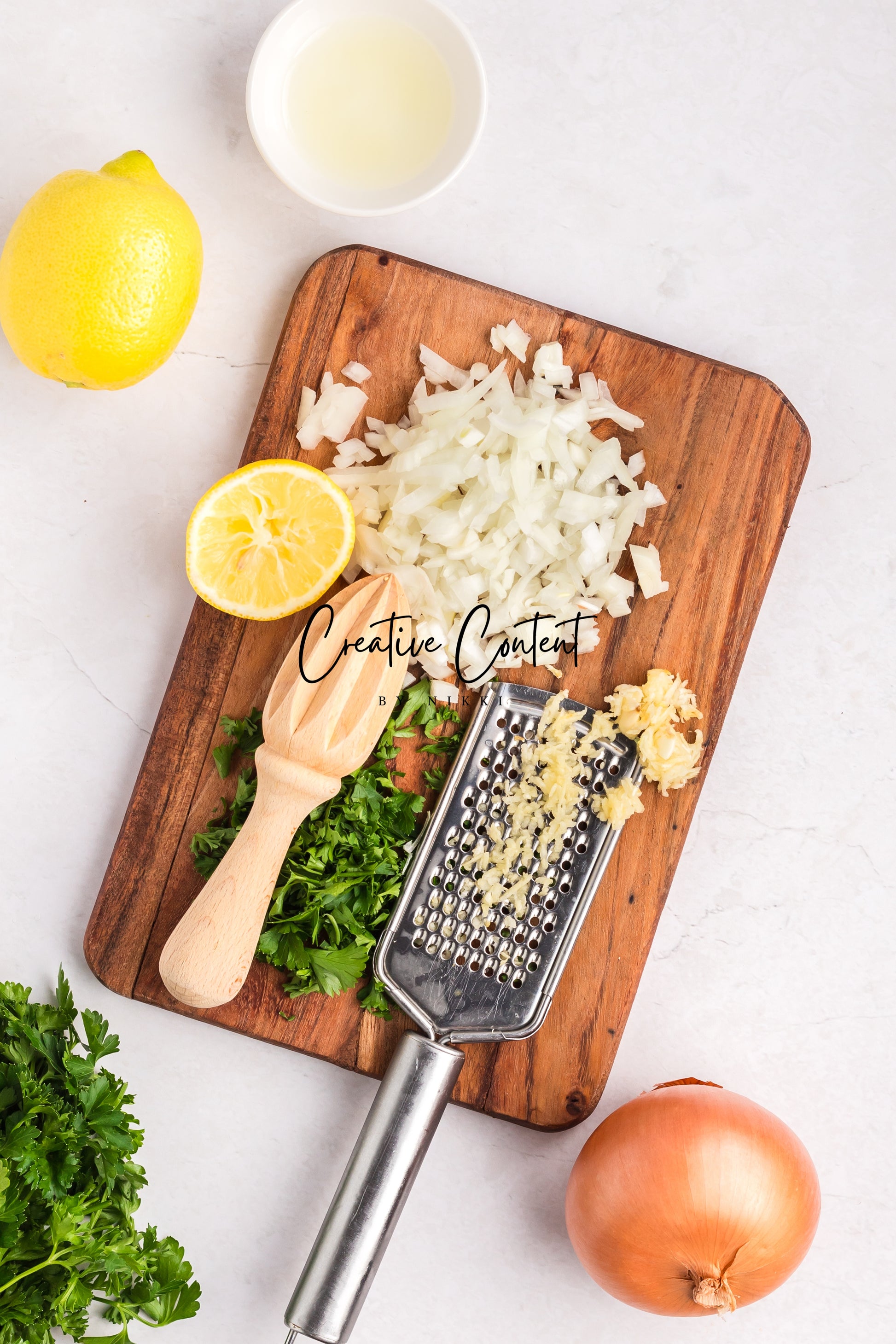 - Featured Ingredients; onion, garlic cloves, butter, white rice, low sodium chicken stock, parsley, lemon juice, garlic powder, onion powder, coarse kosher salt, black pepper, bone-in chicken thighs, avocado oil, paprika, dried thyme, and oregano.