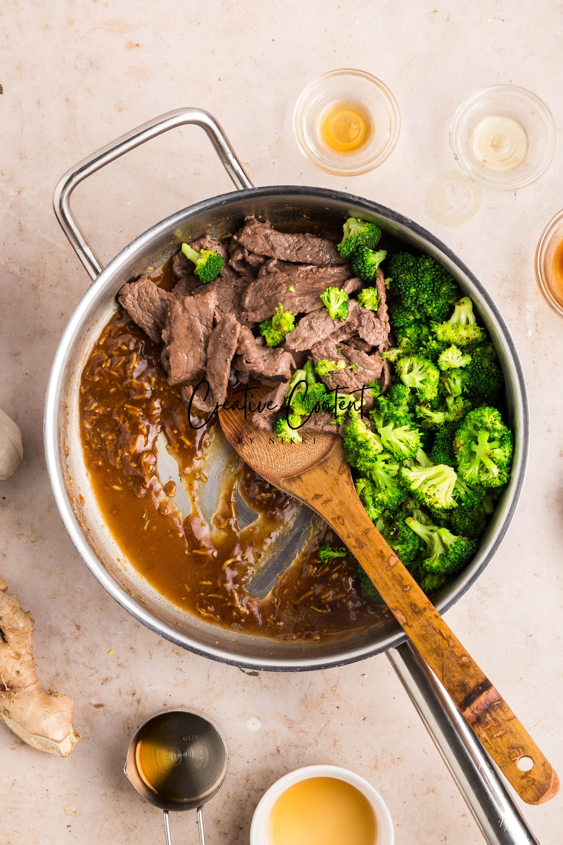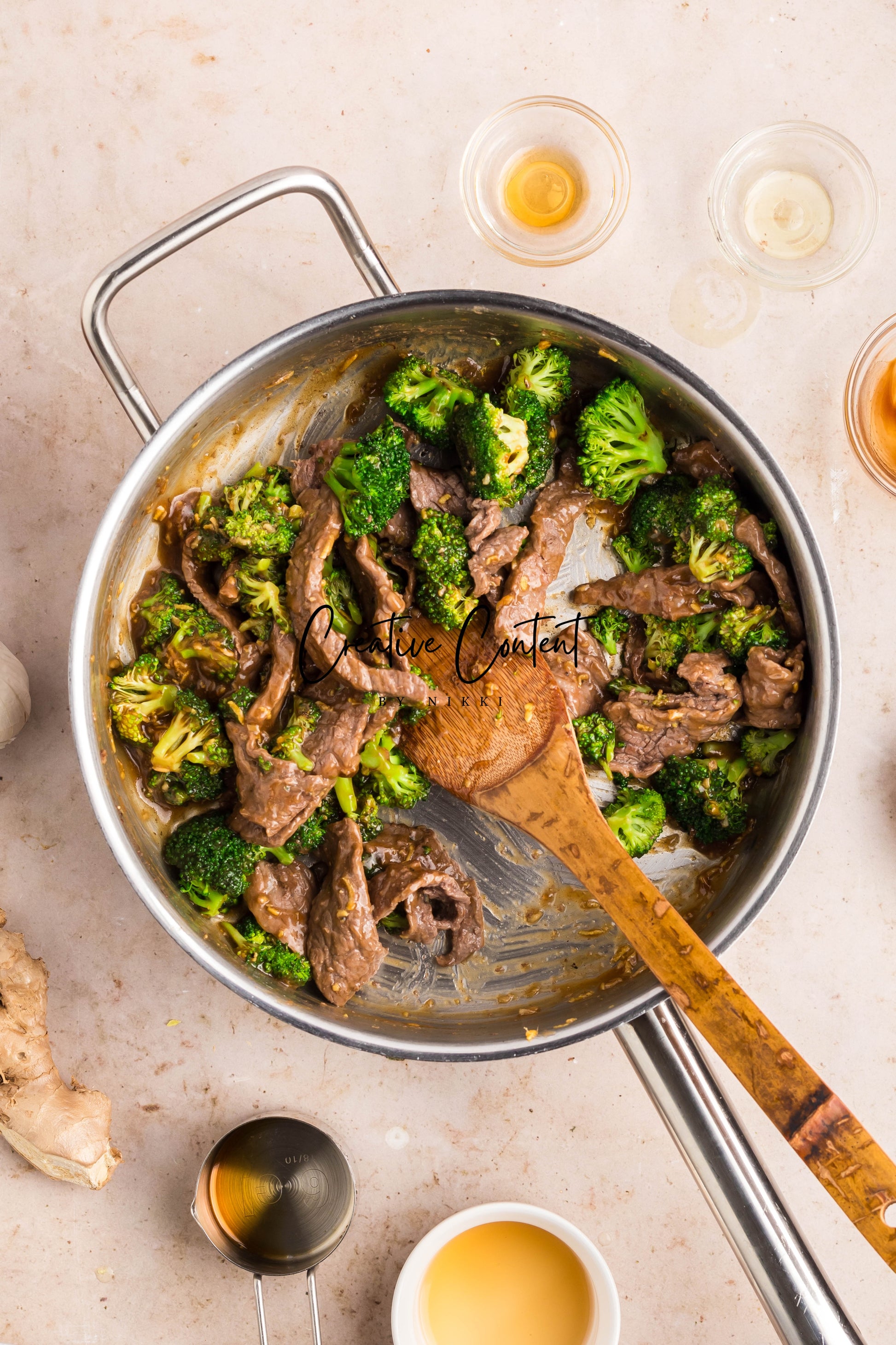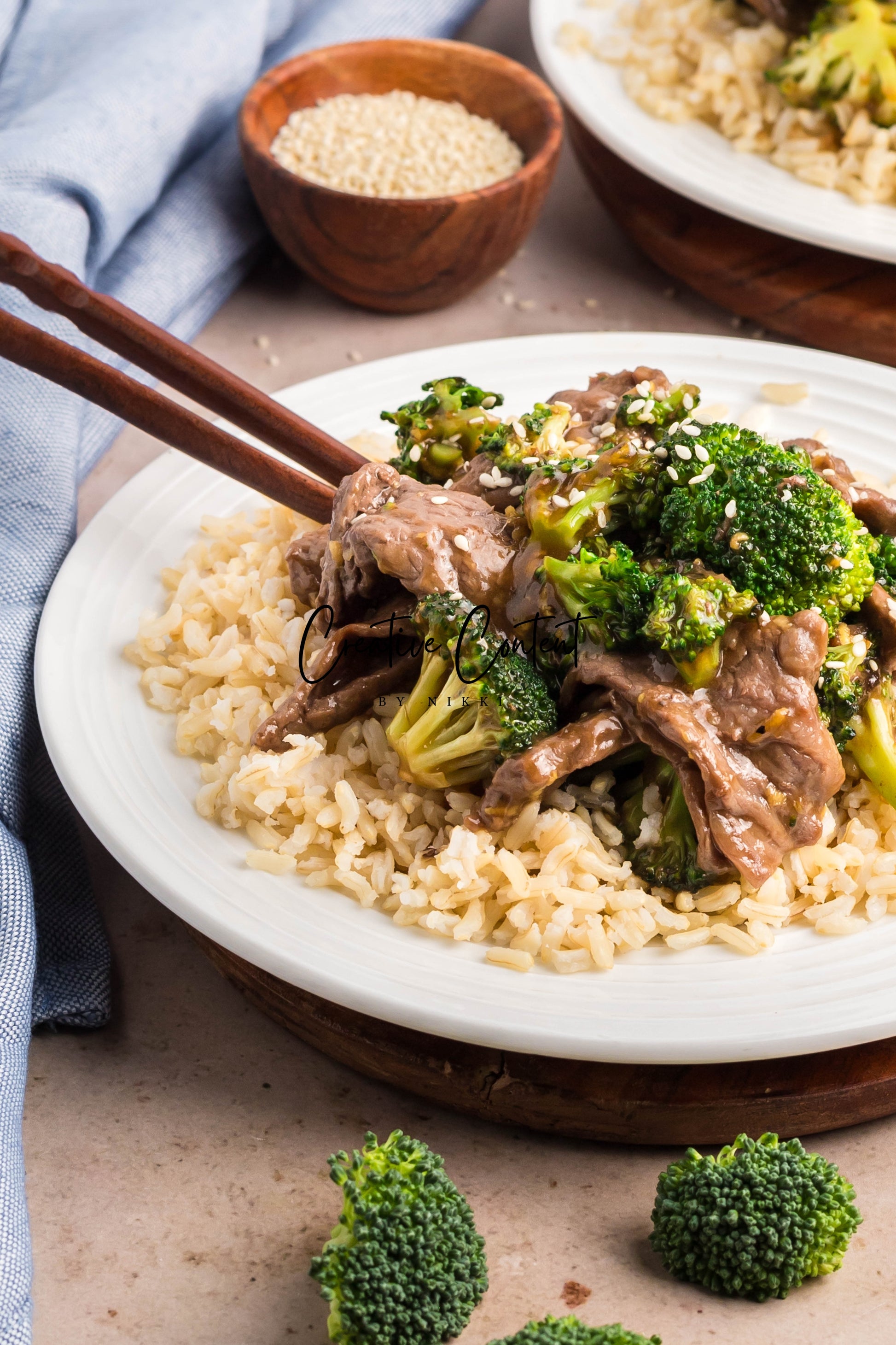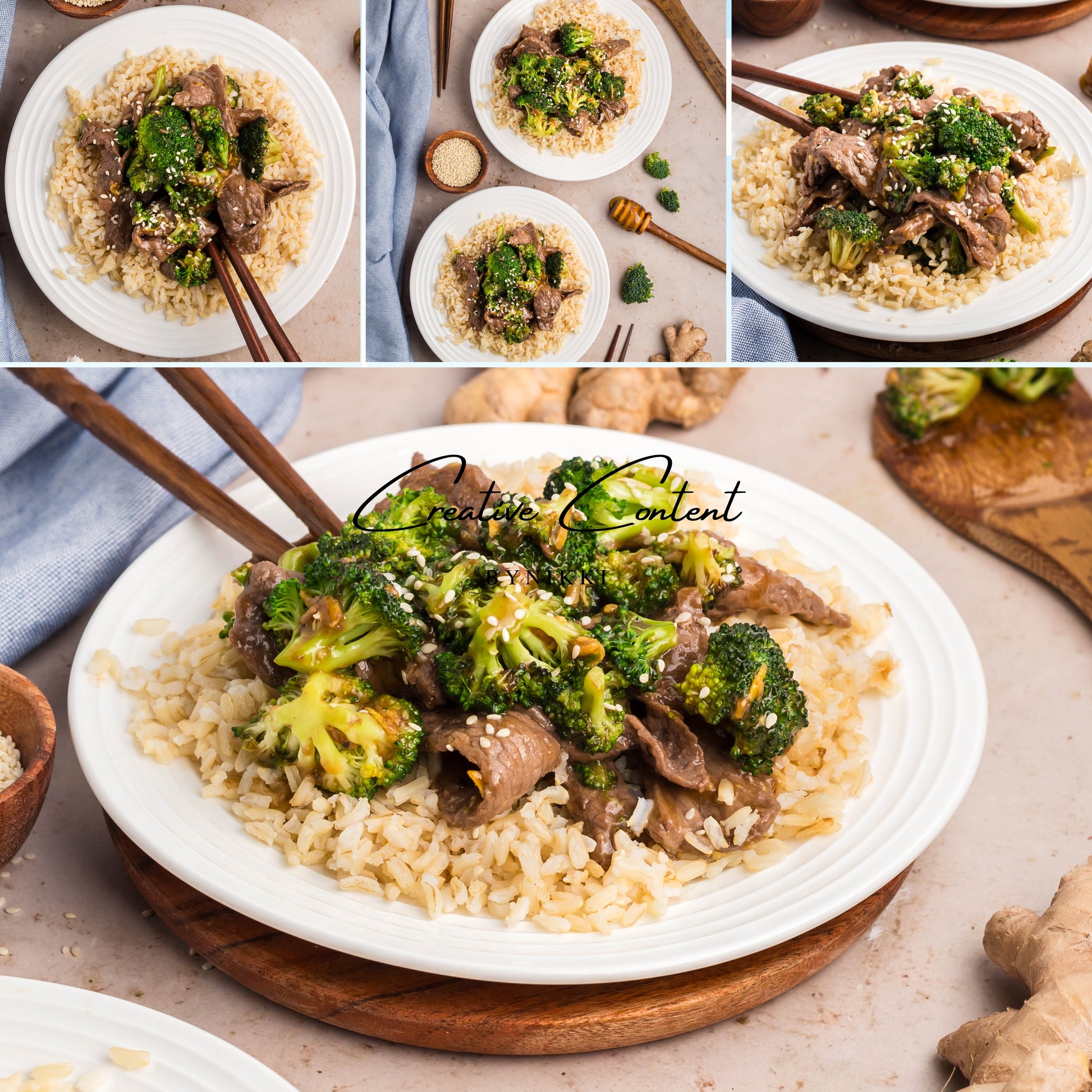 - Ingredients: cornstarch, water, broccoli florets, avocado oil, flank steak or beef bottom round steak, coarse kosher salt, black pepper, ginger, garlic, beef stock, light sodium soy sauce, honey, oyster sauce, sesame oil, sesame seeds, cooked rice