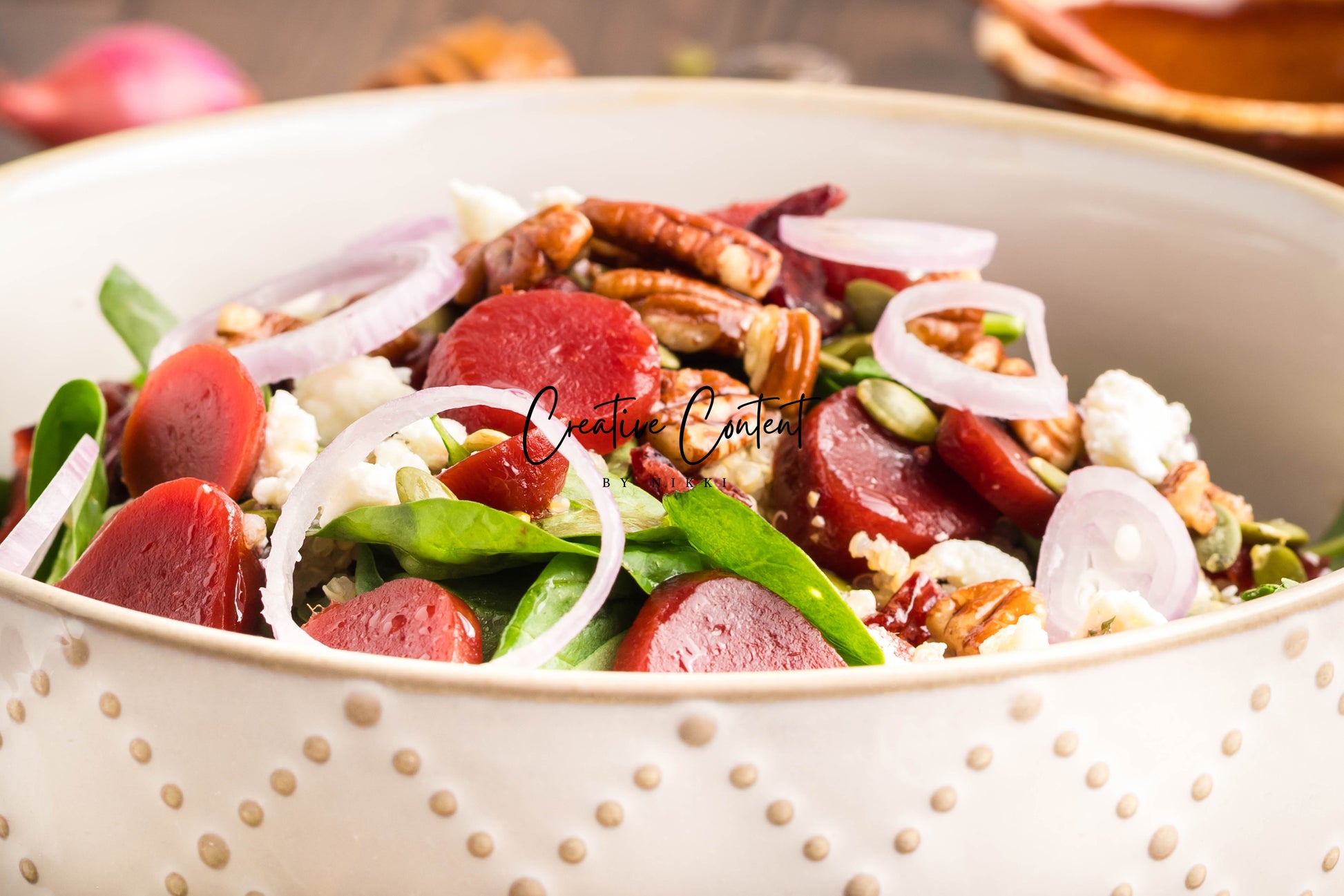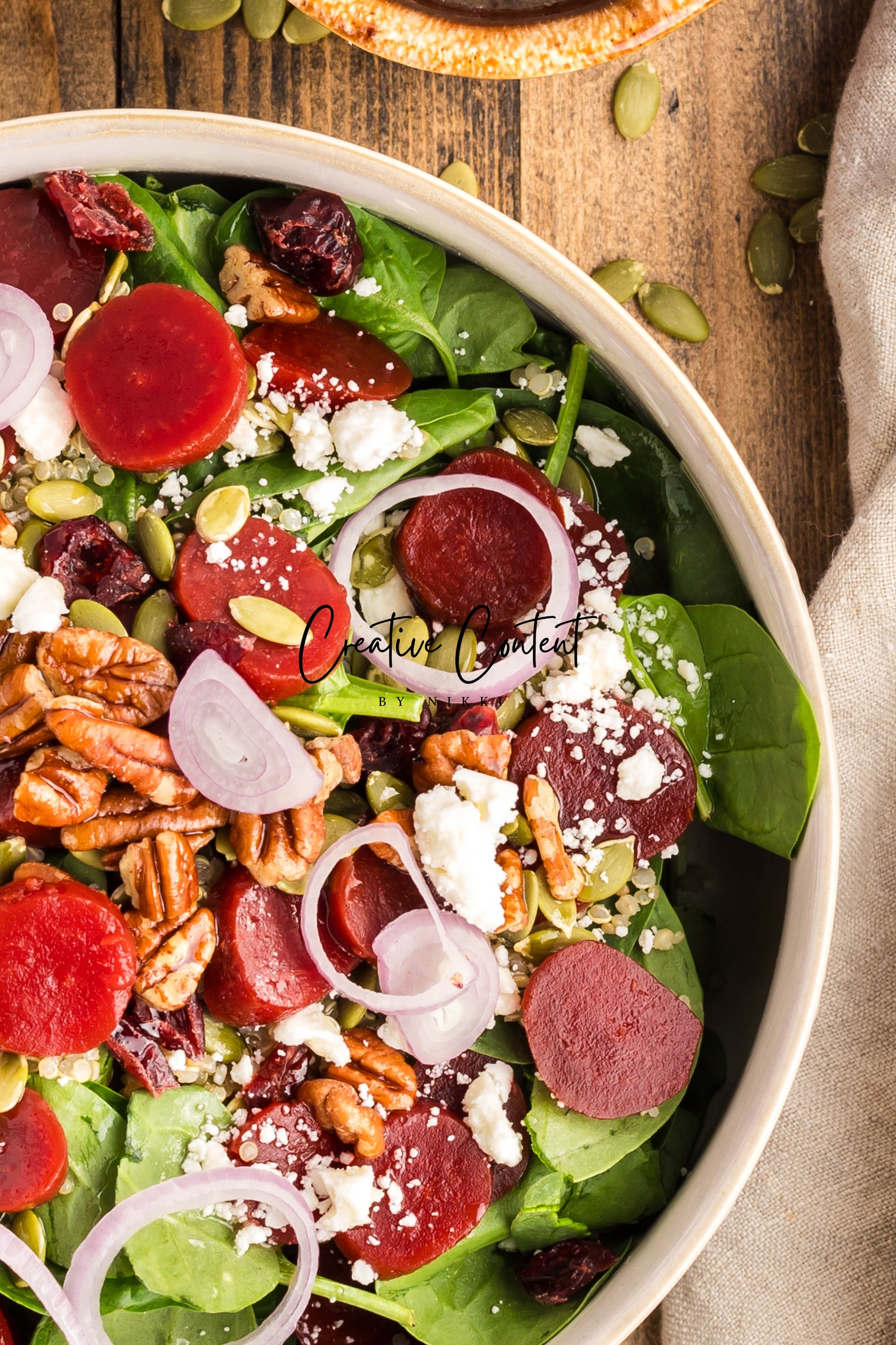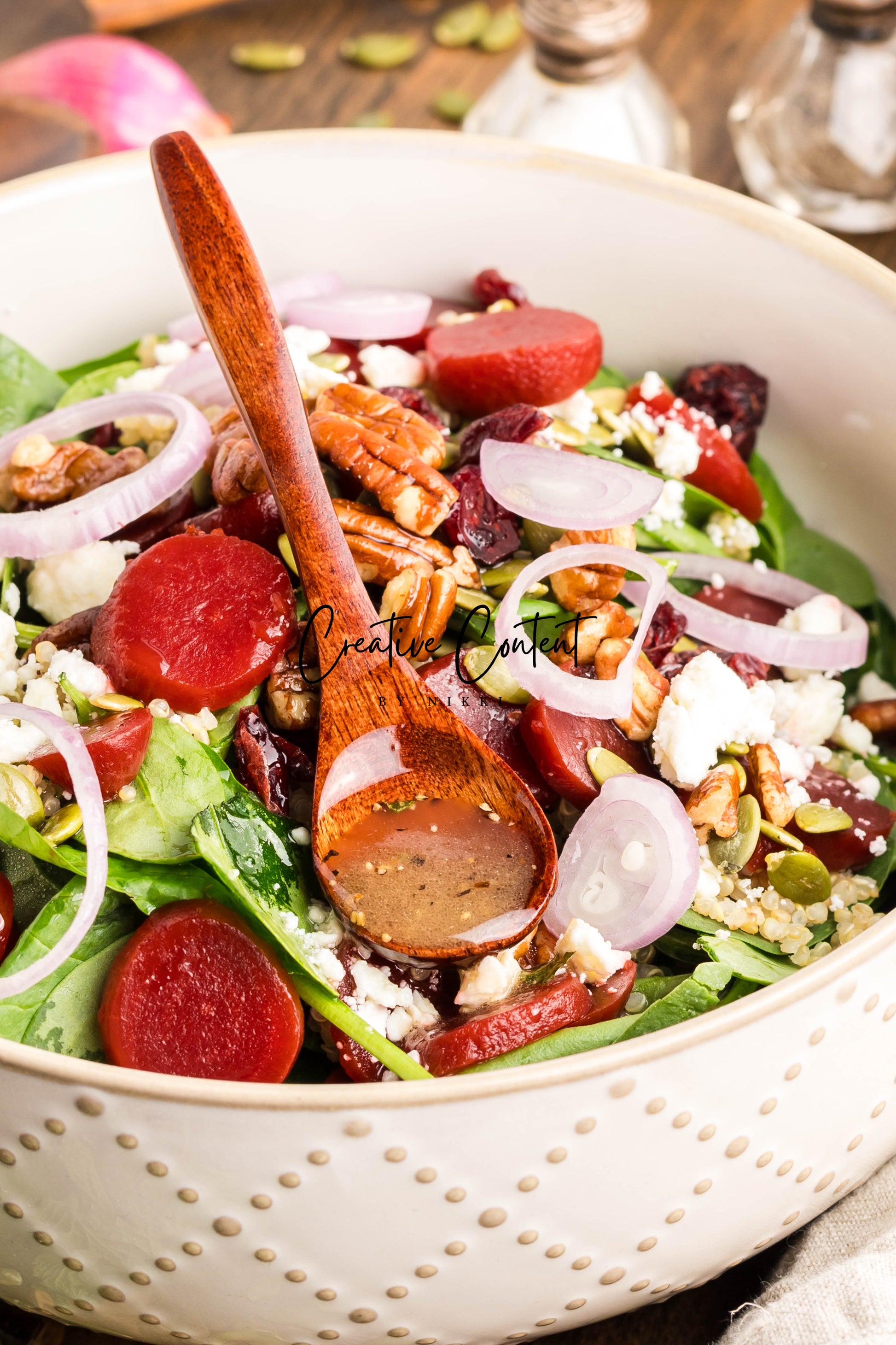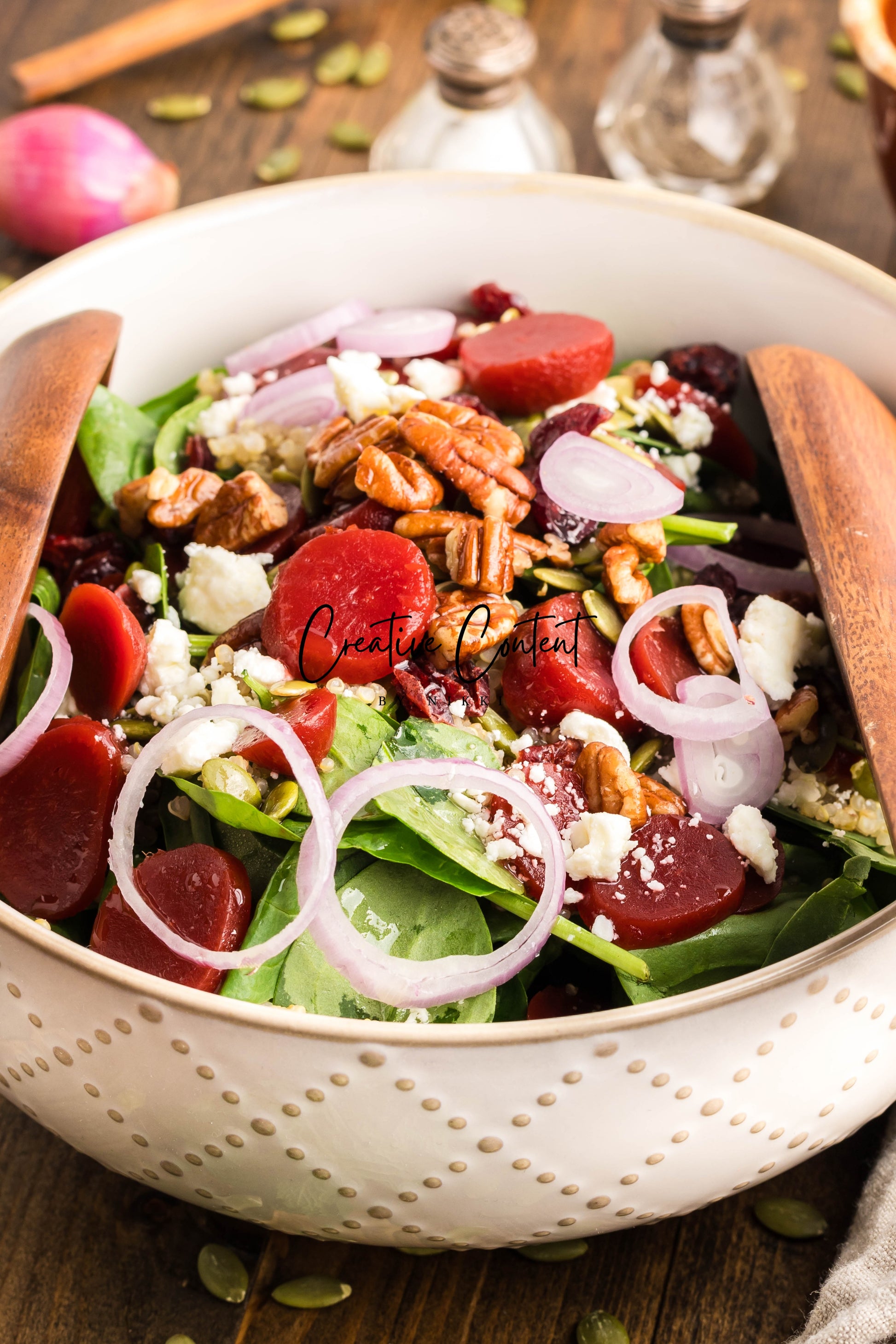 This beet salad is a great choice for winter. The earthy sweetness of the beets pairs beautifully with the crunch of pumpkin seeds and the creaminess of feta. It's not just a treat for the taste buds; it's also a vibrant addition to your table.