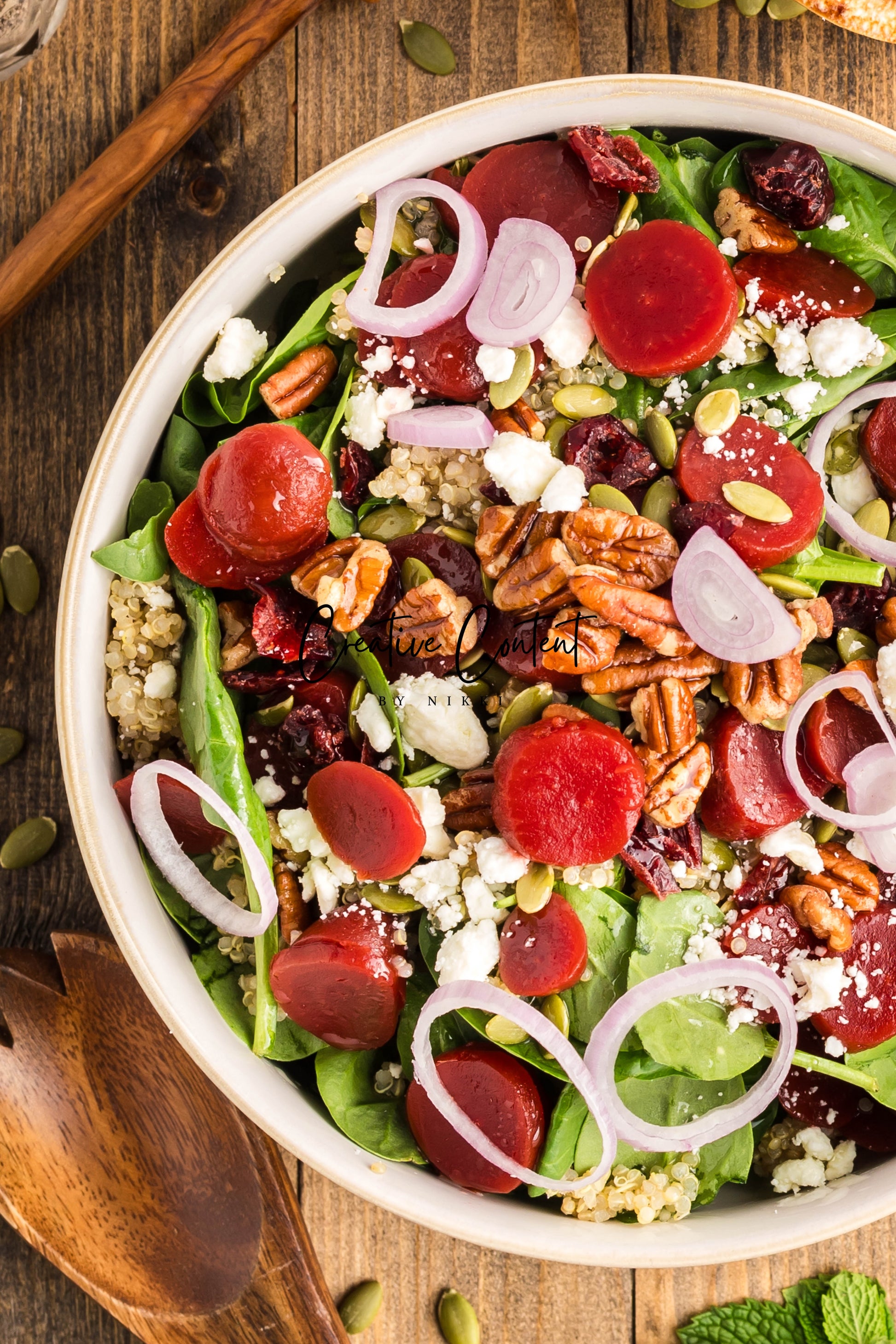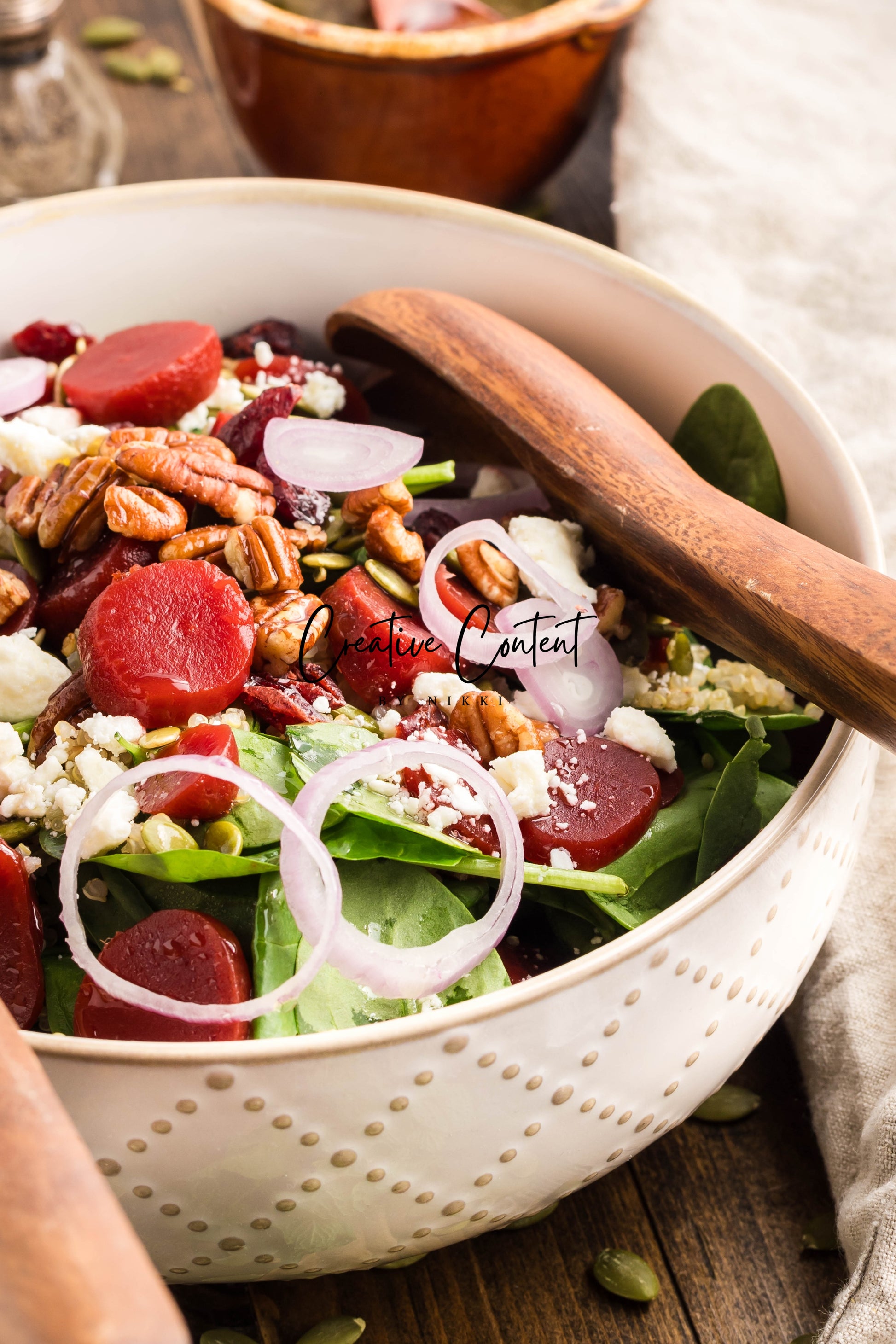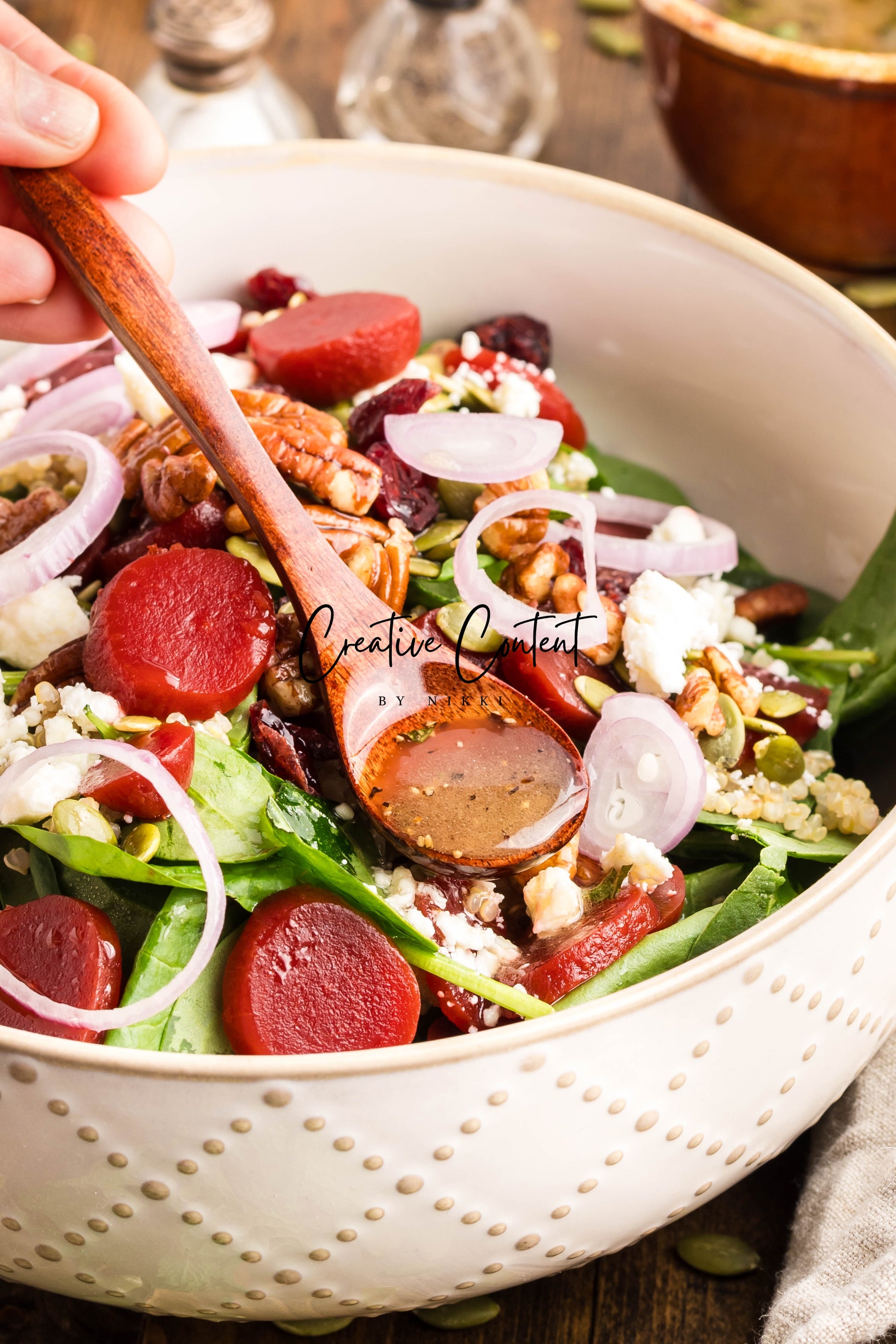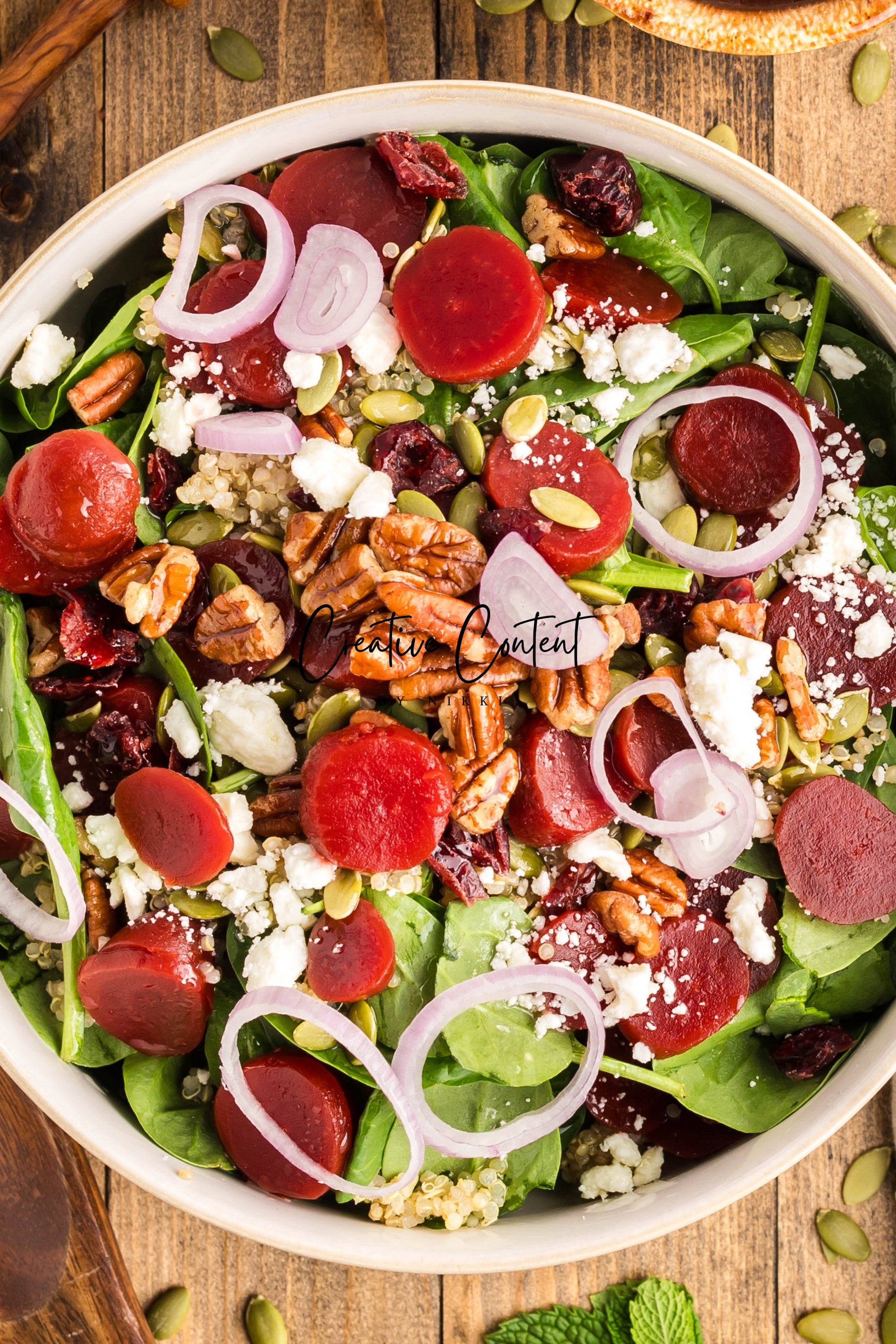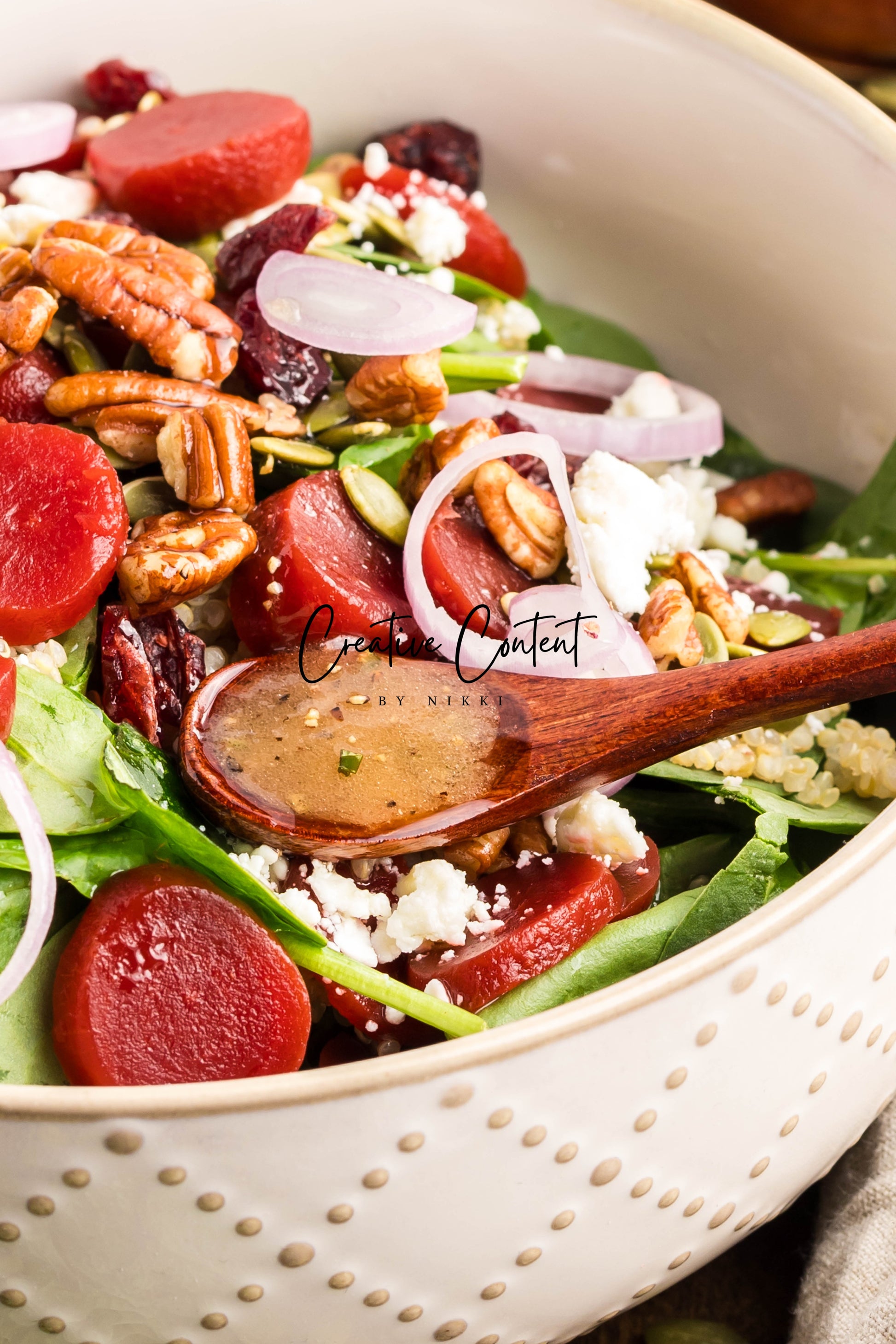 This beet salad is a great choice for winter. The earthy sweetness of the beets pairs beautifully with the crunch of pumpkin seeds and the creaminess of feta. It's not just a treat for the taste buds; it's also a vibrant addition to your table.