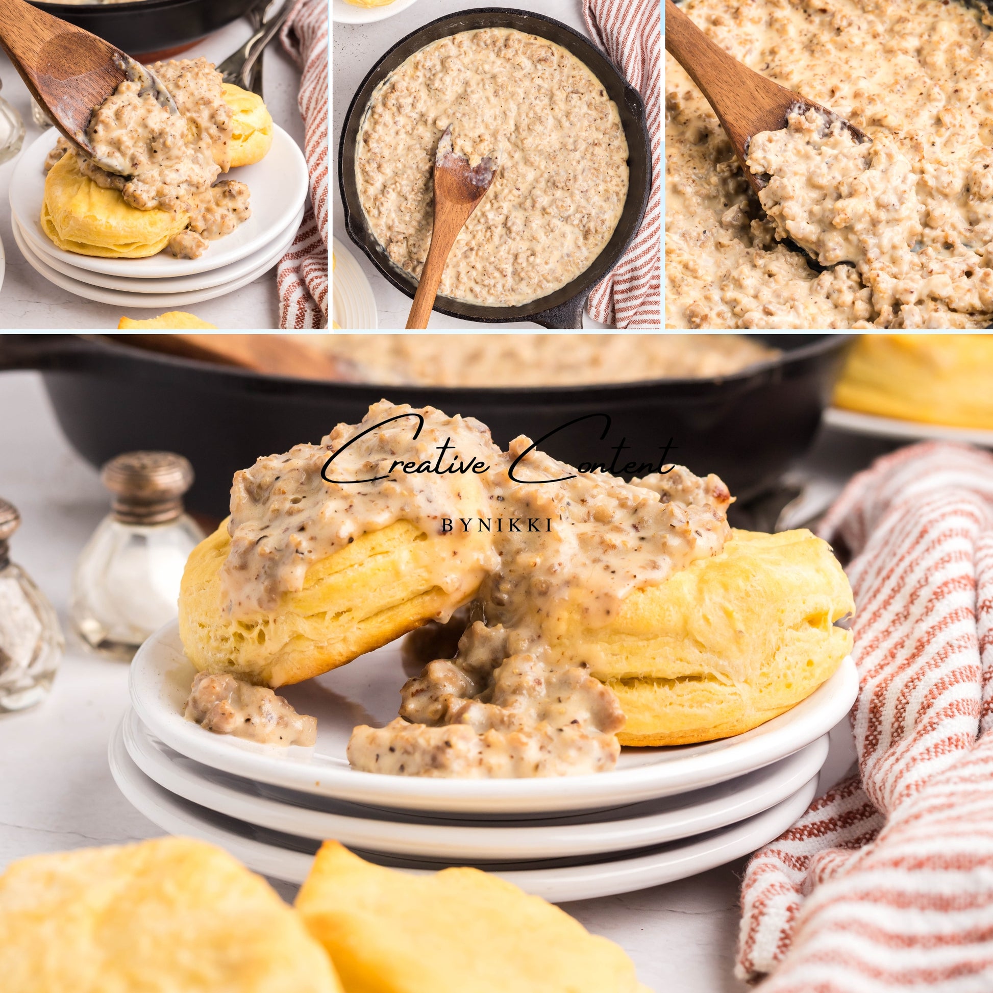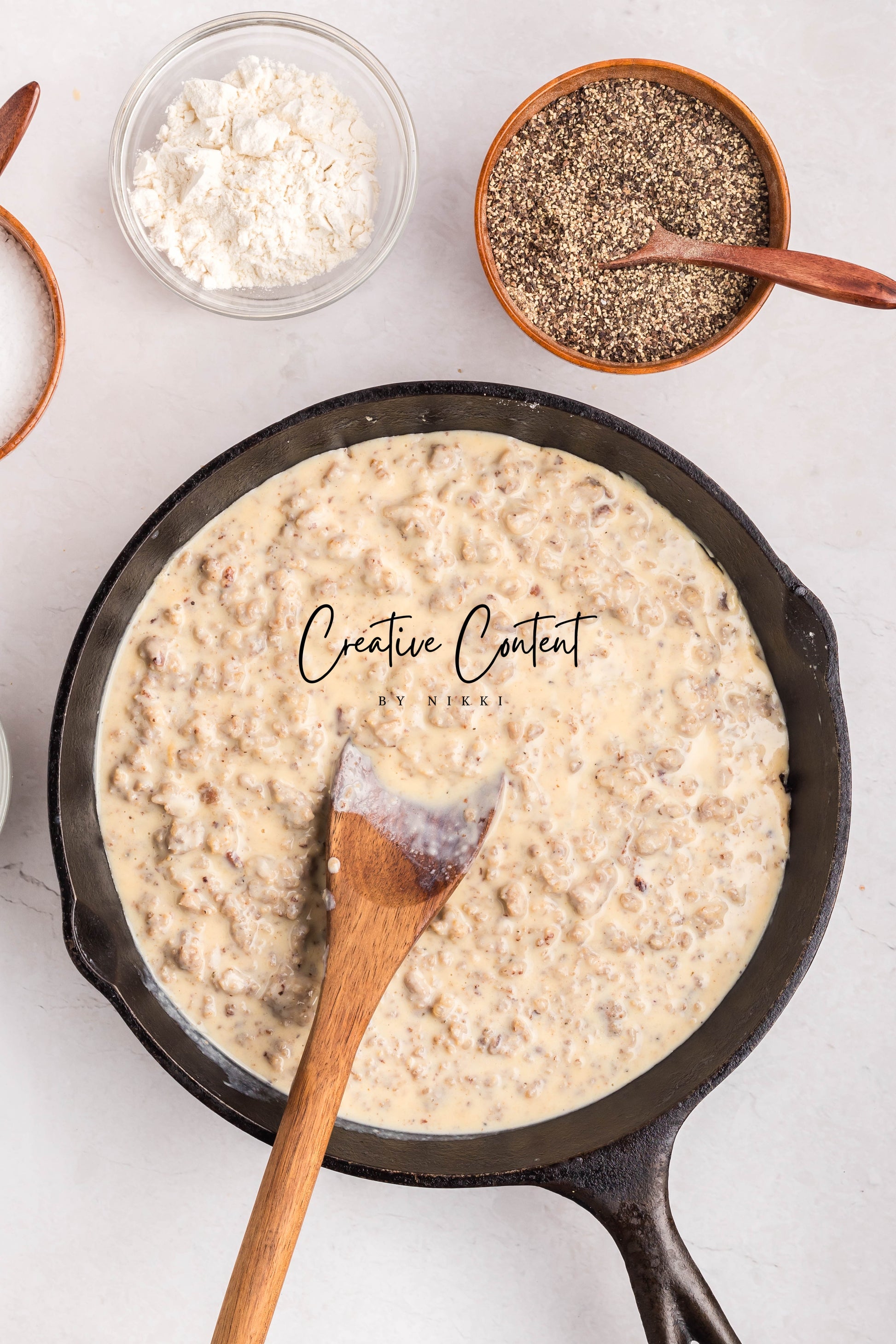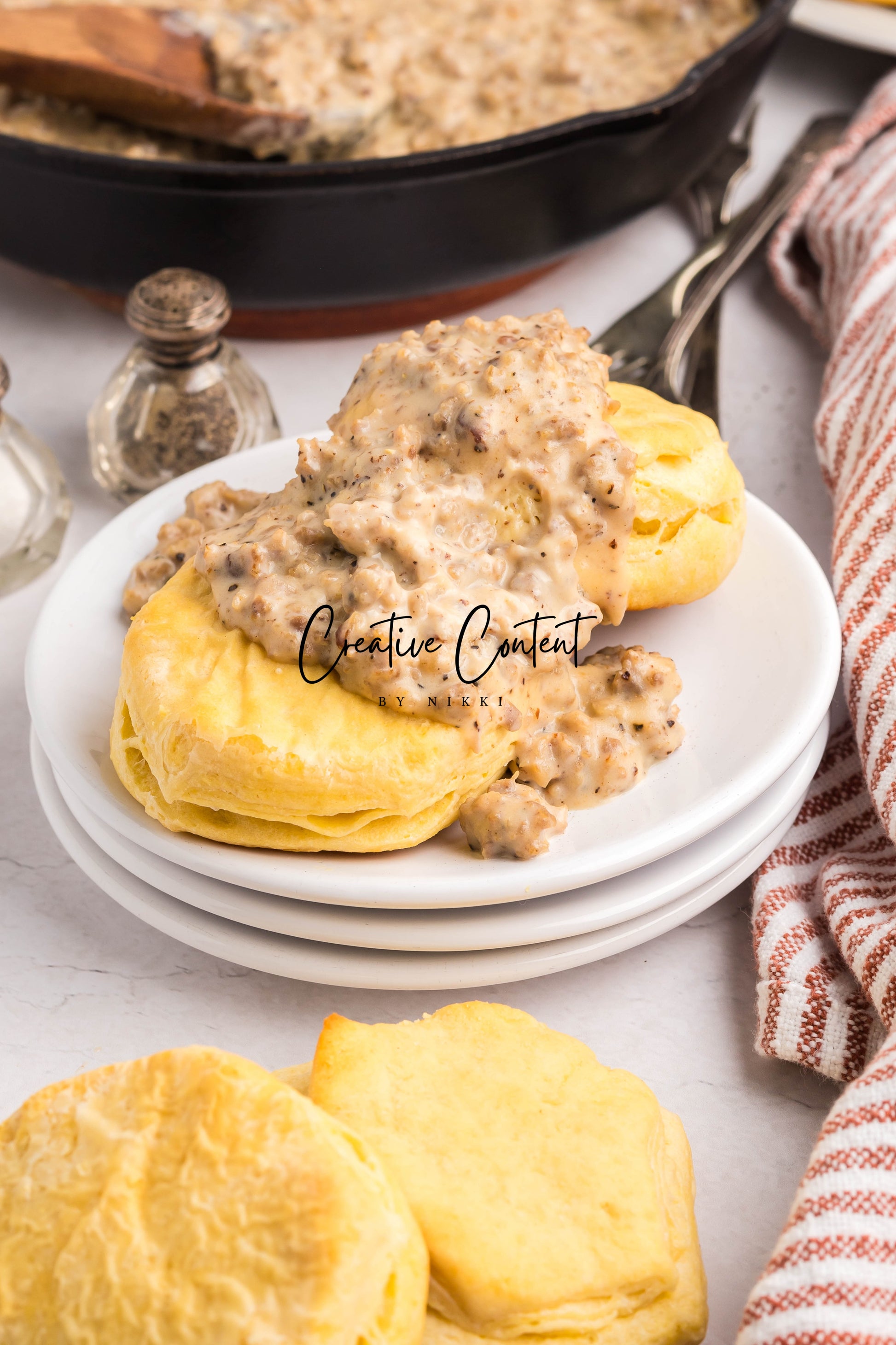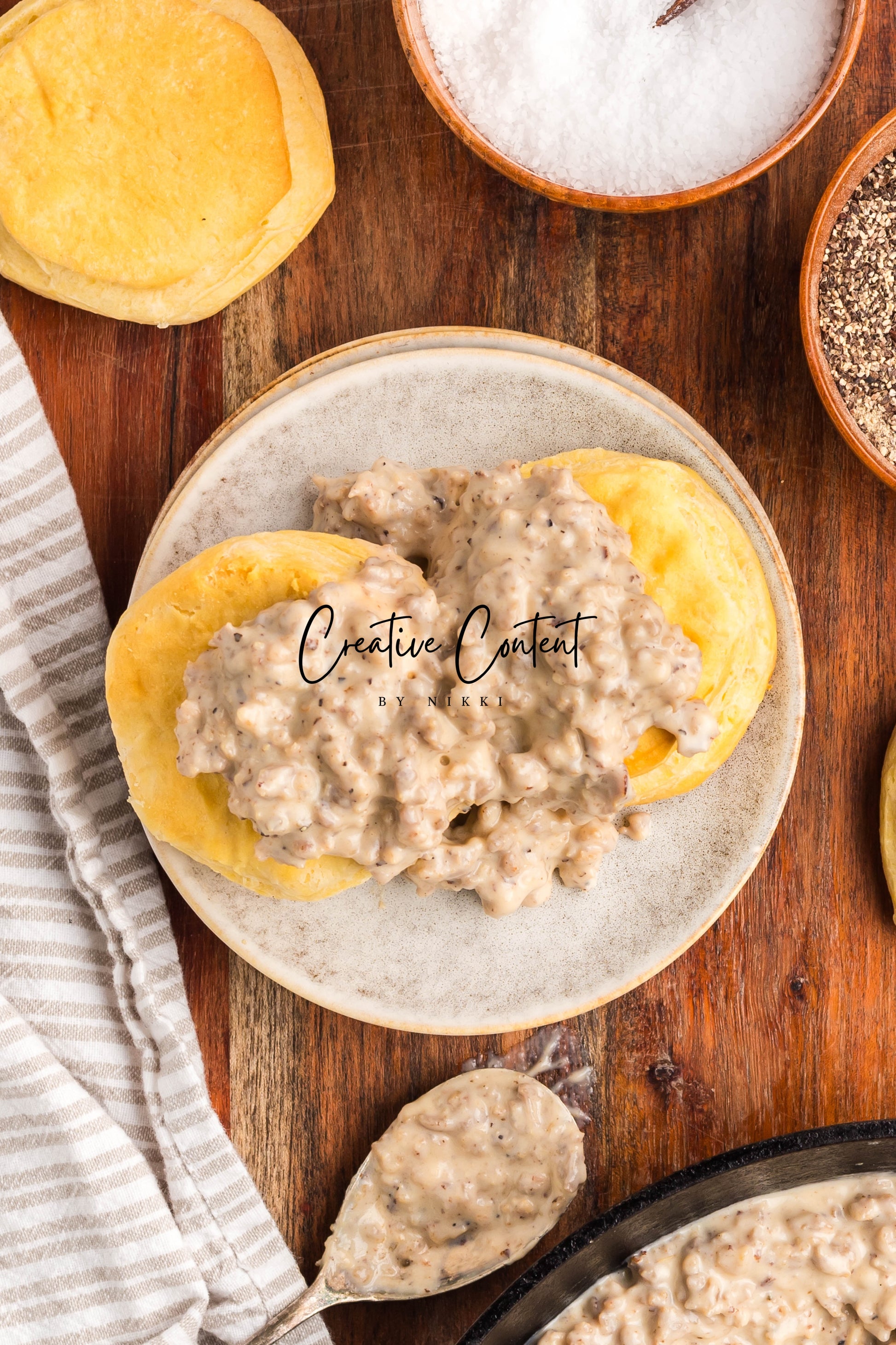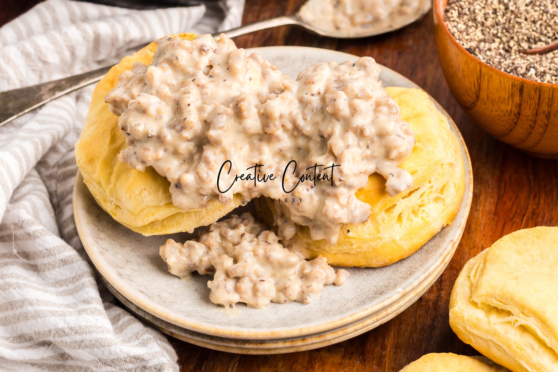- Ingredients: biscuits, sausage, all-purpose flour, whole milk, black pepper, coarse salt