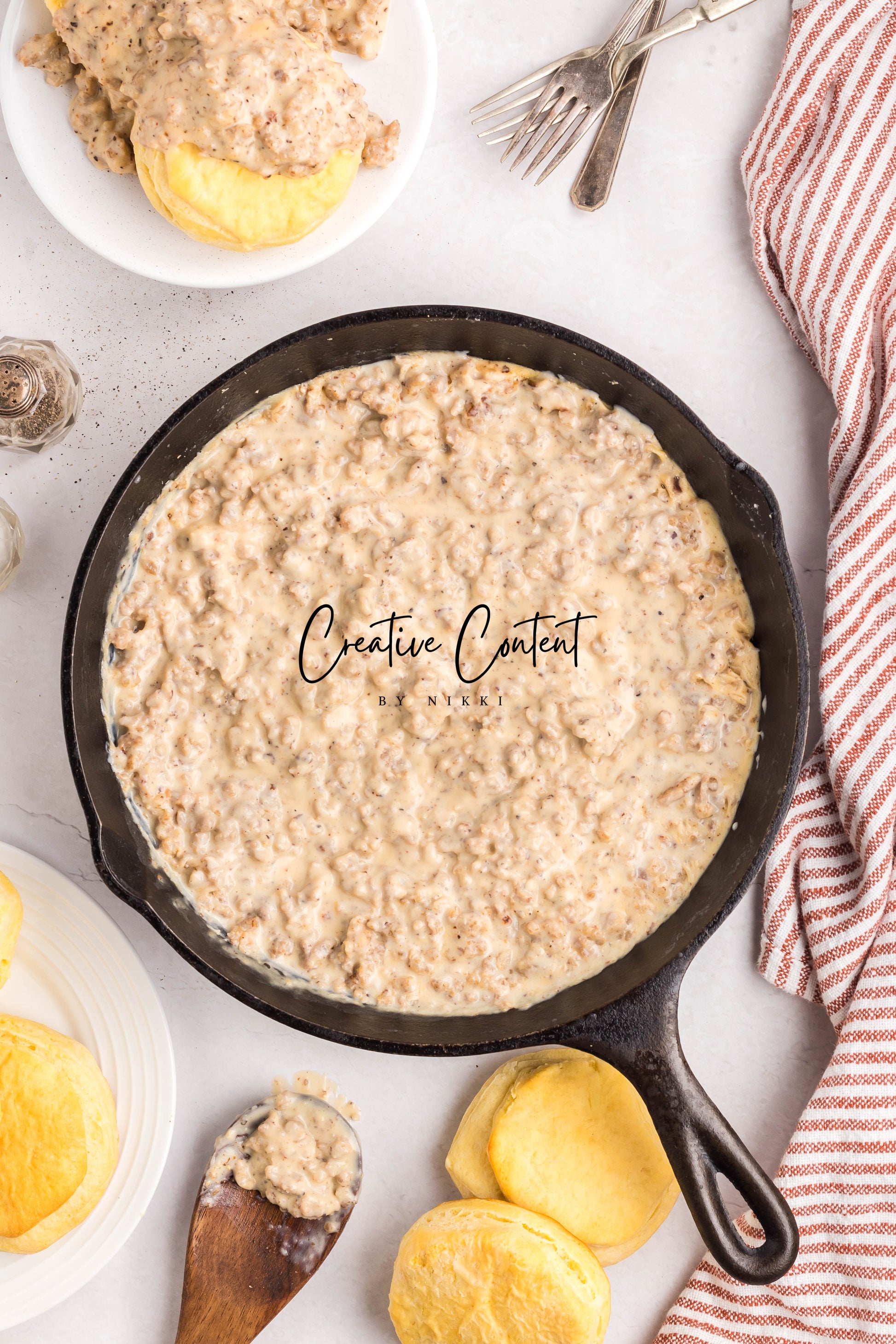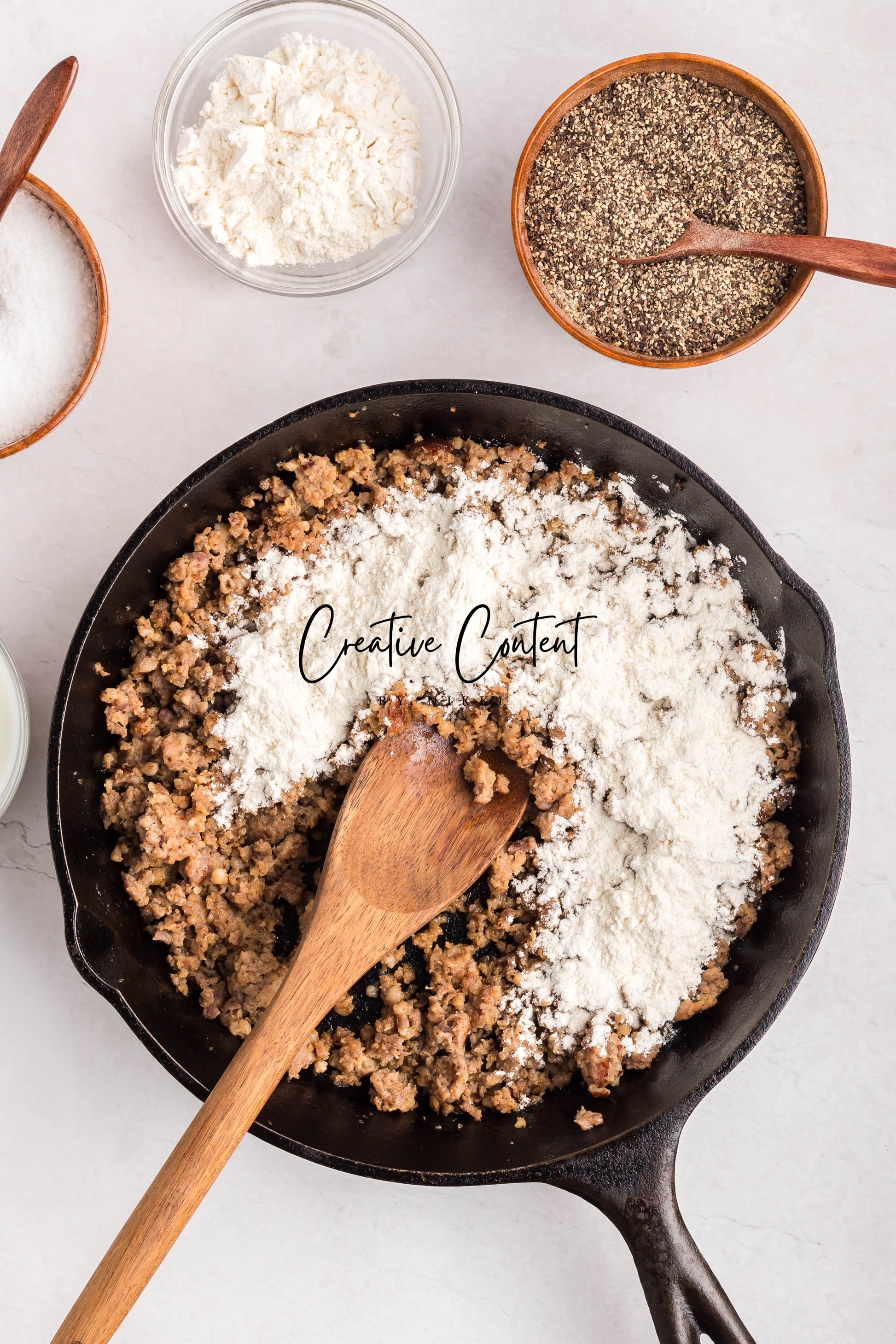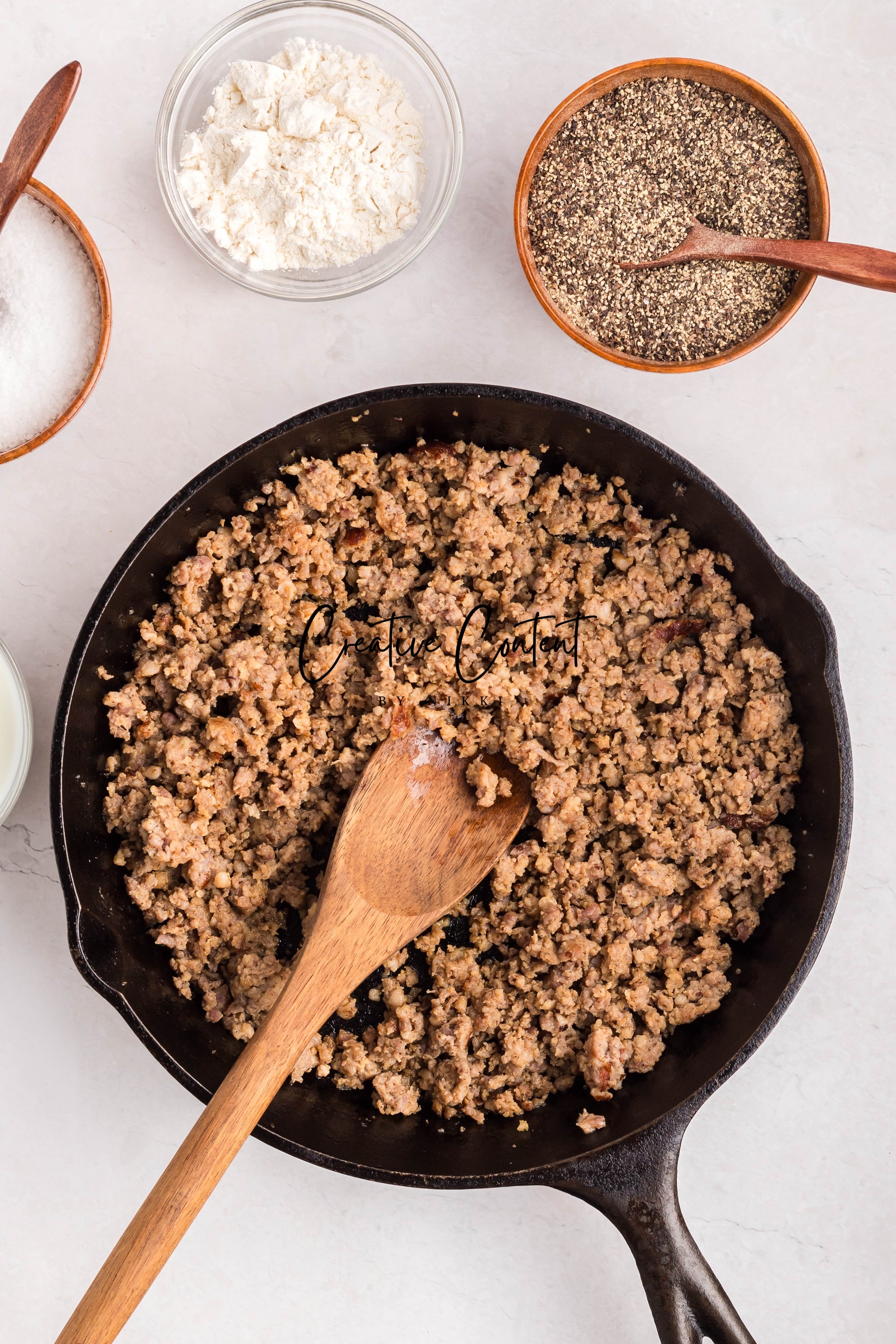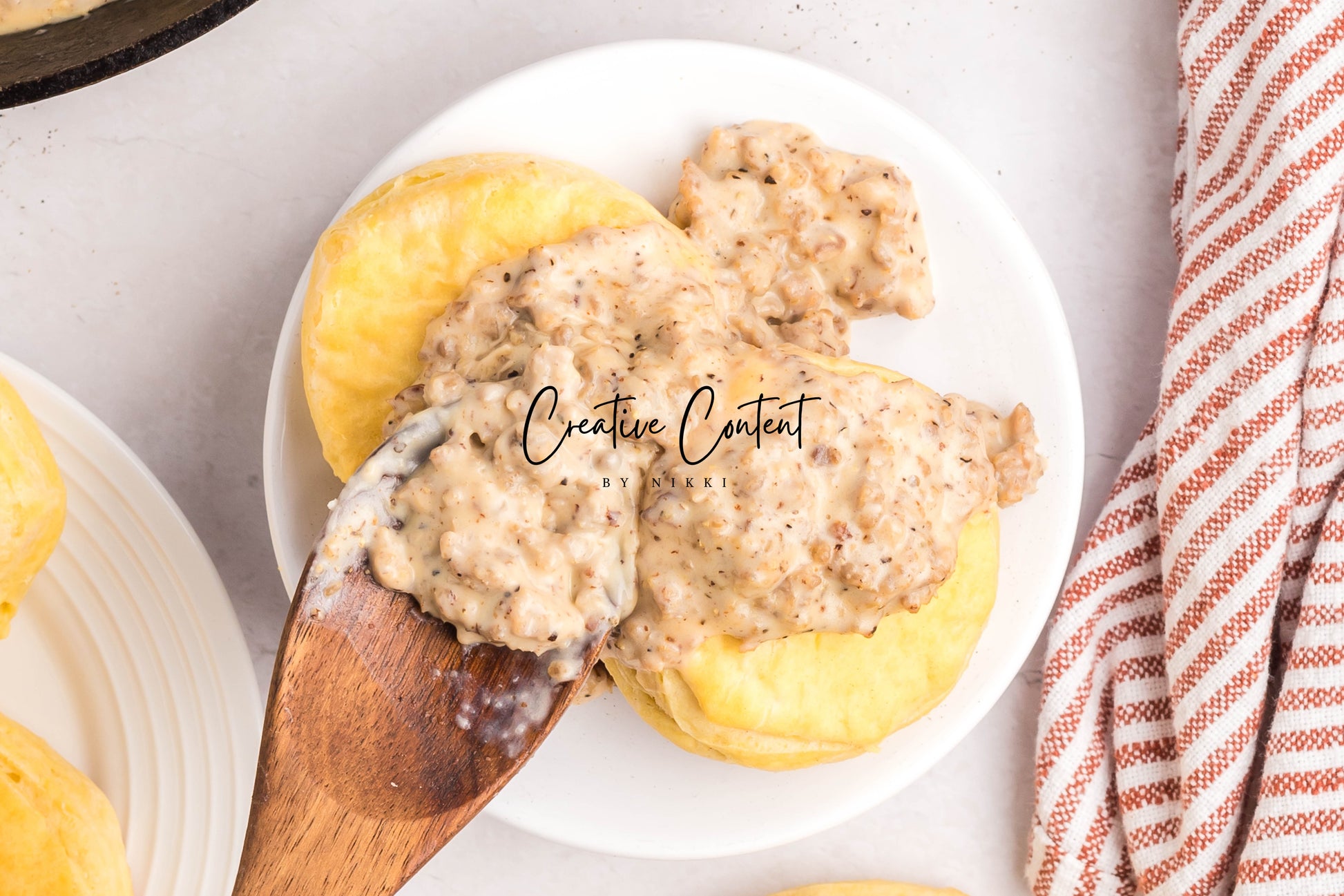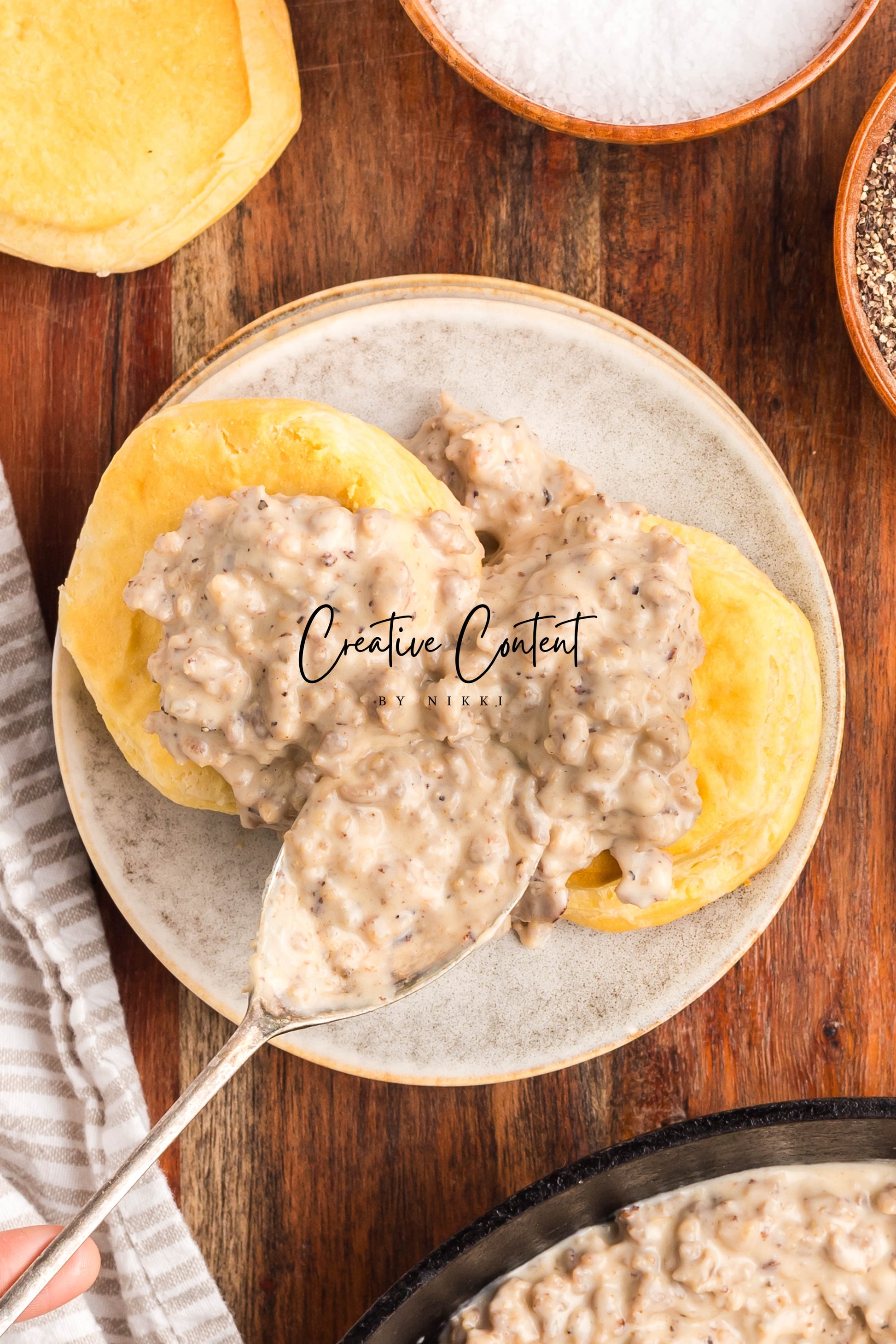 - Ingredients: biscuits, sausage, all-purpose flour, whole milk, black pepper, coarse salt