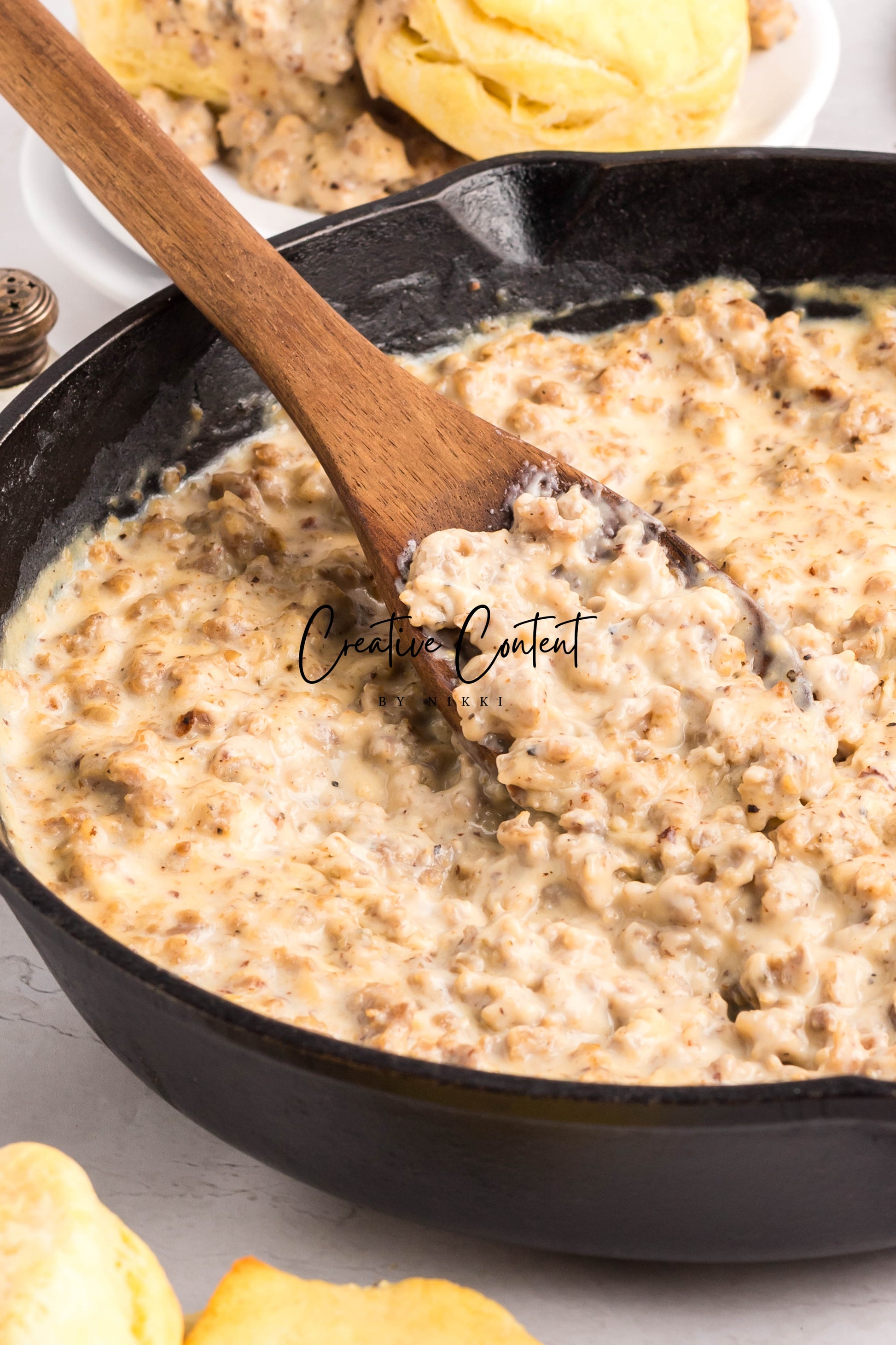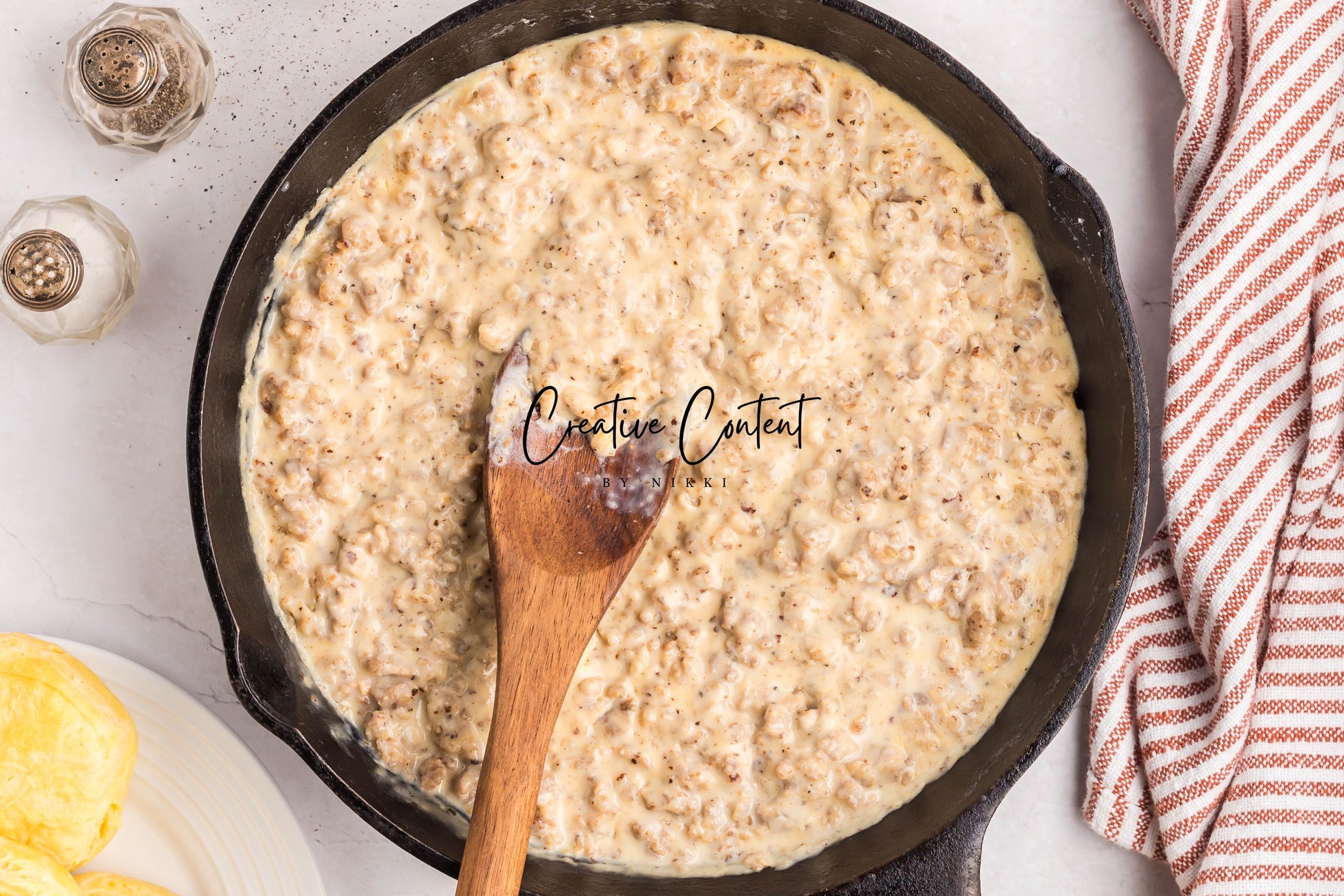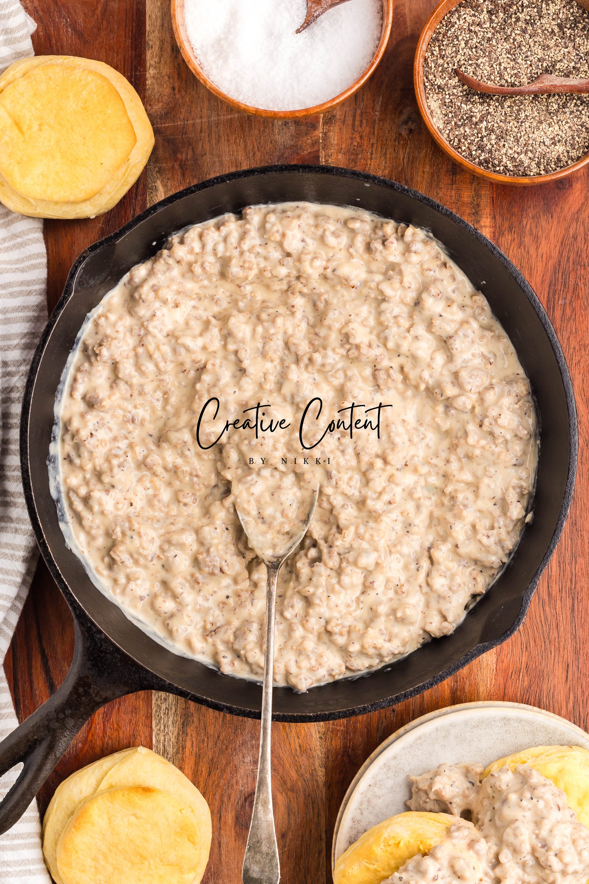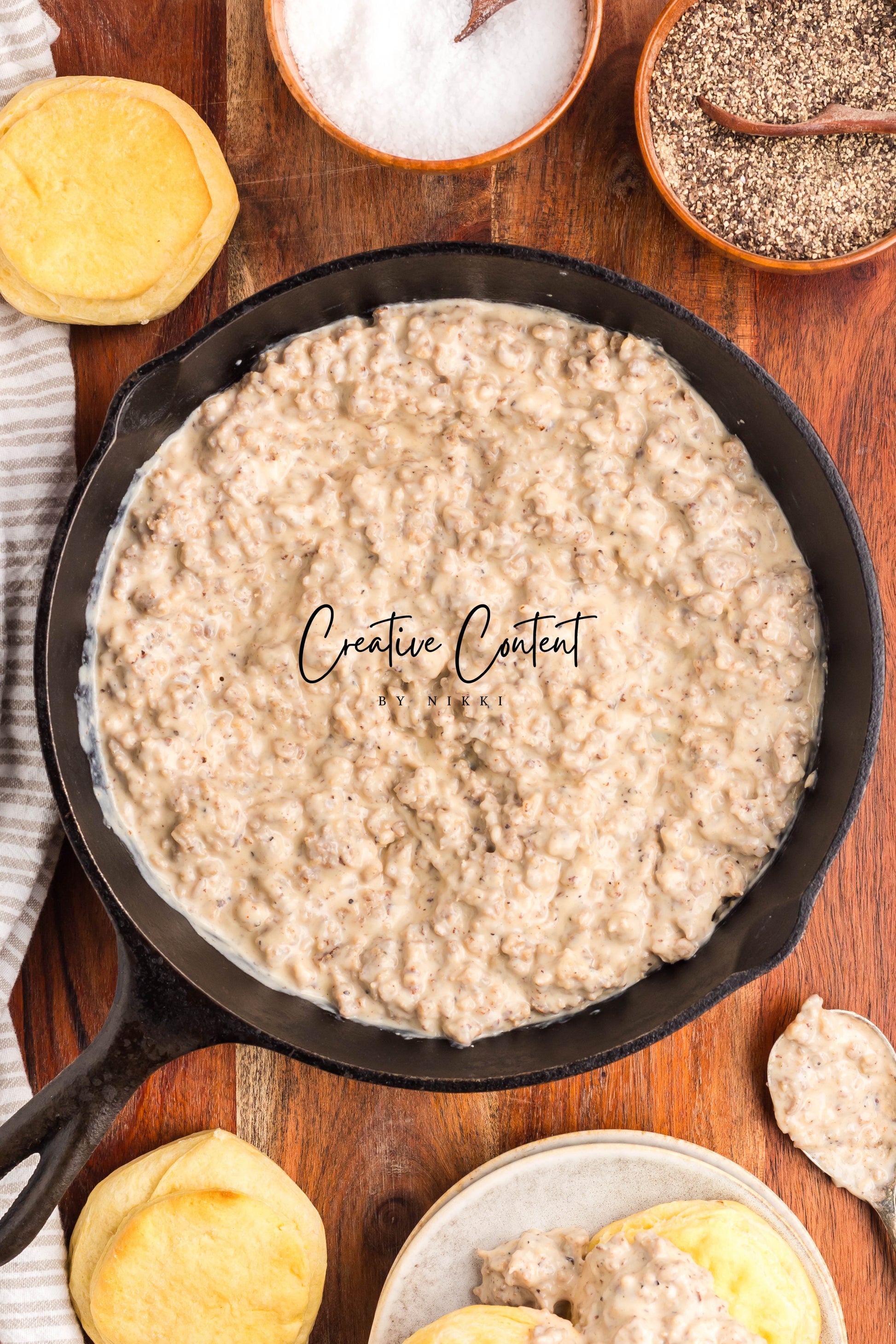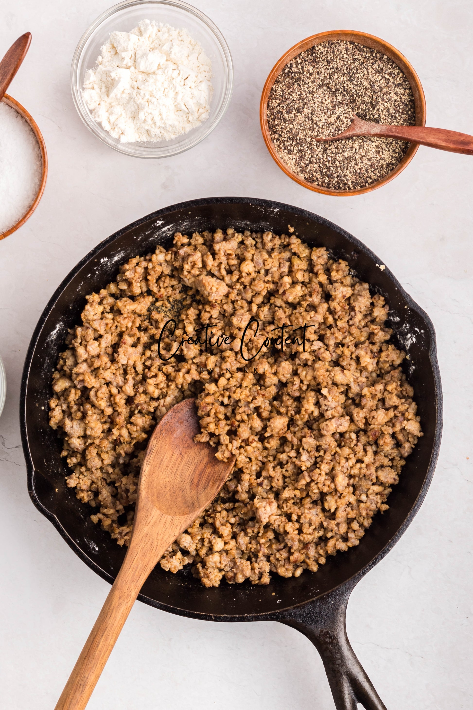 - Ingredients: biscuits, sausage, all-purpose flour, whole milk, black pepper, coarse salt