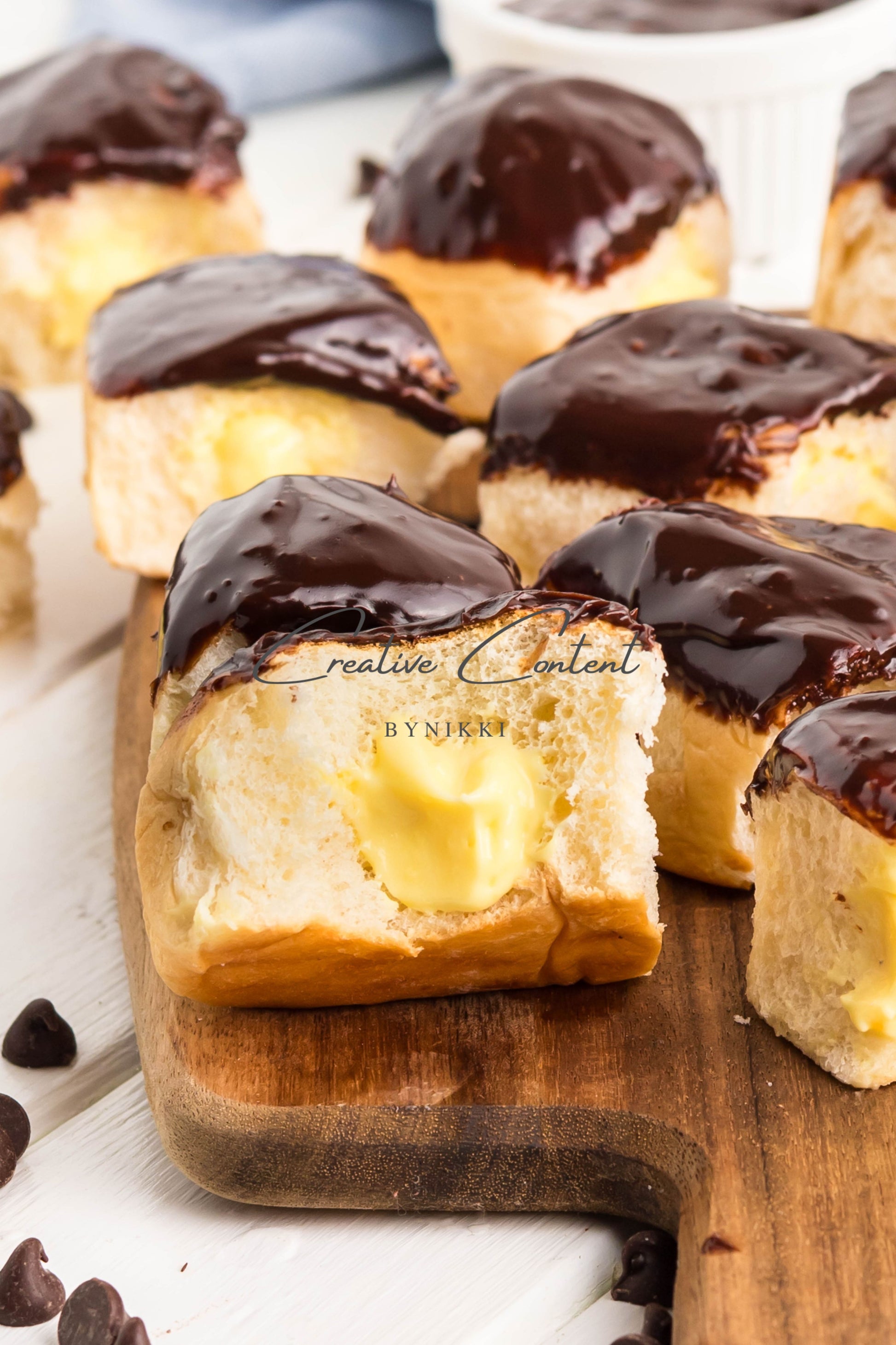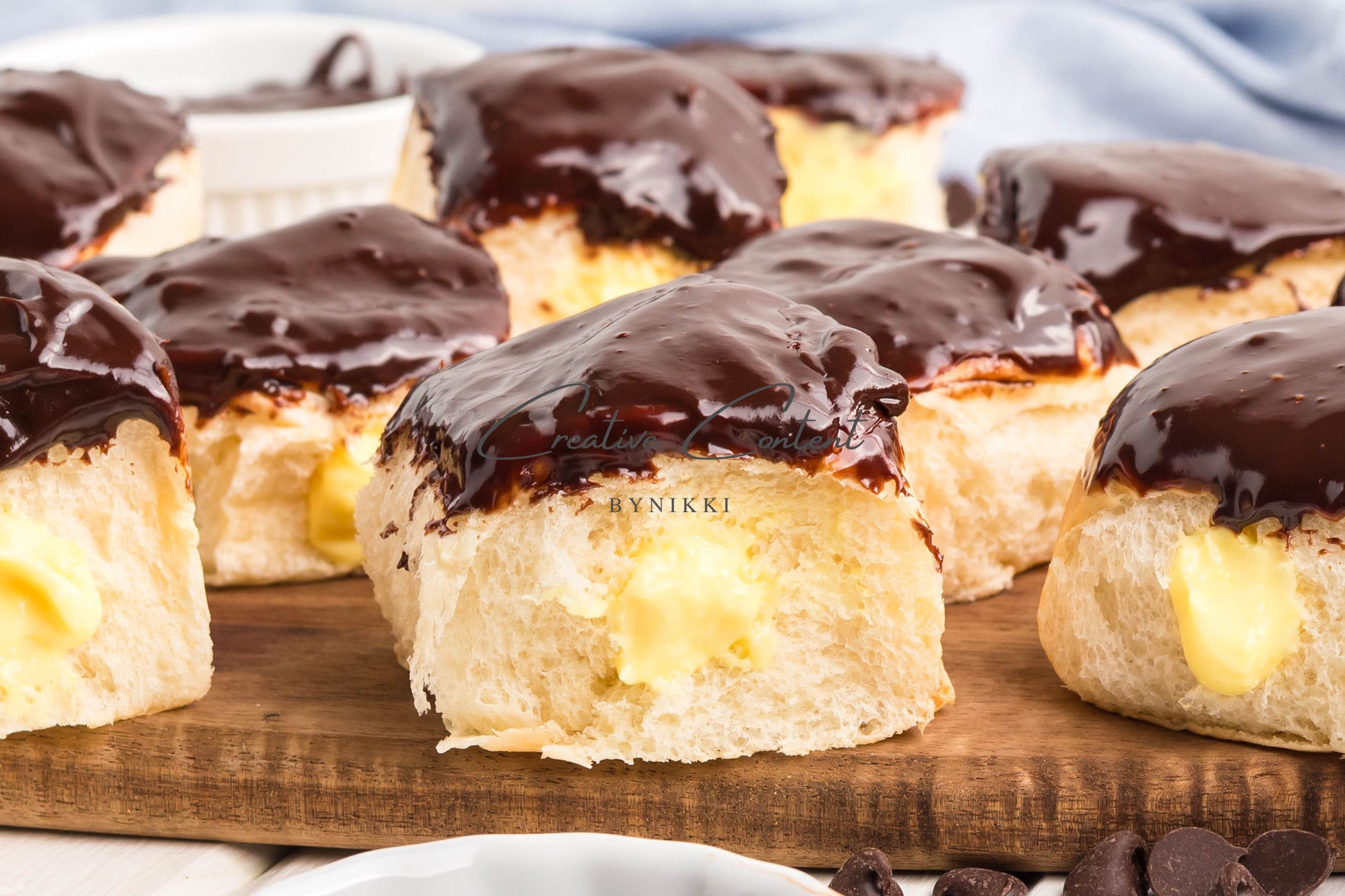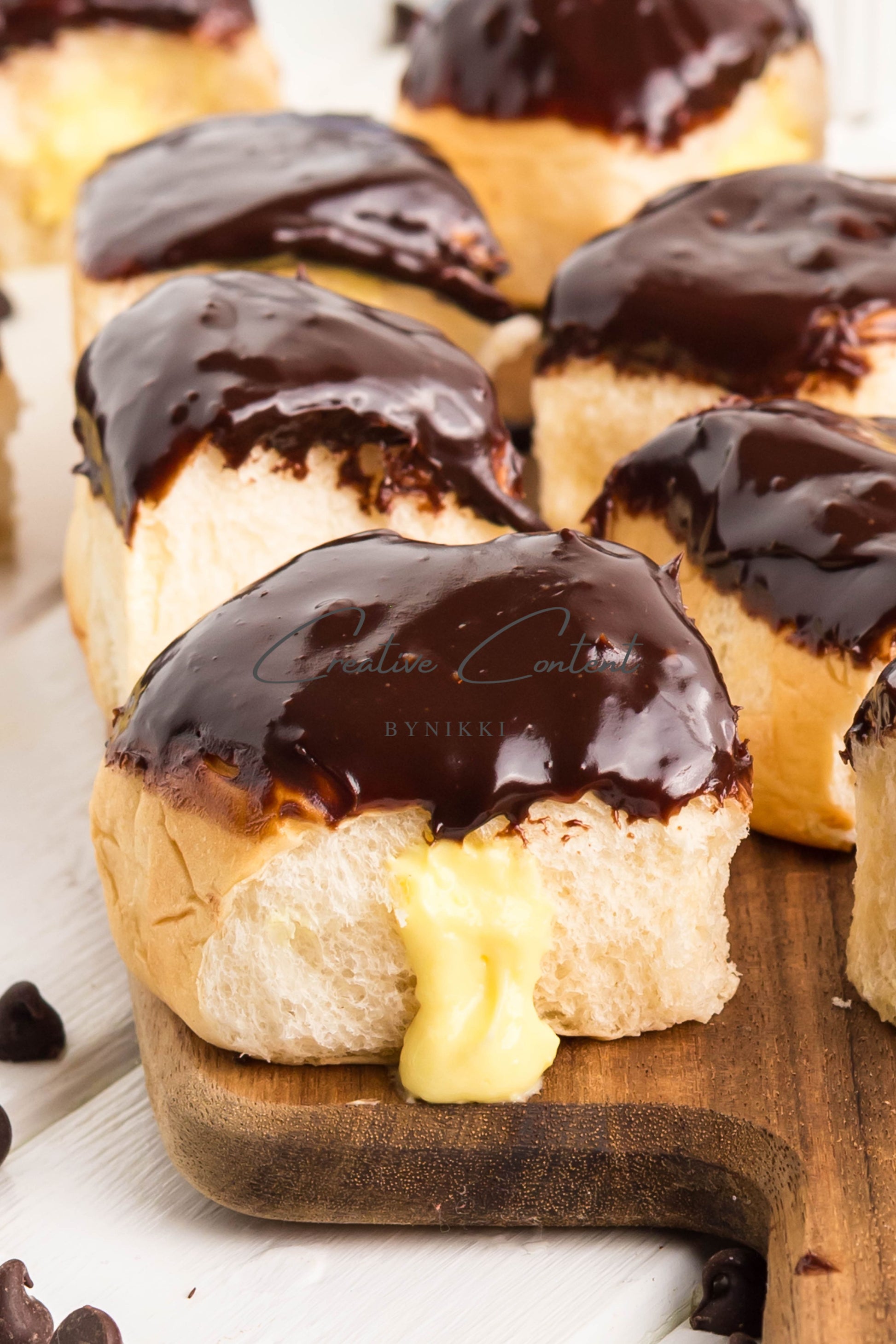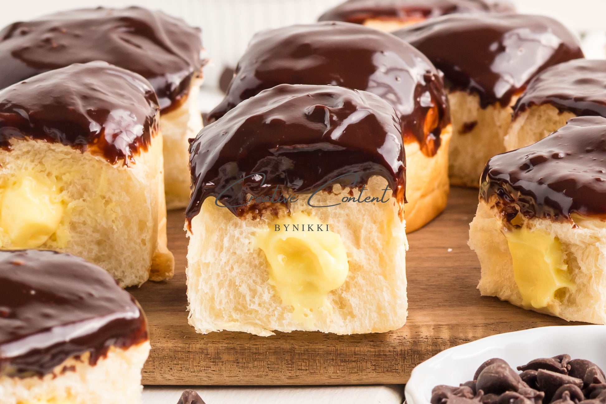 The Boston Cream Pie Hawaiian Rolls are a delightful twist on the classic dessert, offering a soft and sweet bite with every mouthful. These rolls are filled with rich, creamy vanilla pudding and topped with a smooth layer of bittersweet chocolate ganache.