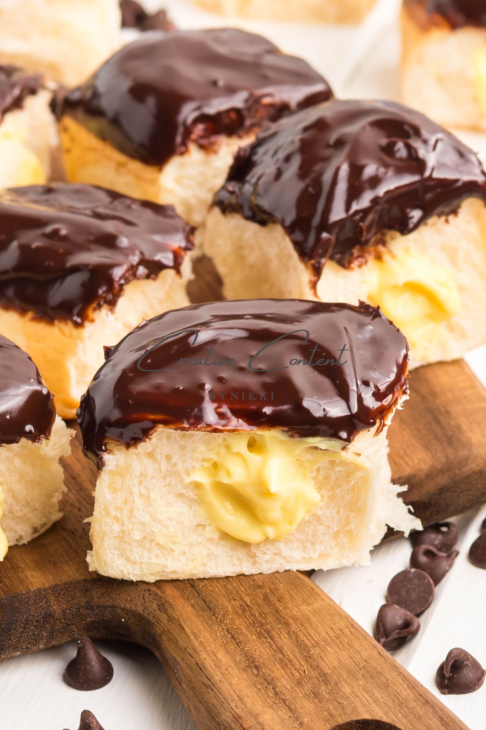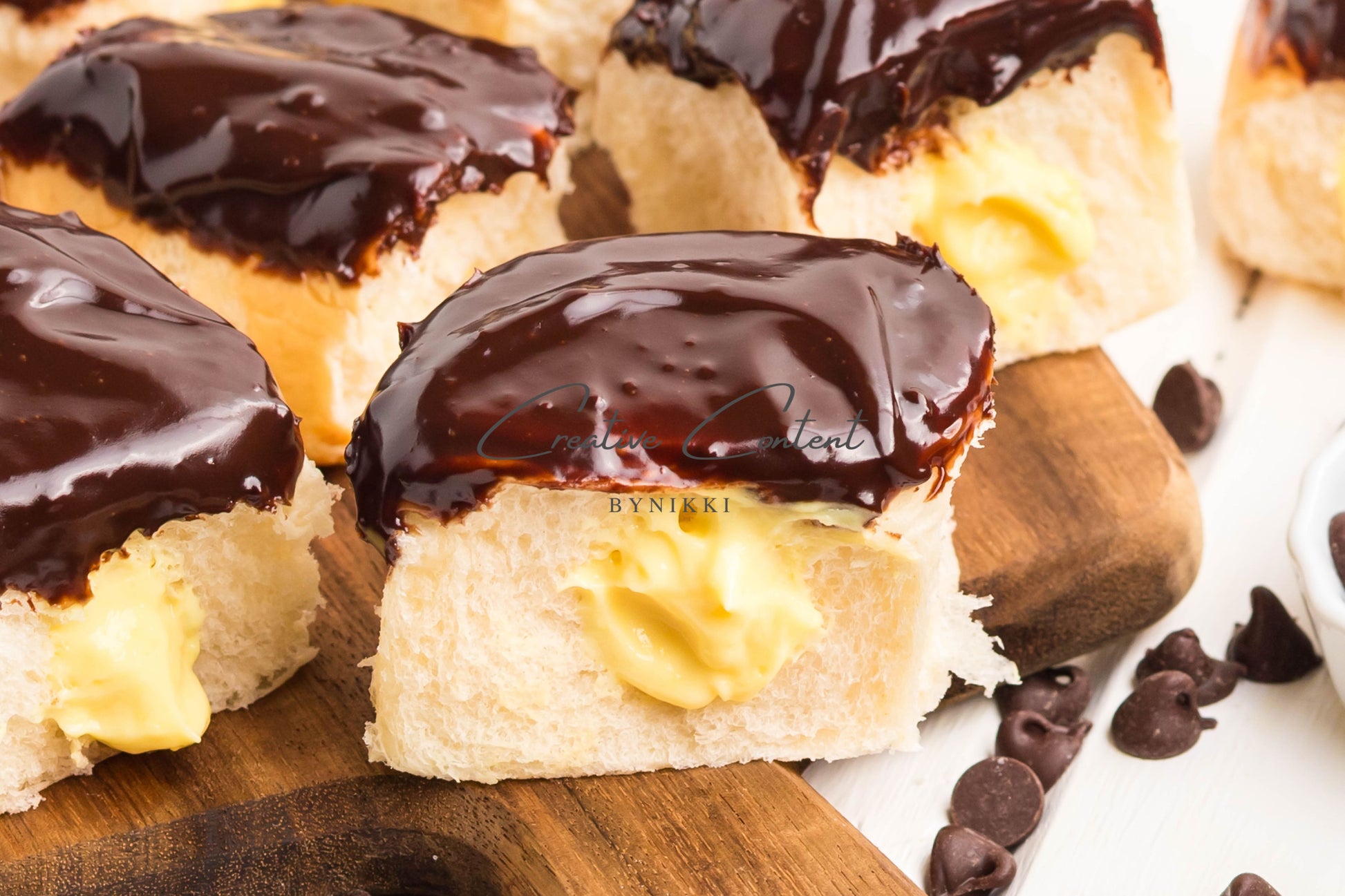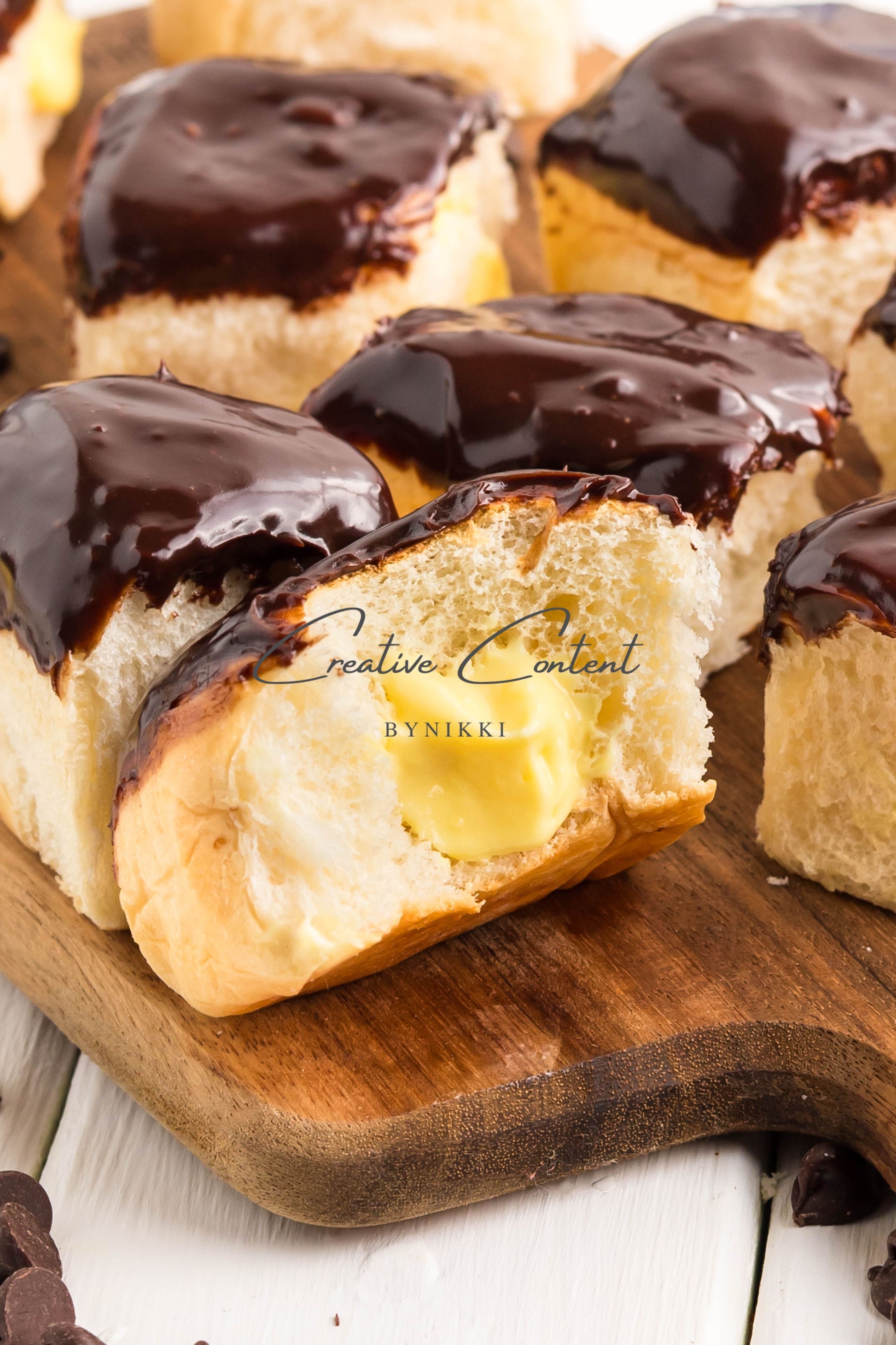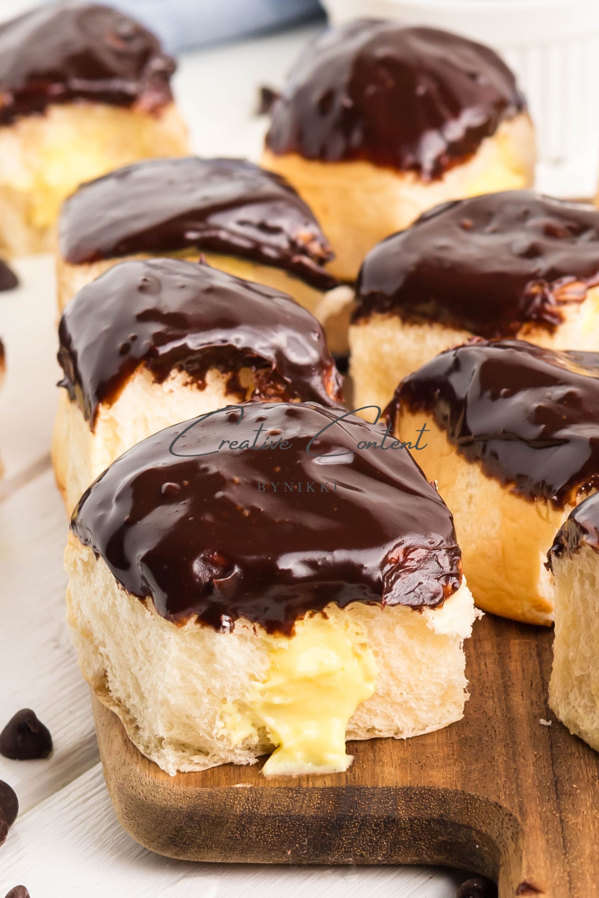 The Boston Cream Pie Hawaiian Rolls are a delightful twist on the classic dessert, offering a soft and sweet bite with every mouthful. These rolls are filled with rich, creamy vanilla pudding and topped with a smooth layer of bittersweet chocolate ganache.