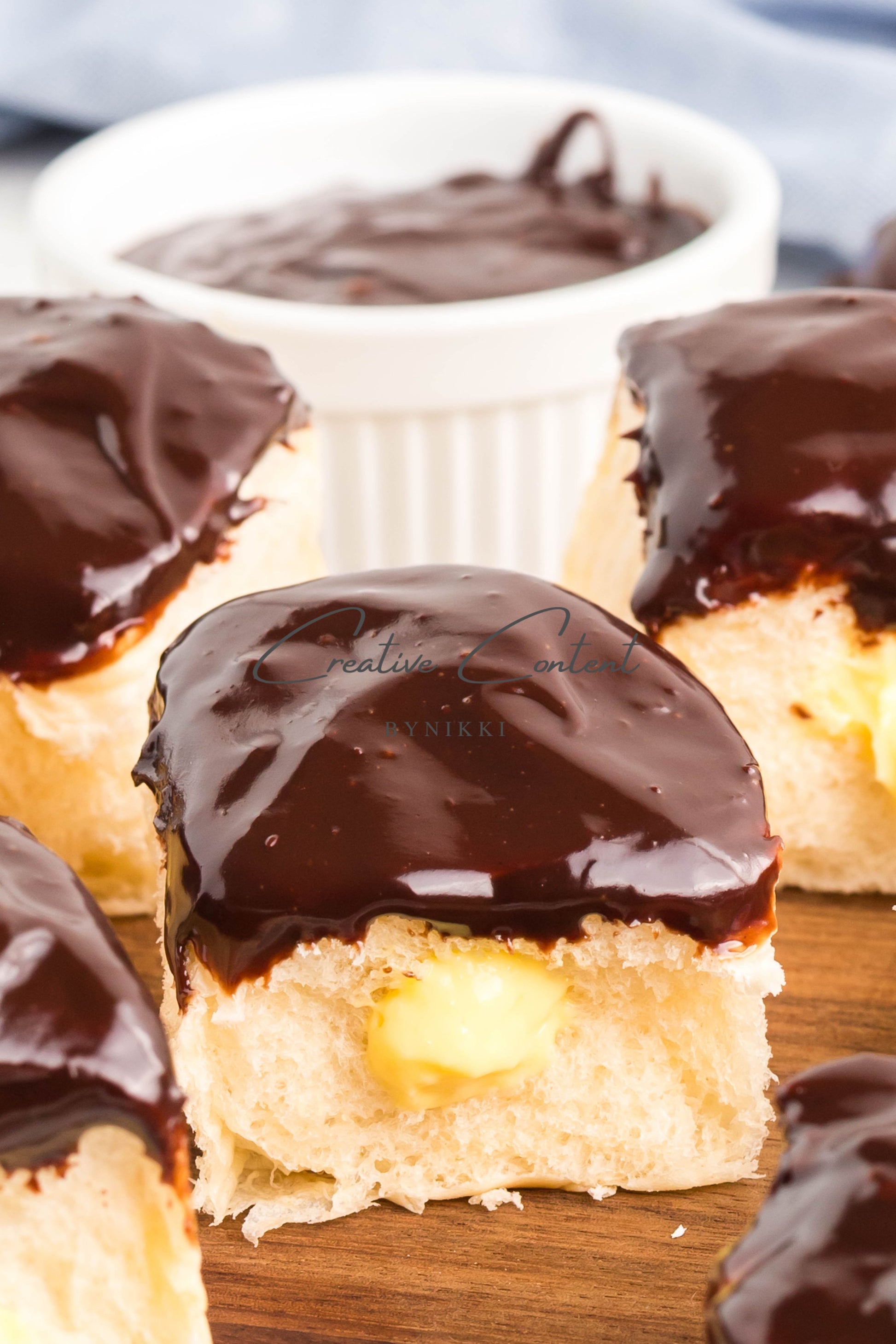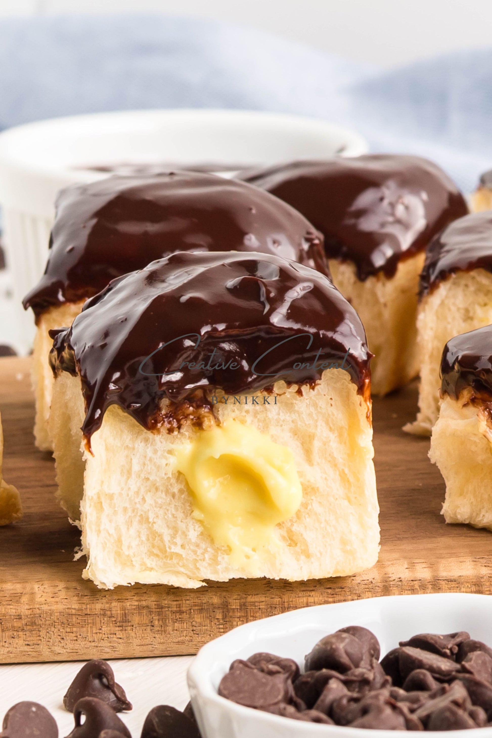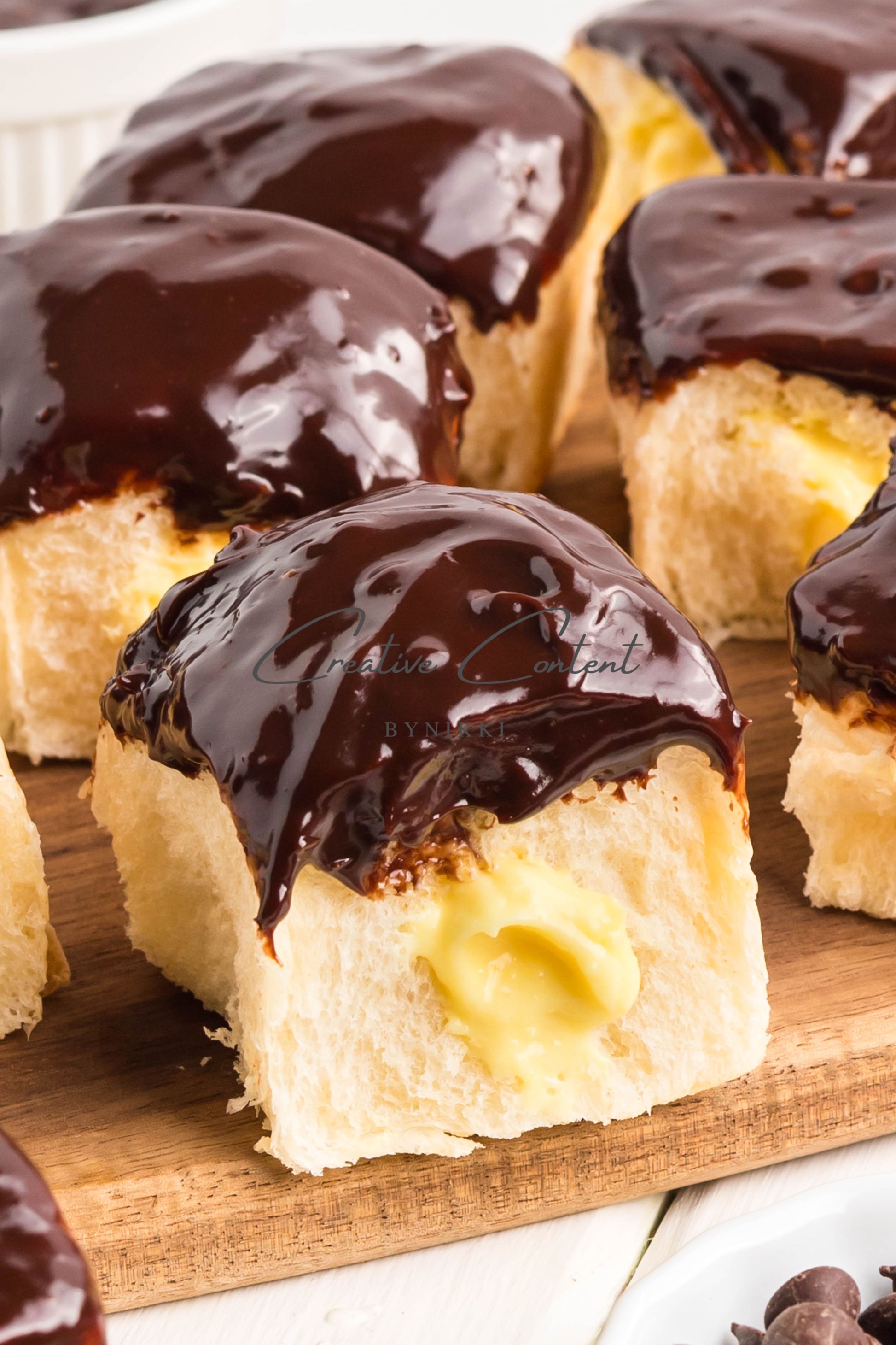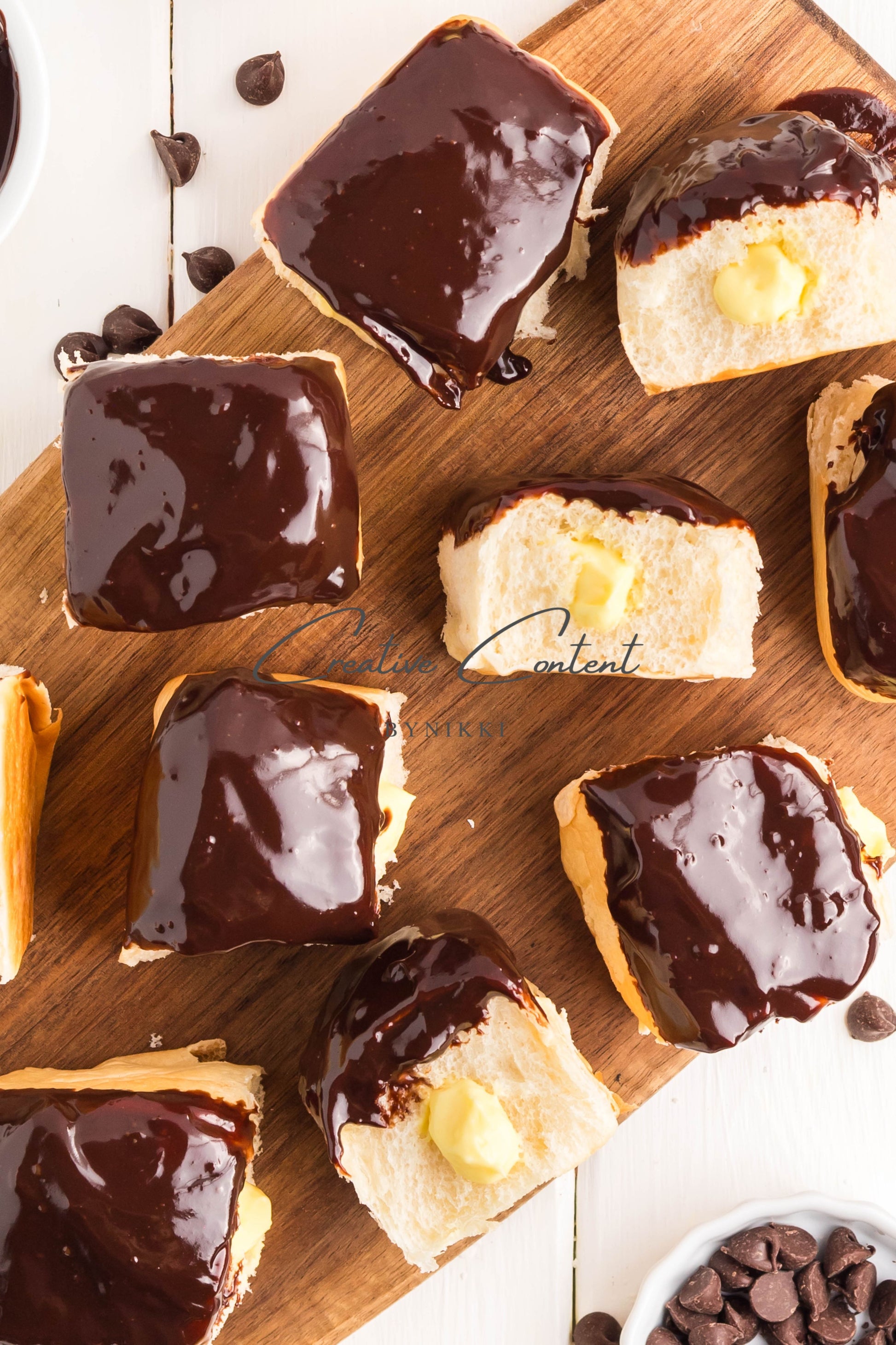The Boston Cream Pie Hawaiian Rolls are a delightful twist on the classic dessert, offering a soft and sweet bite with every mouthful. These rolls are filled with rich, creamy vanilla pudding and topped with a smooth layer of bittersweet chocolate ganache.