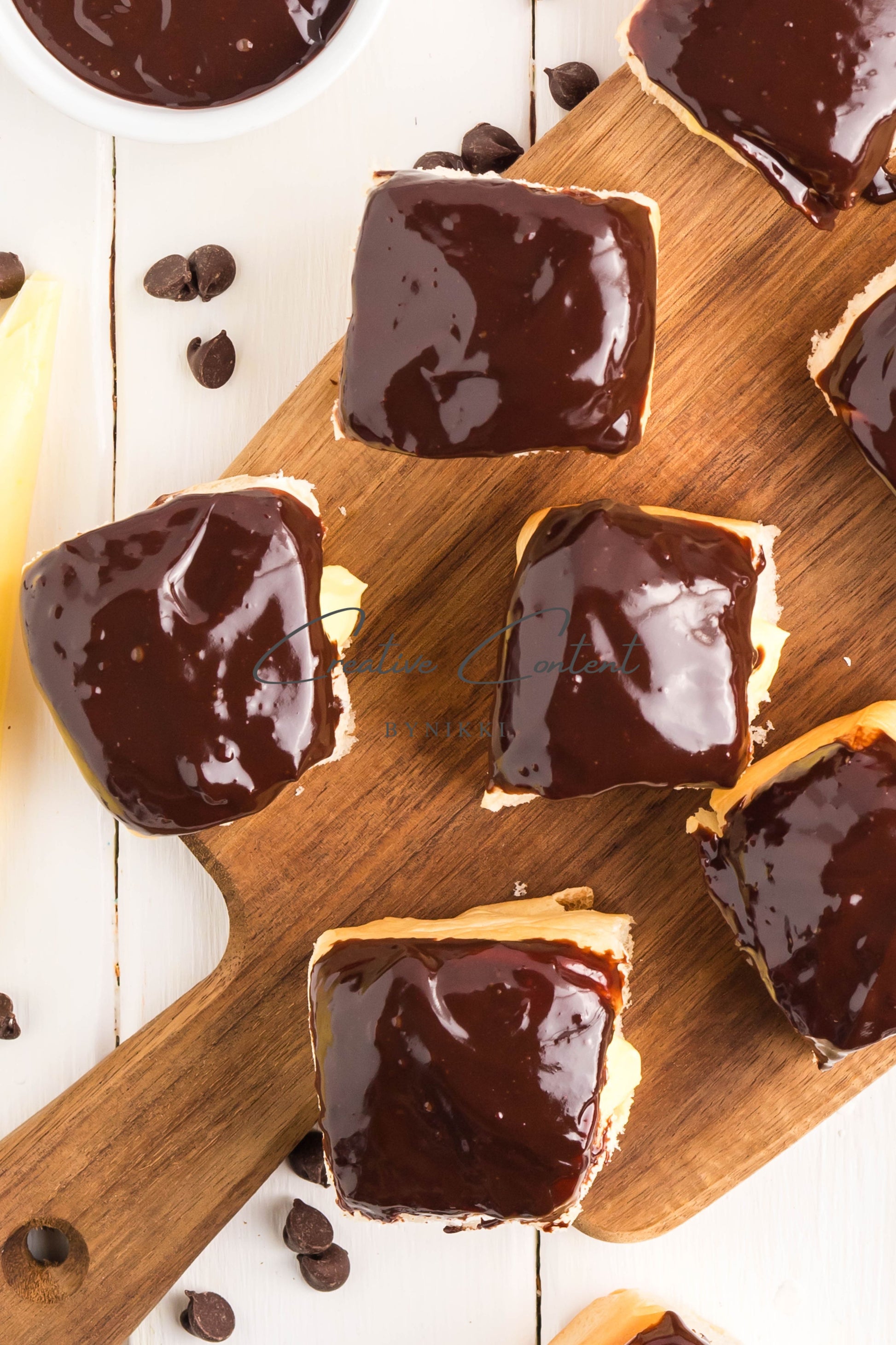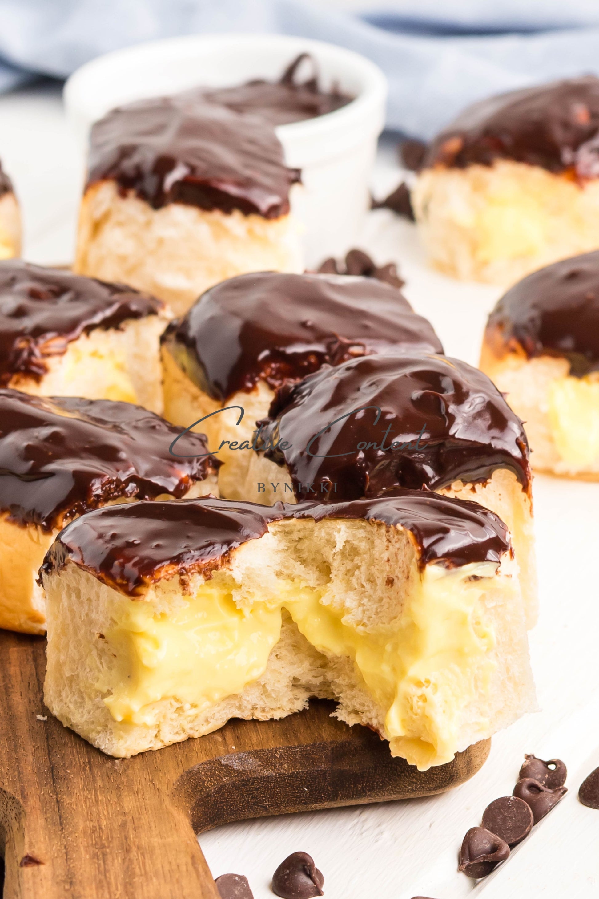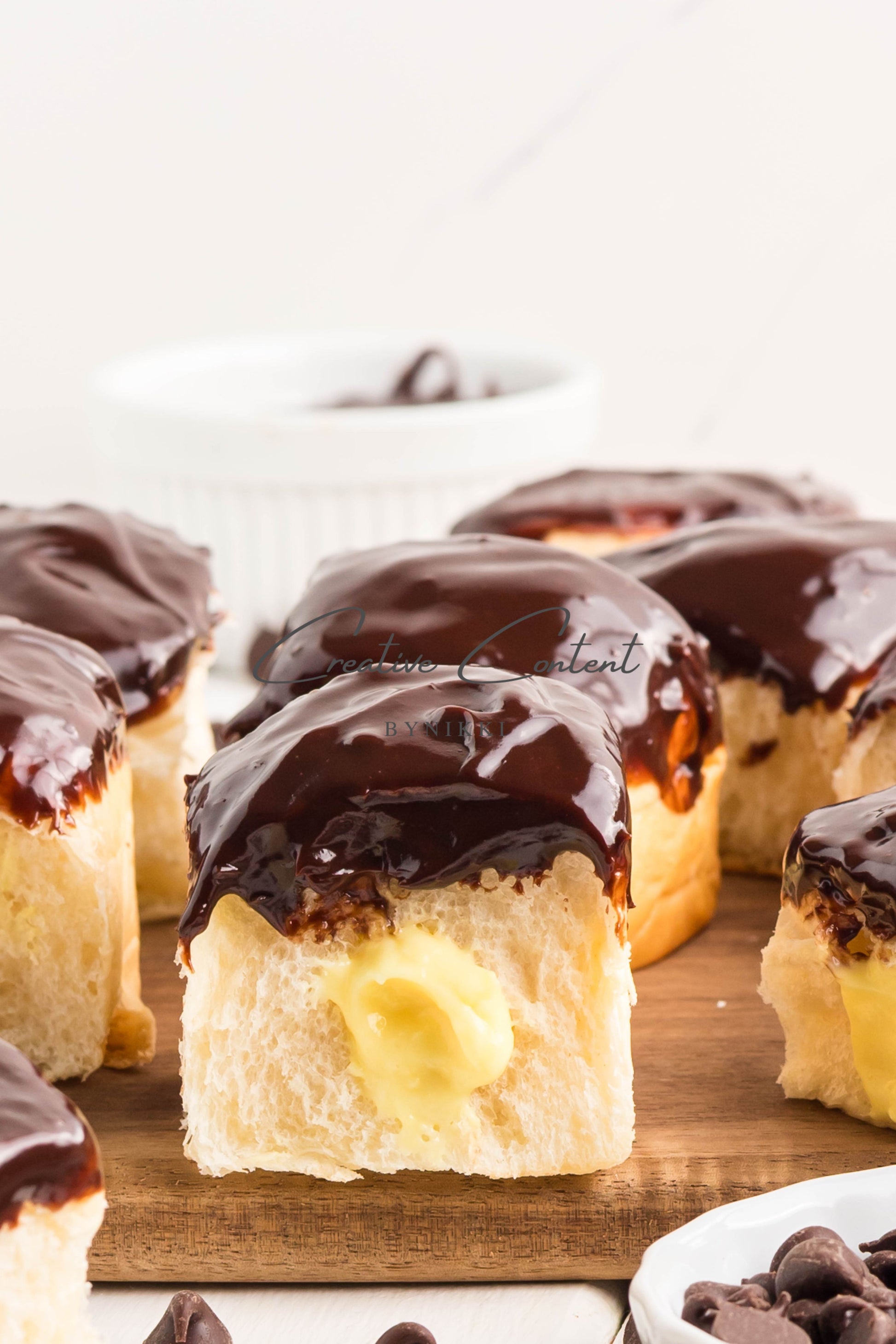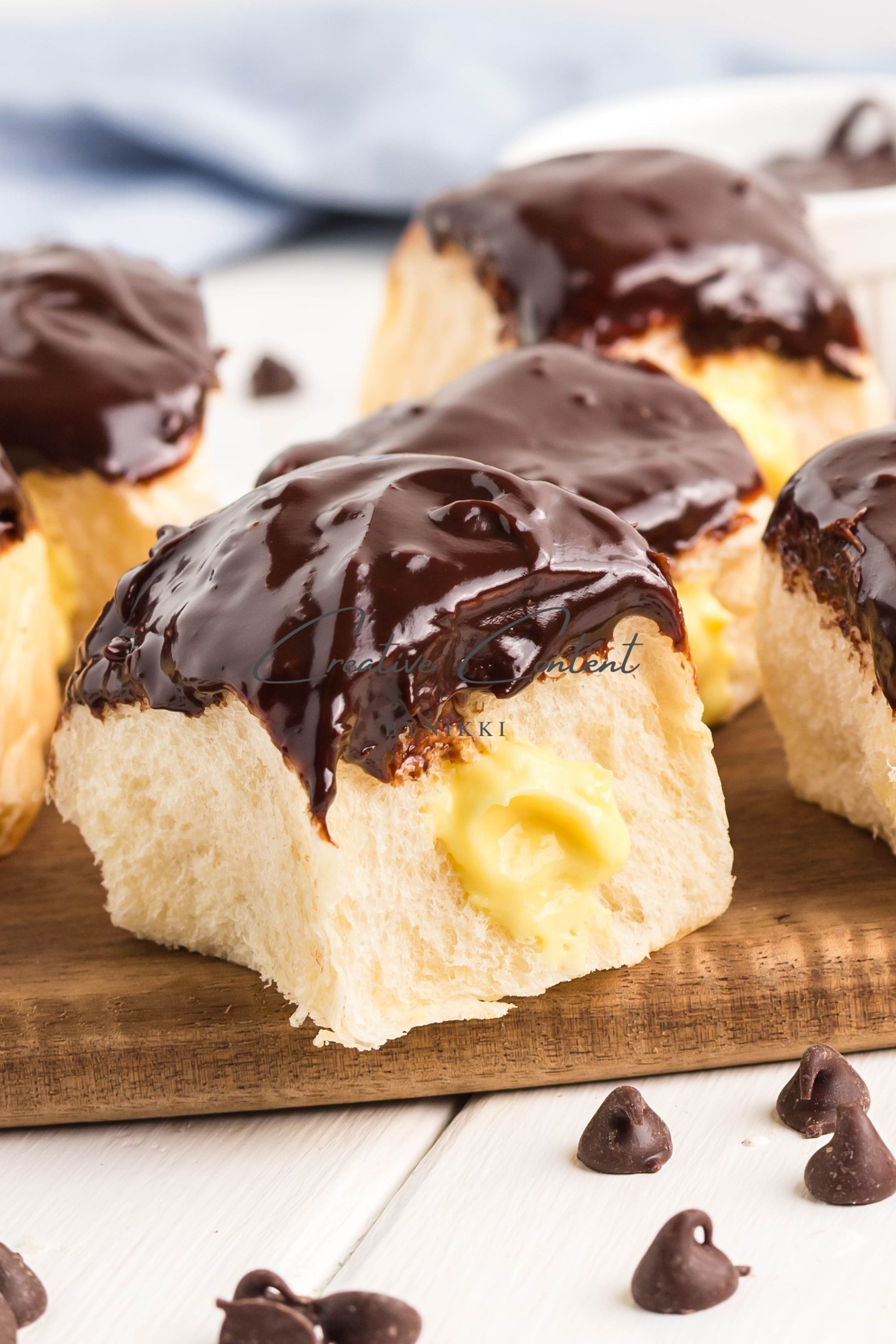 The Boston Cream Pie Hawaiian Rolls are a delightful twist on the classic dessert, offering a soft and sweet bite with every mouthful. These rolls are filled with rich, creamy vanilla pudding and topped with a smooth layer of bittersweet chocolate ganache.
