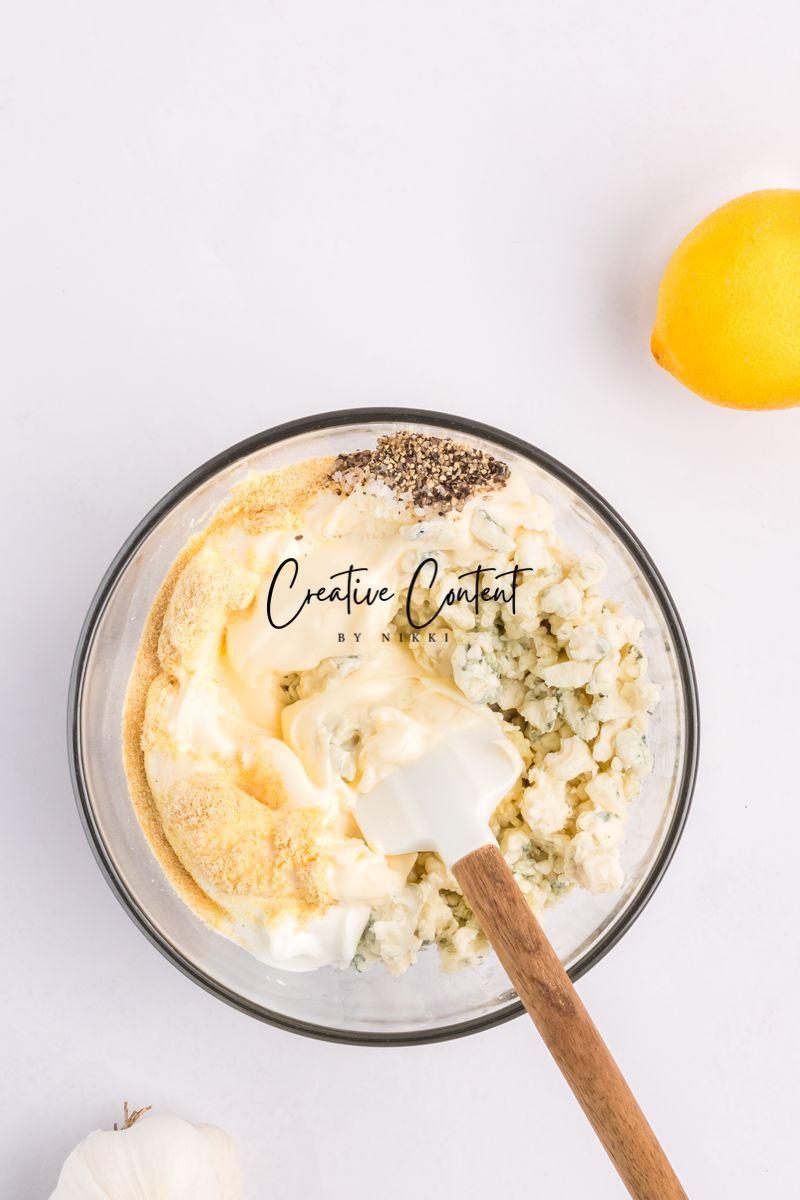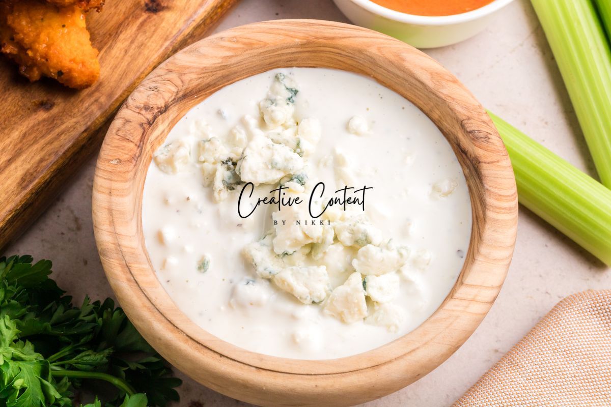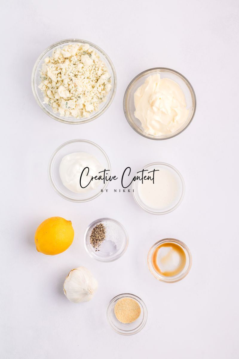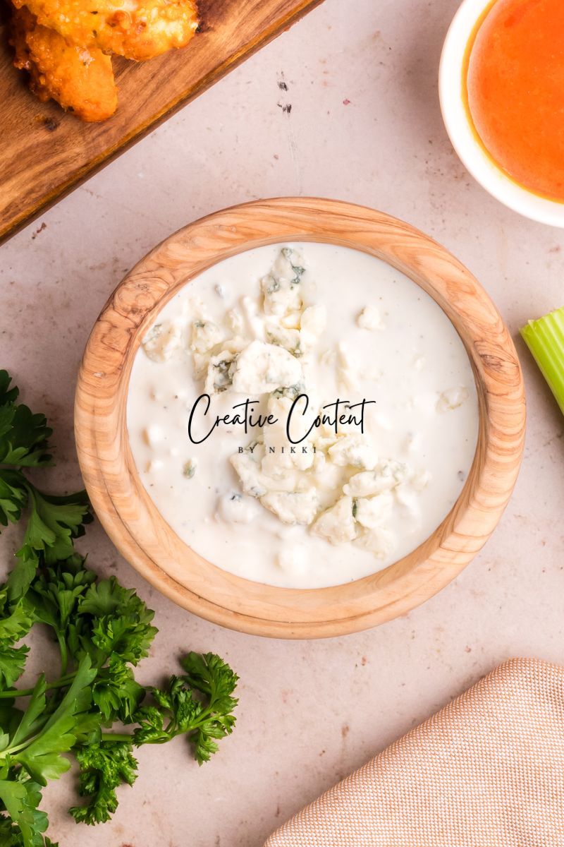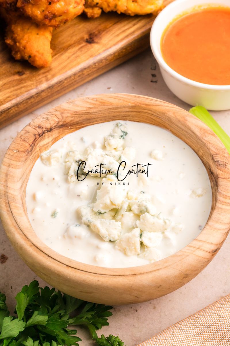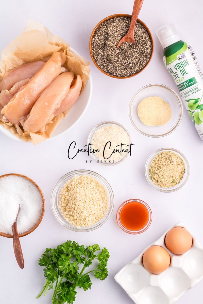 Featured Ingredients; blue cheese crumbles, mayonnaise, sour cream, garlic clove, milk, lemon juice, garlic powder, onion powder, Worcestershire sauce, coarse kosher salt, black pepper, eggs, hot sauce, chicken tenderloin, panko breadcrumbs, parmesan cheese, breadcrumbs, oil spray, and parsley.