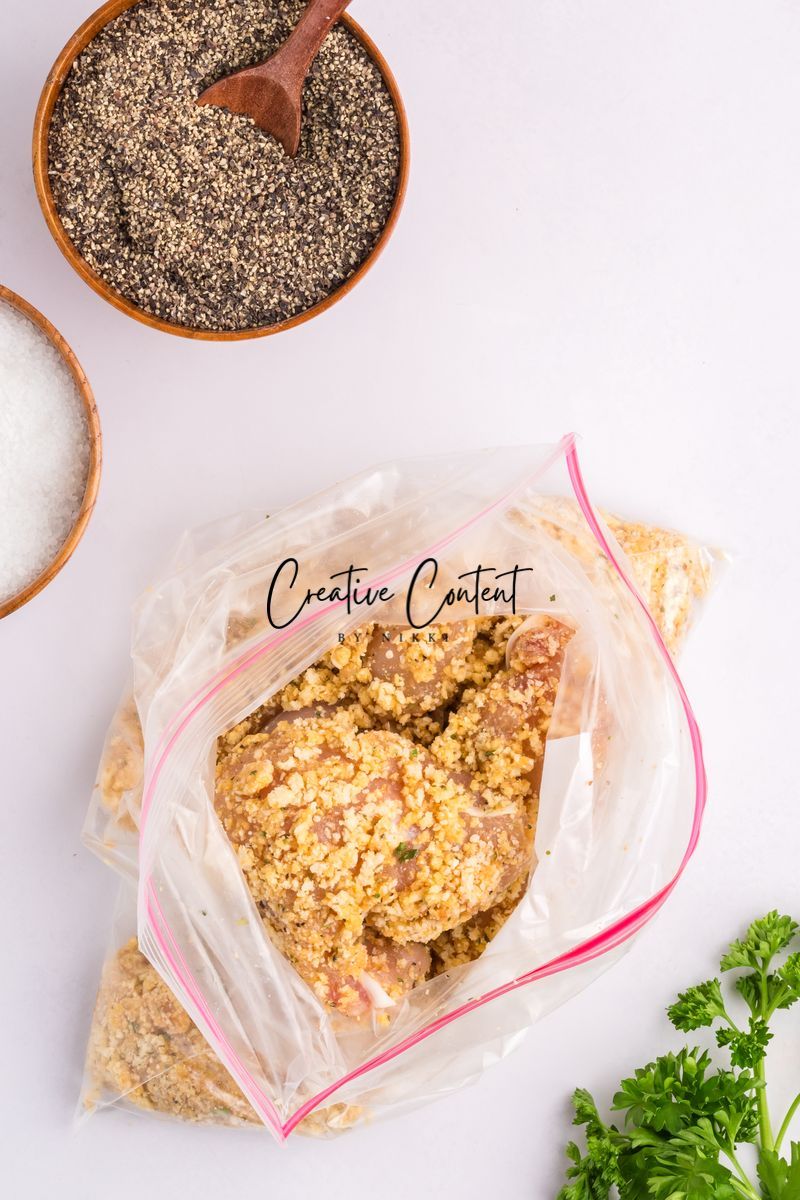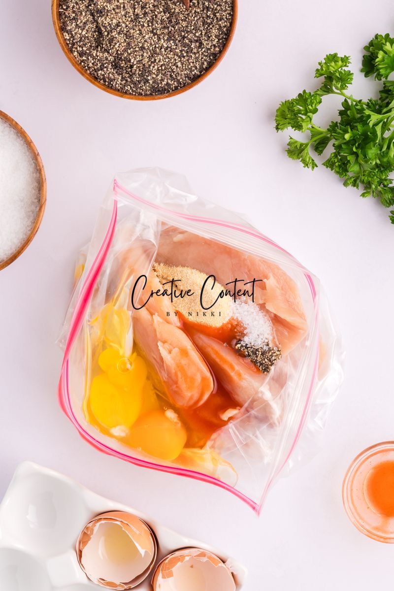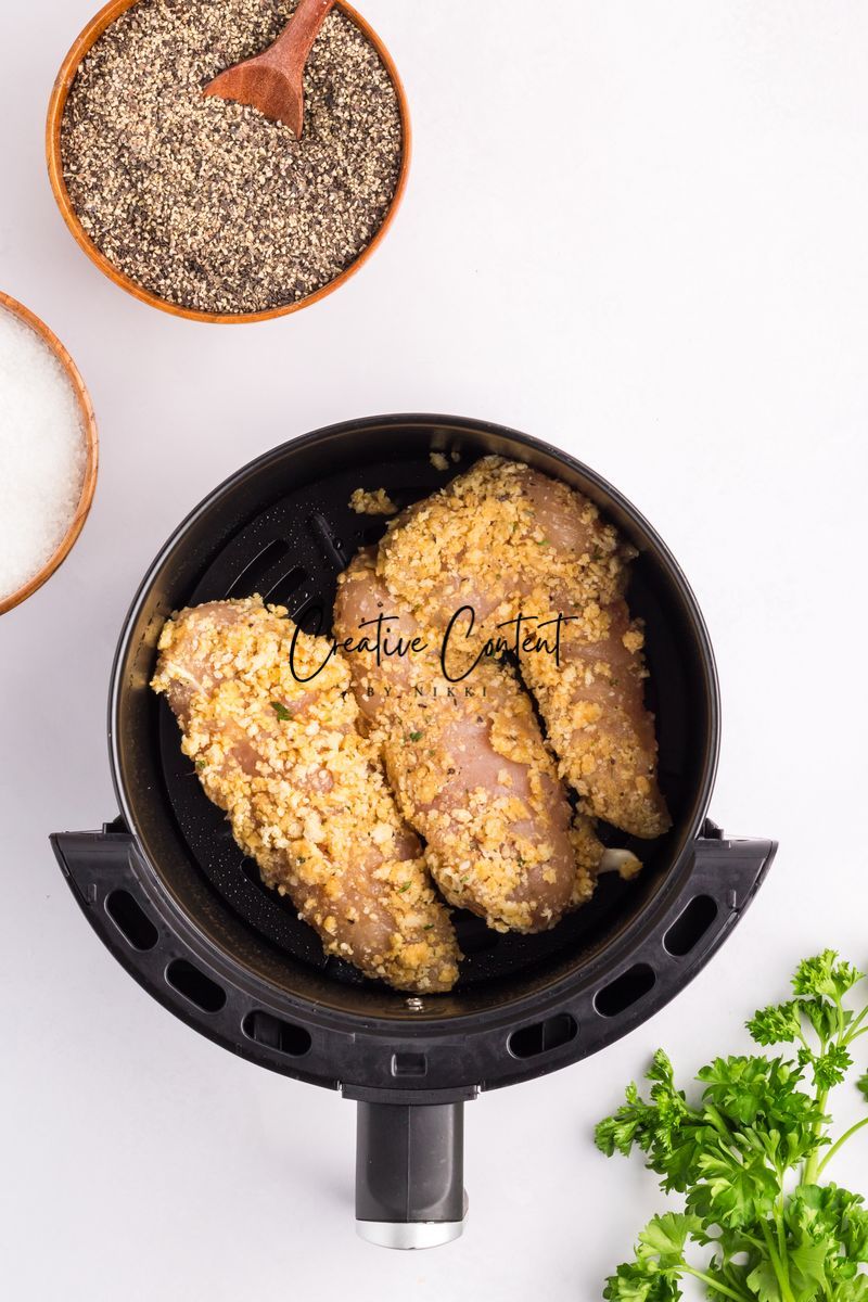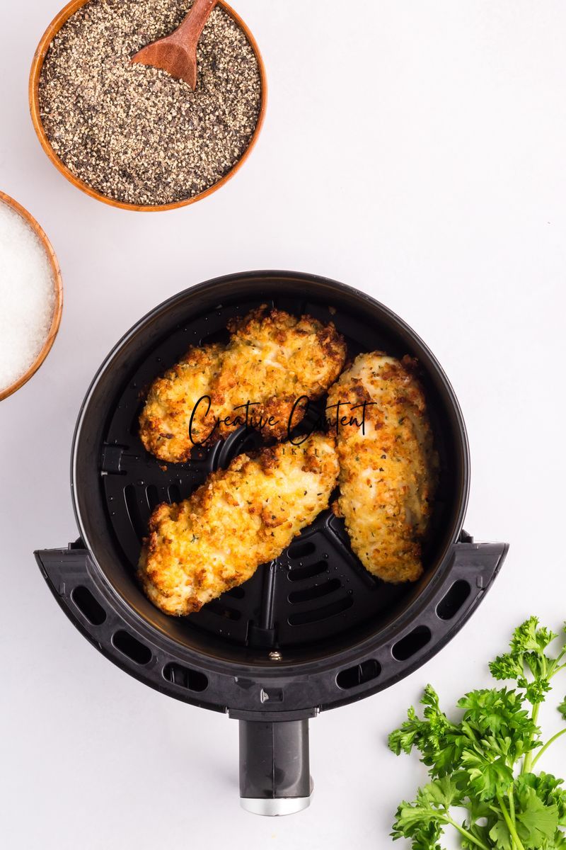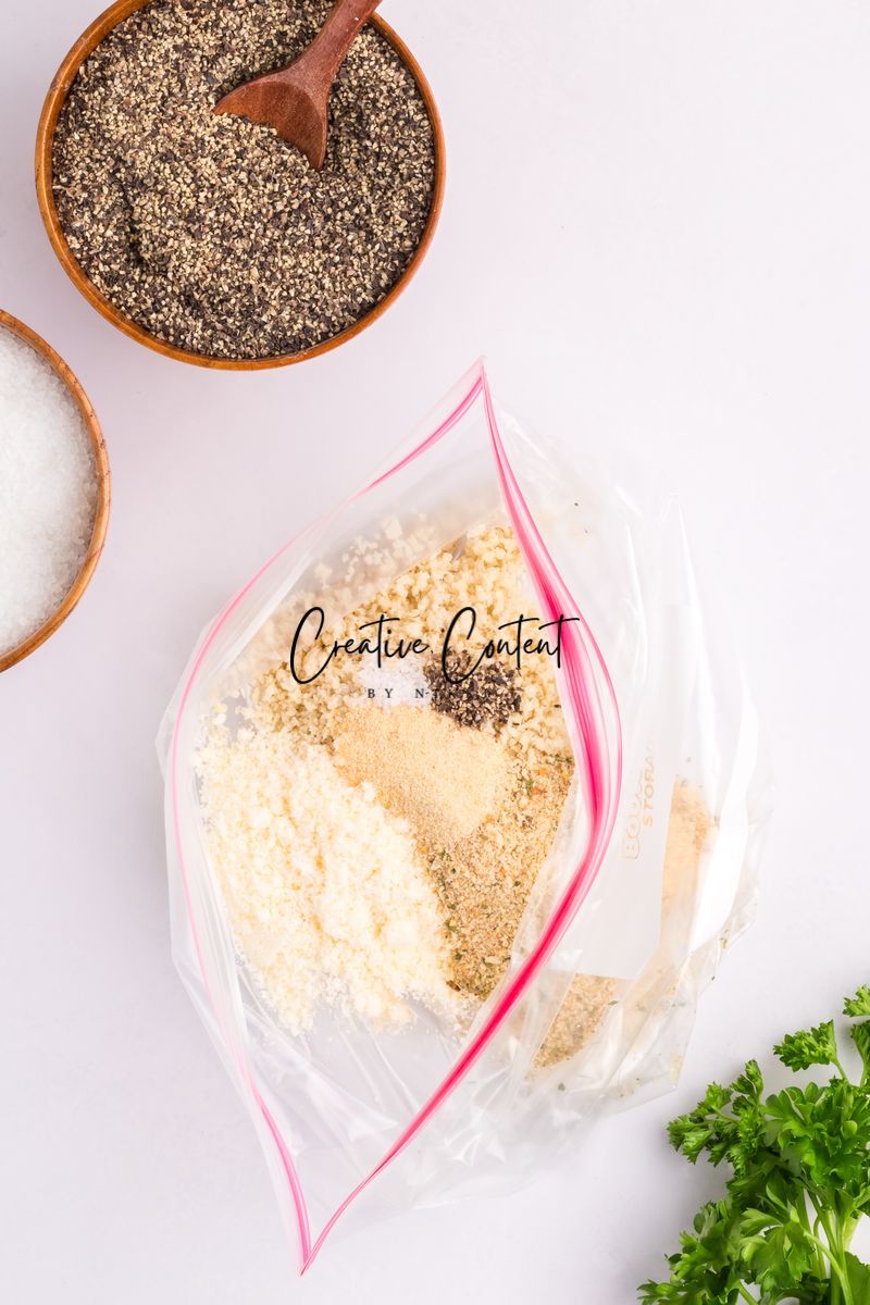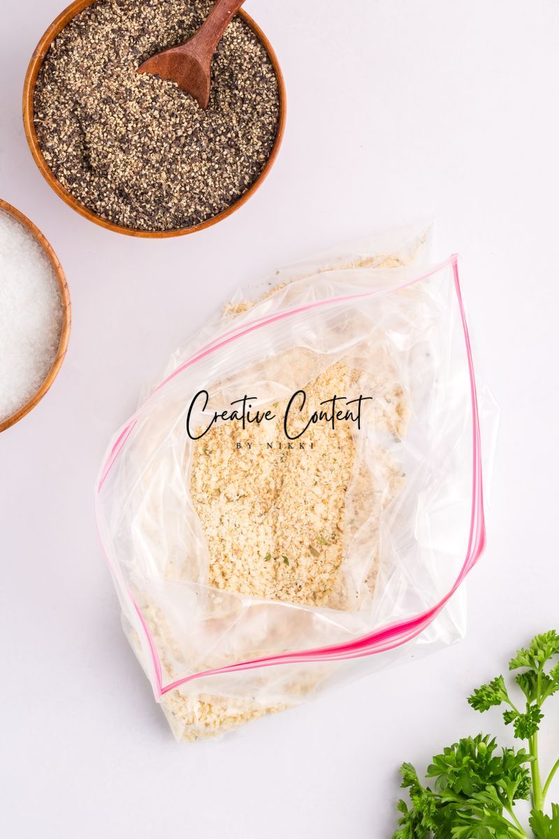 Featured Ingredients; blue cheese crumbles, mayonnaise, sour cream, garlic clove, milk, lemon juice, garlic powder, onion powder, Worcestershire sauce, coarse kosher salt, black pepper, eggs, hot sauce, chicken tenderloin, panko breadcrumbs, parmesan cheese, breadcrumbs, oil spray, and parsley.