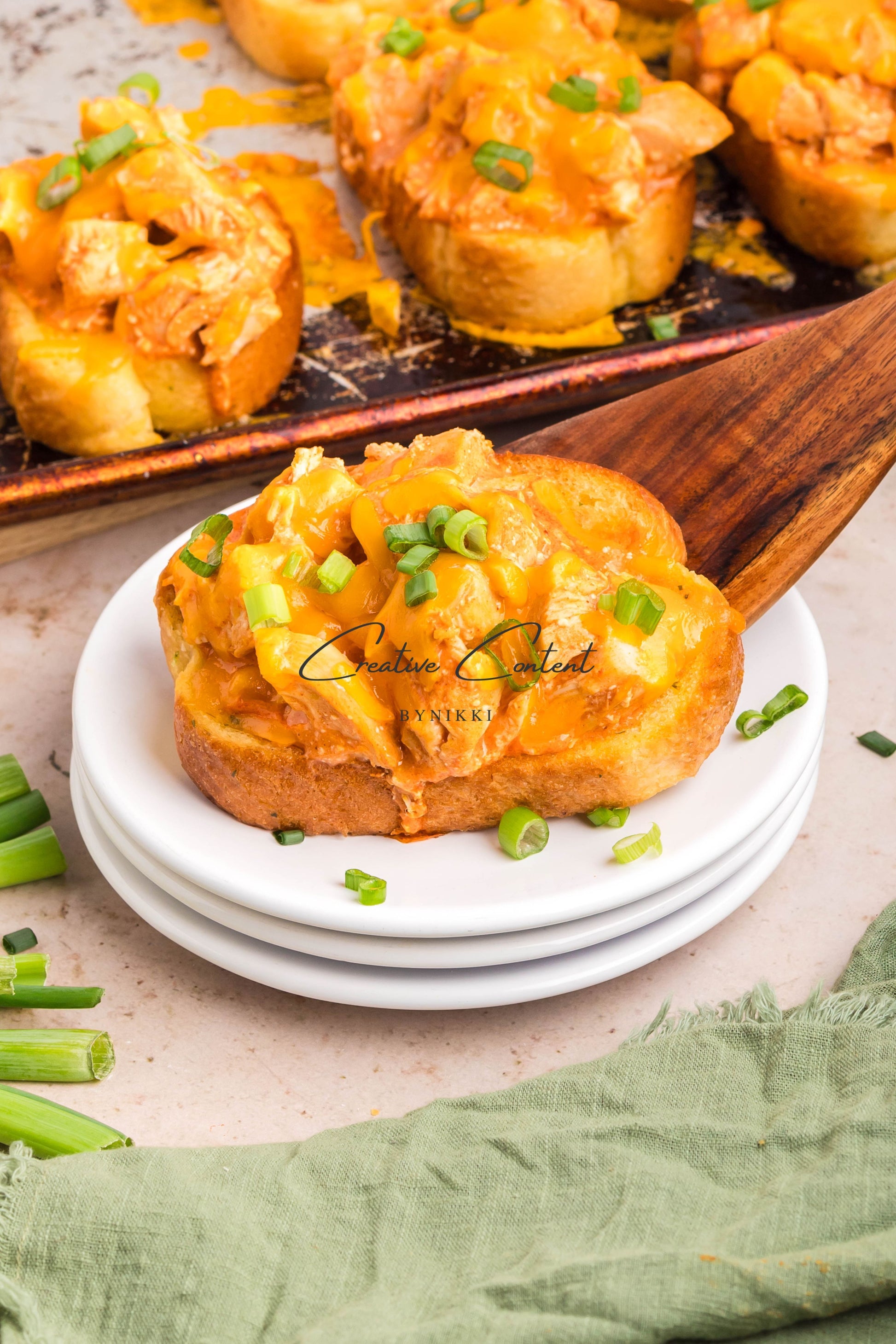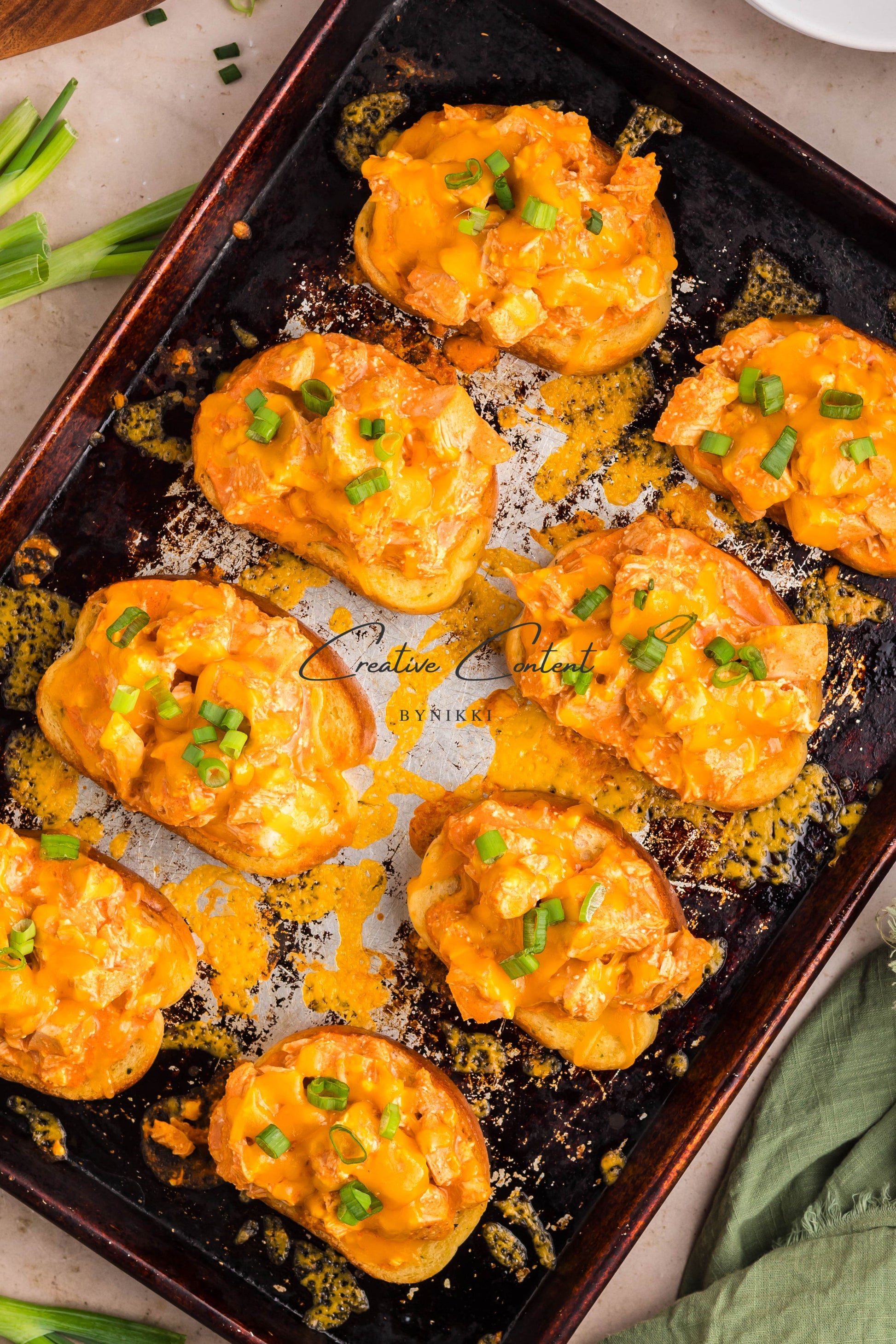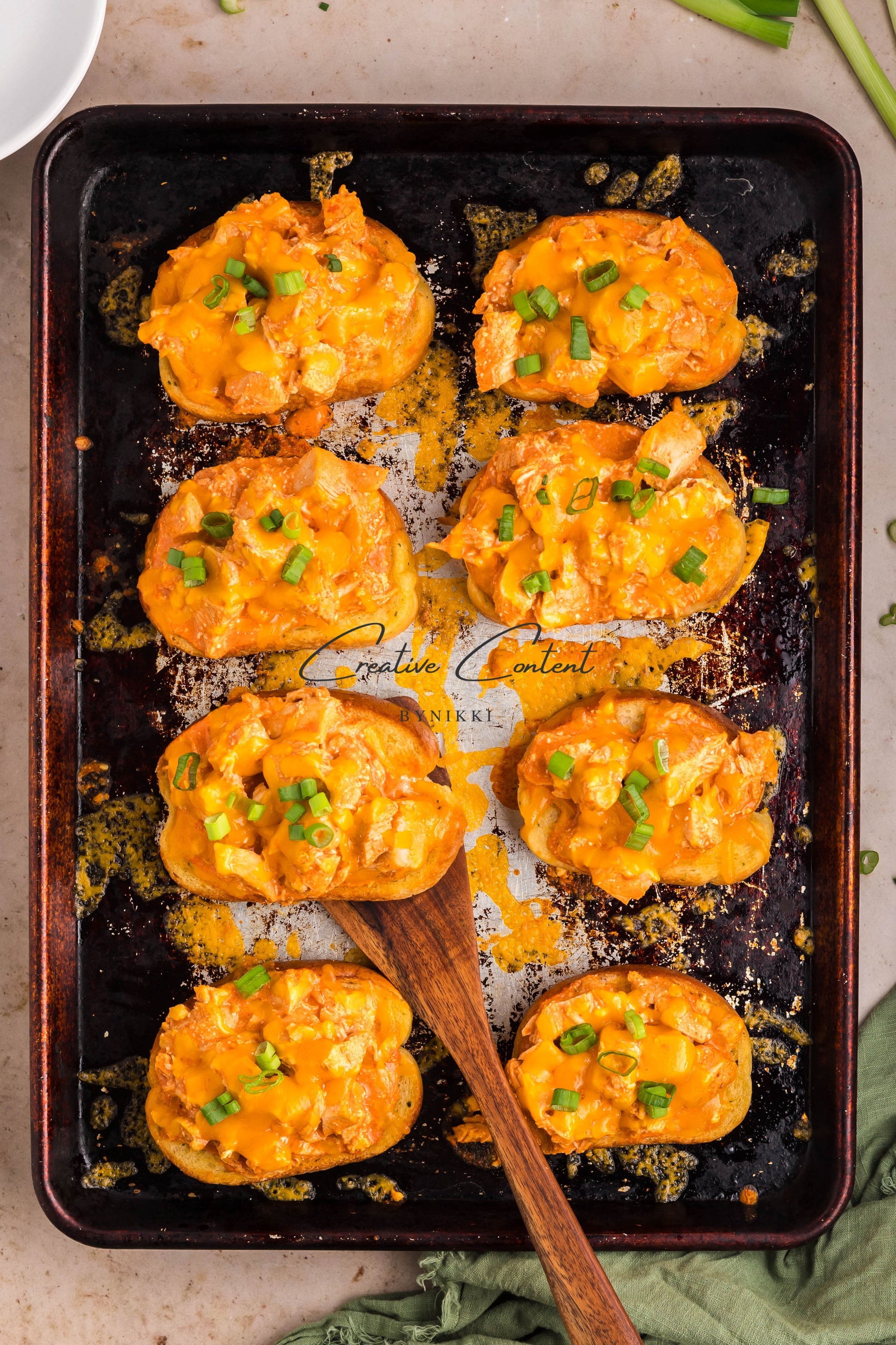 - Ingredients: Chicken breast, buffalo sauce, cream cheese, frozen garlic Texas toast, shredded cheese, green onions.