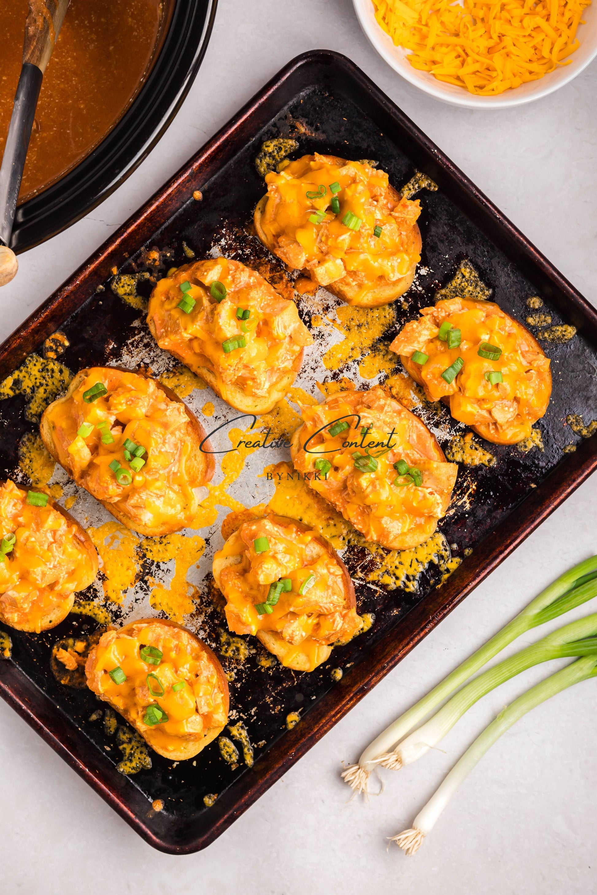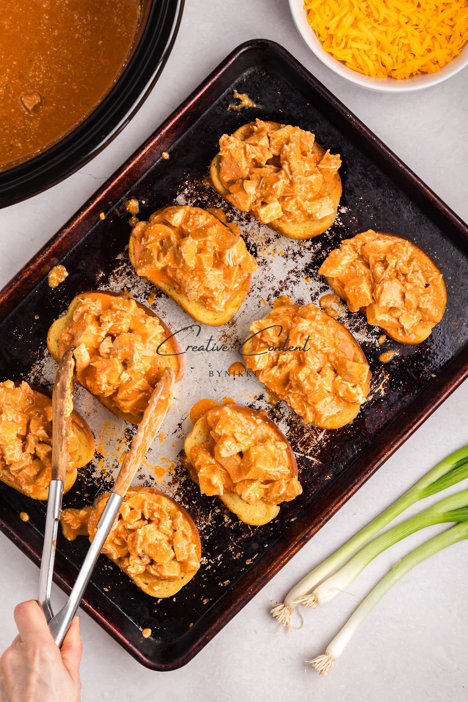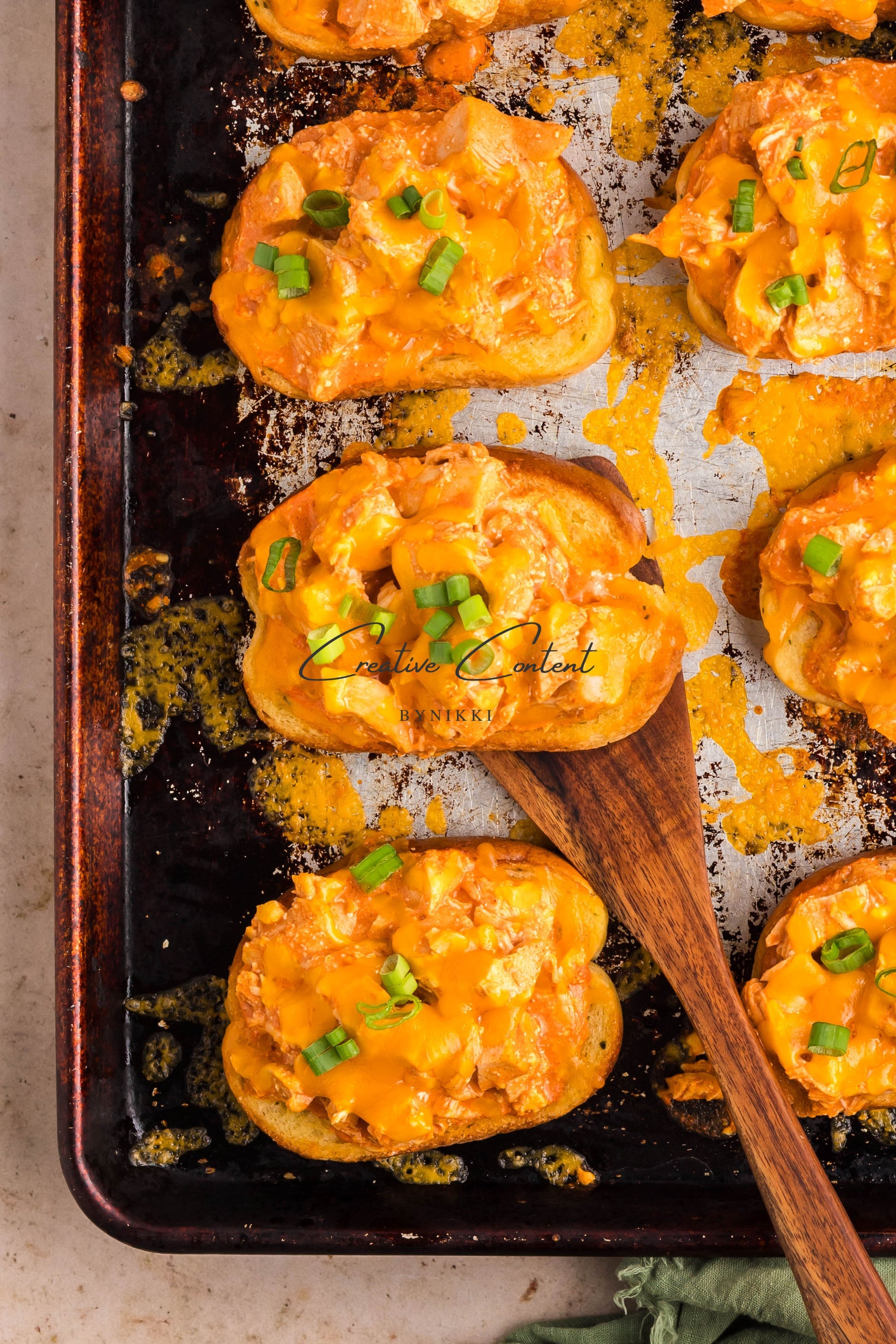 - Ingredients: Chicken breast, buffalo sauce, cream cheese, frozen garlic Texas toast, shredded cheese, green onions.