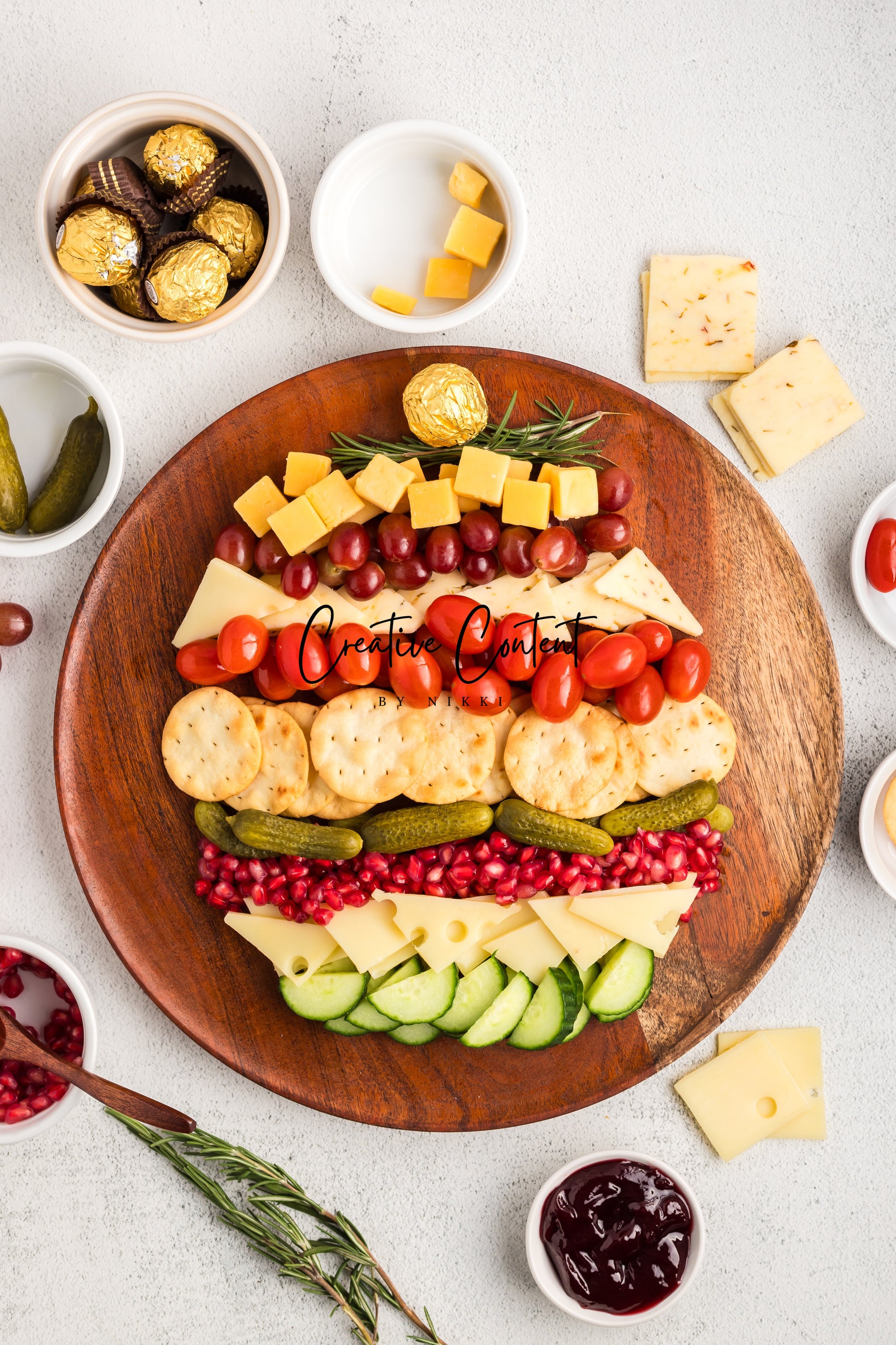 This Charcuterie Board is beautifully shaped like an ornament, making it a festive centerpiece for the holidays. It’s the perfect appetizer to impress your guests and add a special touch to your celebration. With a variety of cheeses, fruits, and crackers, it’s as delicious as it is eye-catching. Elevate your holiday spread and watch your guests marvel at this stunning creation.