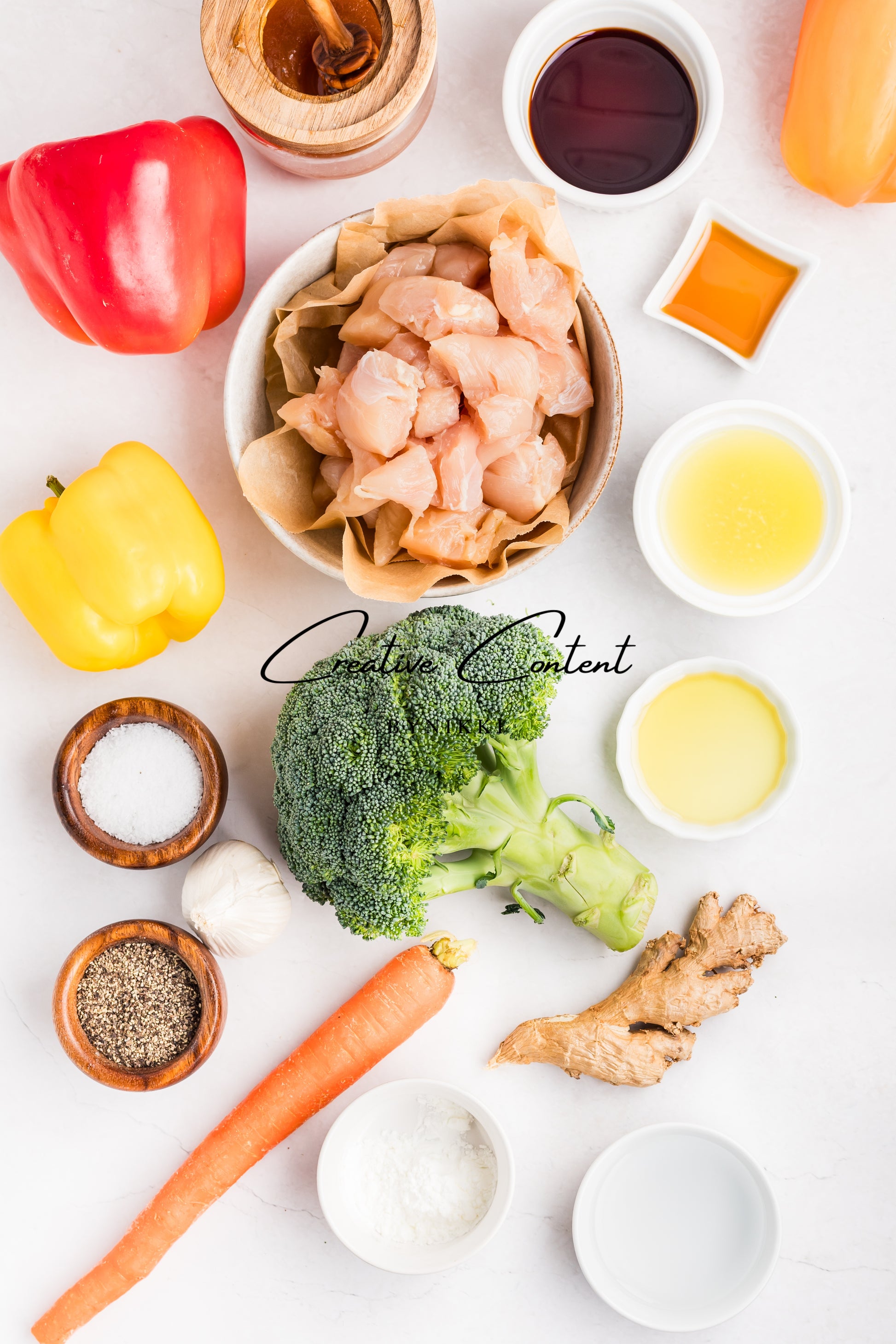 - Featured Ingredients: Cornstarch, water, avocado oil, chicken, coarse kosher salt, black pepper, broccoli, bell peppers, carrots, low-sodium chicken stock, honey, low-sodium soy sauce, sesame oil, garlic cloves, ginger