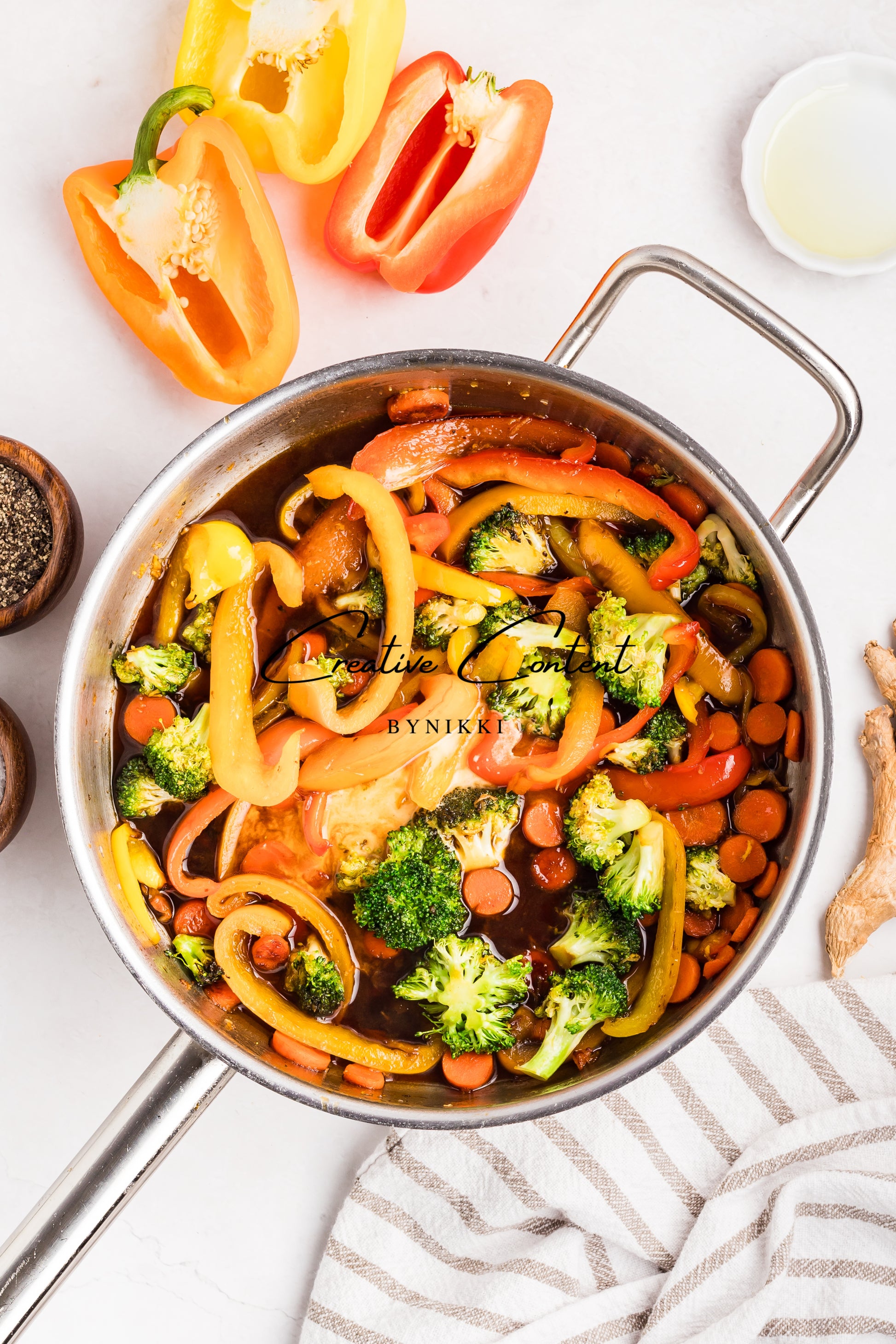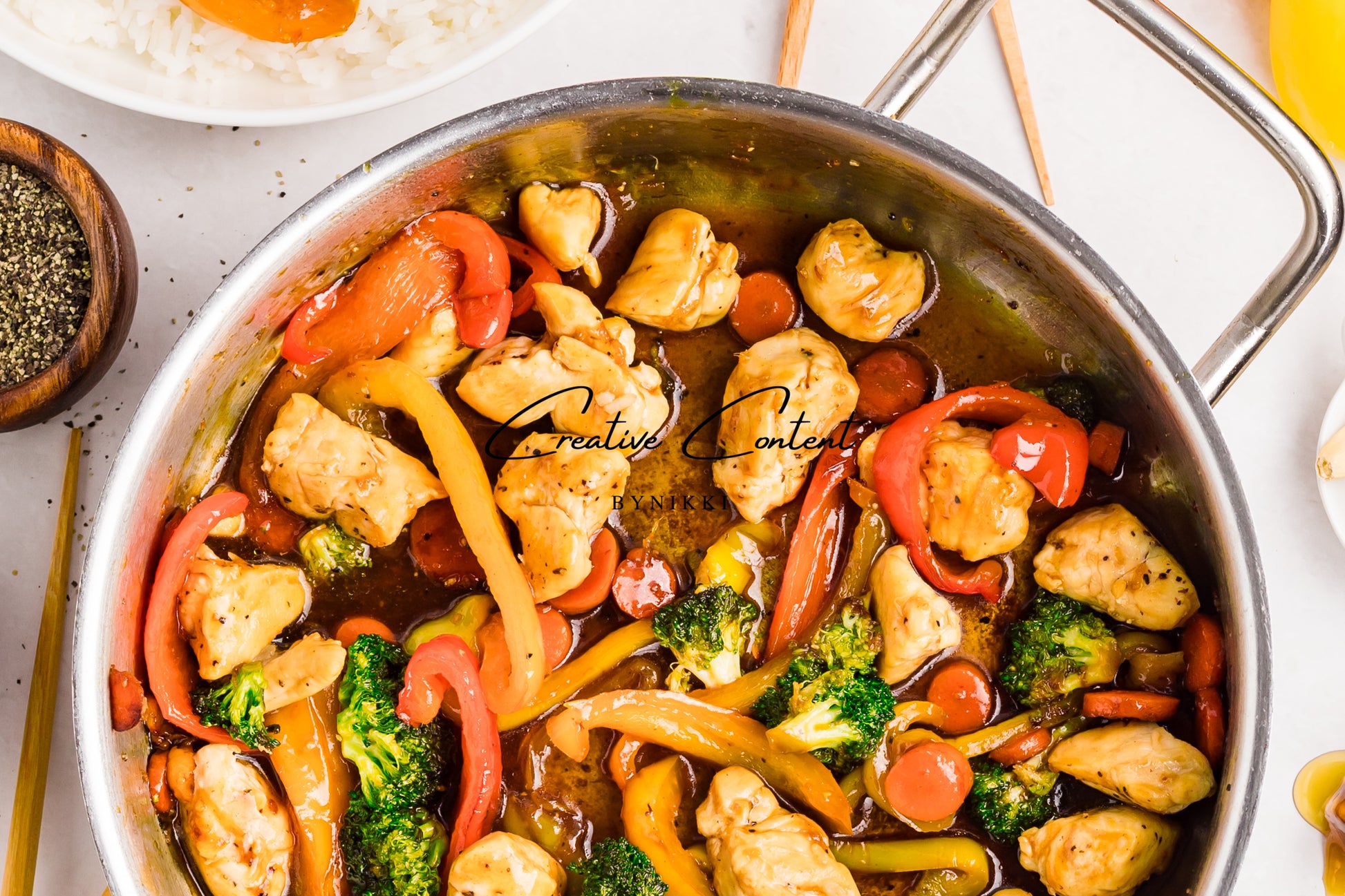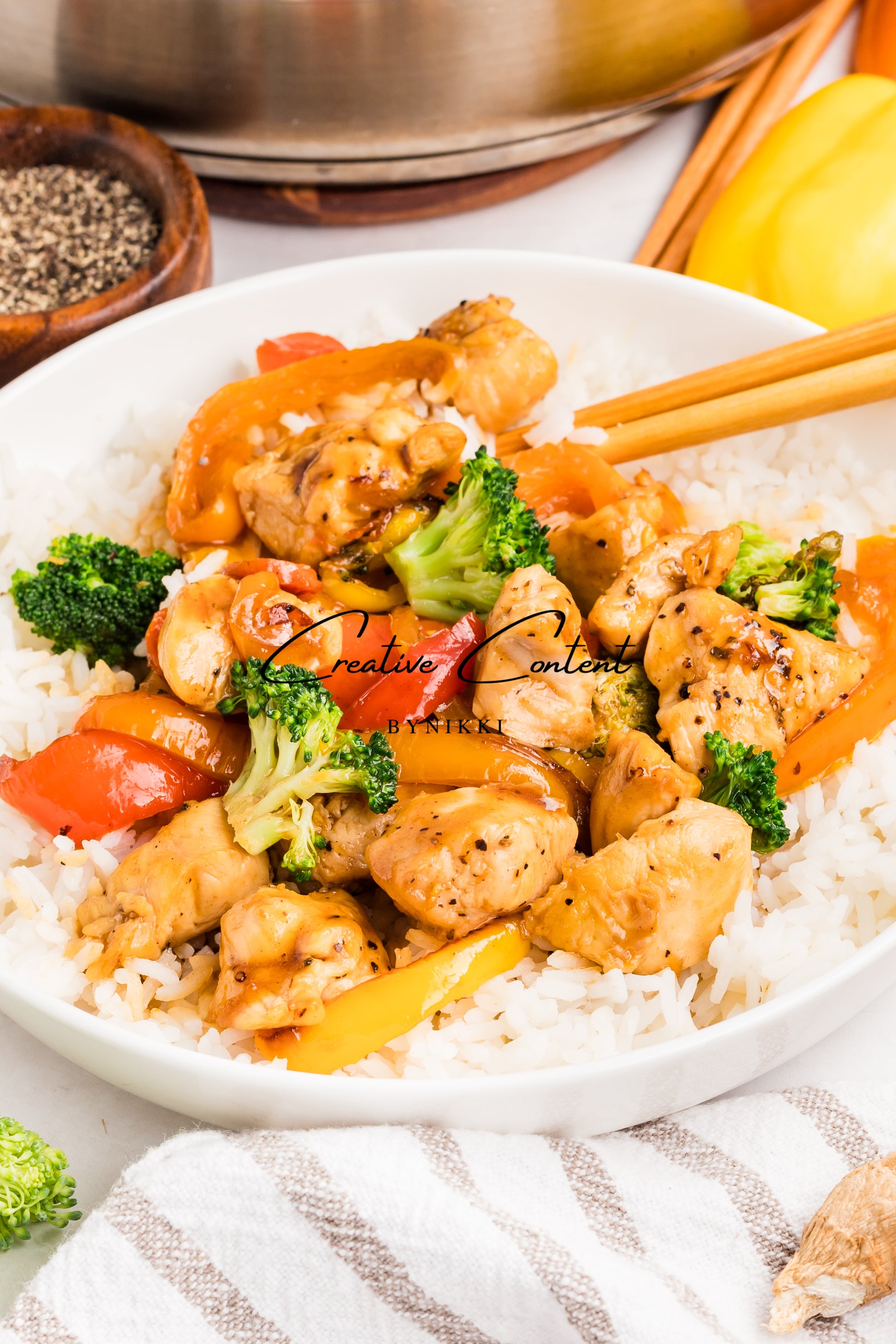 This chicken and vegetable stir-fry is loaded with juicy chicken, fresh broccoli, bell peppers, and carrots. All coated in a sweet, savory Asian sauce. Served over rice and is a meal you will choose to make at home over going to your local Chinese restaurant.