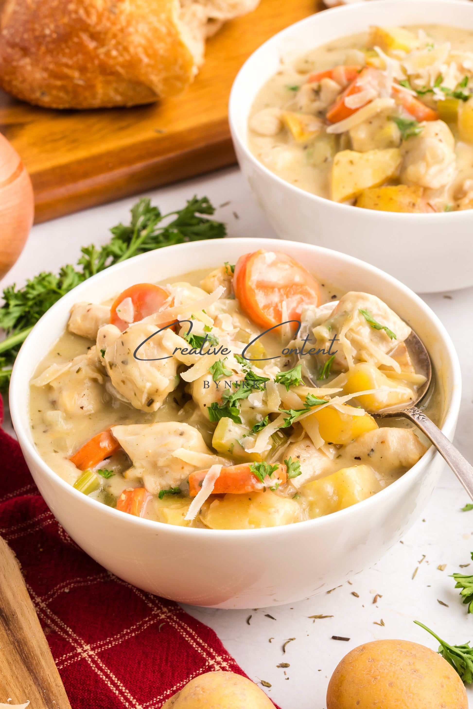 Chicken stew is a warm, comforting dish loaded with carrots, potatoes, and chicken, seasoned to perfection. This is a stew the whole family will love, and it is budget-friendly and includes many pantry items you already have. This is a hearty dish loaded with protein and vegetables.
