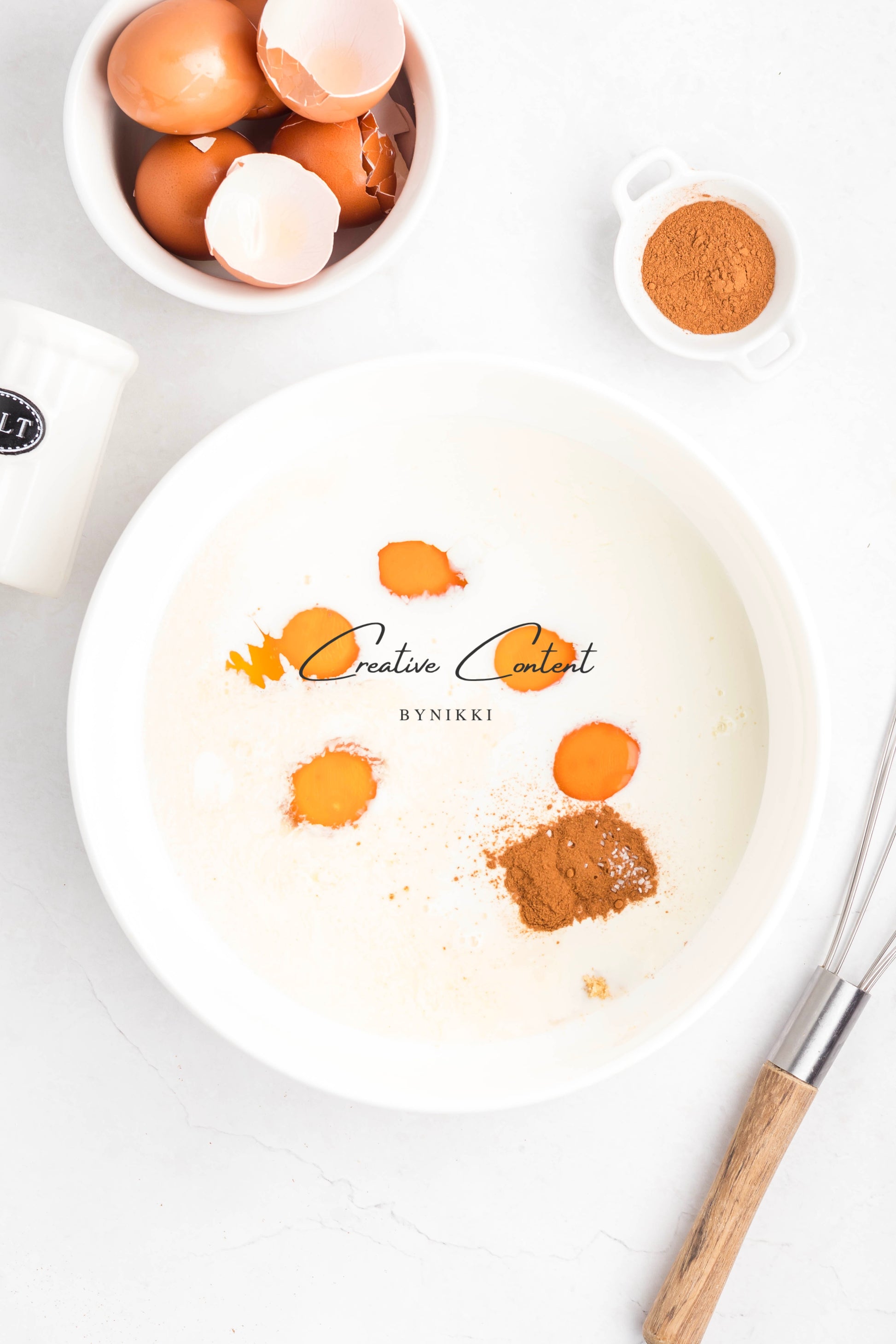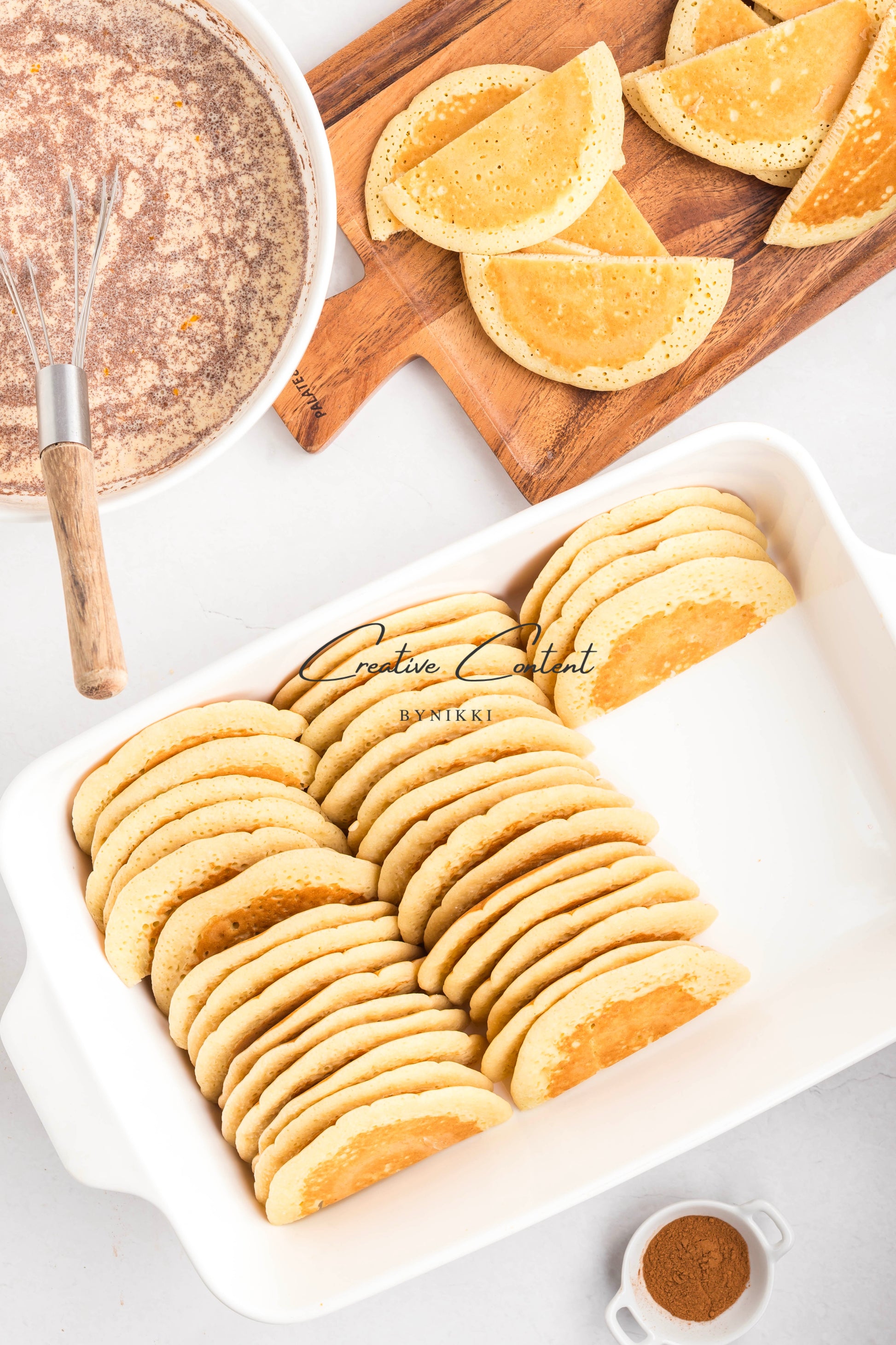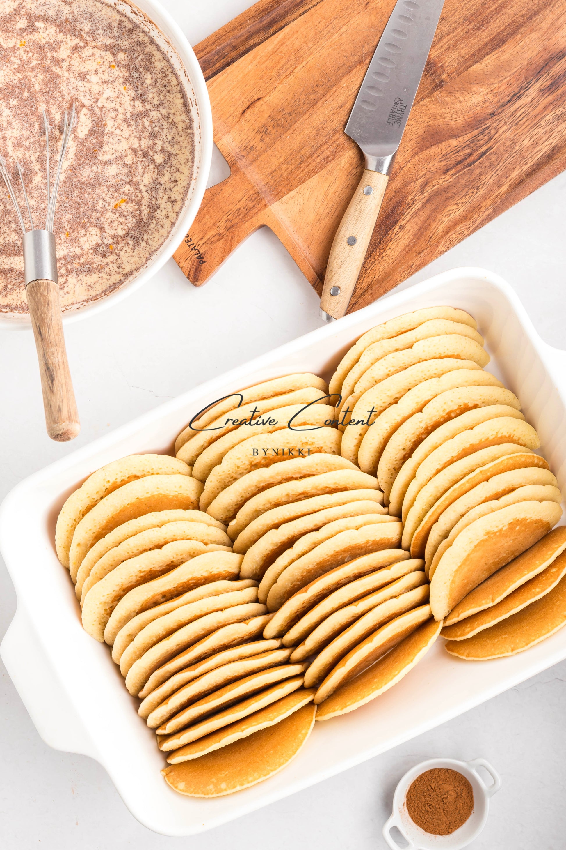 - Featured Ingredients; store-bought or homemade pancakes, eggs, heavy cream, milk, light brown sugar, cinnamon, vanilla extract, coarse kosher salt, and chocolate chips