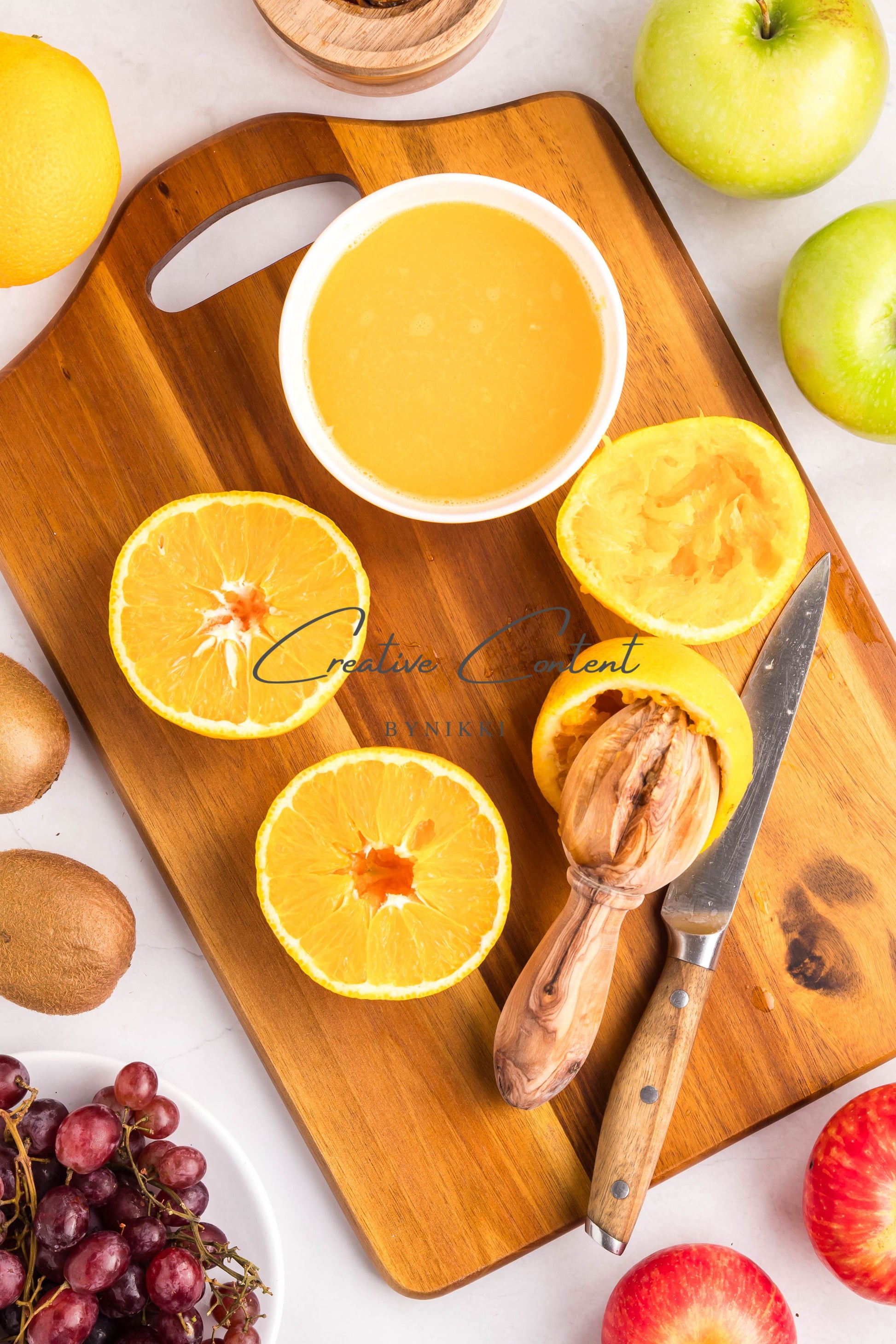 - Ingredients: green apples, red apples, kiwis, pomegranate, oranges, honey, red grapes, sugar