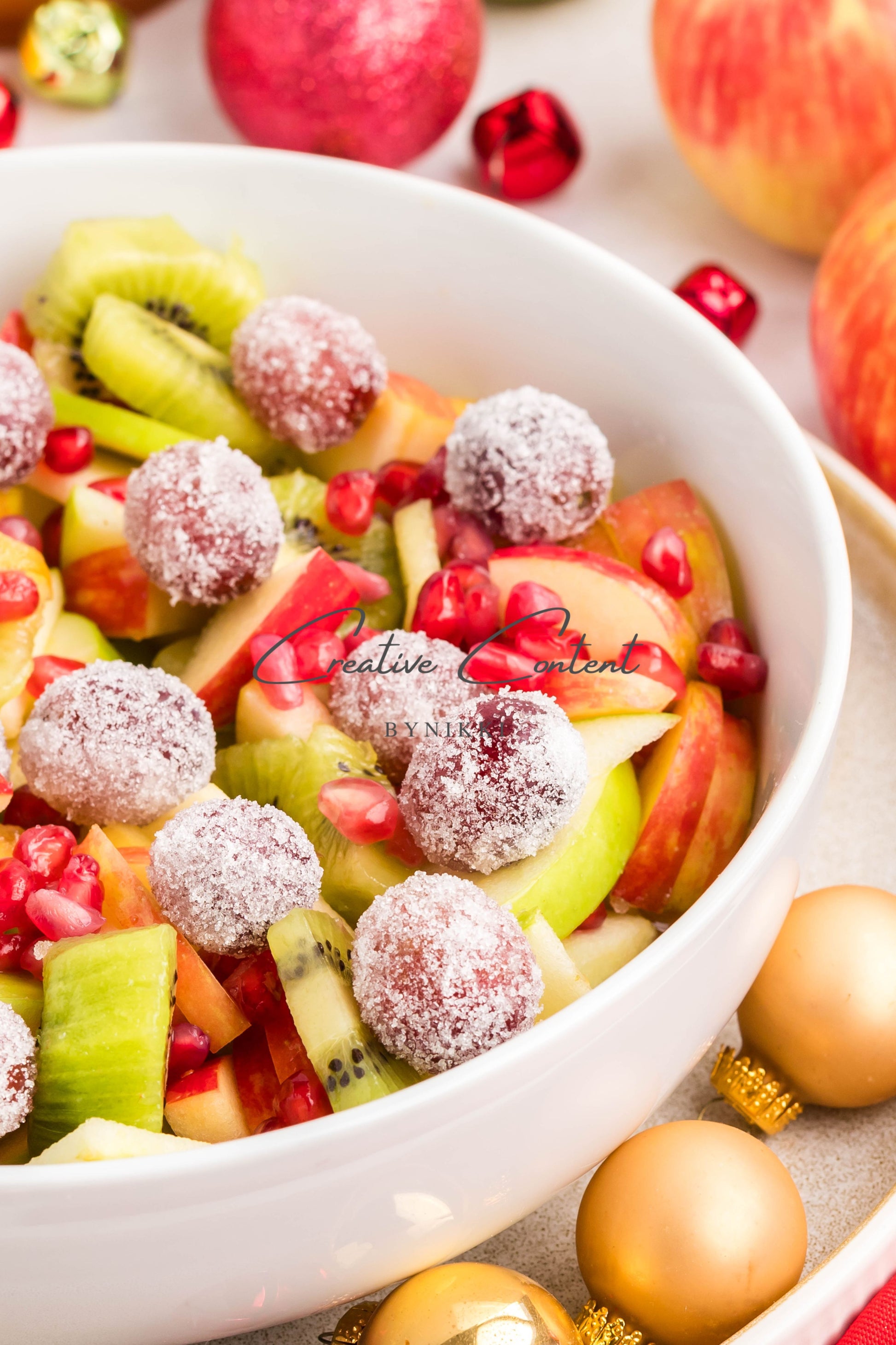 This red and green Christmas fruit salad is loaded with apples, kiwis, pomegranate seeds, and frosty coated grapes for the perfect salad for your Christmas festivities. The sweet coating of the freshly squeezed orange juice and honey is the perfect coating for the salad. We love having this Christmas morning.