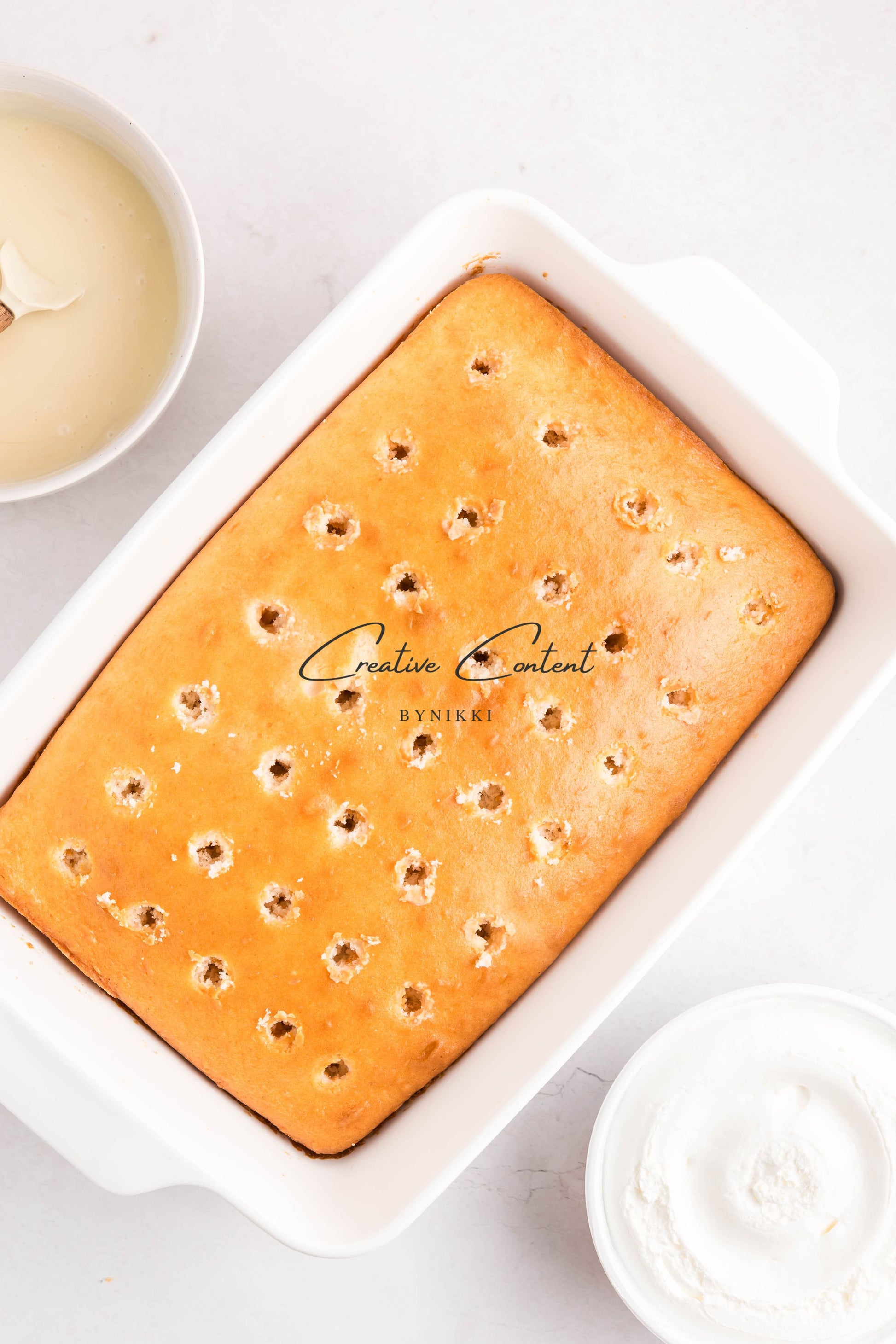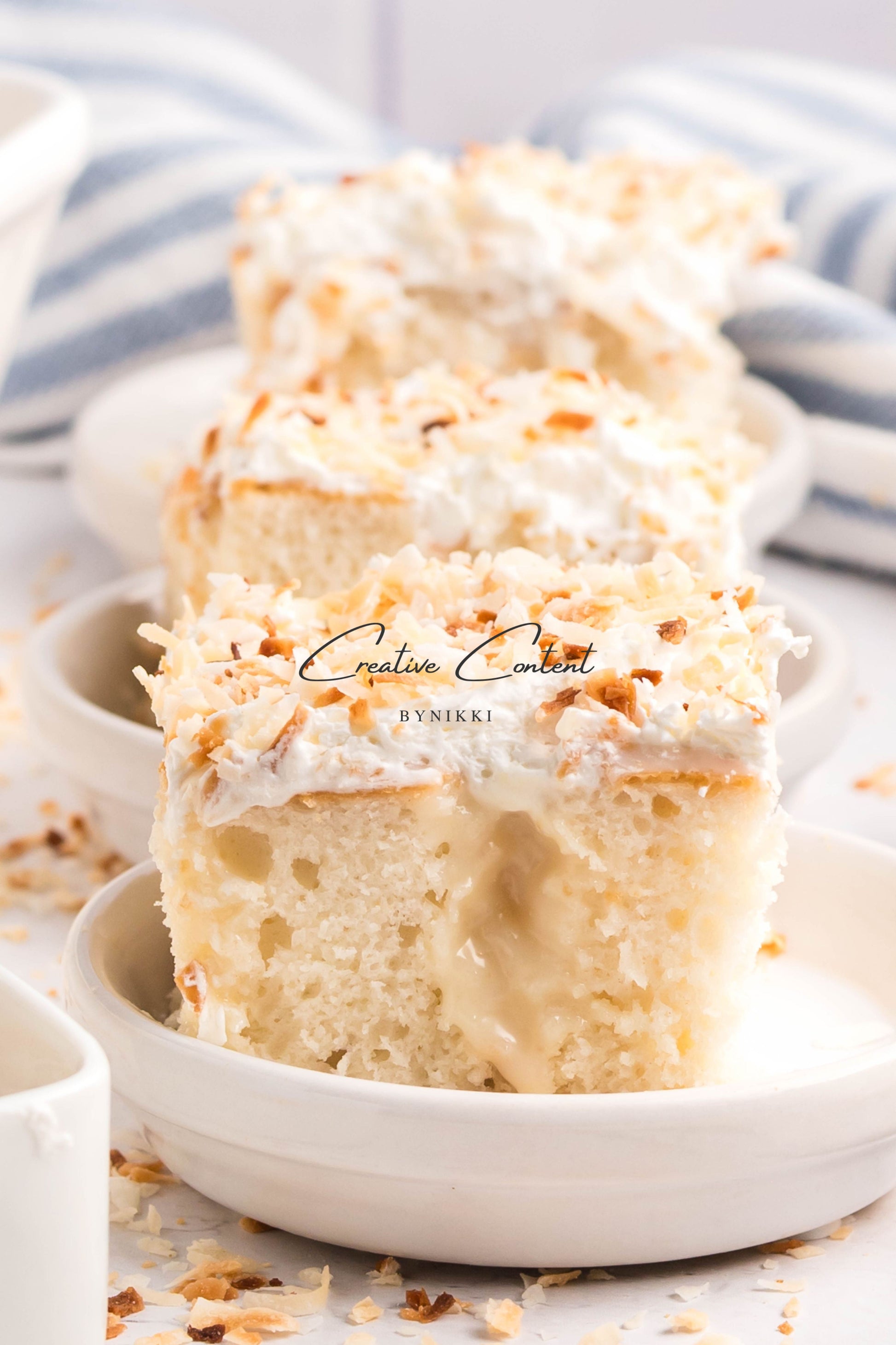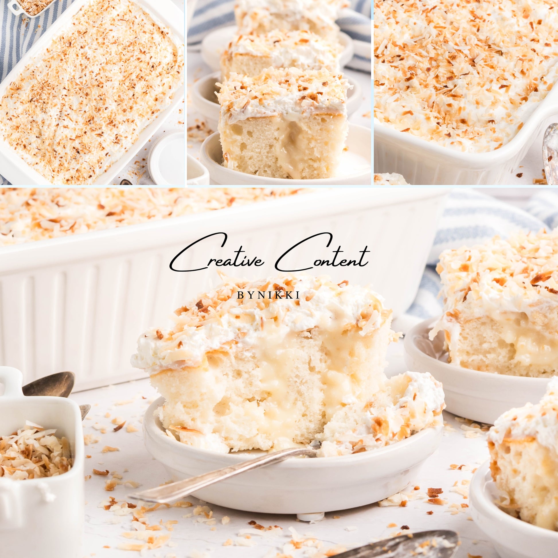 This Coconut Poke Cake is a delightful dessert that’s sure to satisfy your sweet tooth. The soft, moist cake is infused with coconut flavor and topped with a rich, creamy layer. Sweetened condensed milk and cream of coconut soak into the cake, creating a melt-in-your-mouth texture.