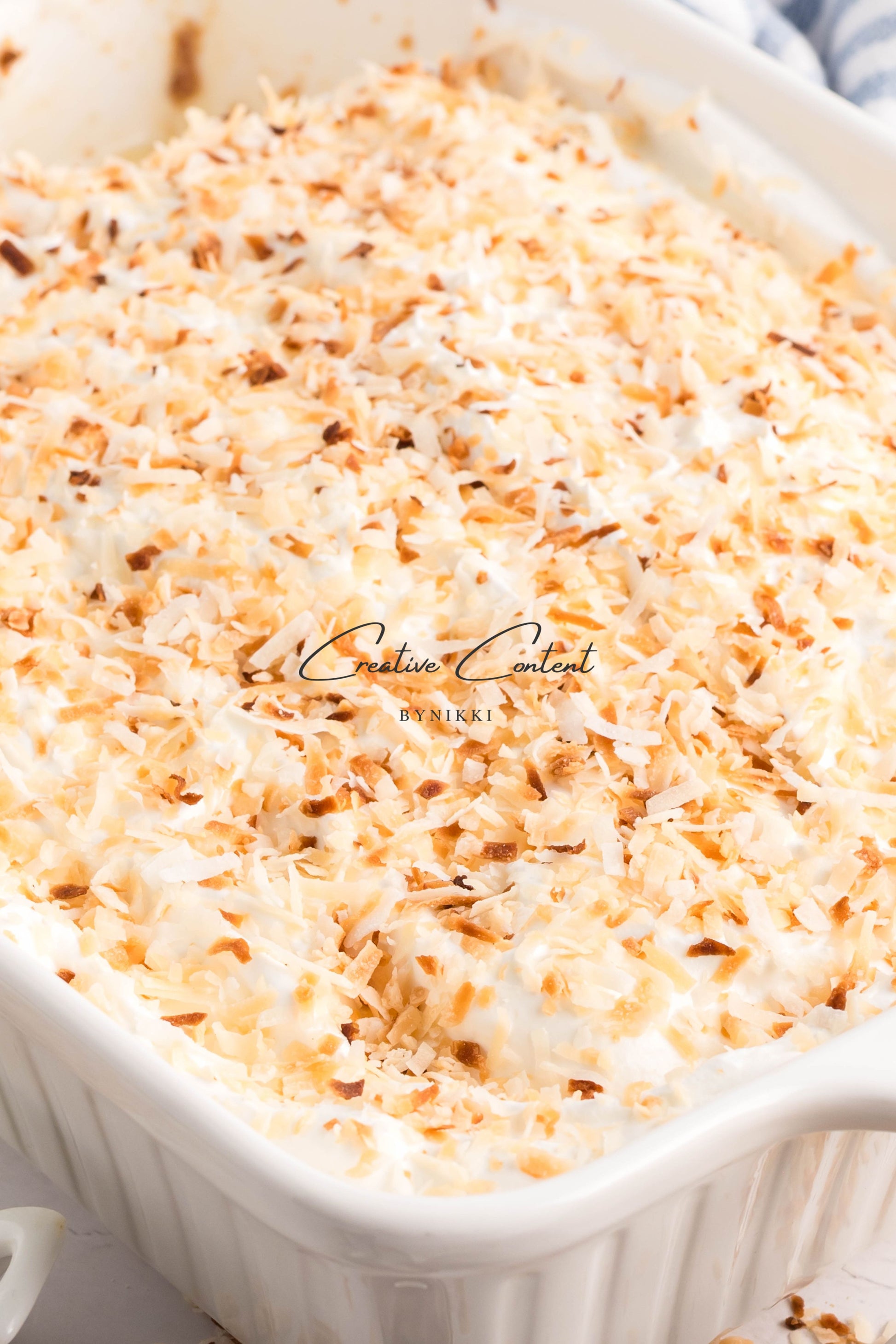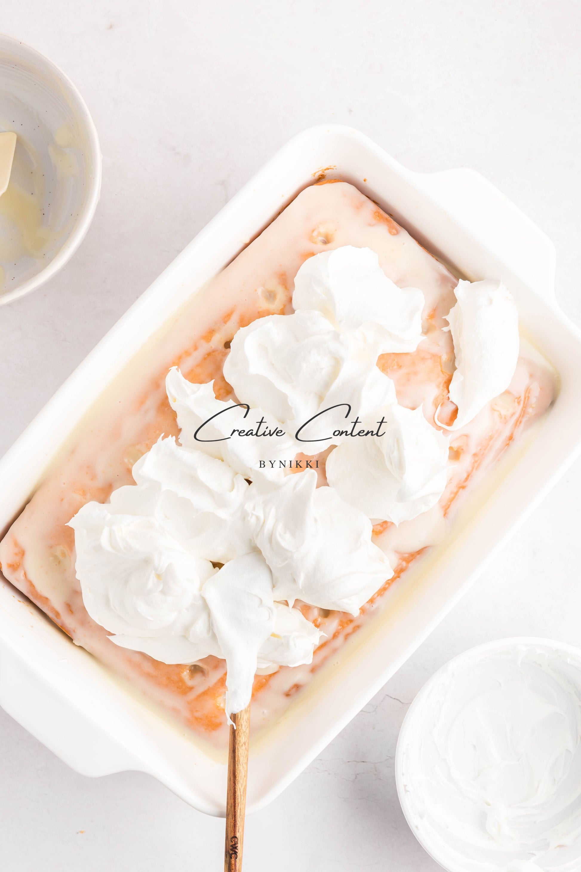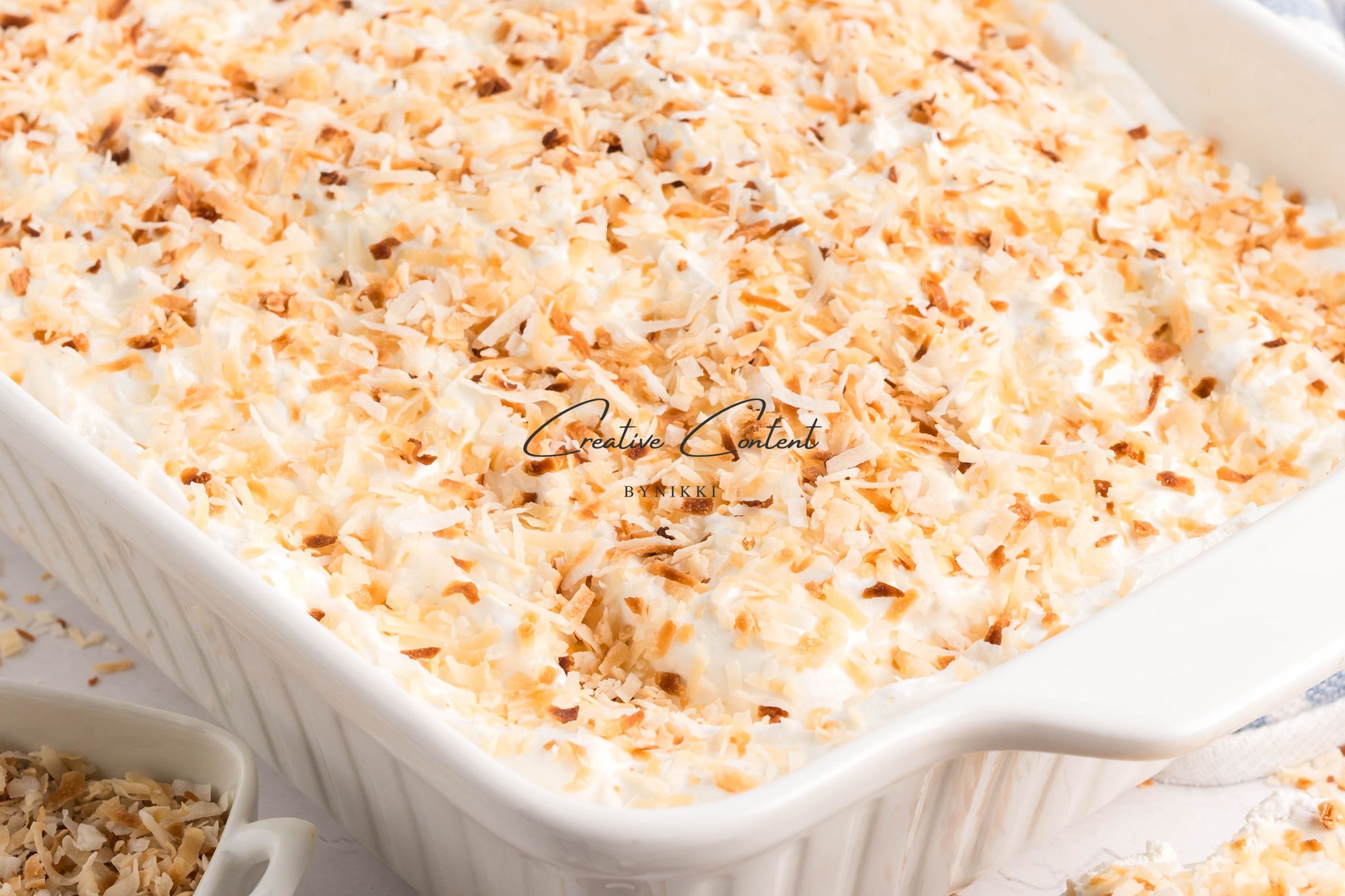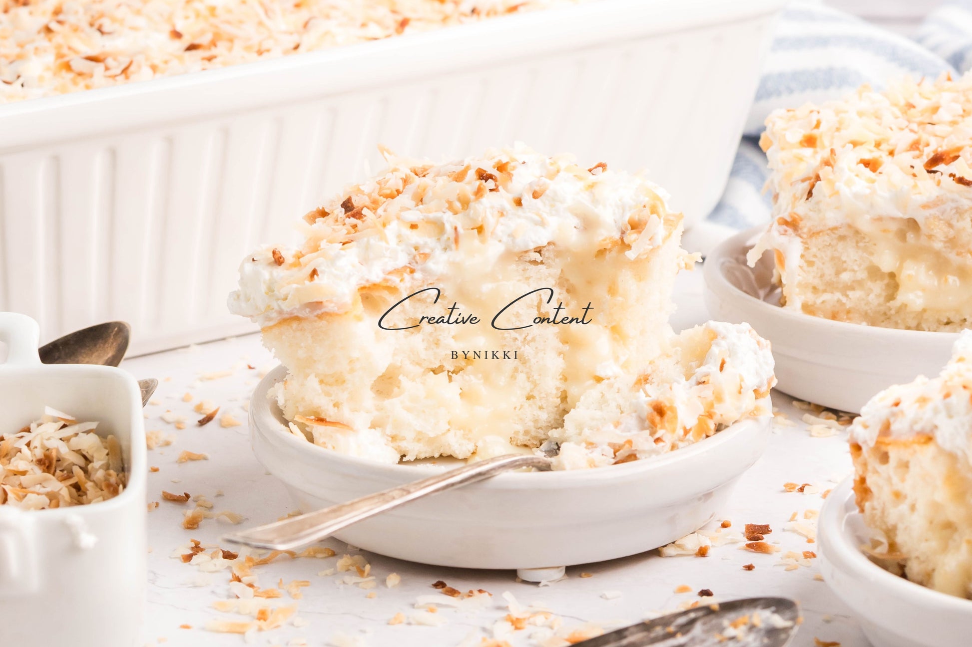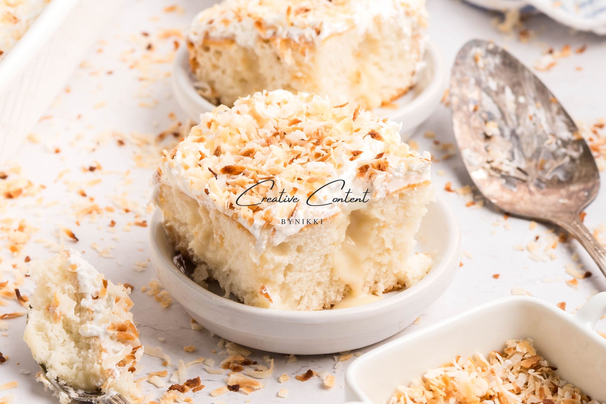 - Ingredients: coconut, white cake mix, egg, coconut extract, sweetened condensed milk, cream of coconut, whipped topping