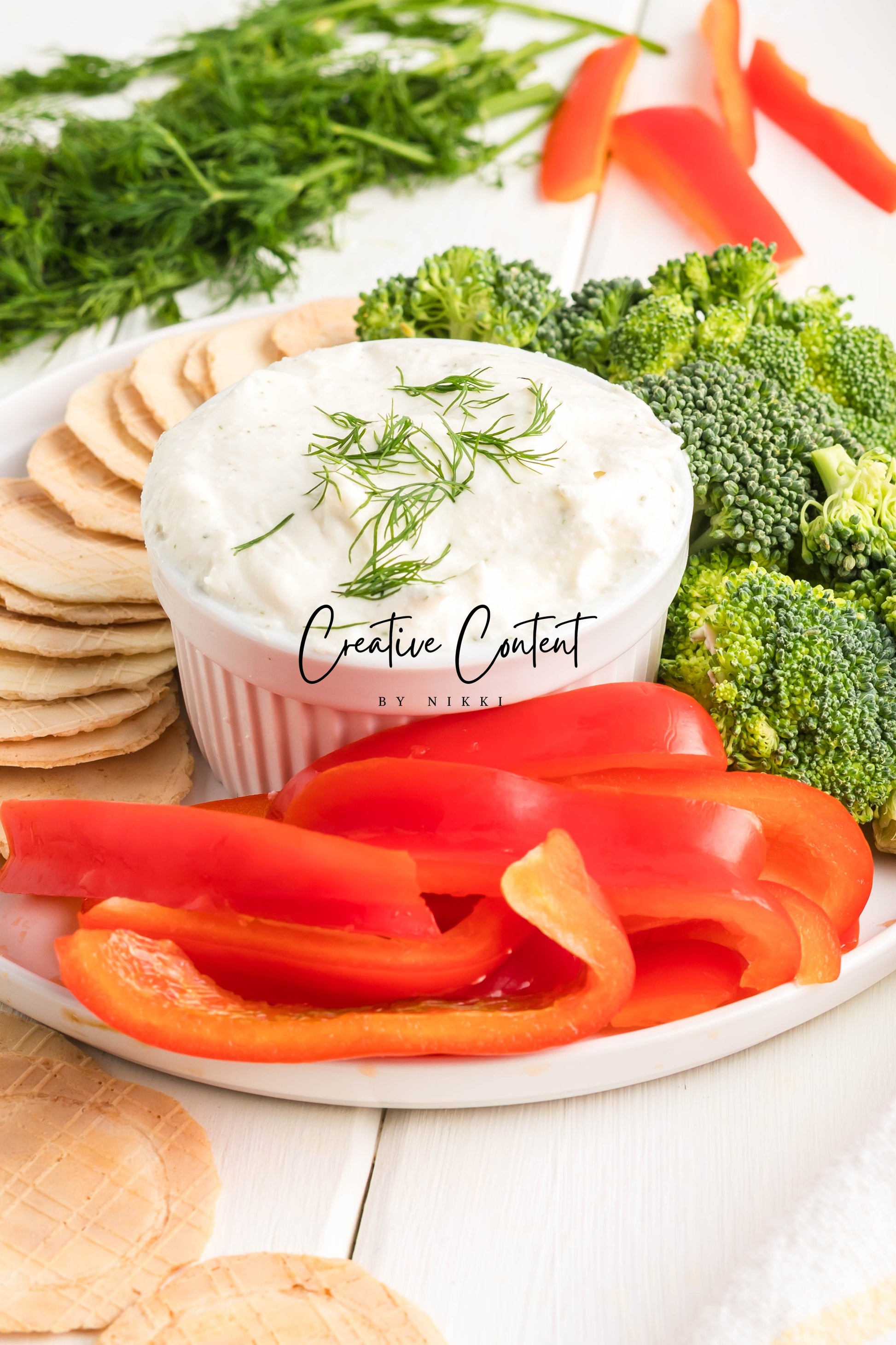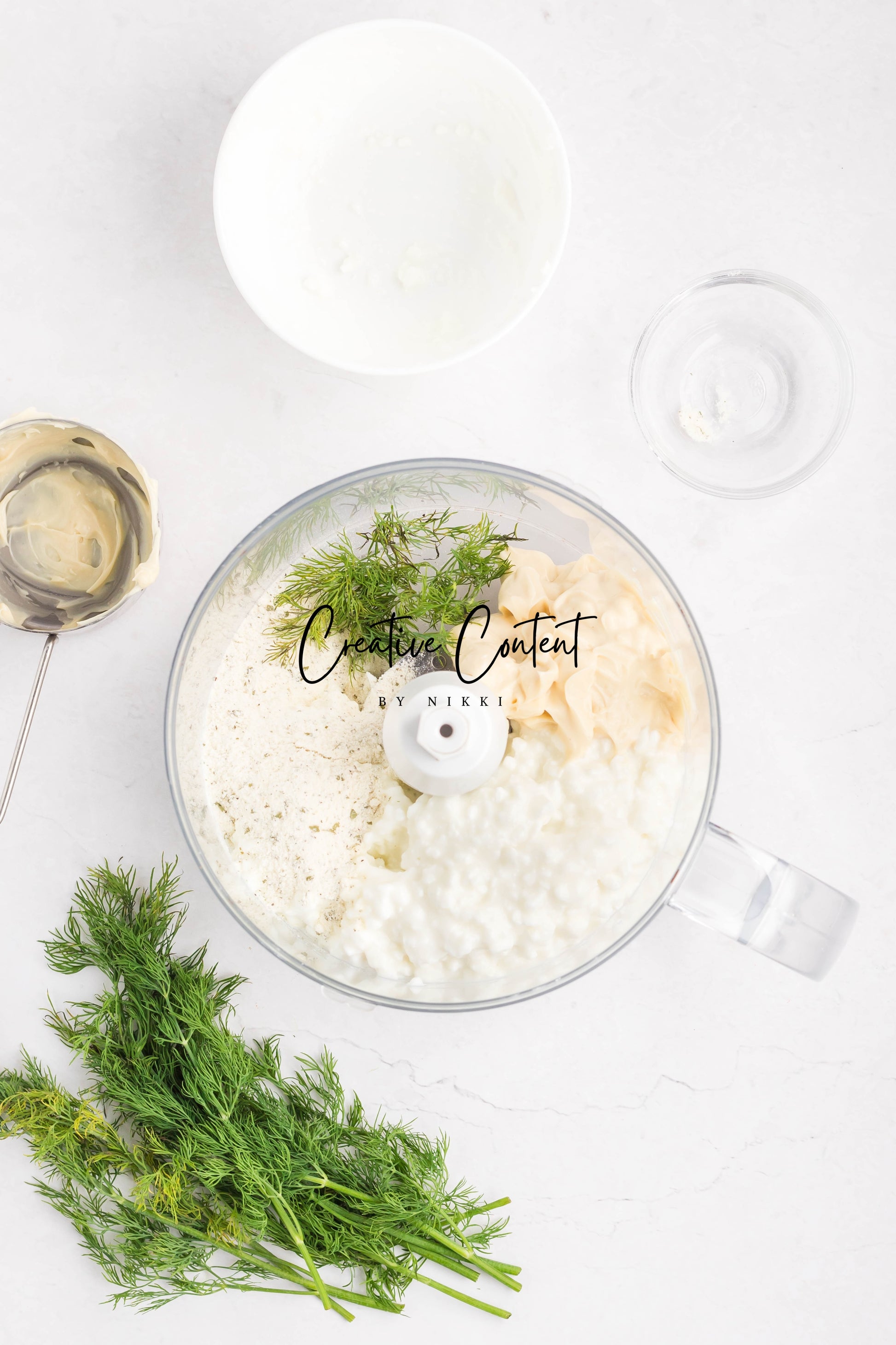 - Ingredients: low-fat cottage cheese, mayonnaise, ranch seasoning, fresh dill