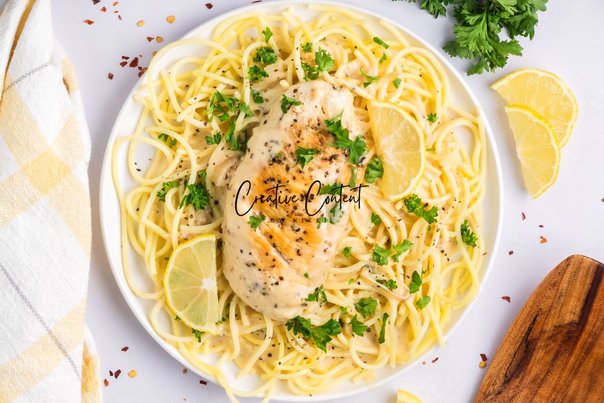 - Ingredients needed; olive oil, chicken breasts, Italian seasoning, lemon pepper, garlic powder, coarse kosher salt, black pepper, garlic, shallot, unsalted butter, red pepper flakes, dry white wine, low-sodium chicken broth, heavy cream, cornstarch, parmesan cheese, lemon juice, and lemon zest.