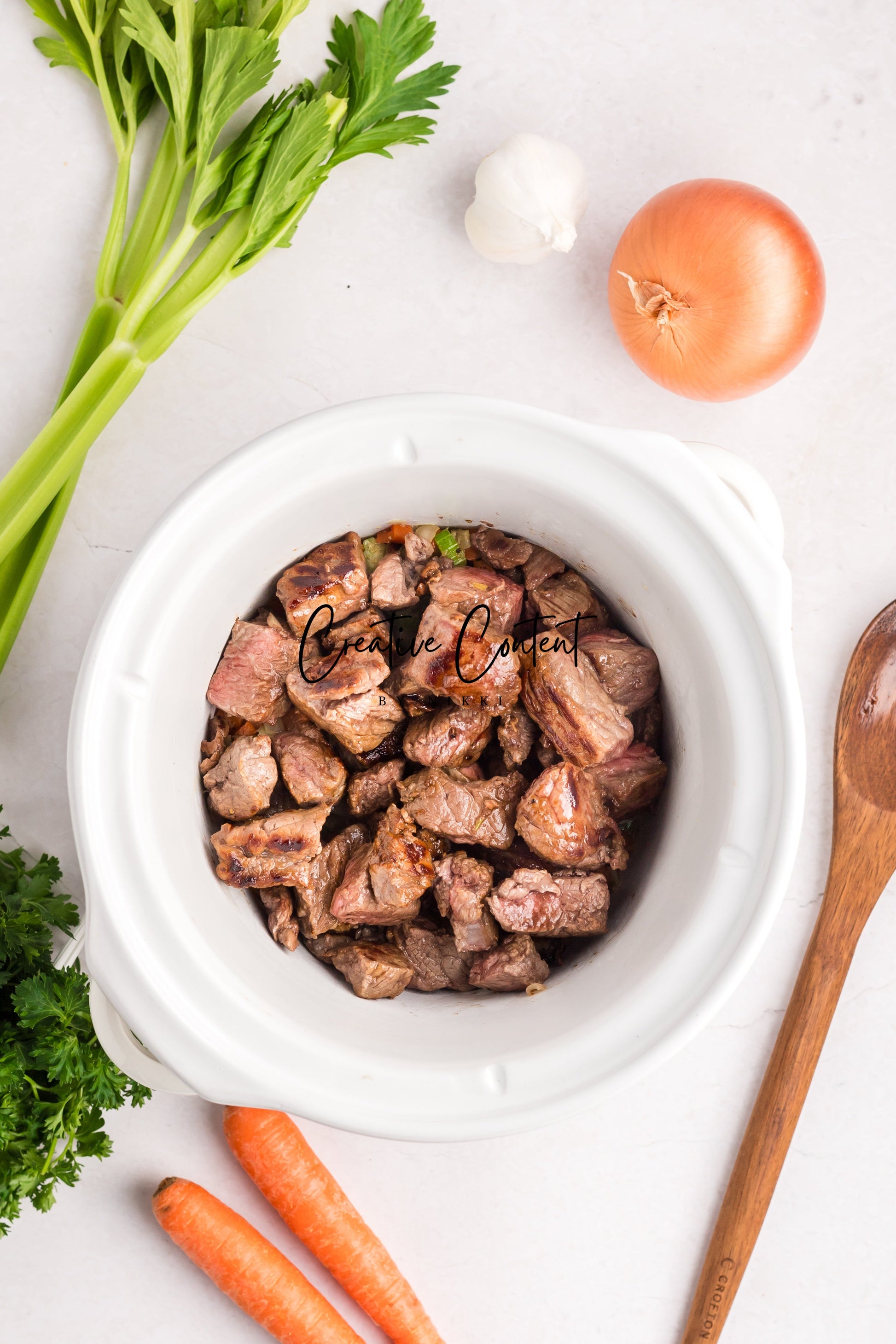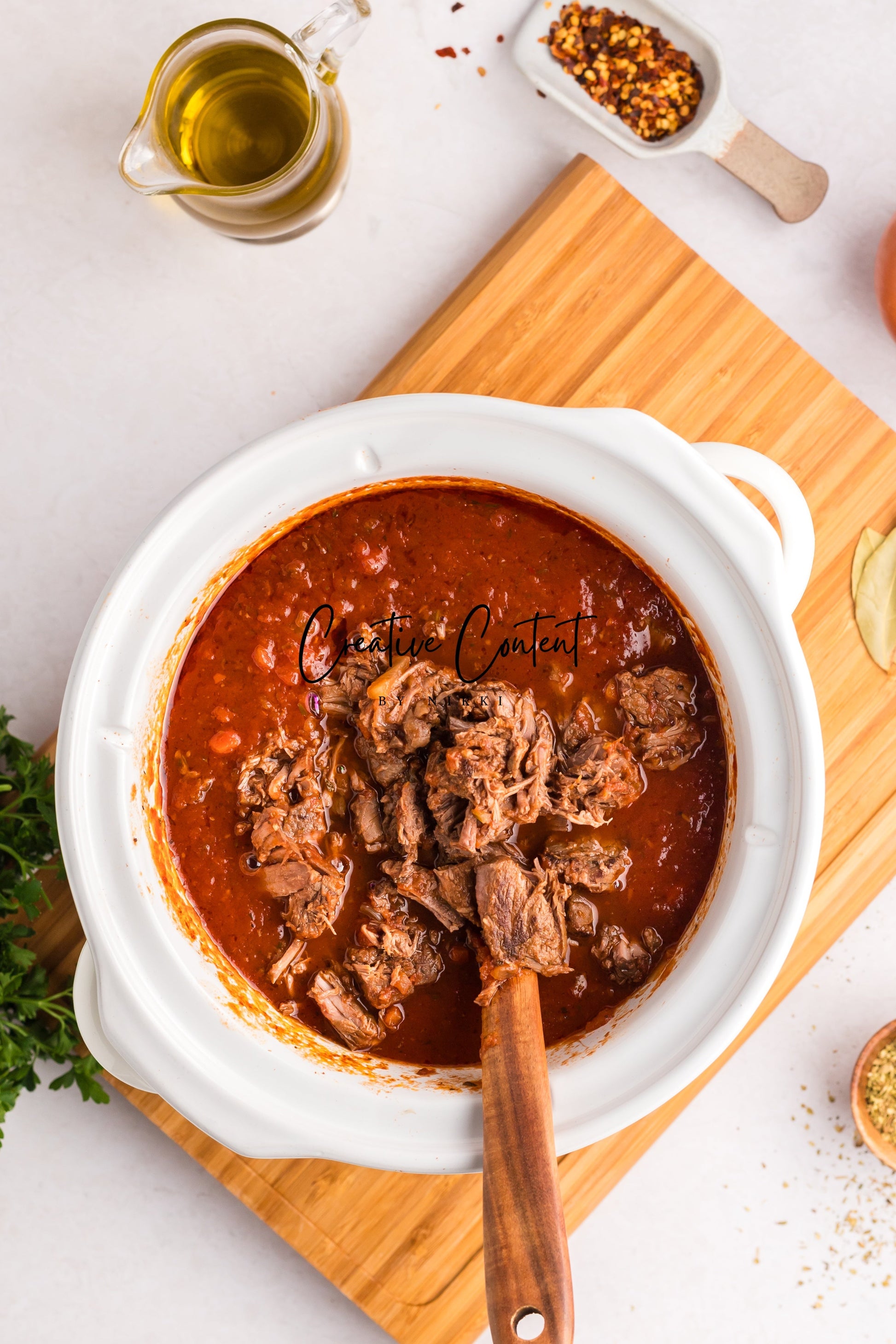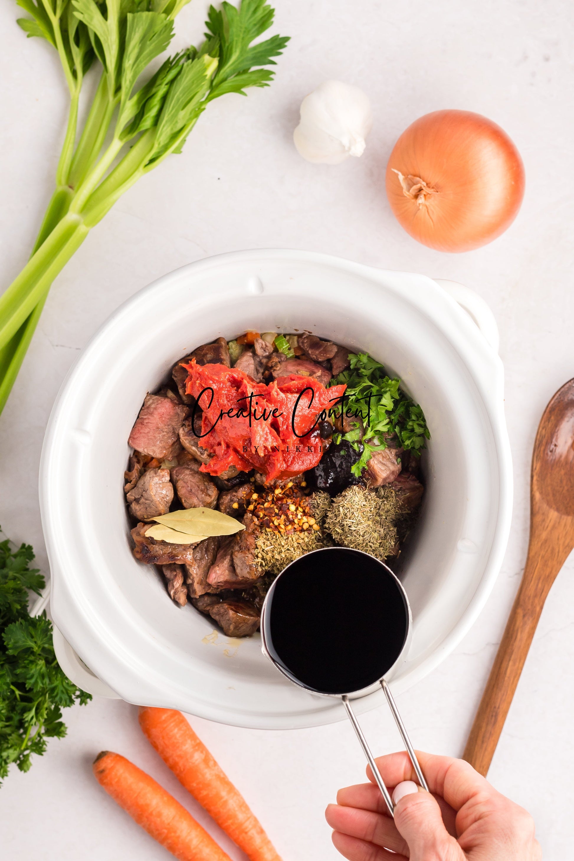 This crockpot beef ragu is beyond delicious. It takes pasta night to the next level. The fresh onions, carrots, celery, beef chuck steak, red wine, and dried thyme come together to create a delicious recipe everyone will love. This is a great dish to serve a crowd.