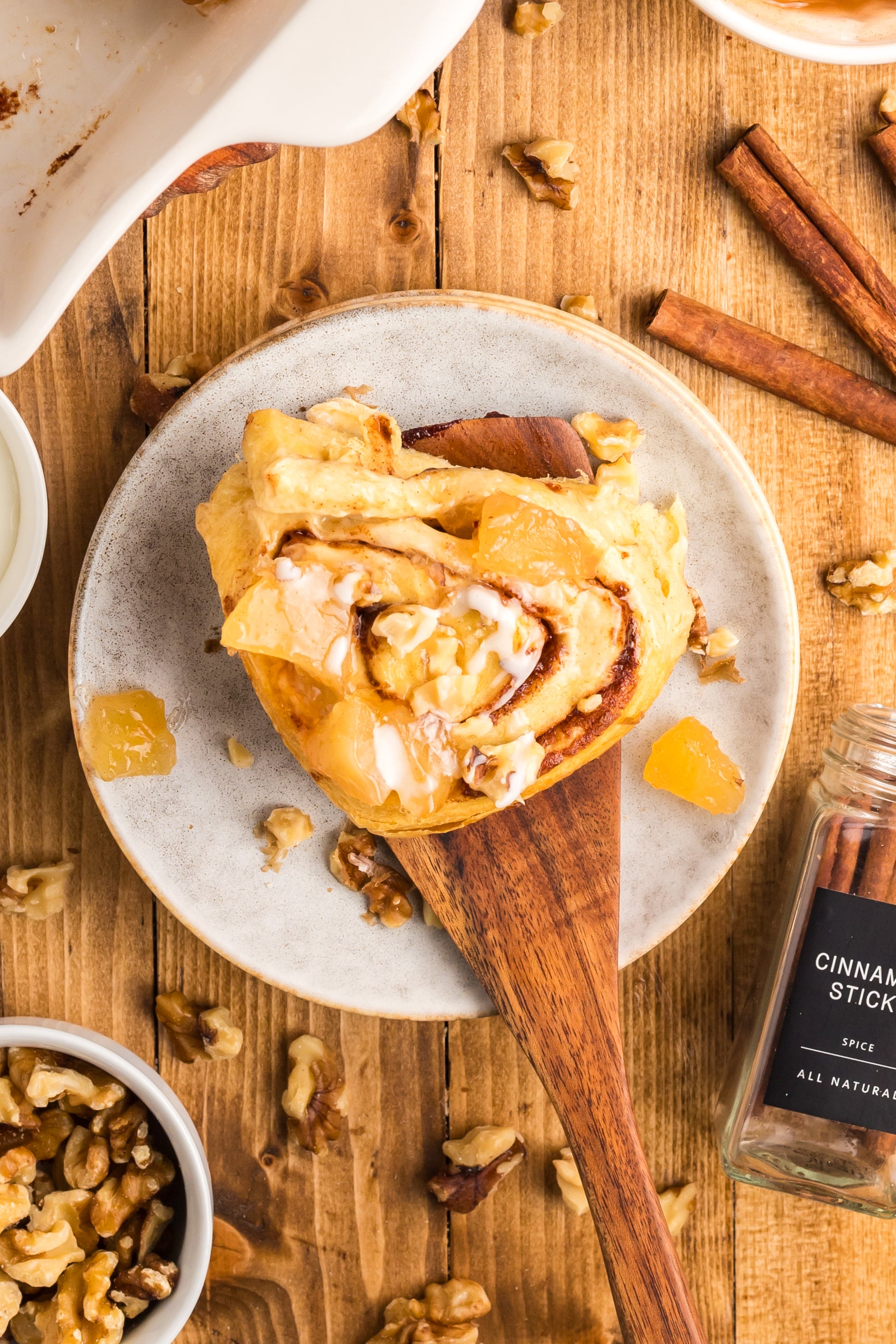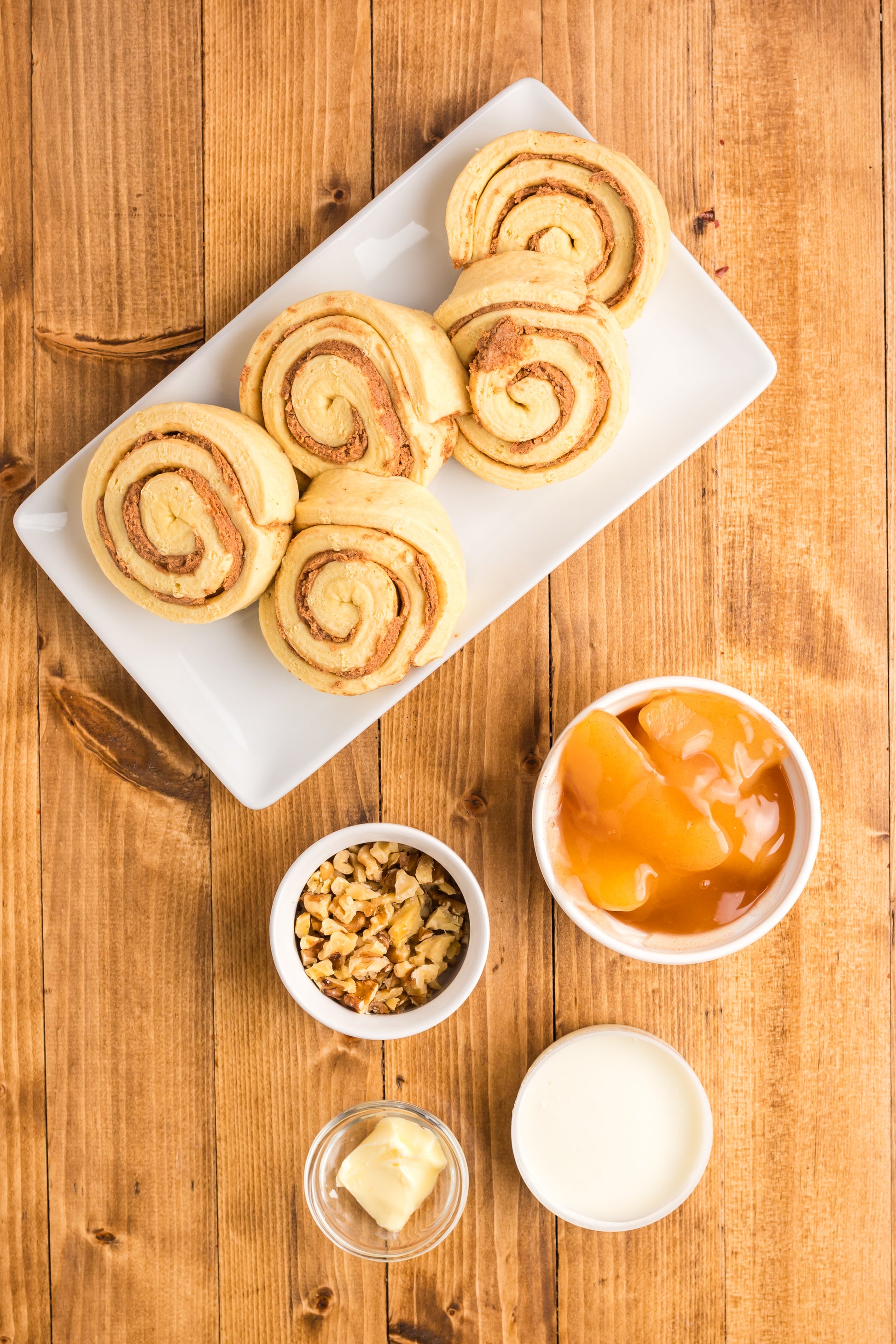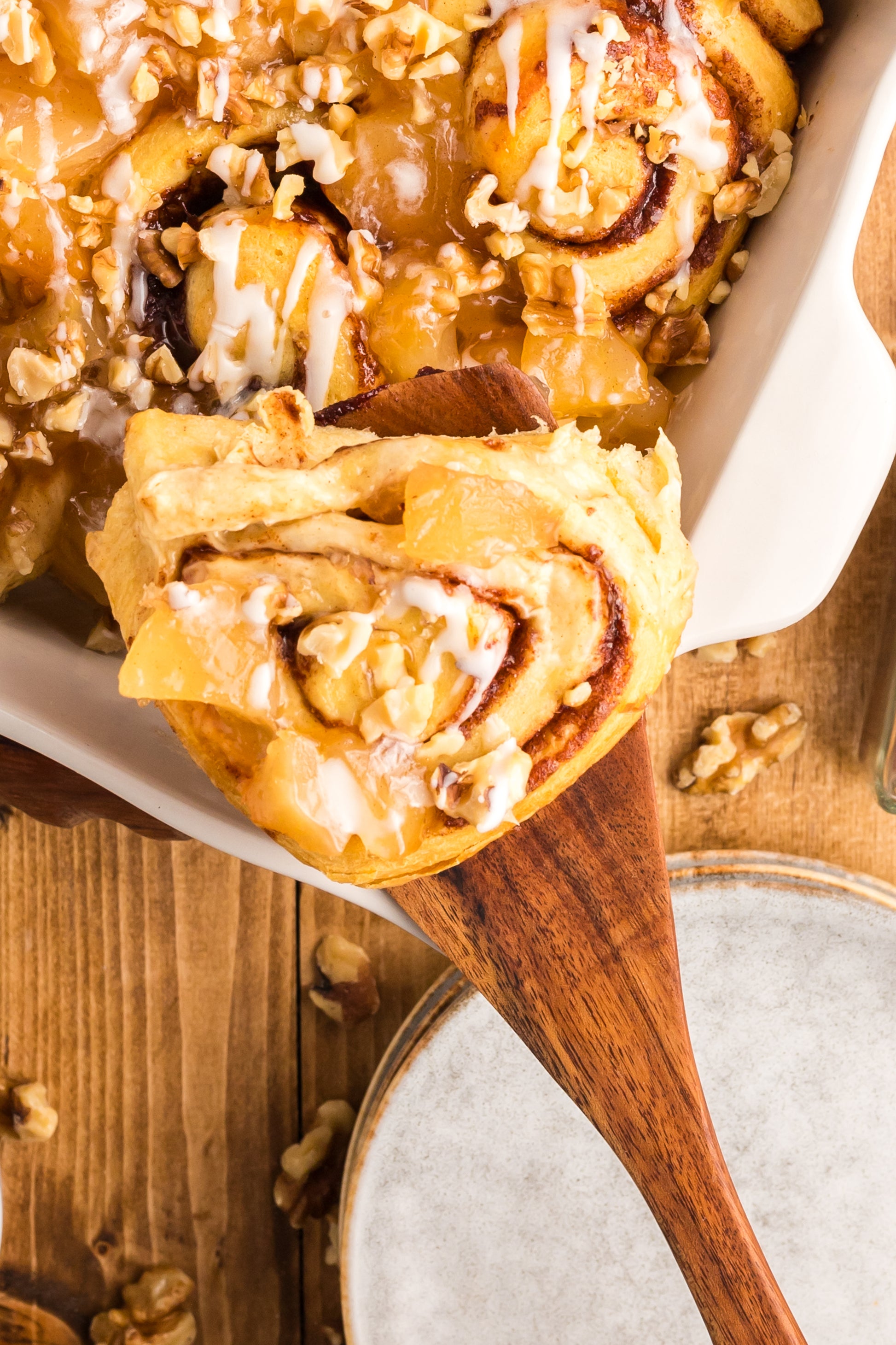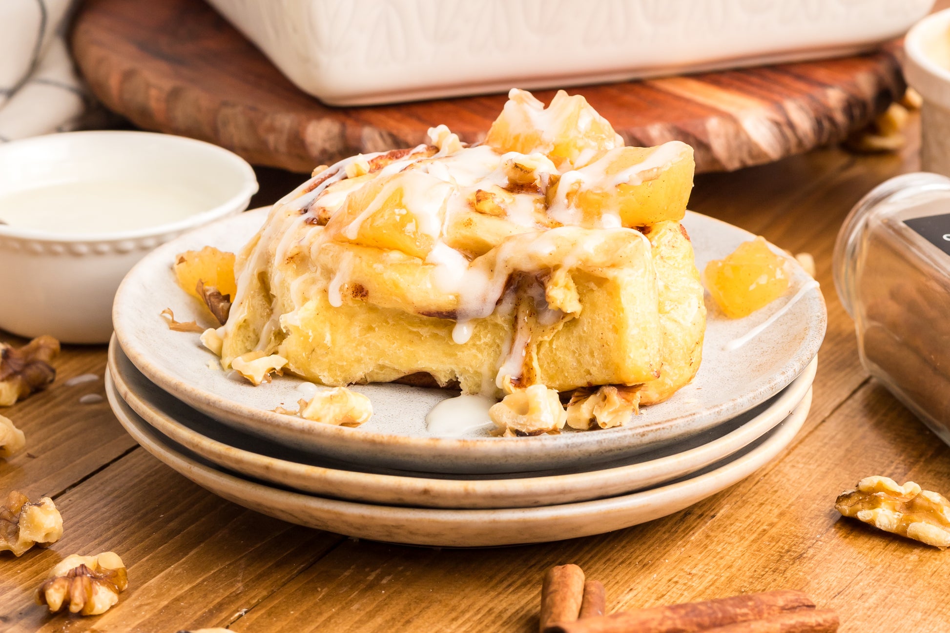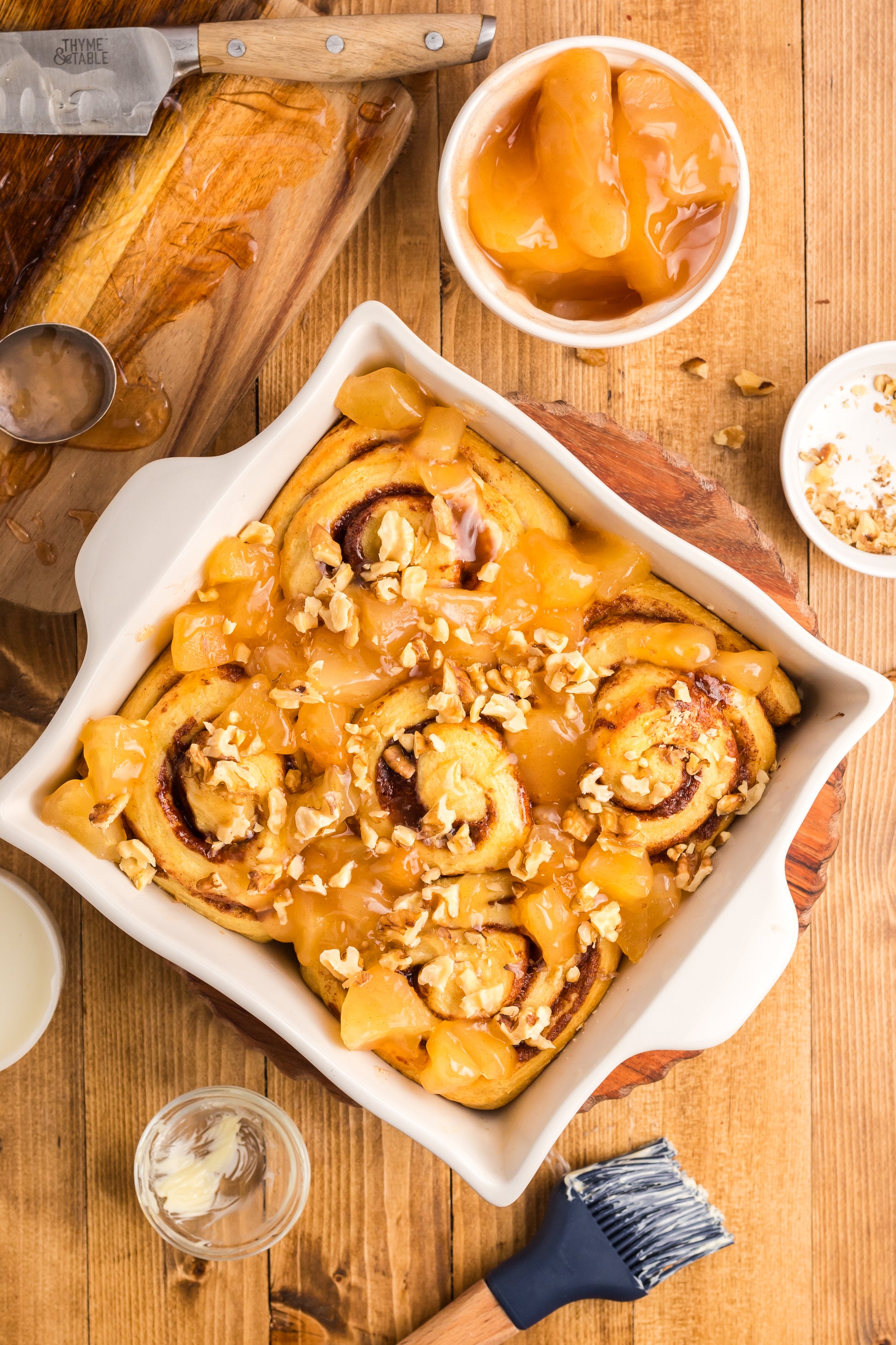 - Featured Ingredients; cinnamon rolls, apple pie filling, and walnuts.