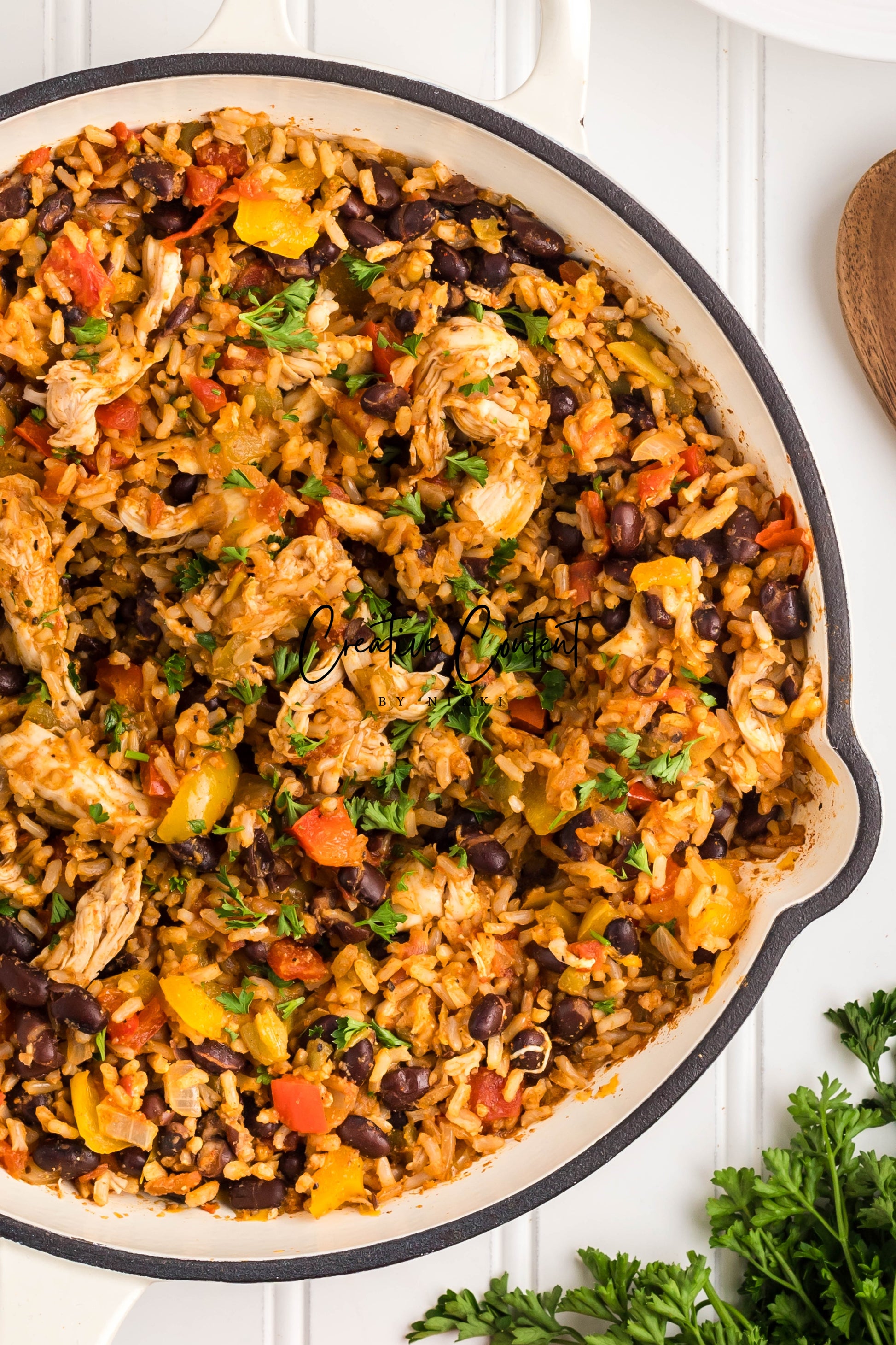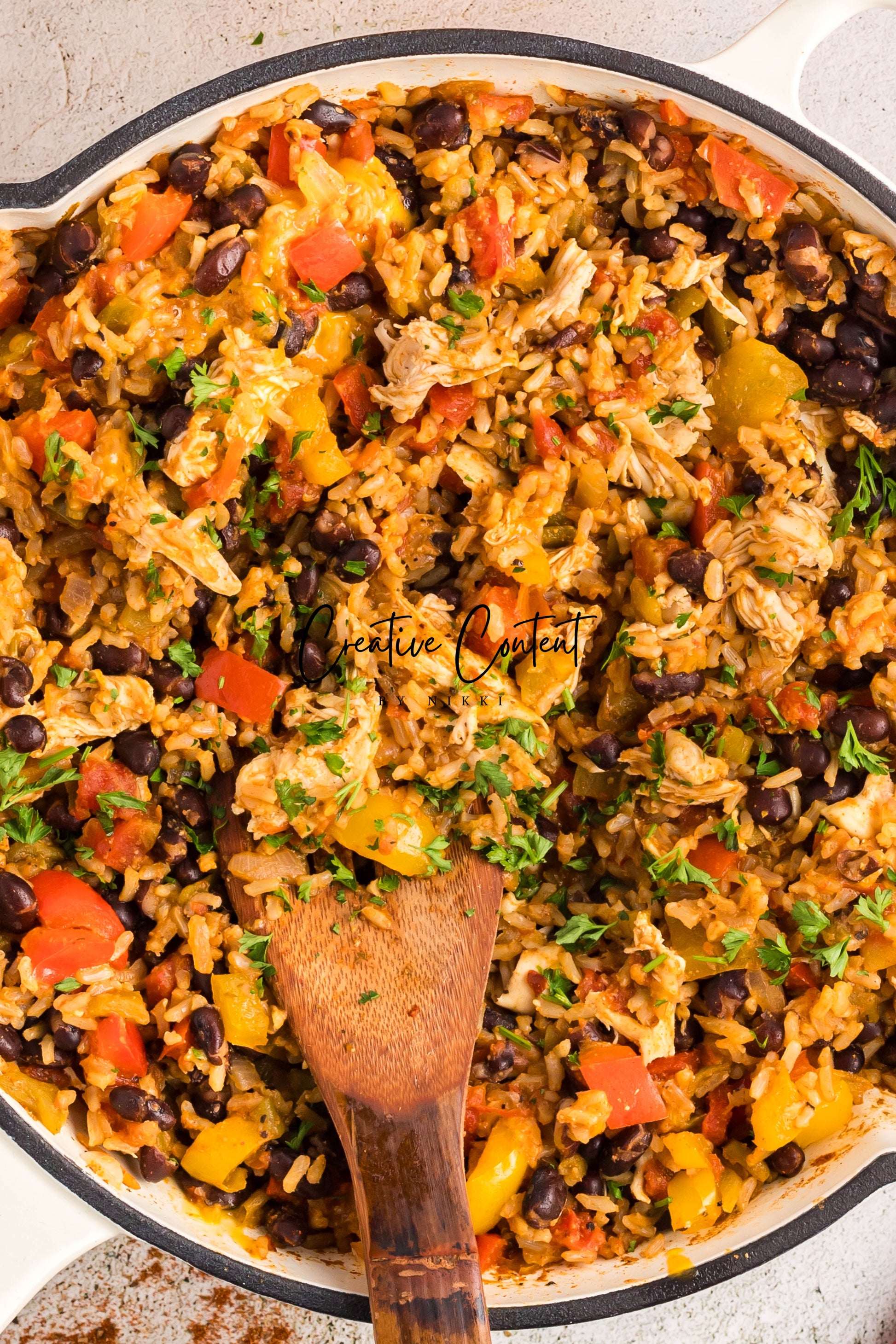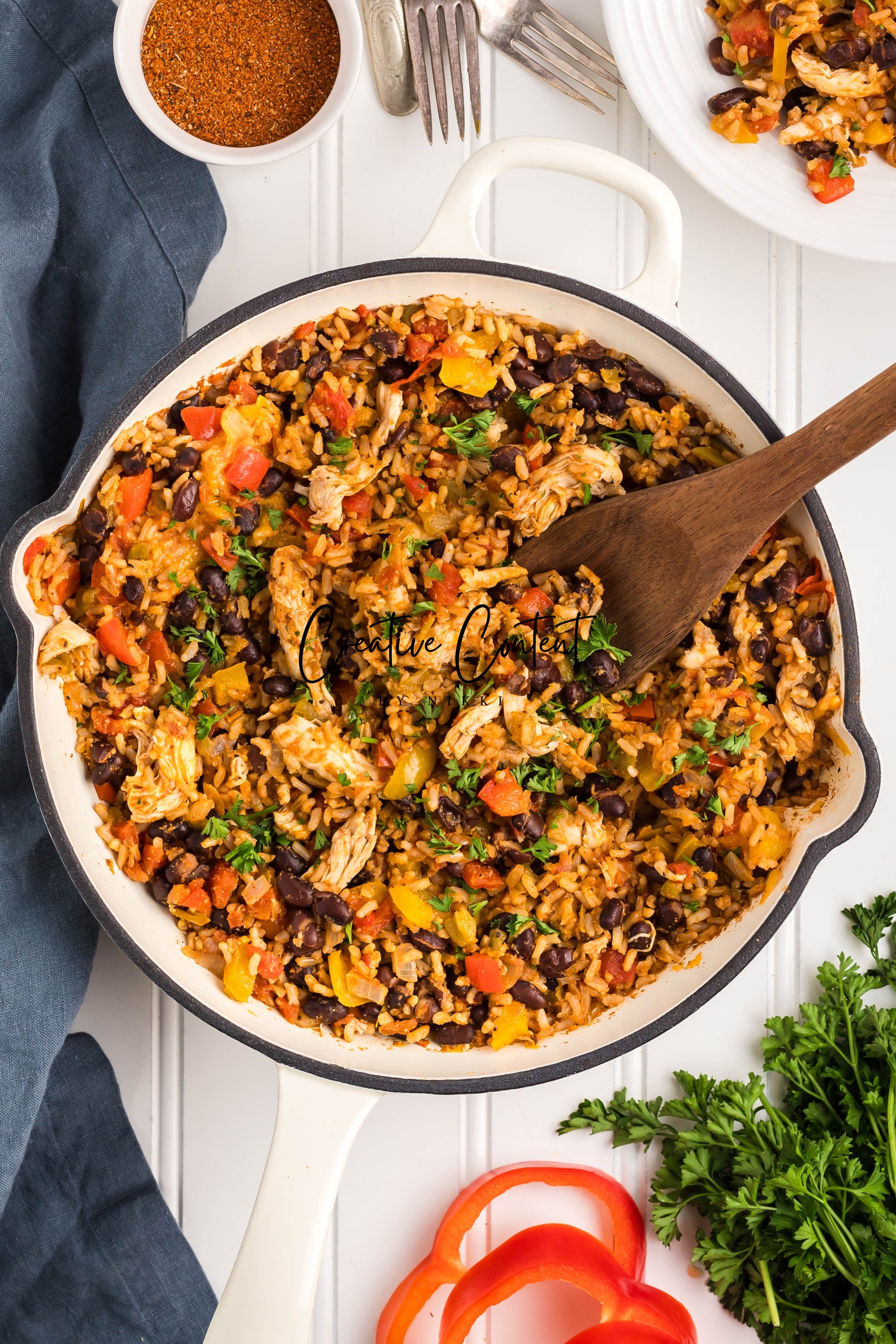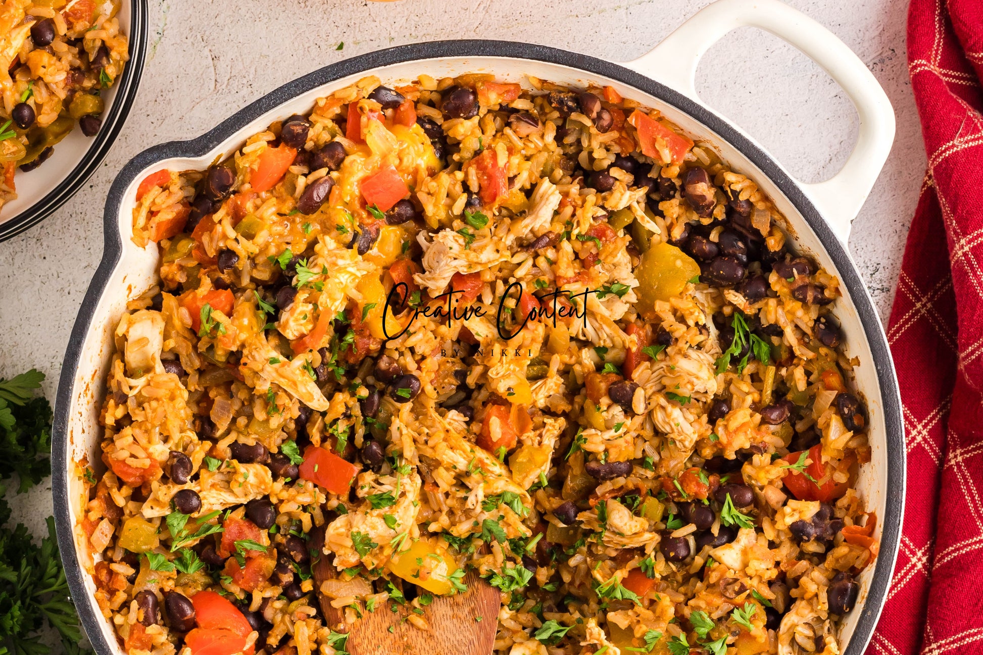 - Featured Ingredients: avocado oil, yellow onion, bell peppers, black beans, diced tomatoes, green chiles, instant brown rice, chicken stock, seasonings, shredded chicken, and cheddar cheese.
