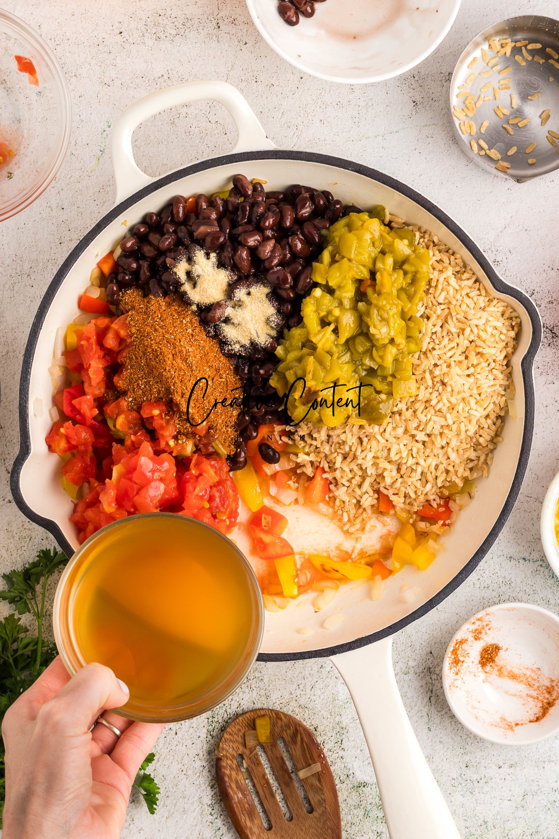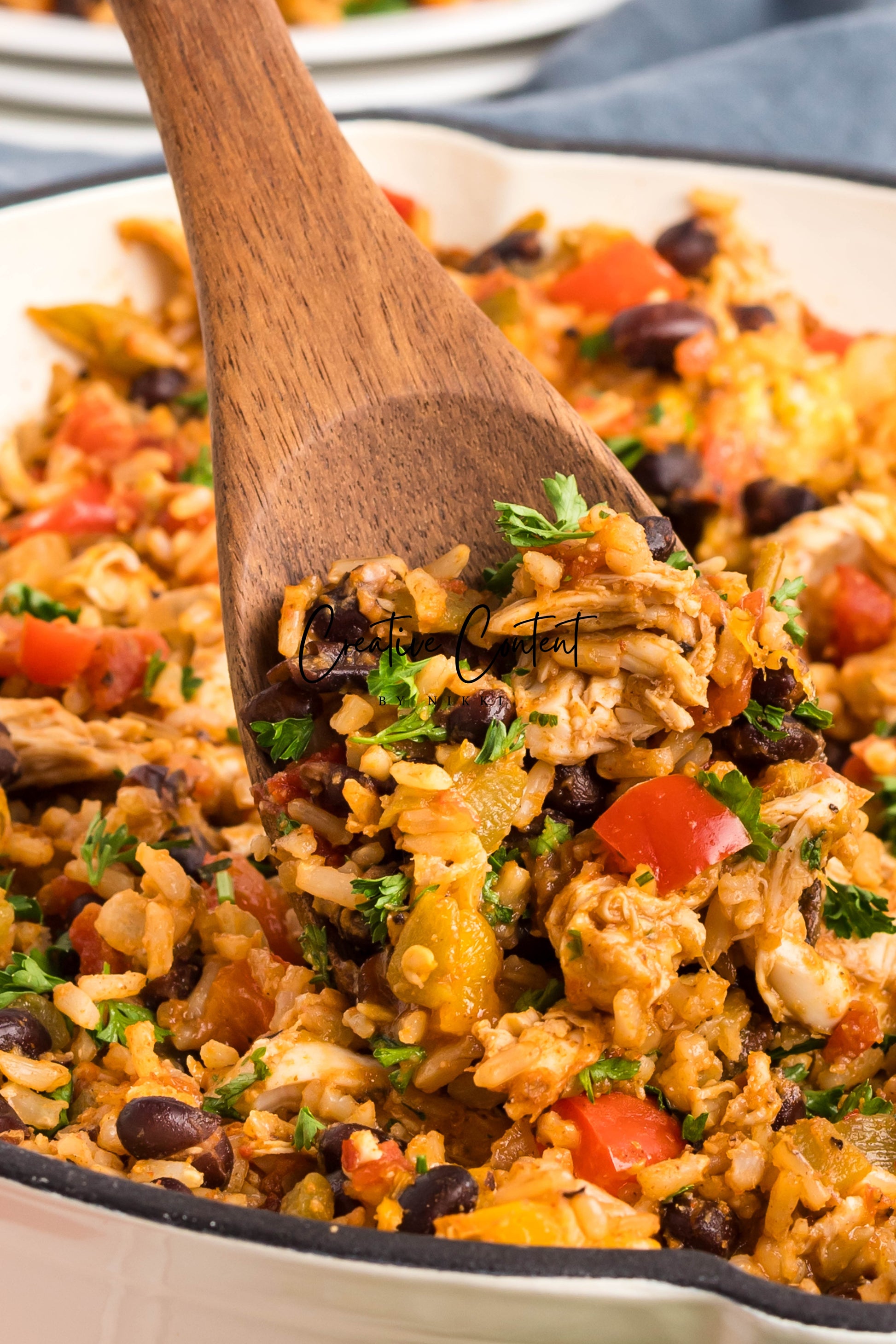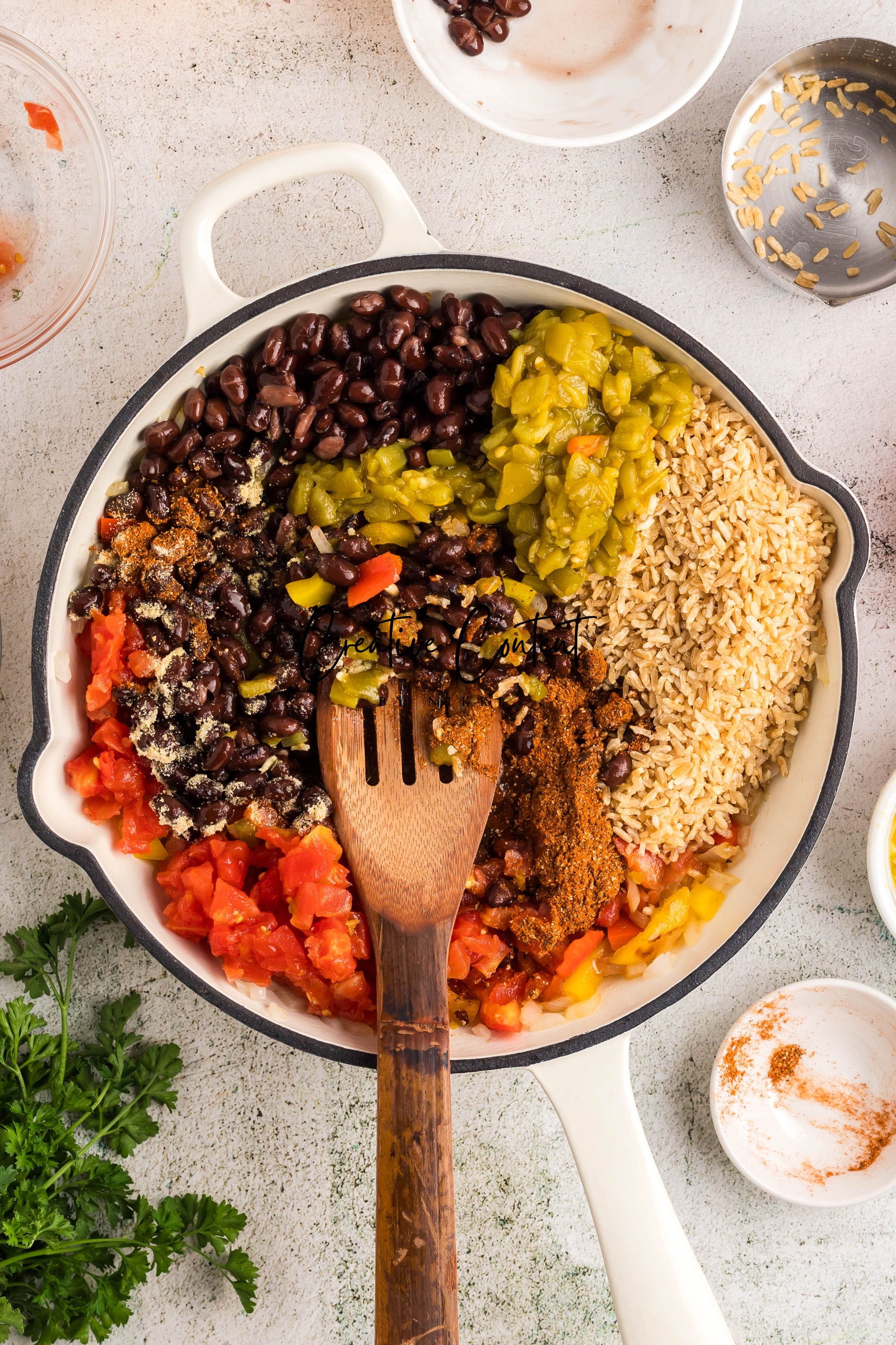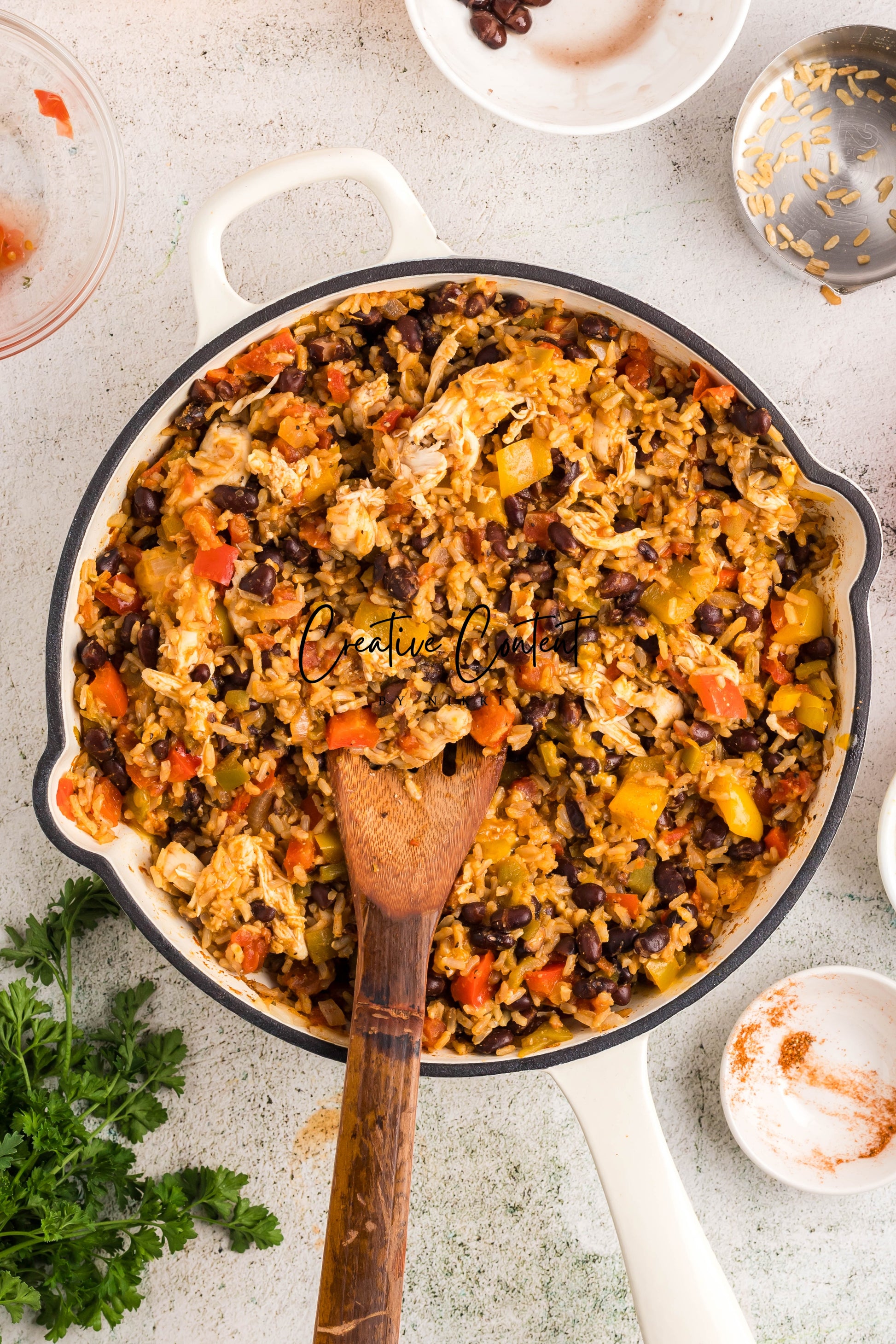 - Featured Ingredients: avocado oil, yellow onion, bell peppers, black beans, diced tomatoes, green chiles, instant brown rice, chicken stock, seasonings, shredded chicken, and cheddar cheese.