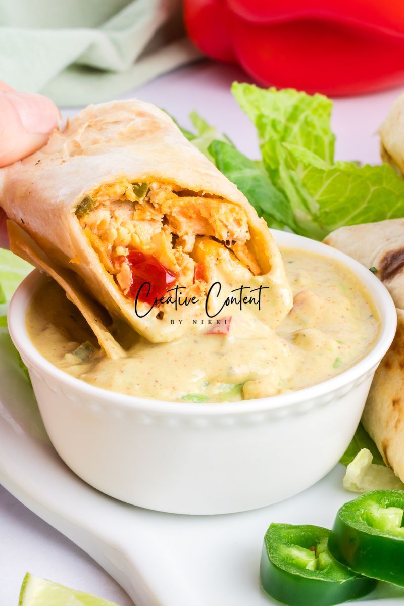 This firecracker chicken wrap recipe will be your new go-to appetizer the spiciness from the cayenne pepper, jalapenos, and pepper jack cheese make for a treat for the tastebuds. With firecracker in the name, you can’t go wrong if you like a little heat. The homemade avocado sauce is the perfect creamy dipping sauce for these wraps. These wraps make for a great snack or when you need to bring an appetizer for your next get-together.