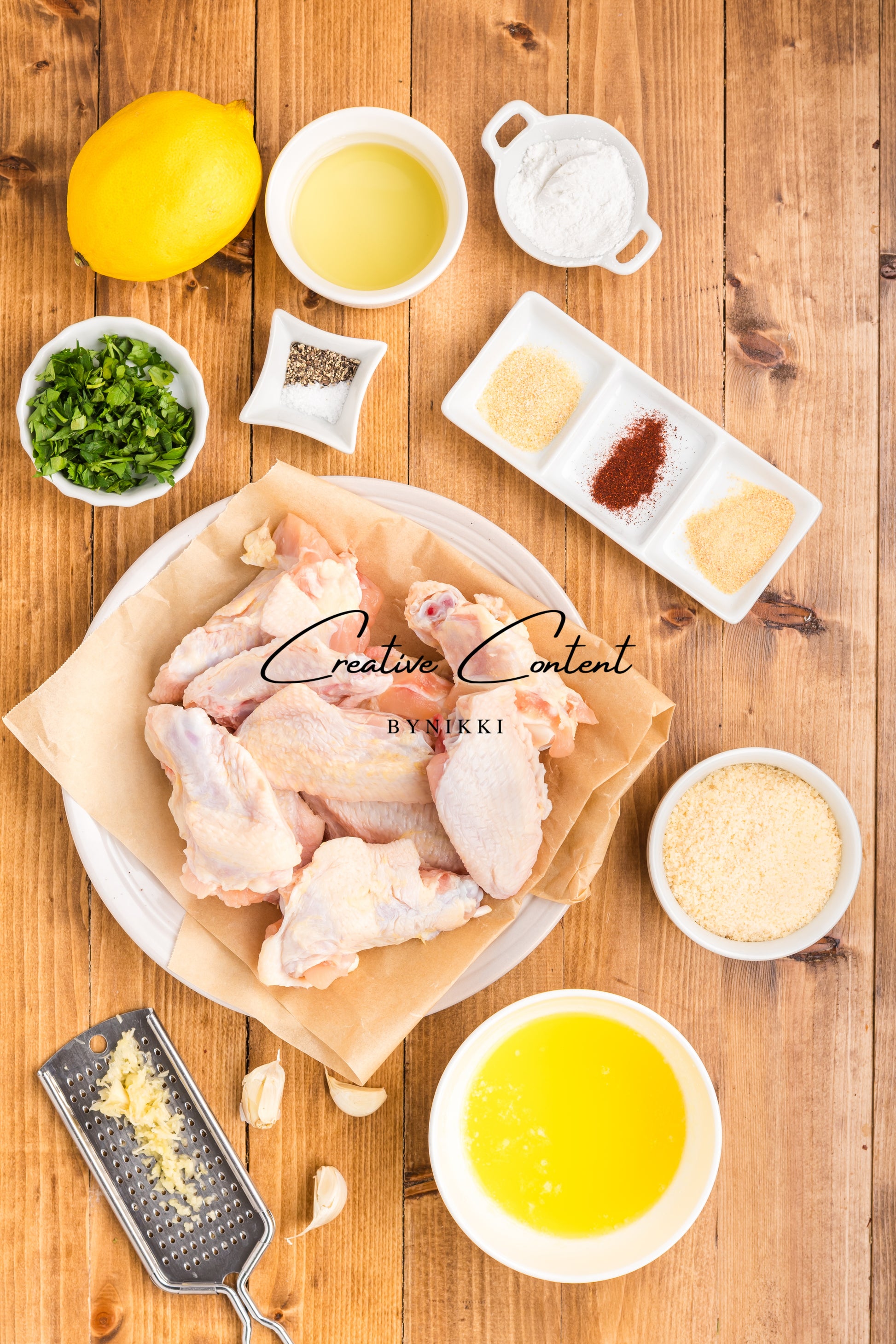 - Featured Ingredients: Â chicken wings, avocado oil, lemon juice, baking powder, garlic powder, onion powder, salt, pepper, paprika, butter, garlic, parsley, parmesan cheese