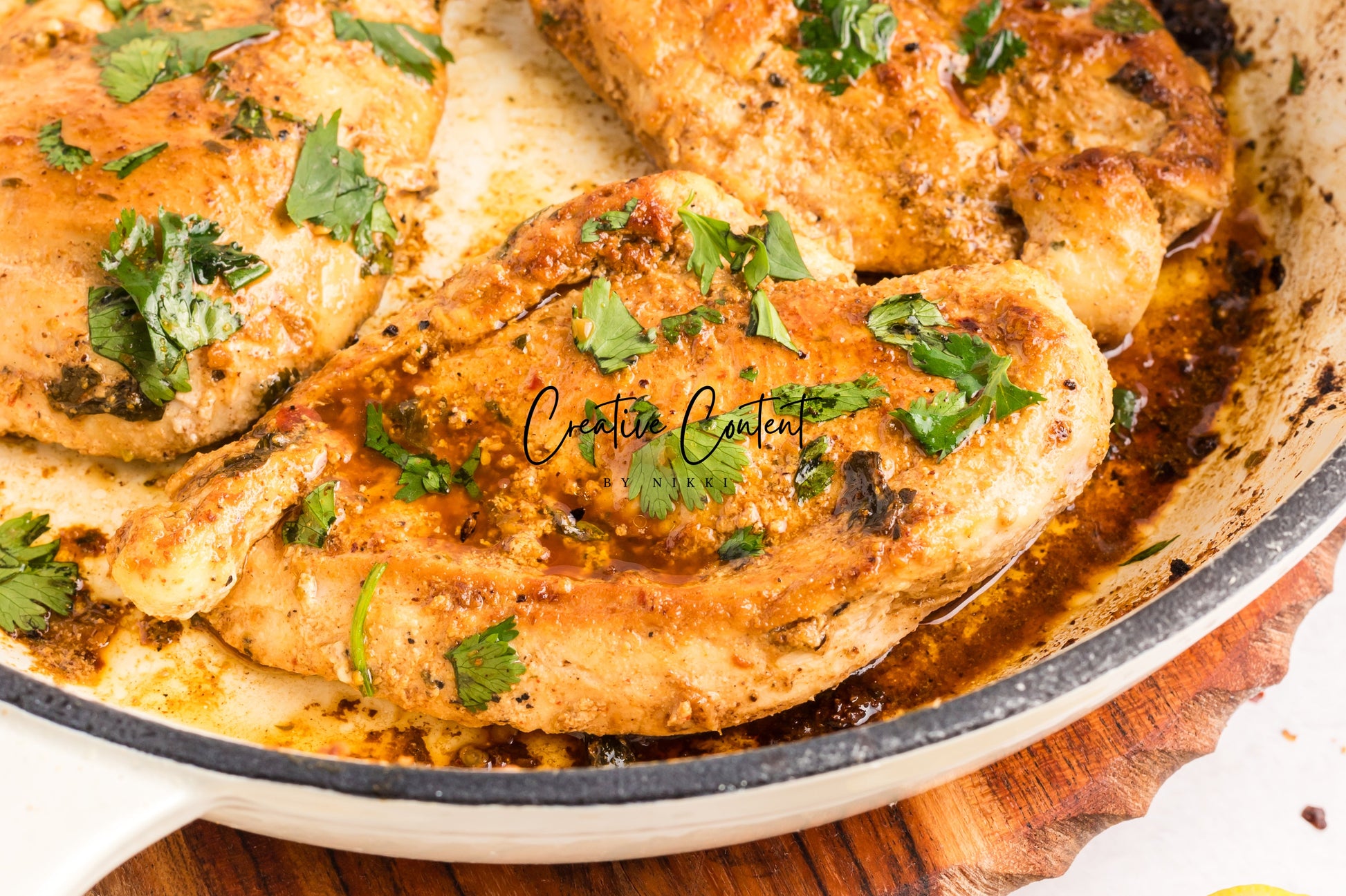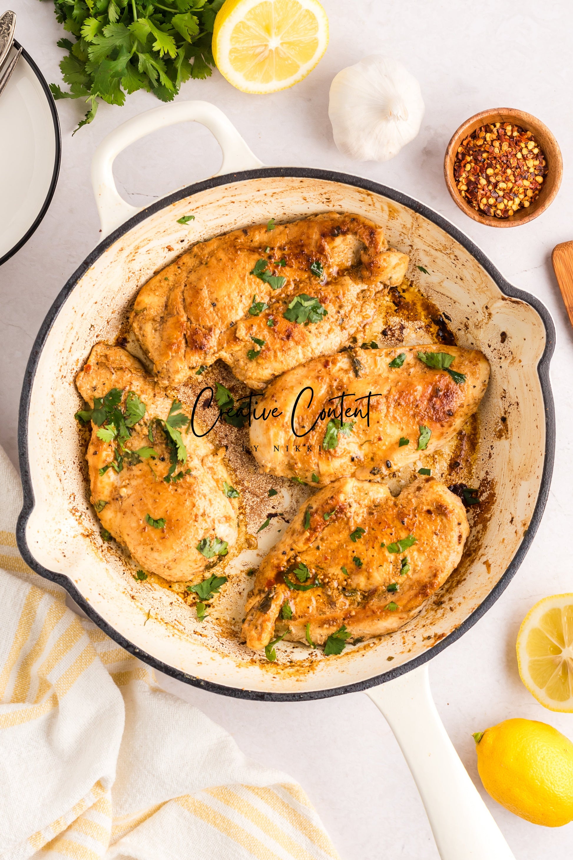 This Greek chicken with yogurt marinade creates a tender and juicy dinner everyone will love. The flavorful chicken is seasoned with fresh garlic, lemon juice, cumin, and red pepper flakes. If you need a dinner for the family or having friends over this is a great dish to make that everyone will be raving over. The flavors are robust and vibrant.