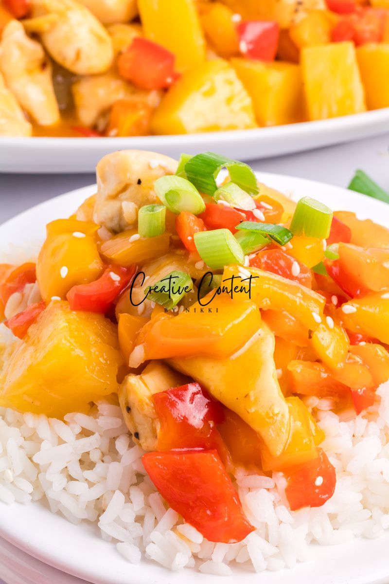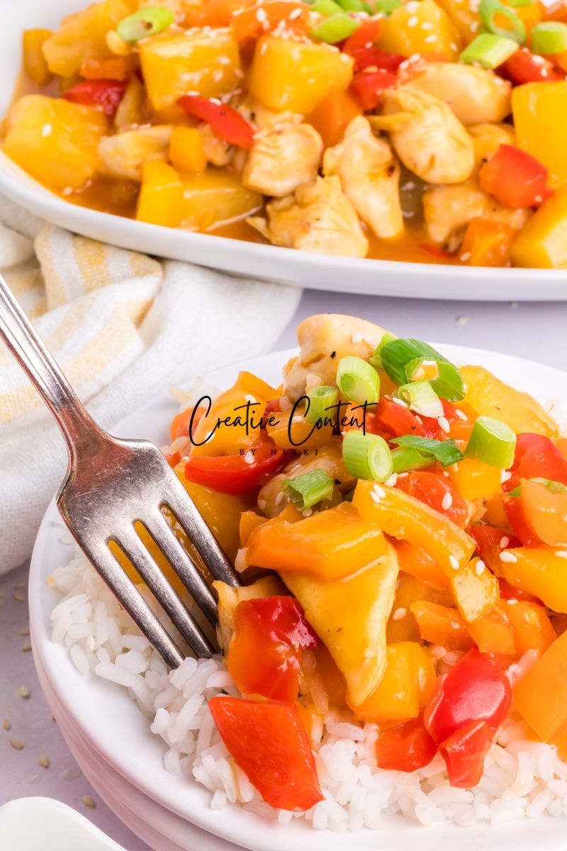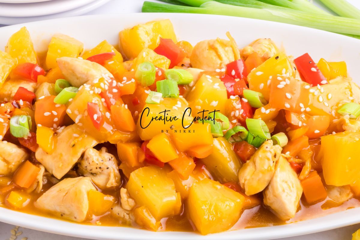 This Hawaiian Chicken dish is loaded with so much sweet Asian sauce with bell peppers and big chunks of pineapple. This is a quick and easy recipe that brings all the best of Hawaii to your table. This is a great dish for a busy weeknight dinner.
