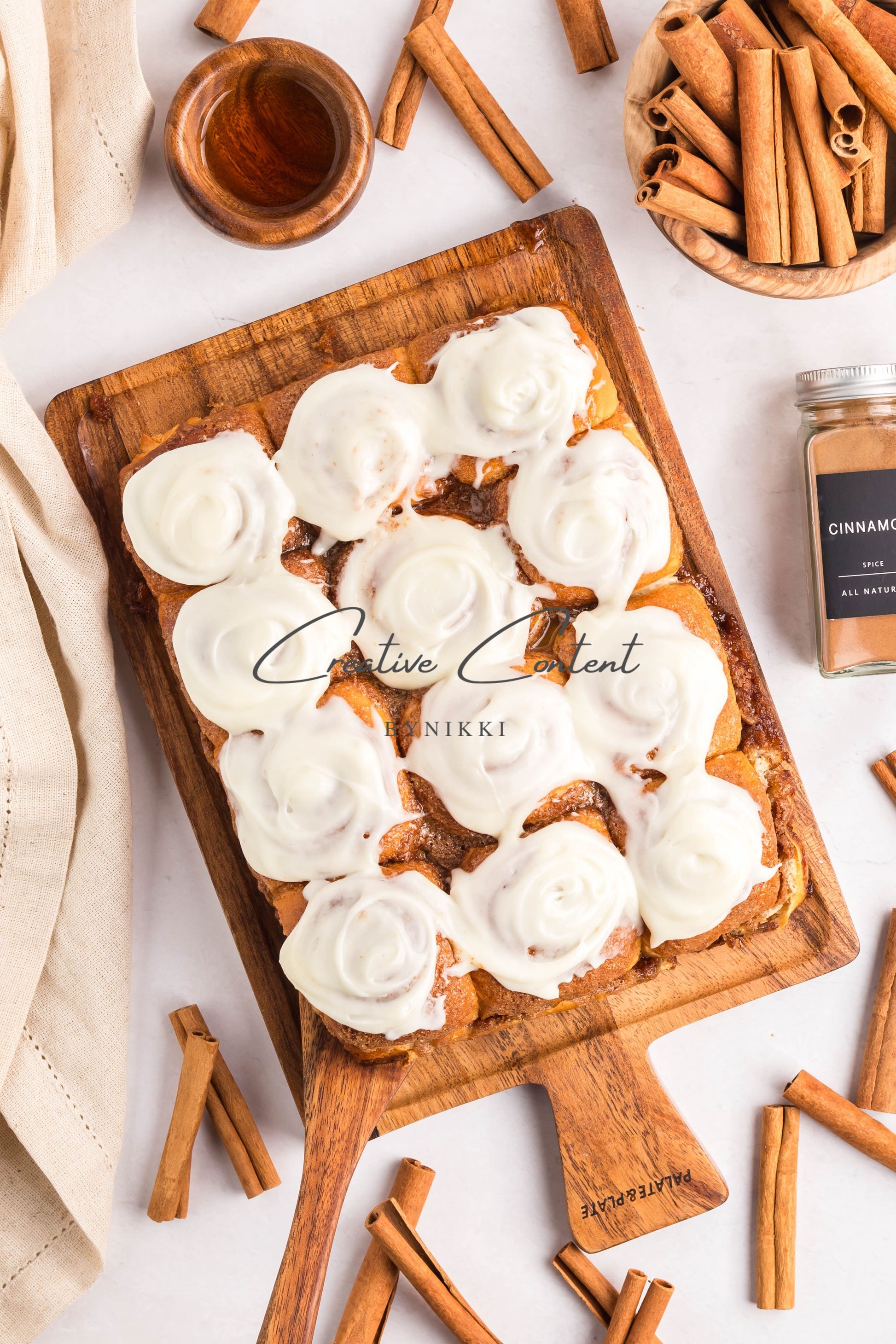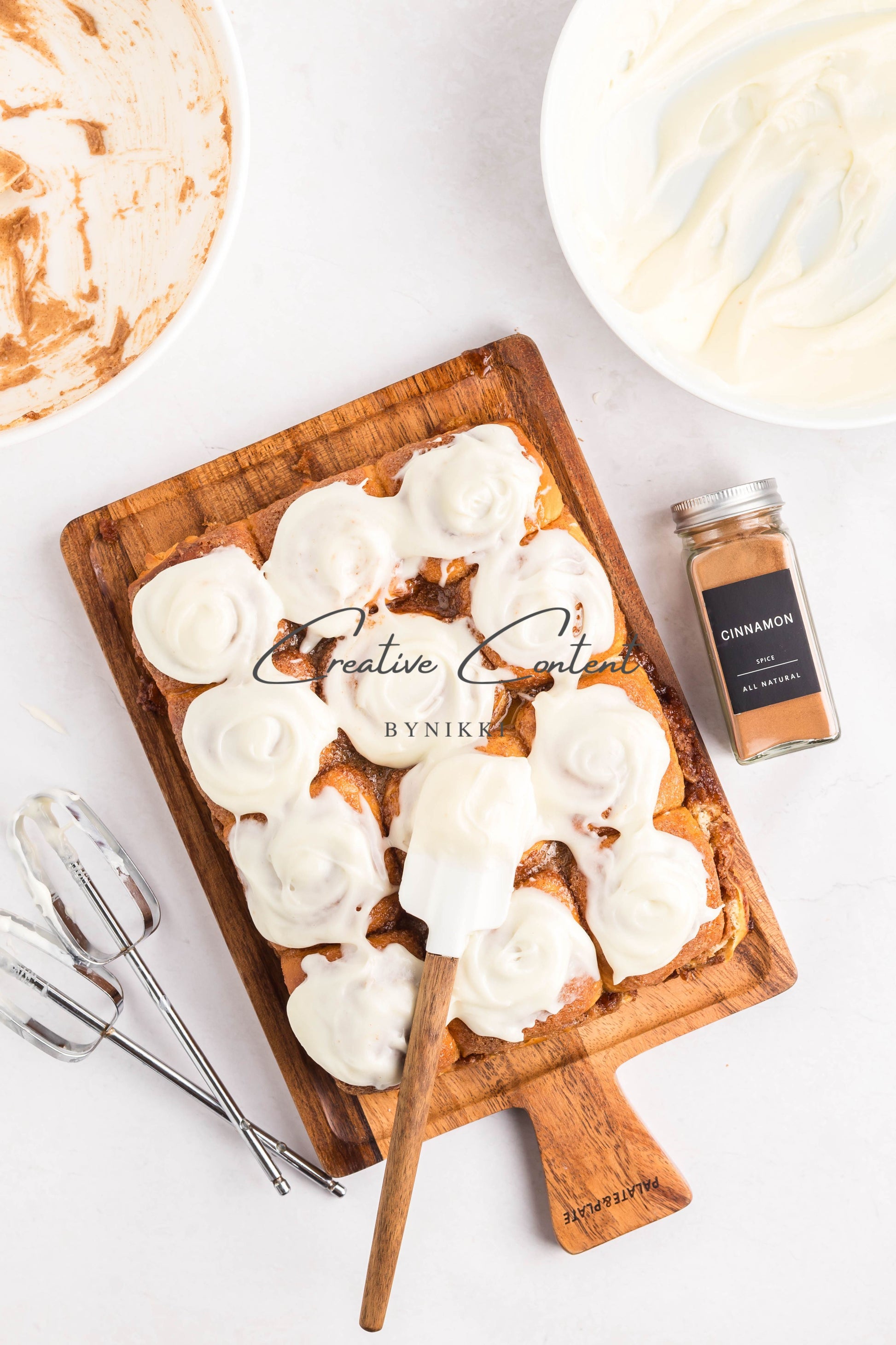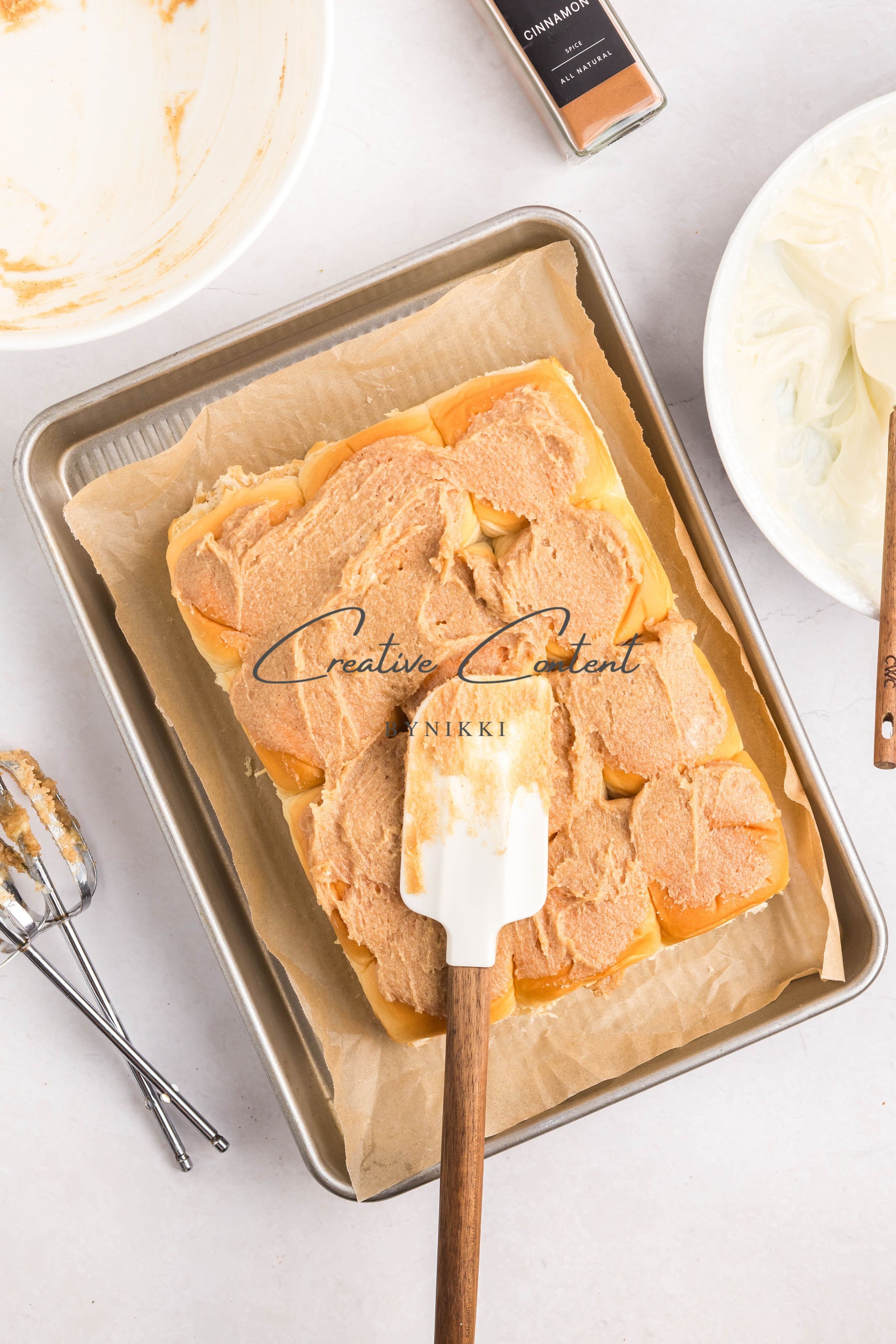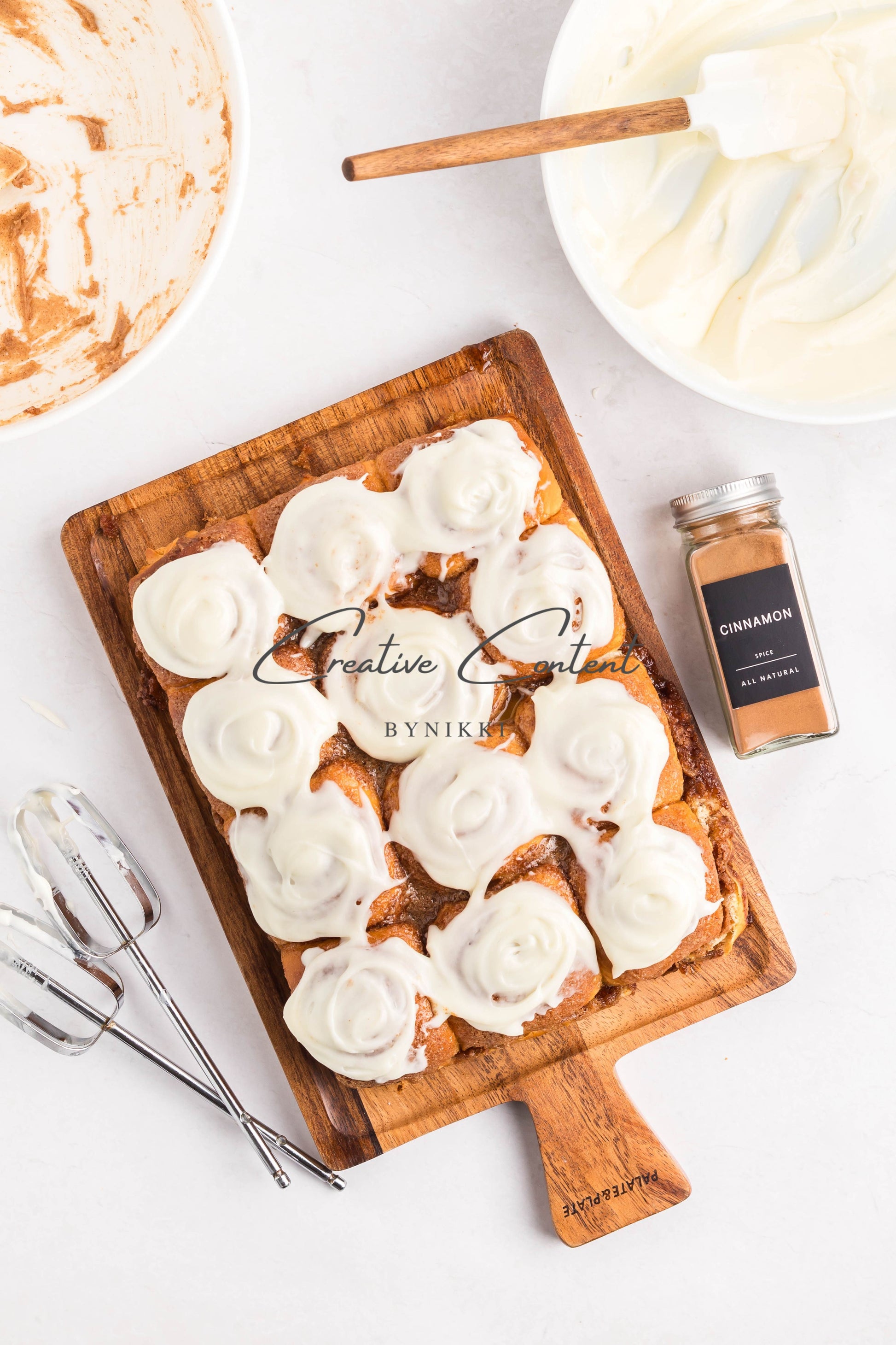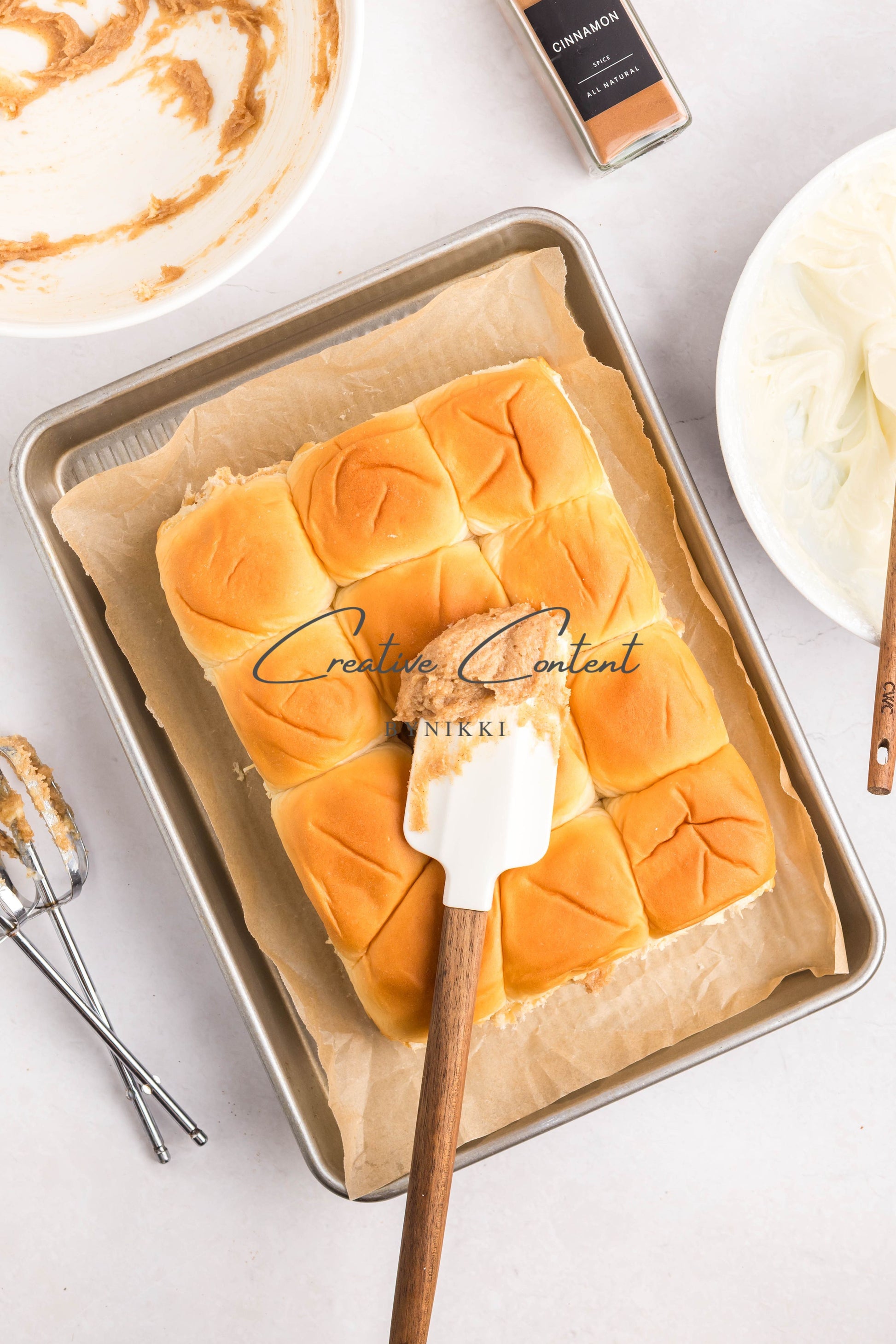 - Ingredients: salted butter, brown sugar, cinnamon, vanilla extract, Hawaiian rolls, cream cheese, heavy cream, powdered sugar