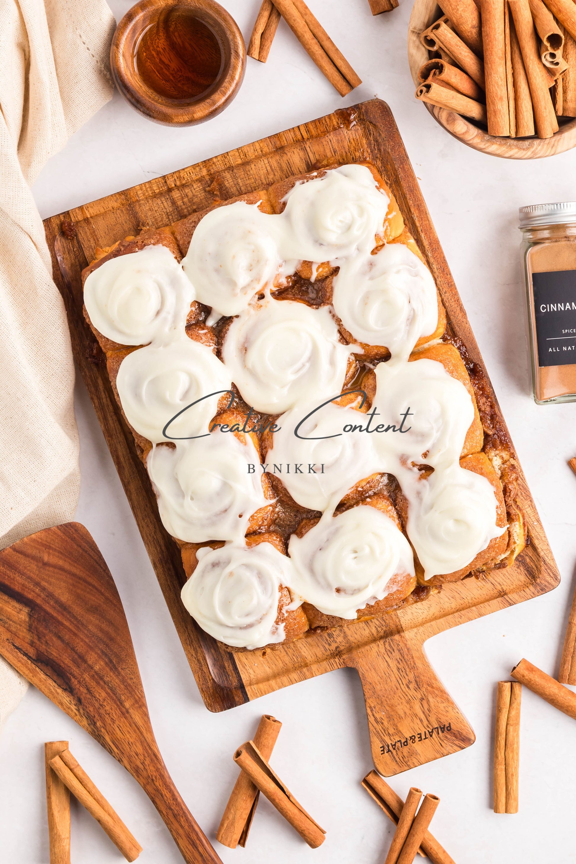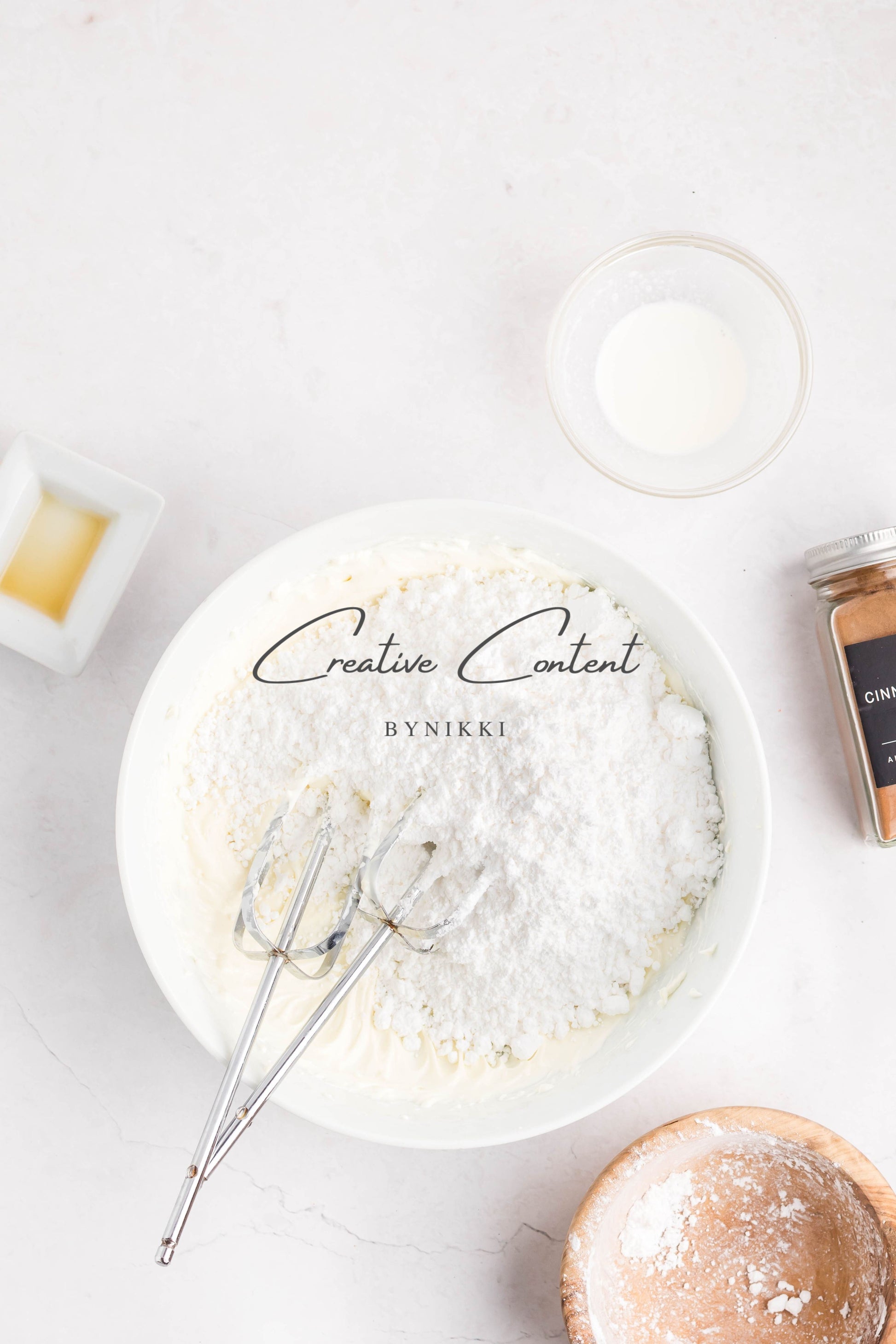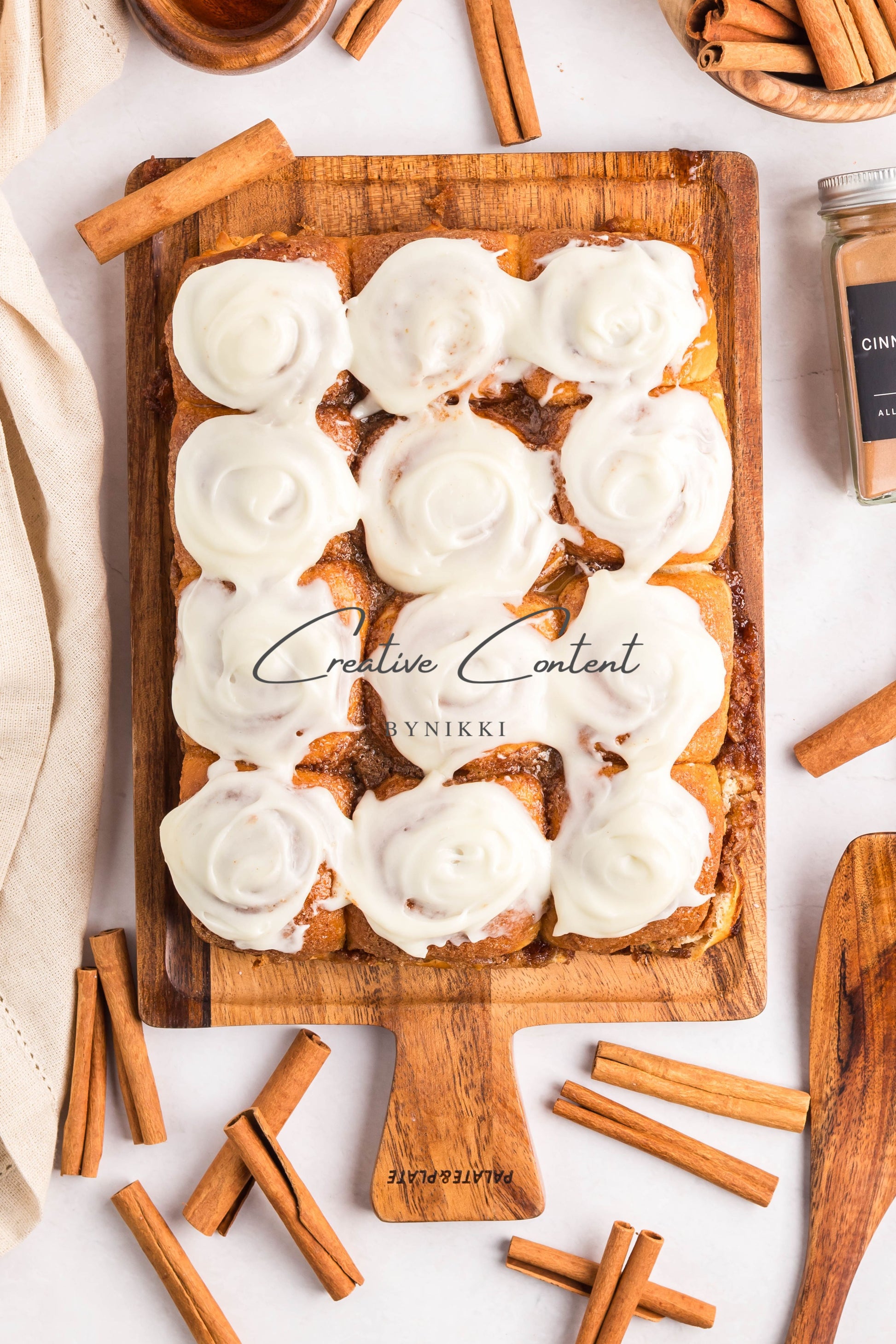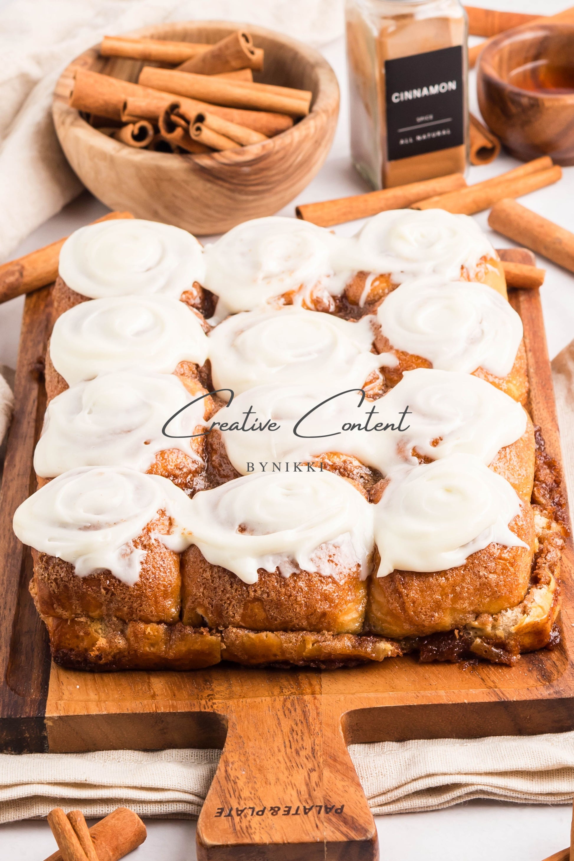 - Ingredients: salted butter, brown sugar, cinnamon, vanilla extract, Hawaiian rolls, cream cheese, heavy cream, powdered sugar