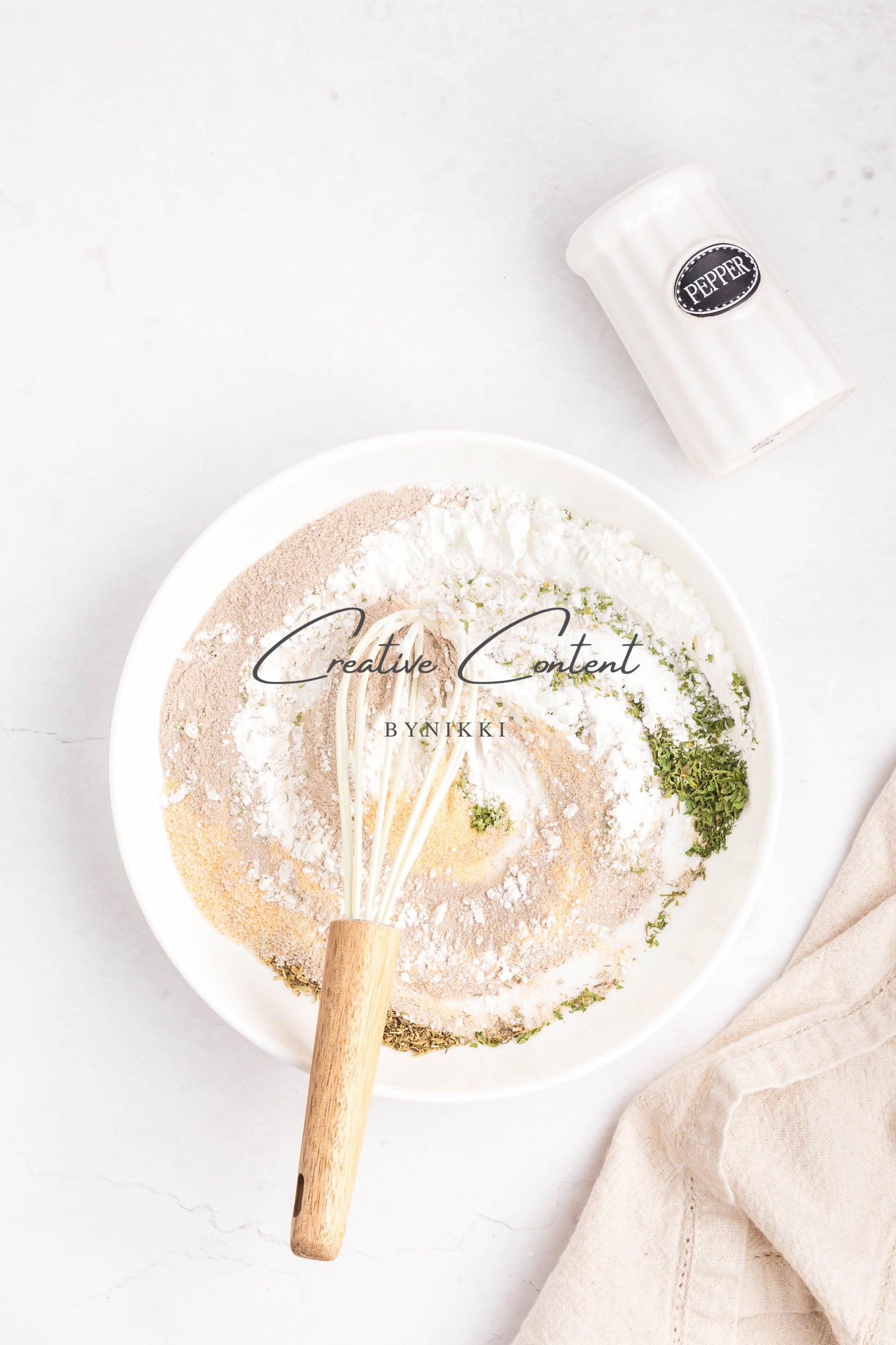 - Ingredients: All-purpose flour, Parmesan cheese, chicken breasts, garlic powder, onion powder, salt, black pepper, avocado oil, butter, garlic, white wine, chicken broth, Italian seasoning, red pepper flakes, heavy cream, spinach