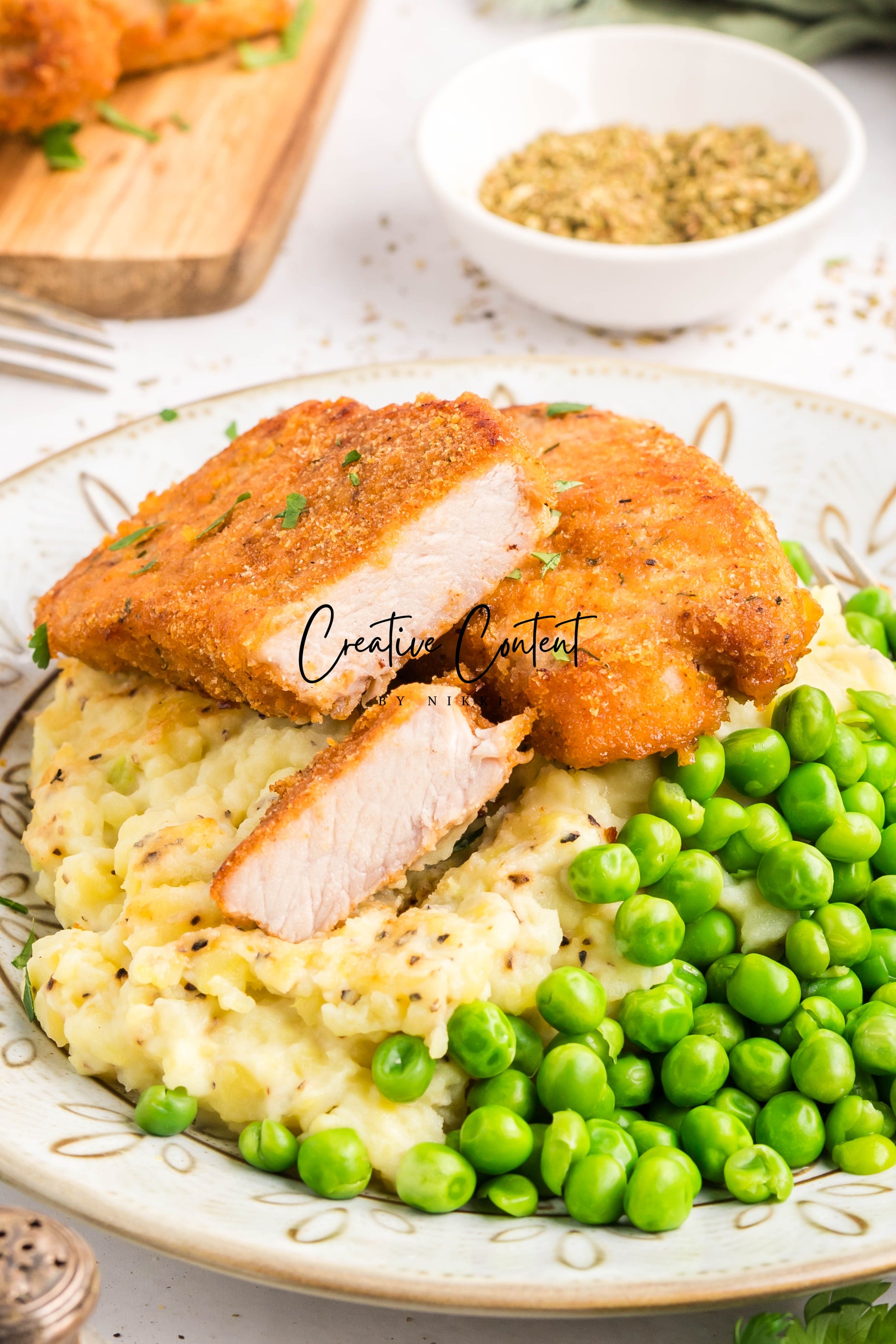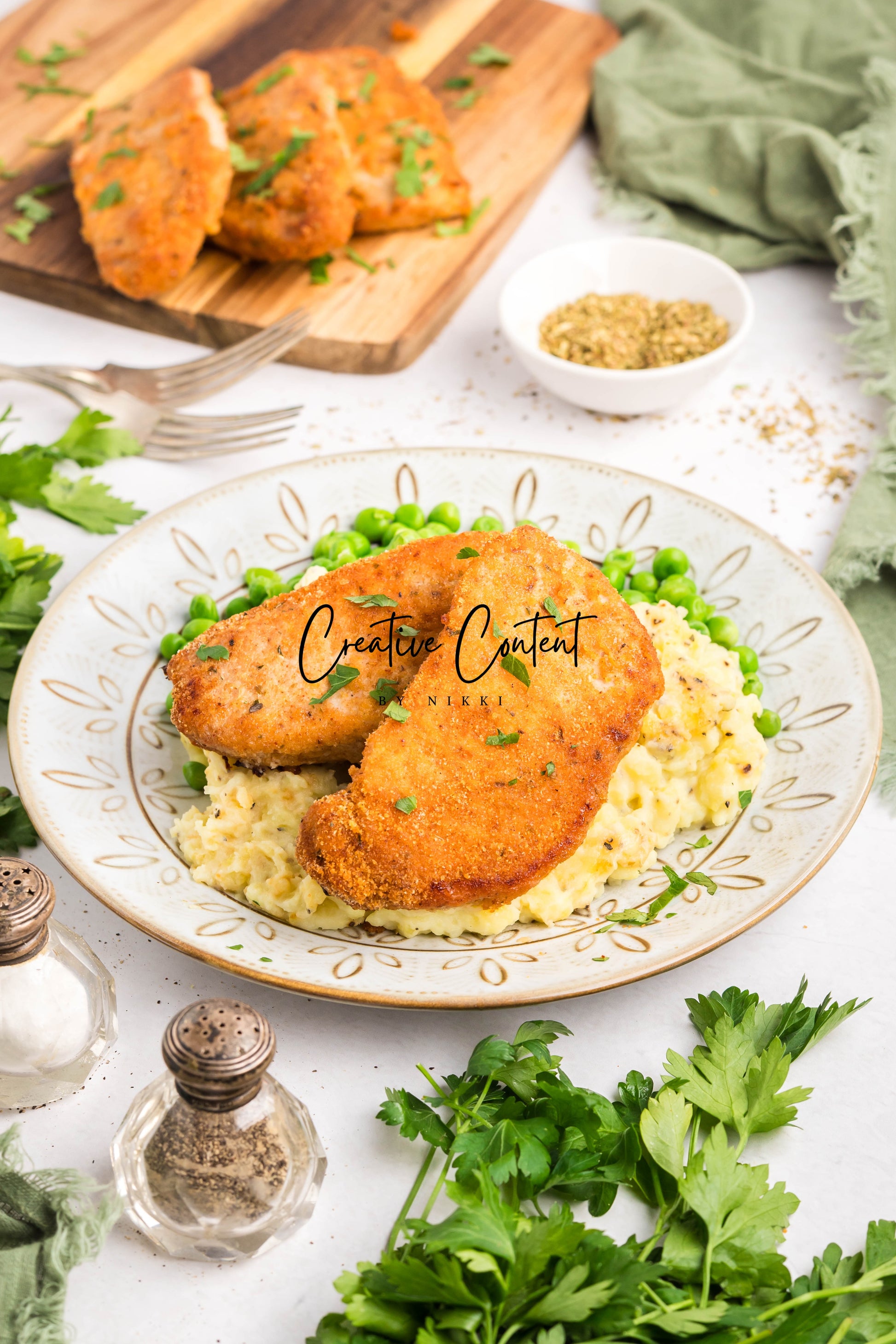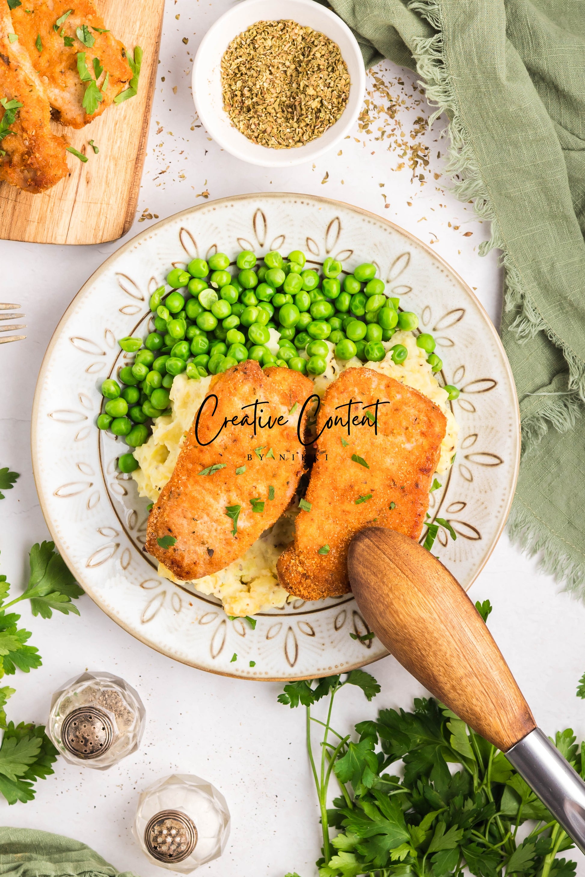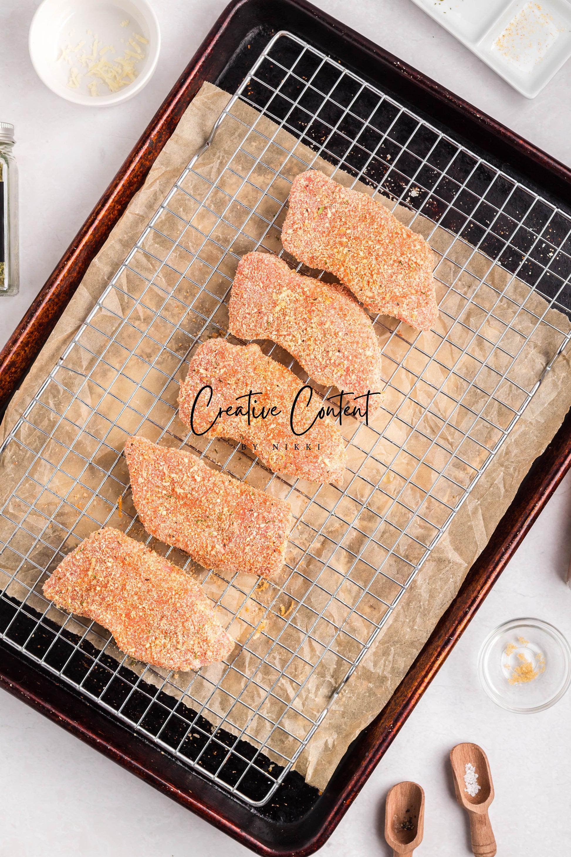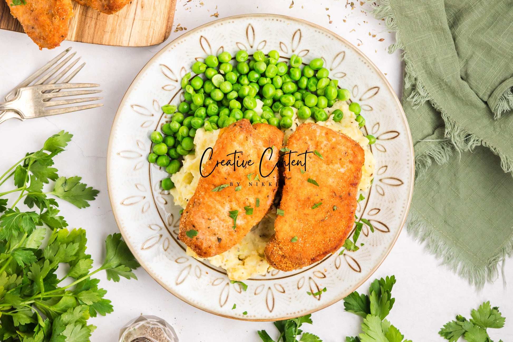 - Ingredients: Italian bread crumbs, parmesan breadcrumbs, avocado oil, paprika, light brown sugar, onion powder, garlic powder, dried oregano, dried parsley, coarse kosher salt, parsley, and boneless pork chops