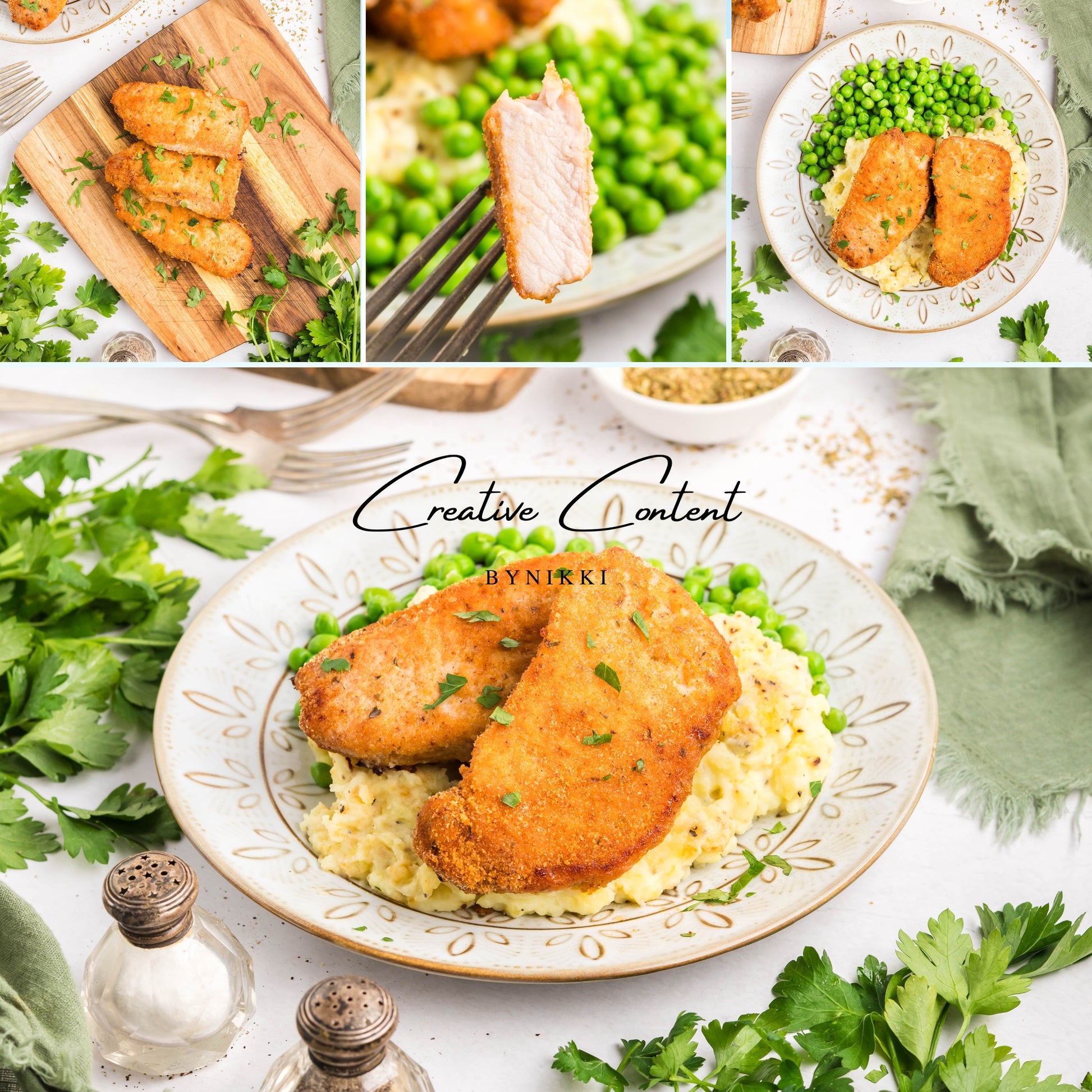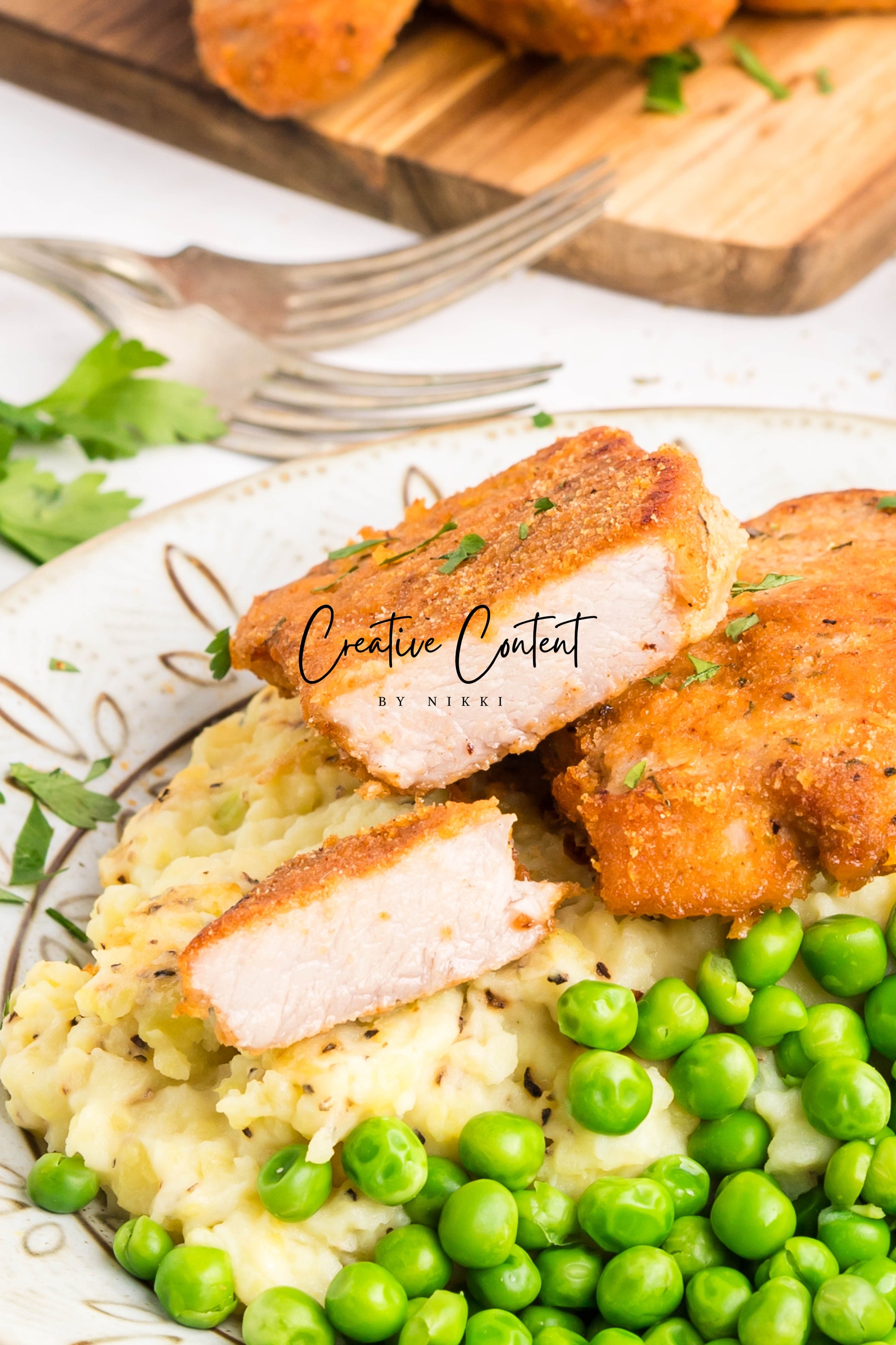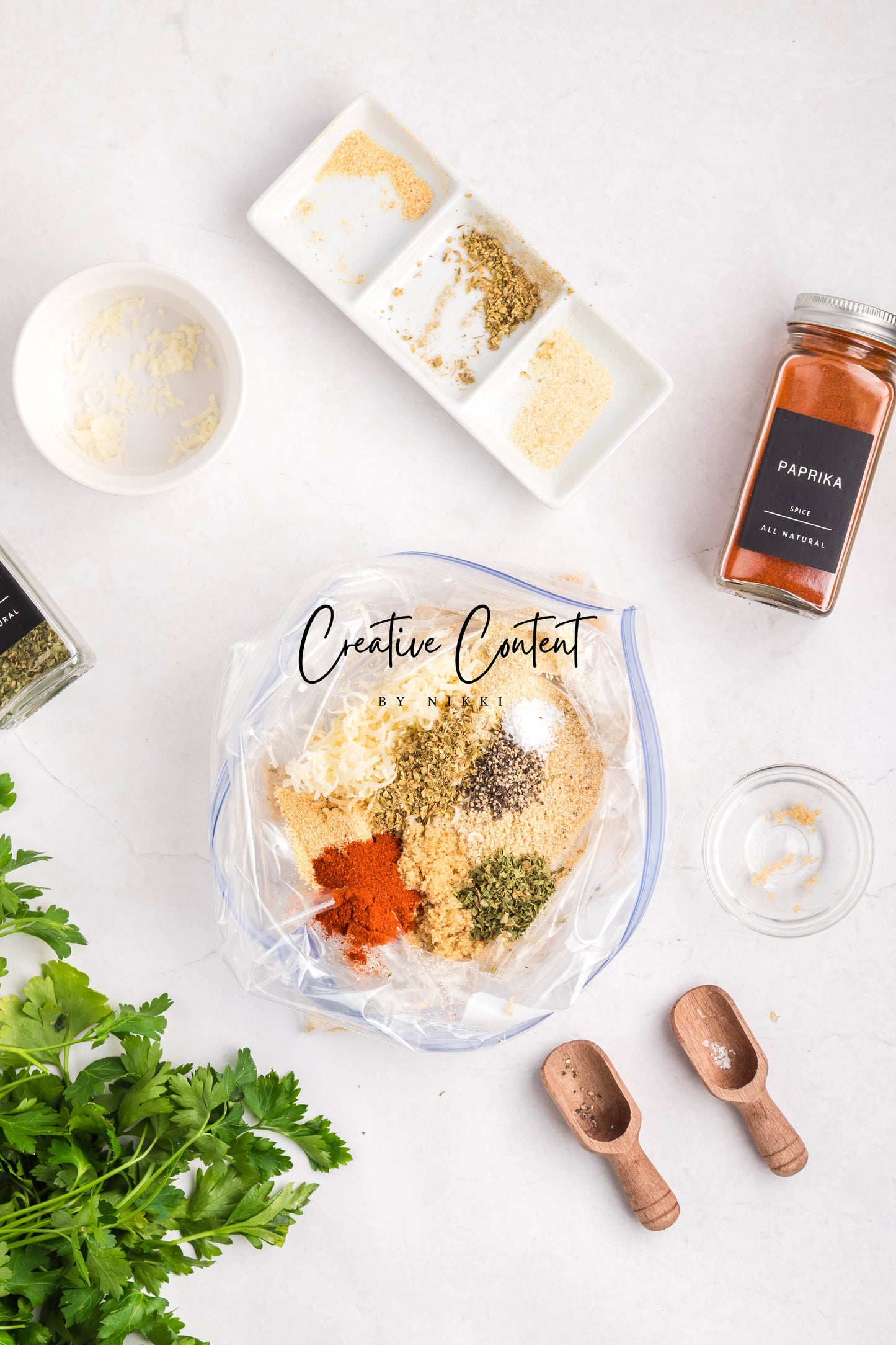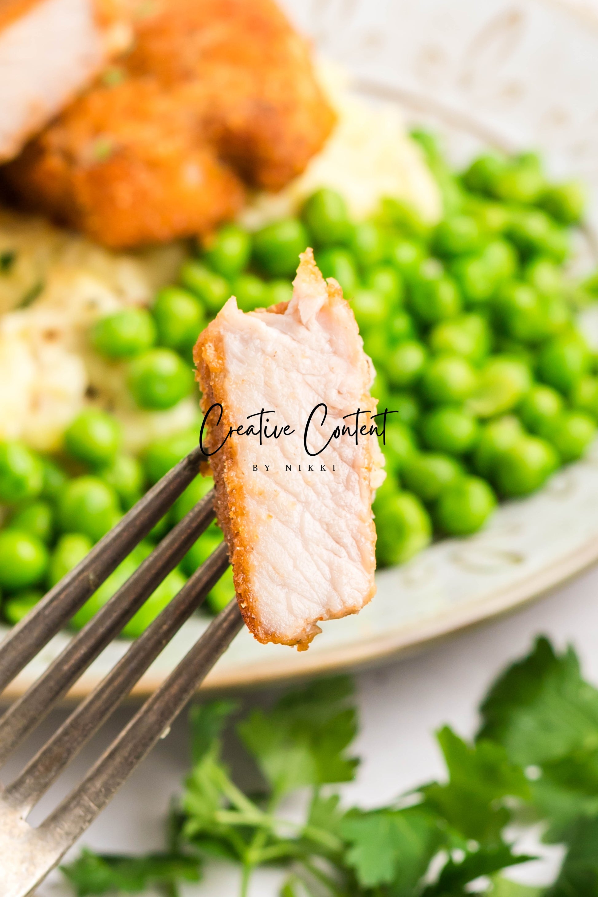 - Ingredients: Italian bread crumbs, parmesan breadcrumbs, avocado oil, paprika, light brown sugar, onion powder, garlic powder, dried oregano, dried parsley, coarse kosher salt, parsley, and boneless pork chops