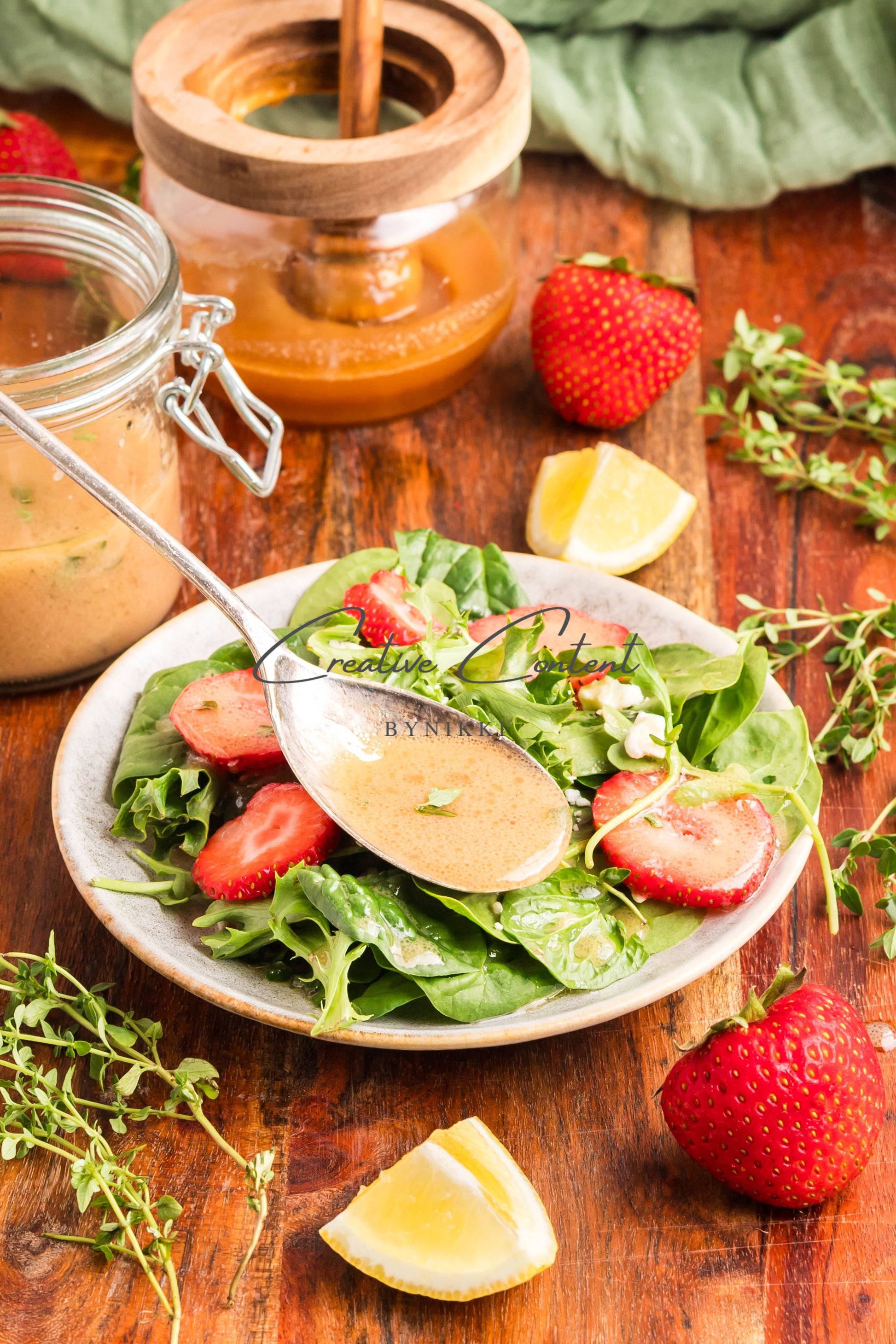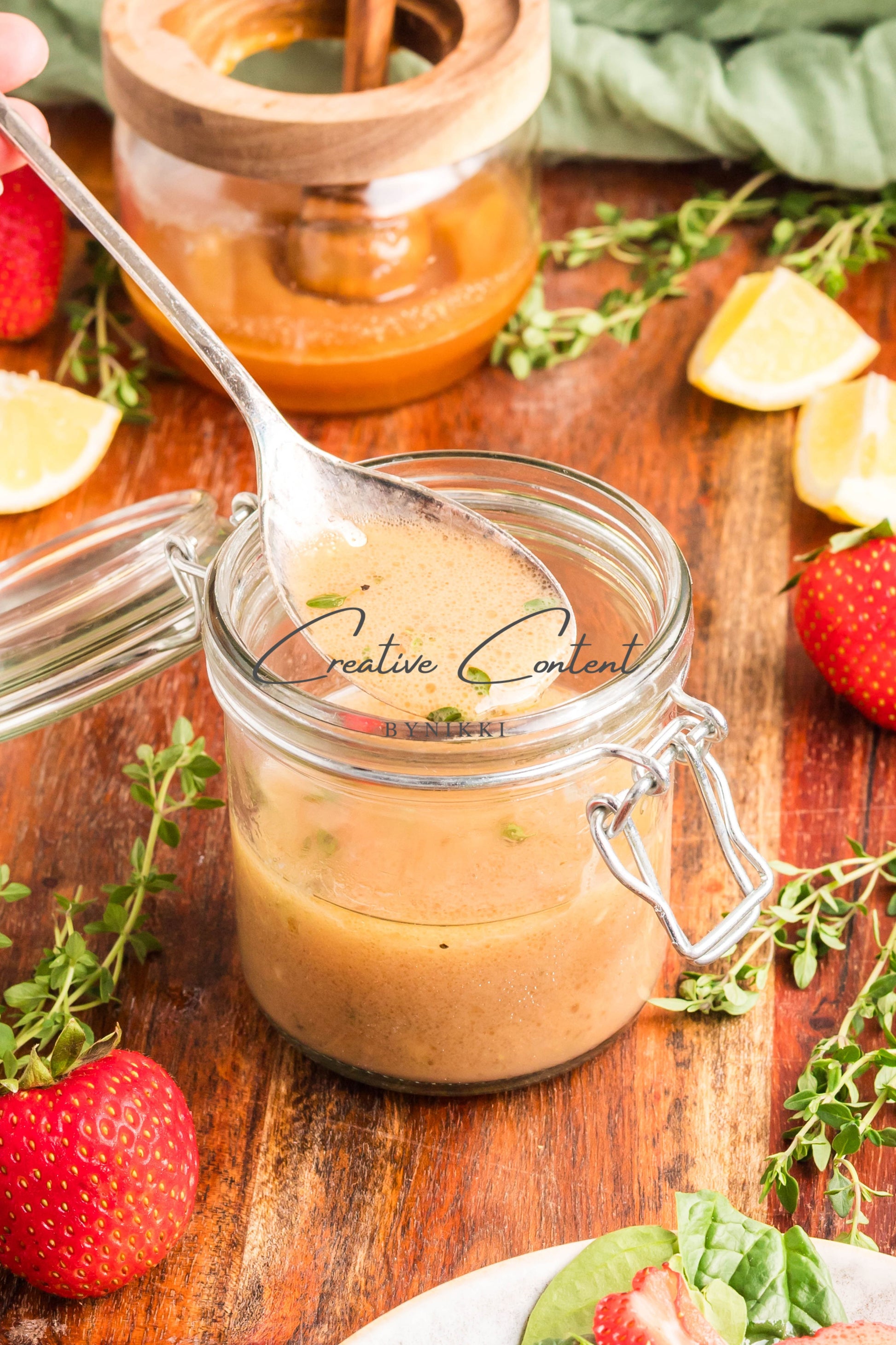 The Honey Dijon Dressing is a simple and flavorful addition to any salad. It combines the natural sweetness of honey with the tang of Dijon mustard and red wine vinegar. The avocado oil gives it a smooth texture that blends all the flavors together. Fresh garlic and lemon juice add a bright, zesty touch. This dressing is easy to make and comes together quickly.