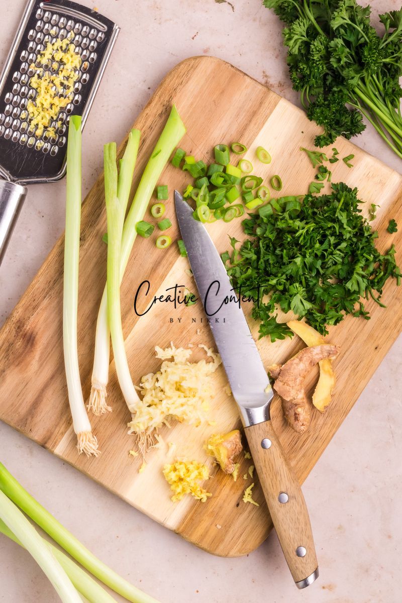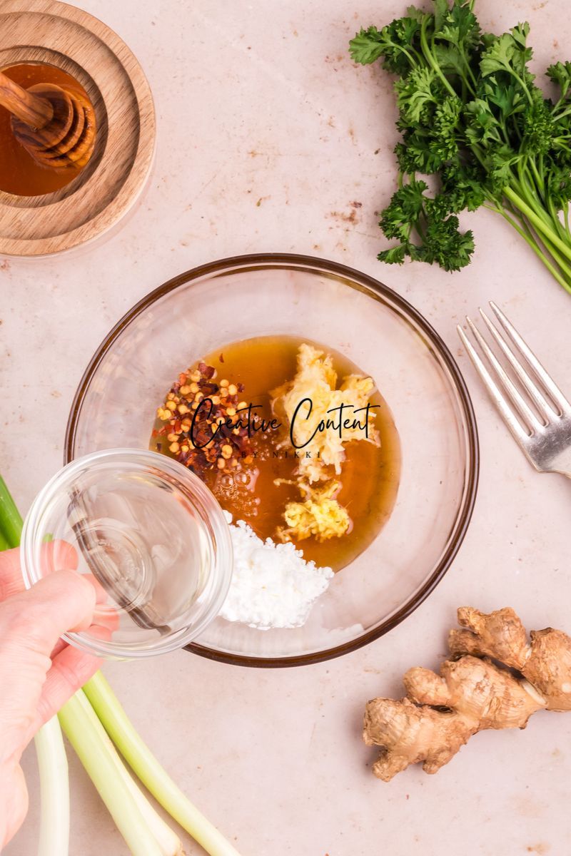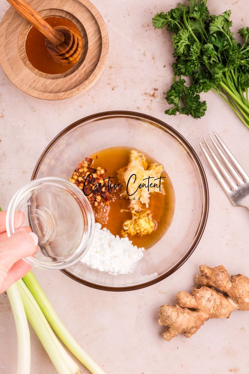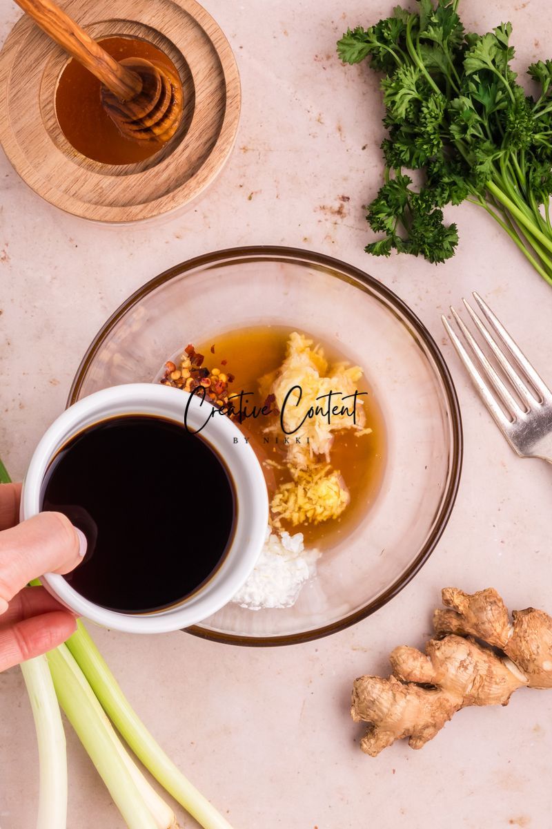 - Ingredients needed; honey, low-sodium soy sauce, garlic cloves, rice vinegar, ginger, cornstarch, red pepper flakes, avocado oil, 1 pound medium uncooked shrimp (peeled and deveined), green onions, and parsley.