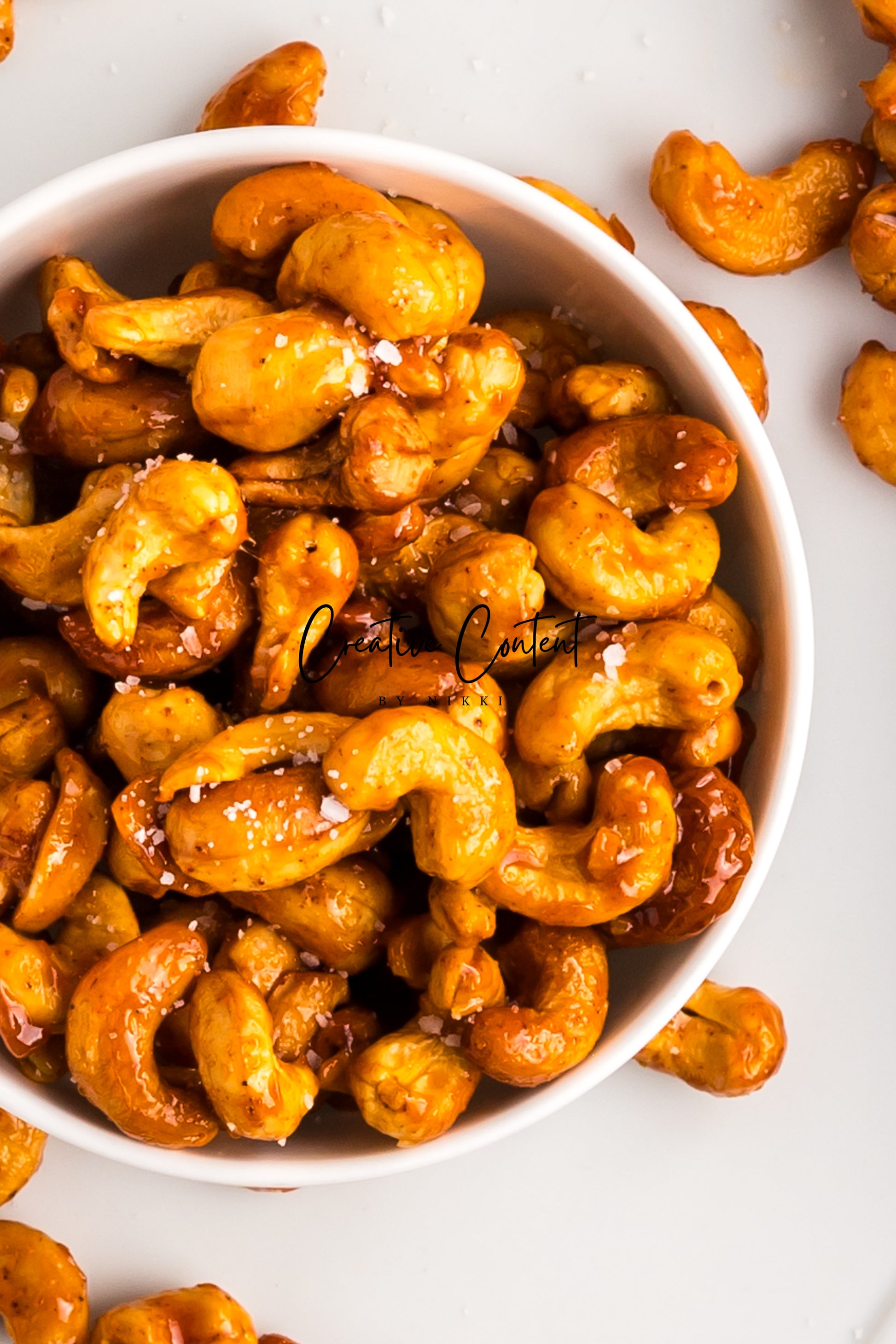 This honey-glazed roasted cashew recipe is addictive with sweet honey, coarse salt, and spicy cayenne pepper. These are perfect for your next get-together or for a healthy snack for the family. These are so much healthier with more flavor and less salt than store bought.